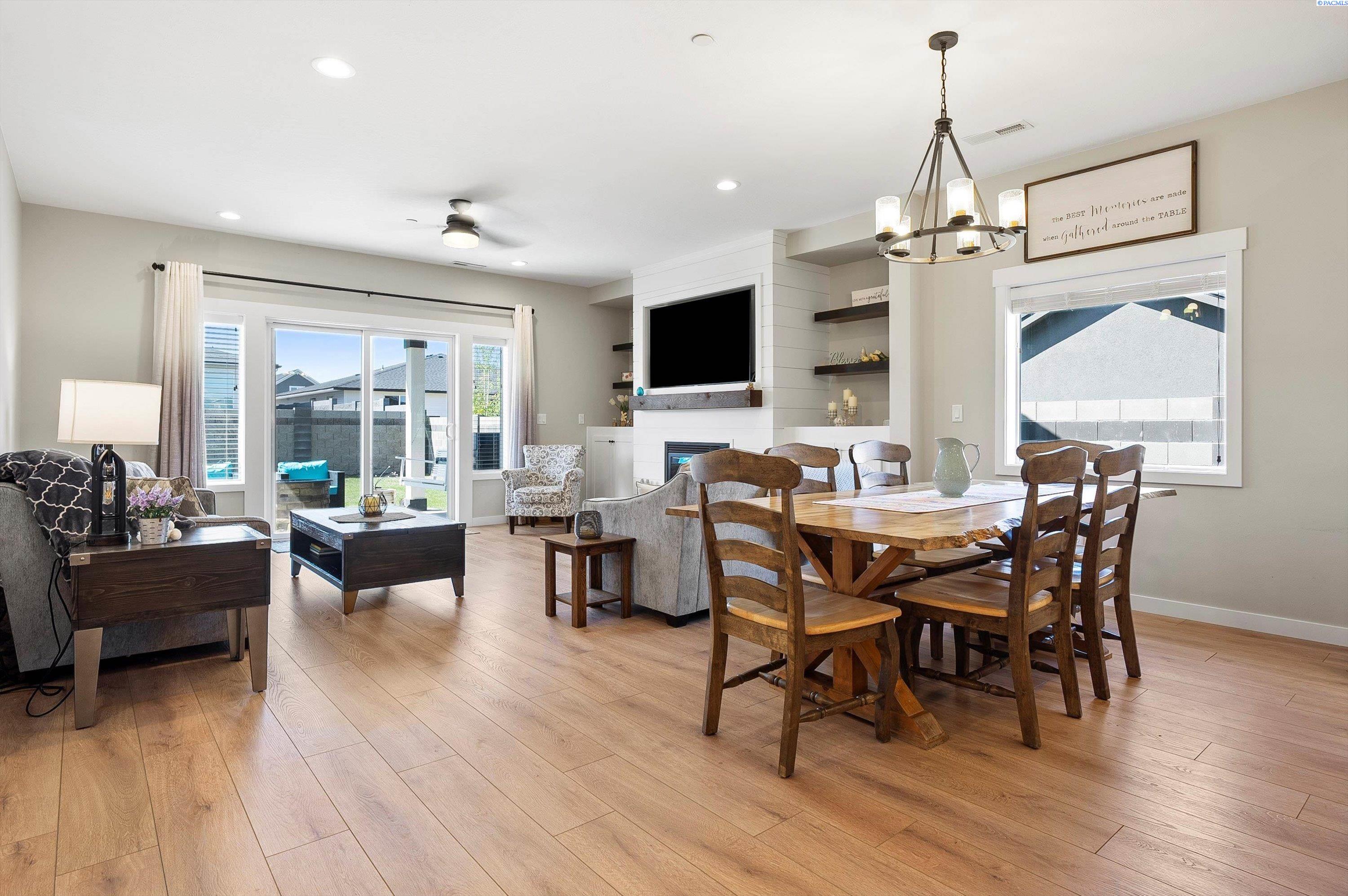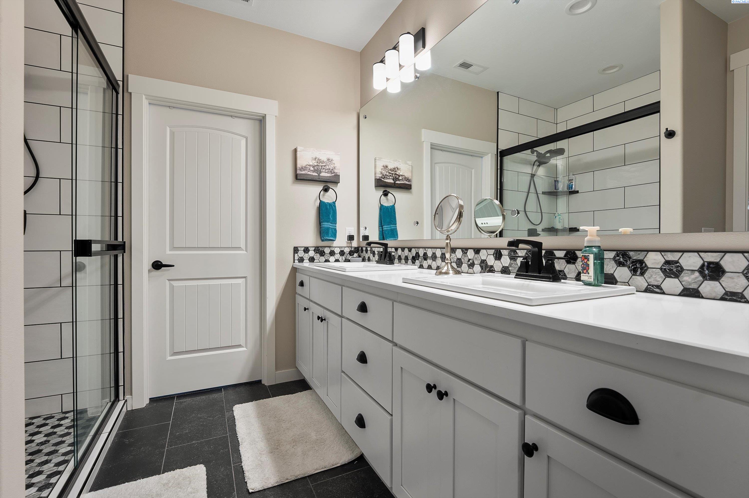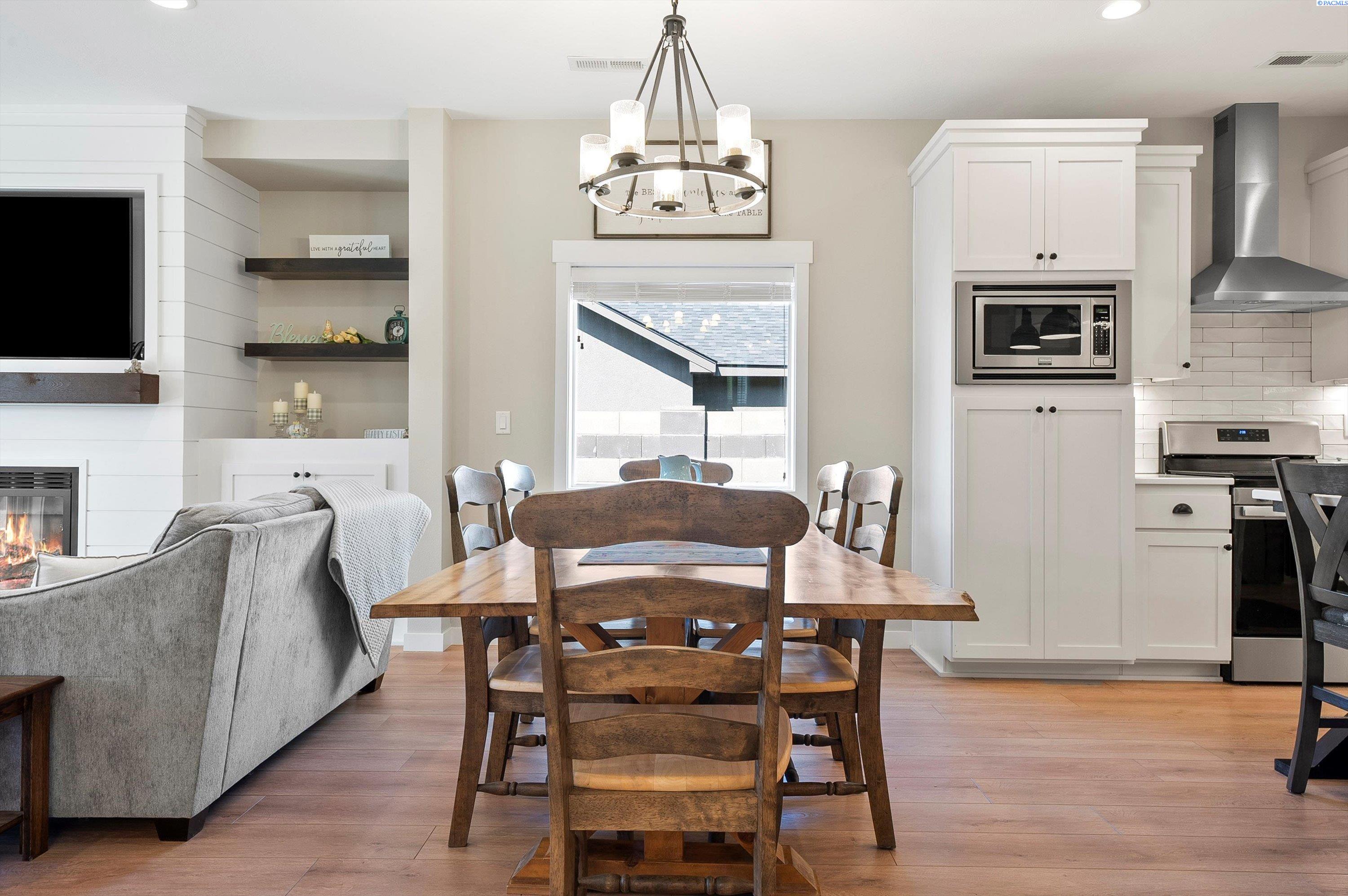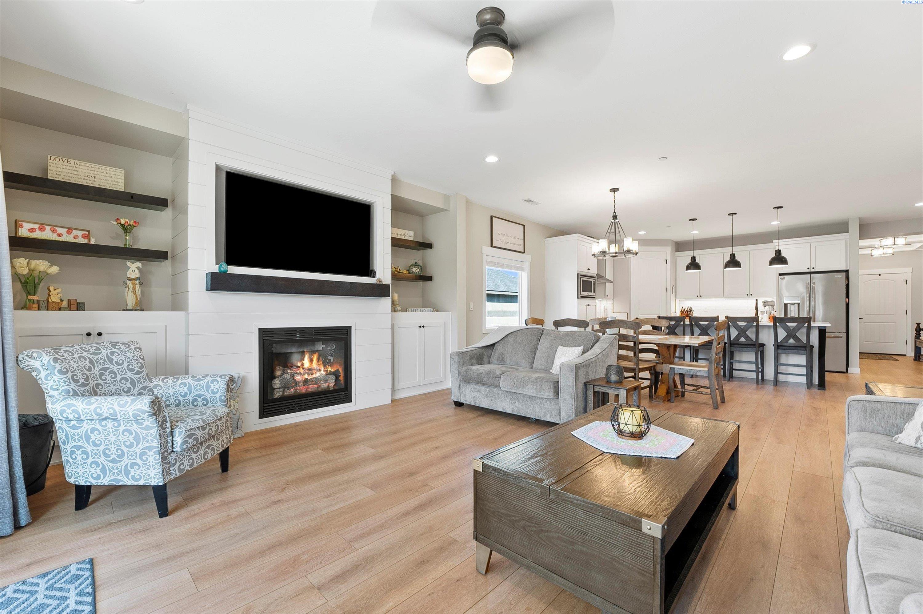 Welcome to this beautiful West Village home in highly desirable South Richland. This thoughtfully designed residence blends modern elegance with warm farmhouse charm. Featuring 4 bedrooms, 3.5 bathrooms, and a spacious upstairs bonus room, the flexible layout offers comfort and versatility, including a double primary suite ideal for multi generational living or guest accommodations. High end finishes throughout include custom kitchen island, a breakfast bar, wet bar with wine cooler, soft close cabinetry, gas appliances, and beautiful quartz countertops throughout. Luxury vinyl plank flooring, designer lighting, and a 2 car garage complete this well appointed home.