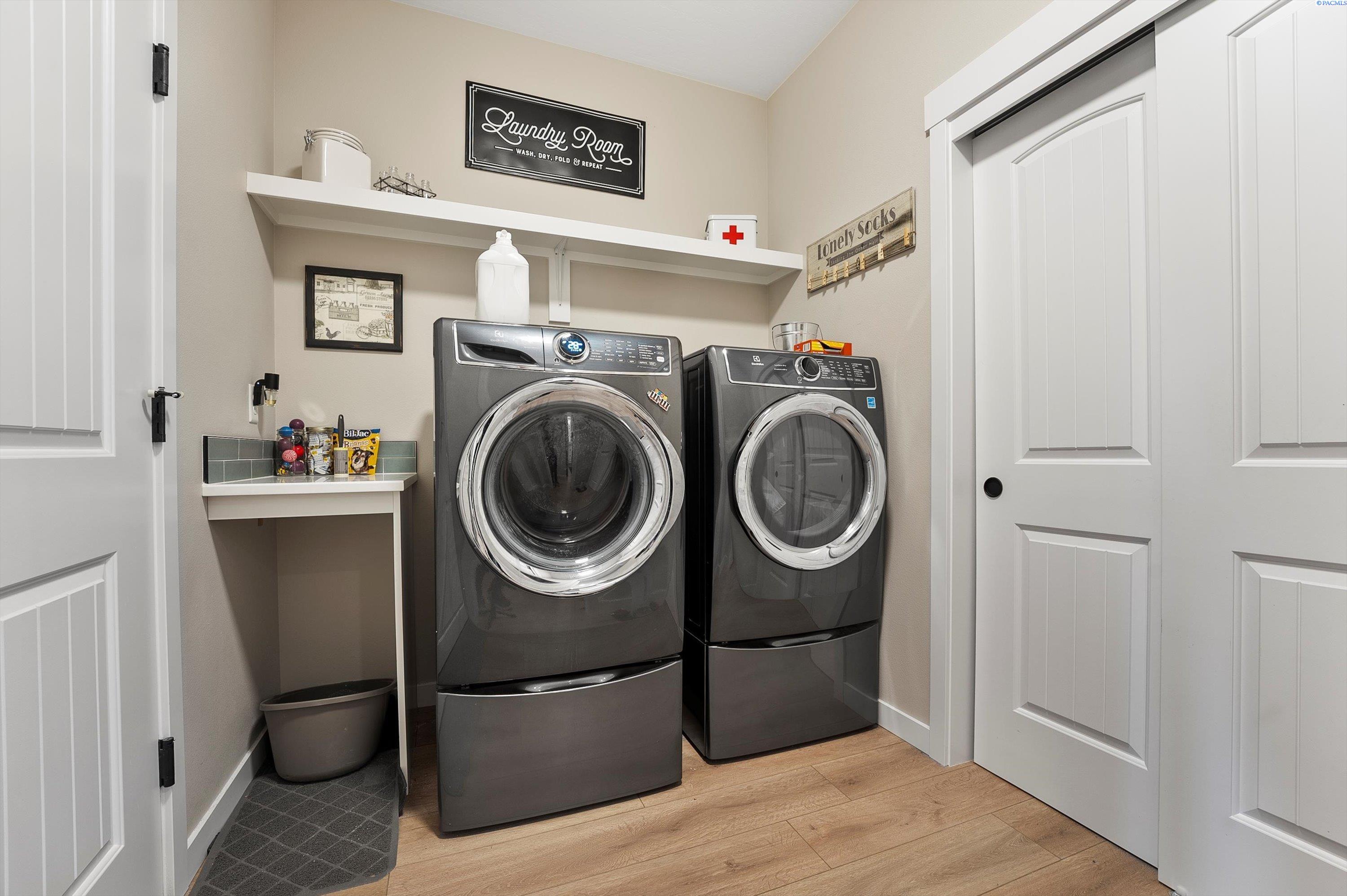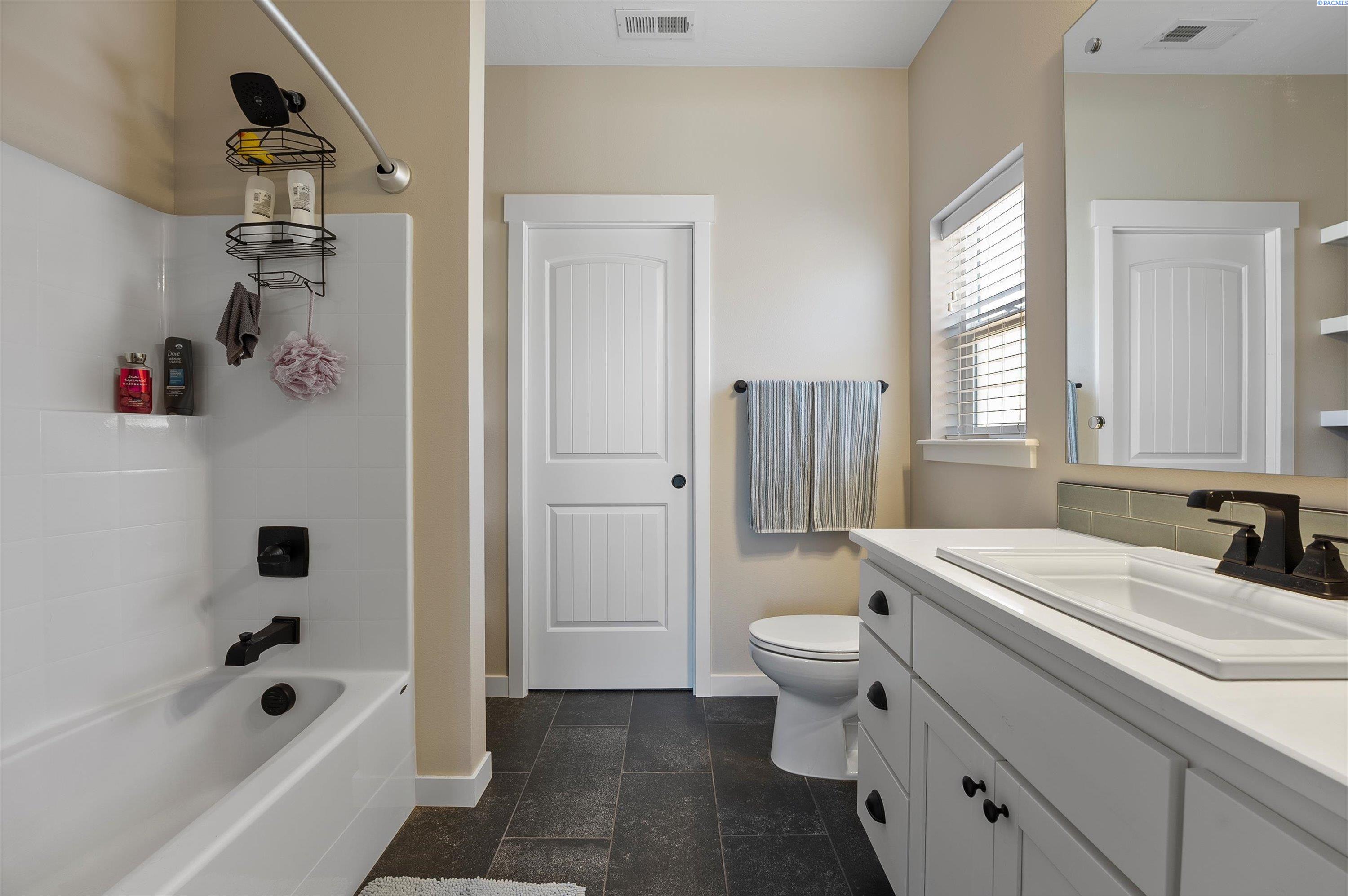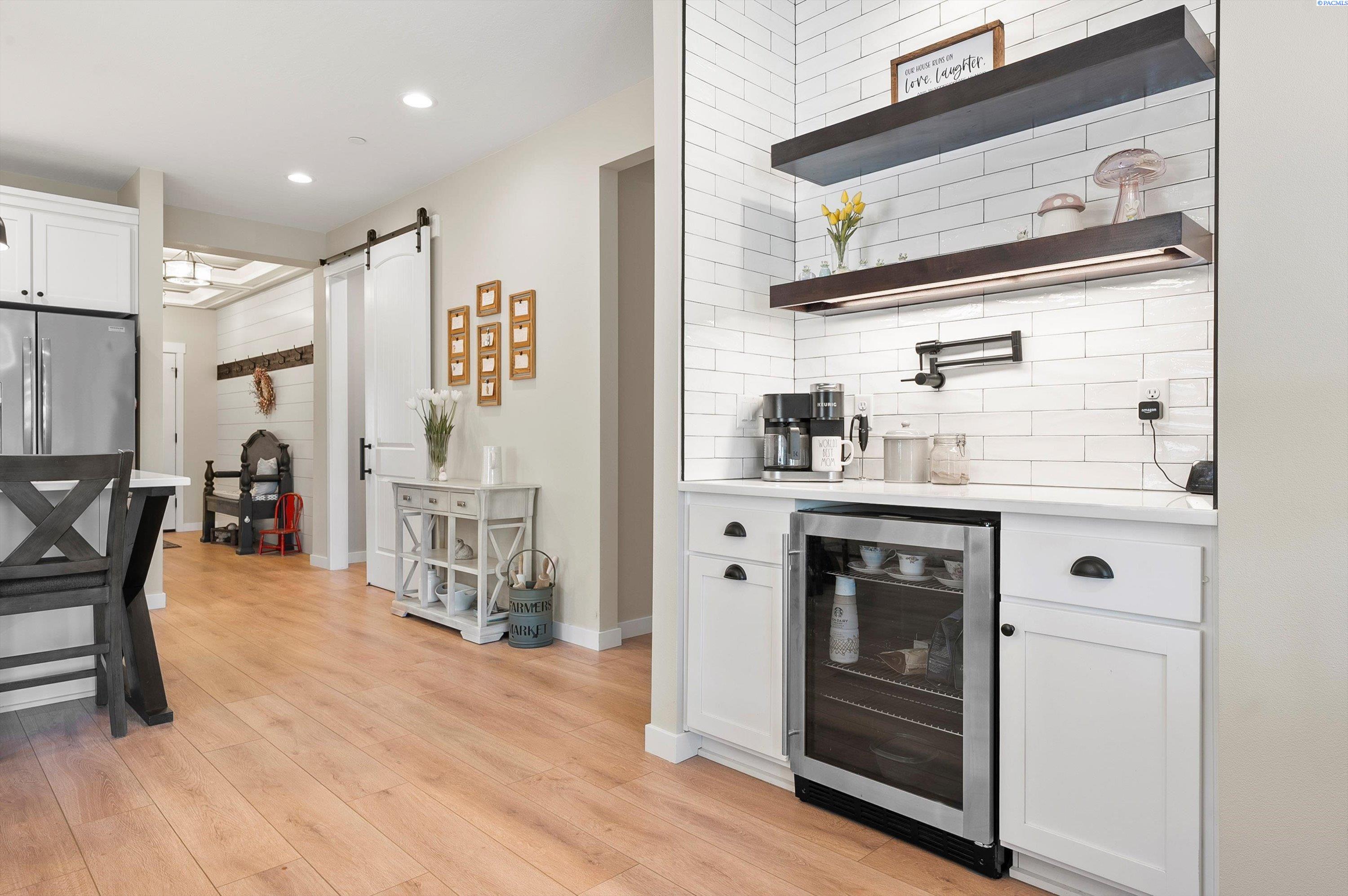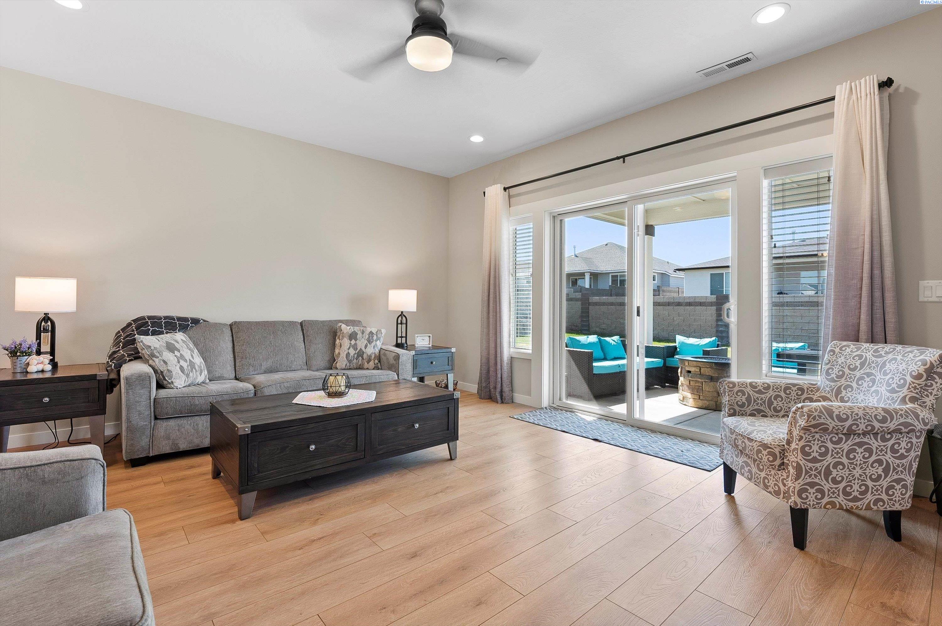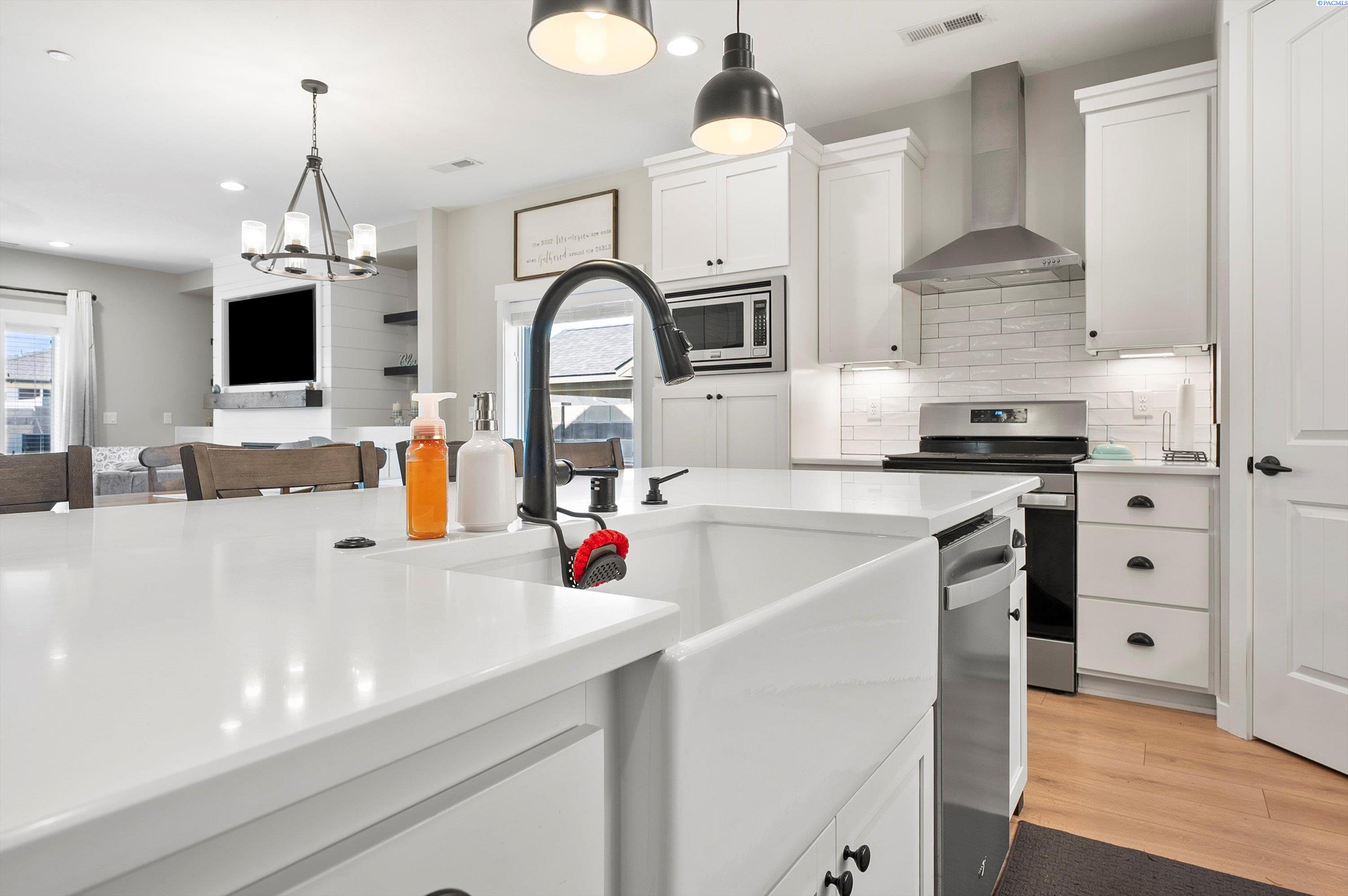 Welcome to this beautiful West Village home in highly desirable South Richland. This thoughtfully designed residence blends modern elegance with warm farmhouse charm. Featuring 4 bedrooms, 3.5 bathrooms, and a spacious upstairs bonus room, the flexible layout offers comfort and versatility, including a double primary suite ideal for multi generational living or guest accommodations. High end finishes throughout include custom kitchen island, a breakfast bar, wet bar with wine cooler, soft close cabinetry, gas appliances, and beautiful quartz countertops throughout. Luxury vinyl plank flooring, designer lighting, and a 2 car garage complete this well appointed home.