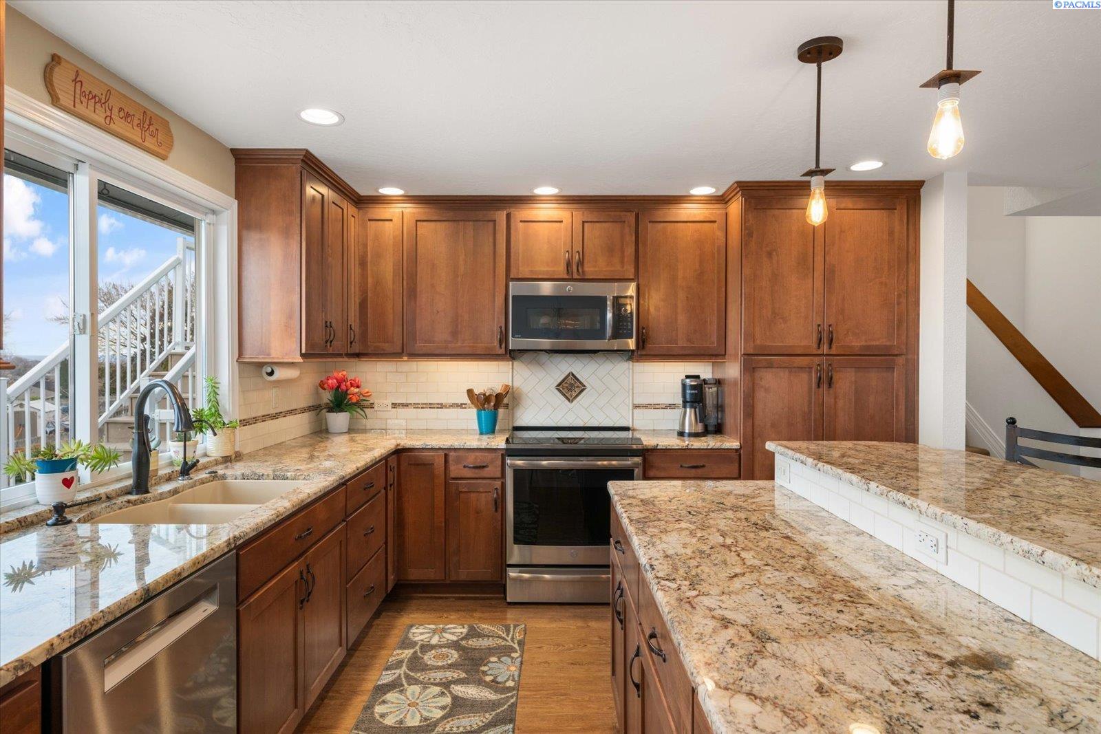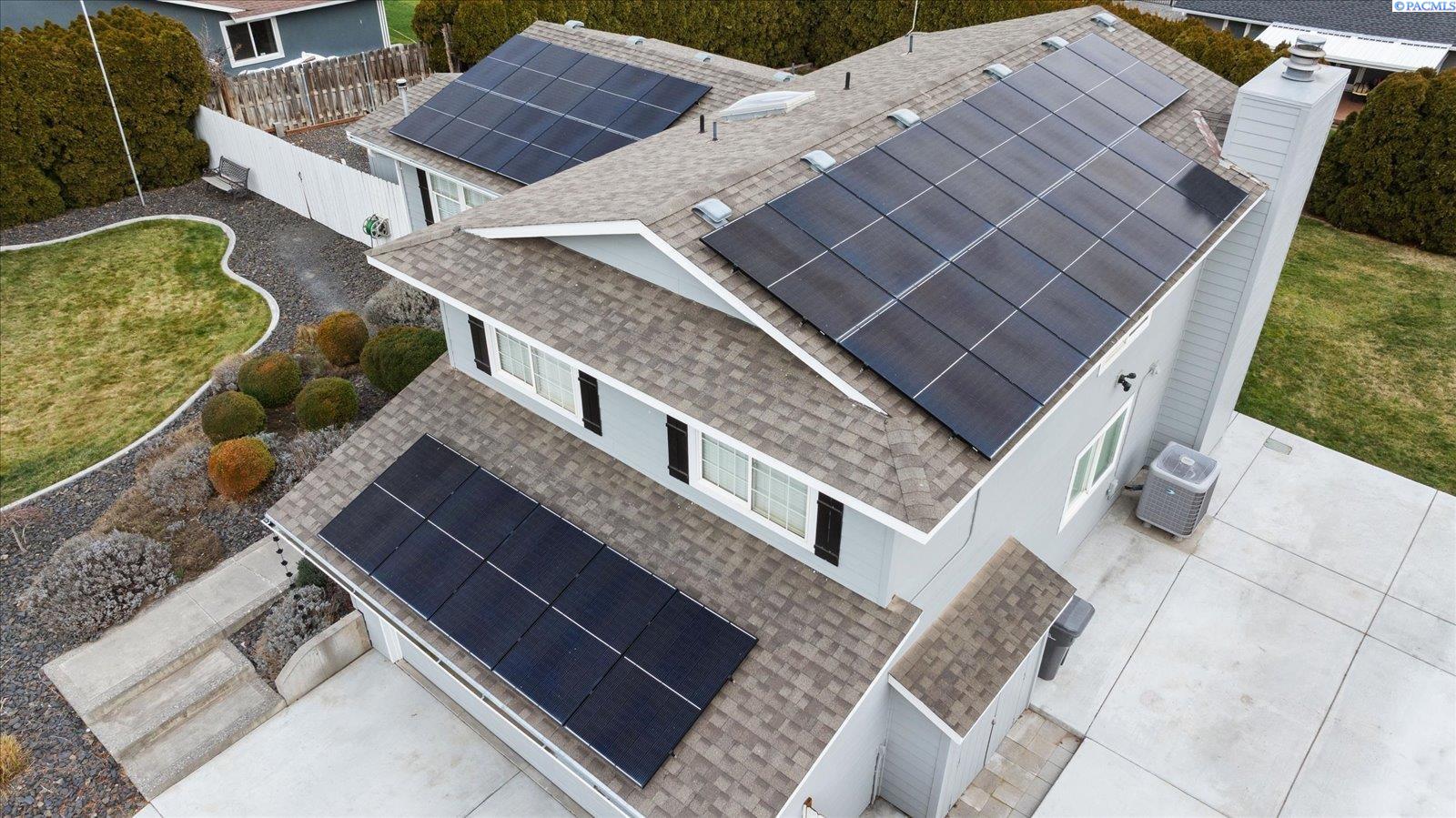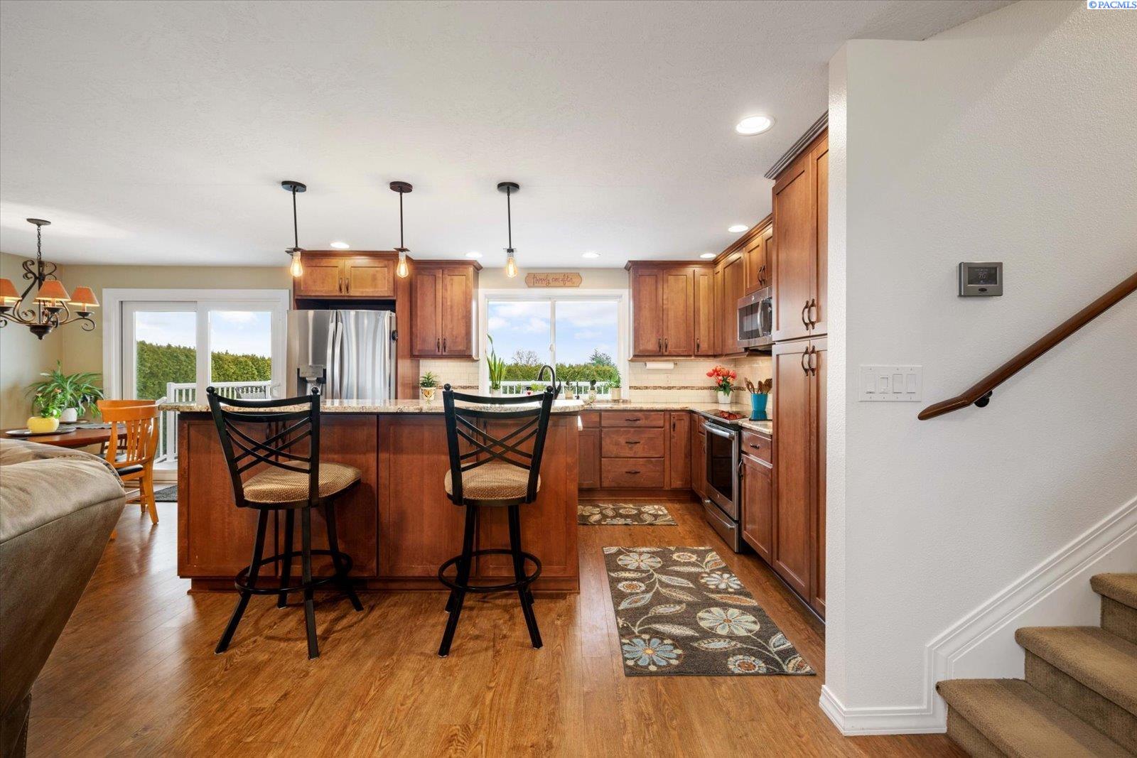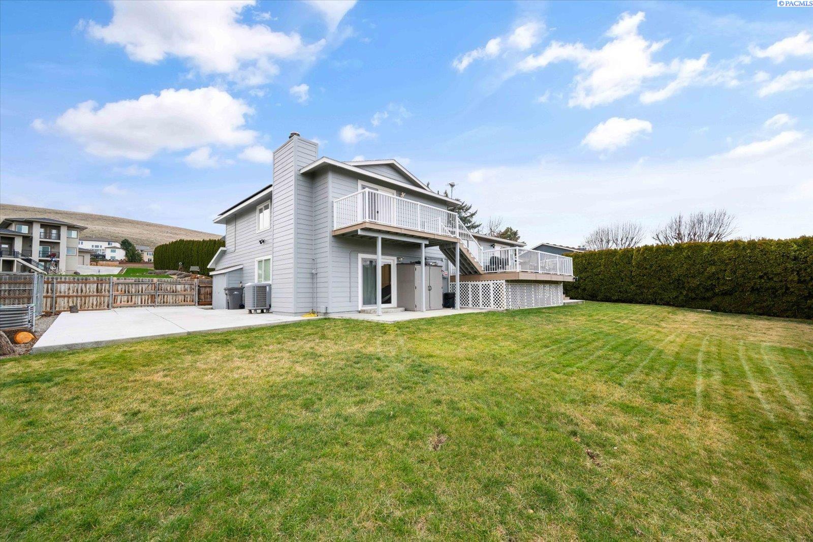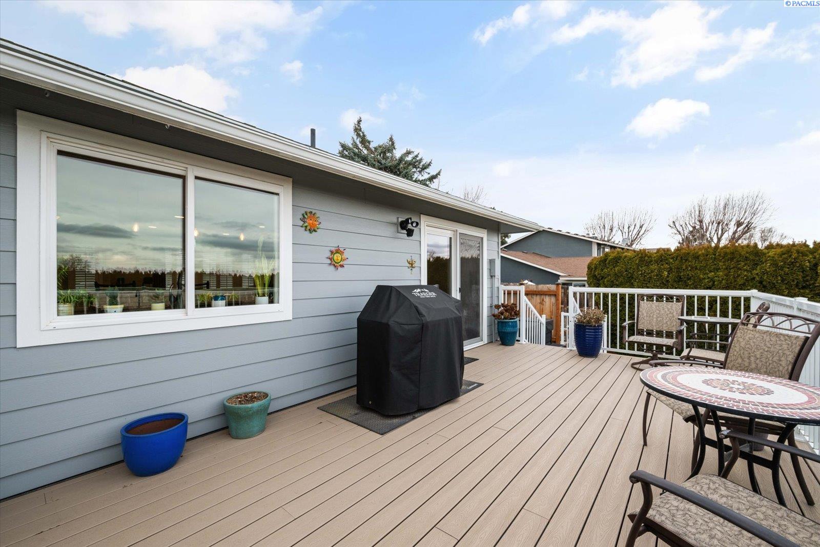 MLS# 290710 Stunning tri-level home in quiet SE Kennewick that delivers both charm and serious value. Nestled on a generous 0.31-acre lot, this beauty has been thoughtfully updated inside and out. Step inside and you'll immediately notice the warmth of rich cabinetry, gleaming granite countertops, and a spacious kitchen designed for the home chef â a premium induction range/oven for faster, more precise cooking, a breakfast bar, reverse osmosis water filtration, and a water softener. The open flow between the kitchen, dining, and living areas creates the perfect backdrop for everyday living and entertaining.When the temperatures drop, cozy up to the pellet stove in the main living room â this home knows how to keep you warm without breaking the bank. Solar panels can reduce your energy costs by up to 40%, and the extra insulation blown into the attic and crawl space plus fully serviced ductwork mean this home is as efficient as it is beautiful. Outside, the multi-level Trex decking invites you to take in the breathtaking northeast views, and after a long day, sink into the brand new hot tub and let the stress melt away. The private fire pit area sets the stage for evenings under the stars, while the new concrete driveway extends to the backyard offering spacious RV parking complete with a cleanout â a rare and valuable bonus. Raised flower beds, a dog run, extra storage building, and new Hardiboard siding round out this incredible outdoor space. Practical buyers will love the updated electrical, built-in gun safe, and the 36" wide door from the garage to the family room â a small detail that makes a big difference when moving furniture or large items. The finished basement adds even more flexible living space.