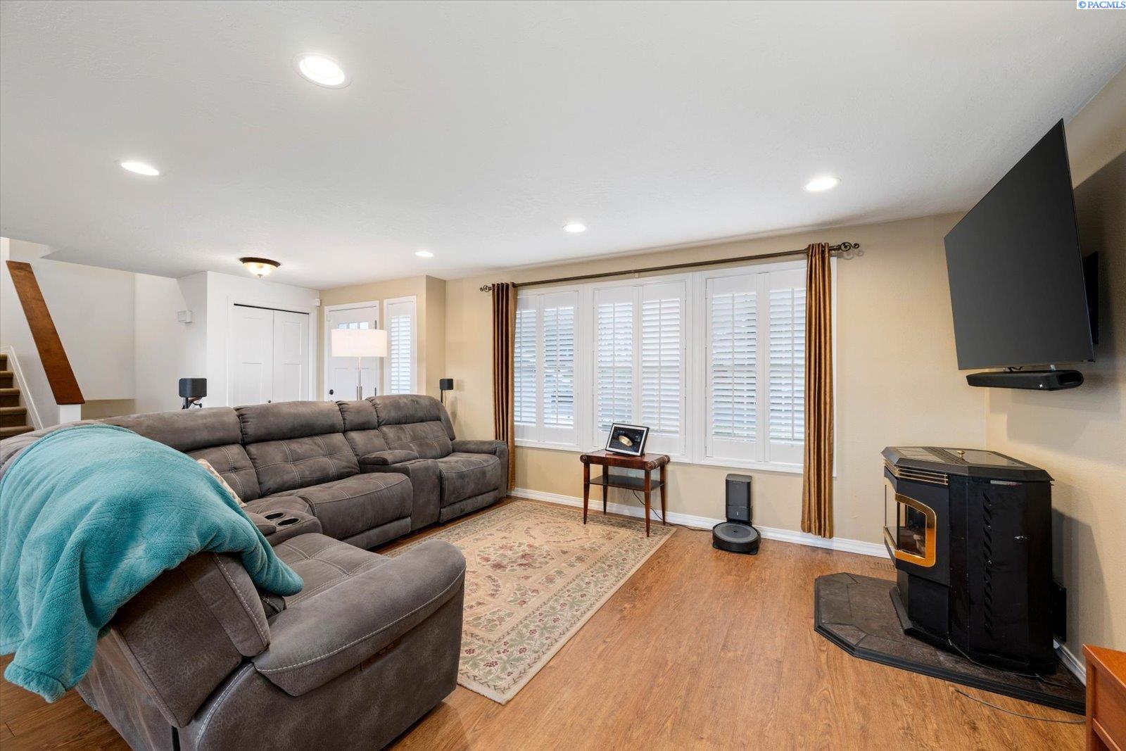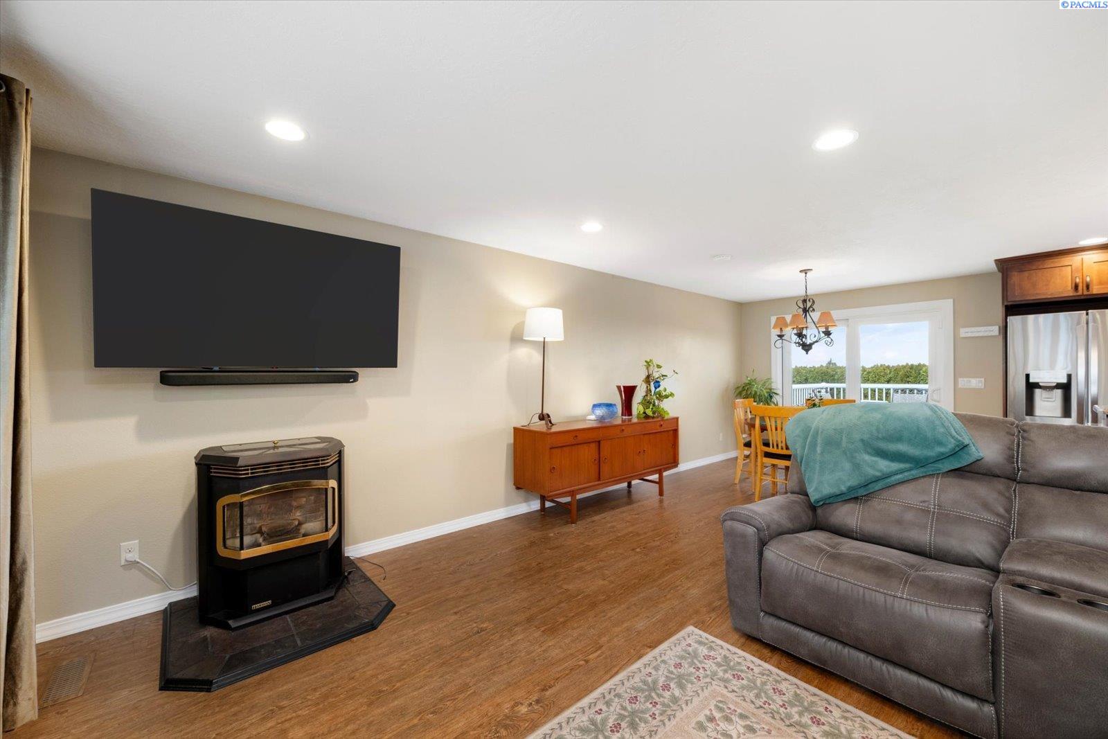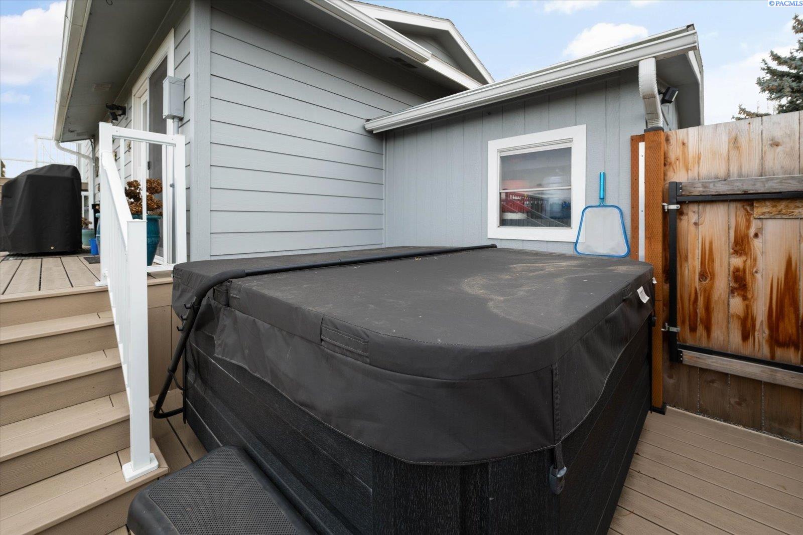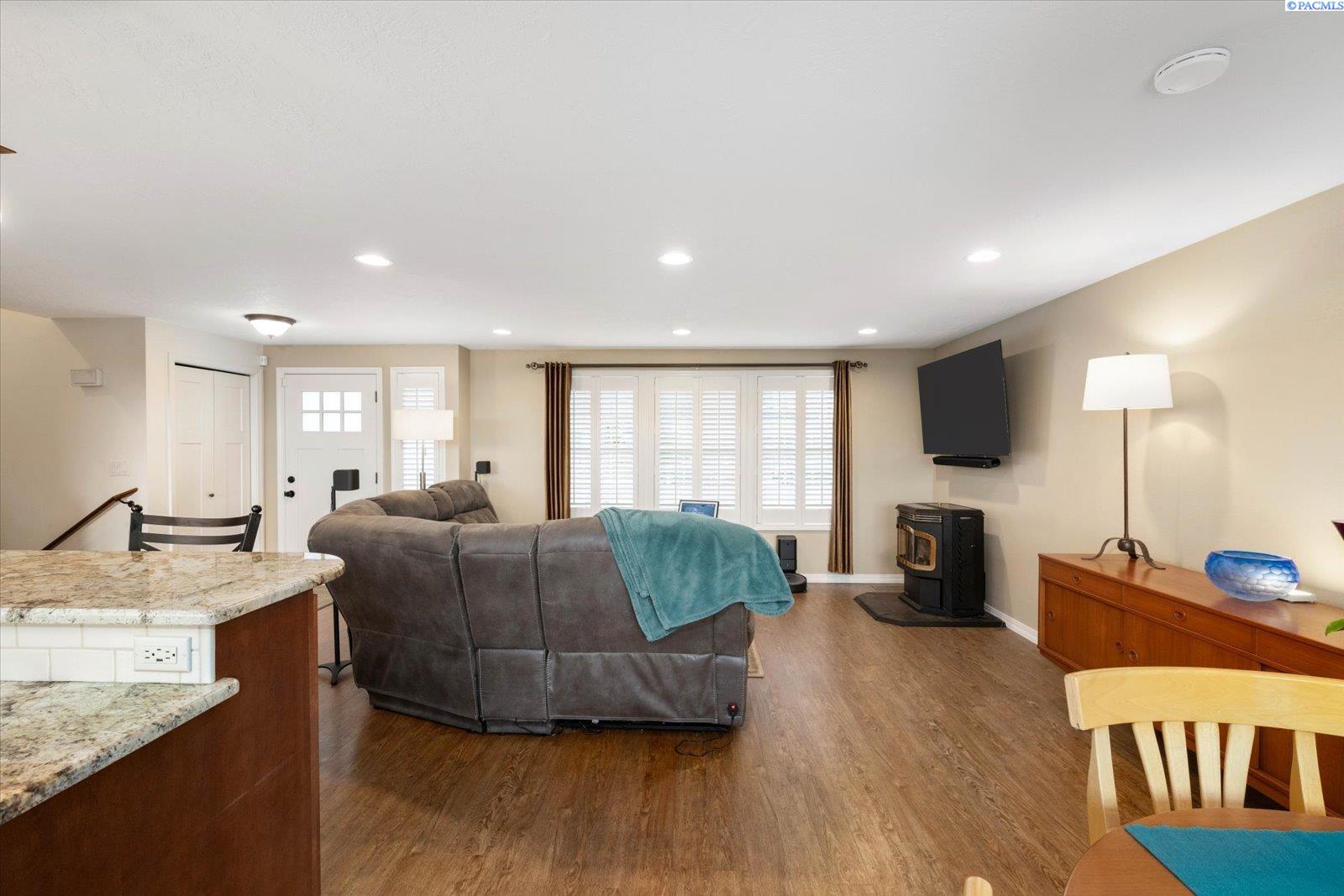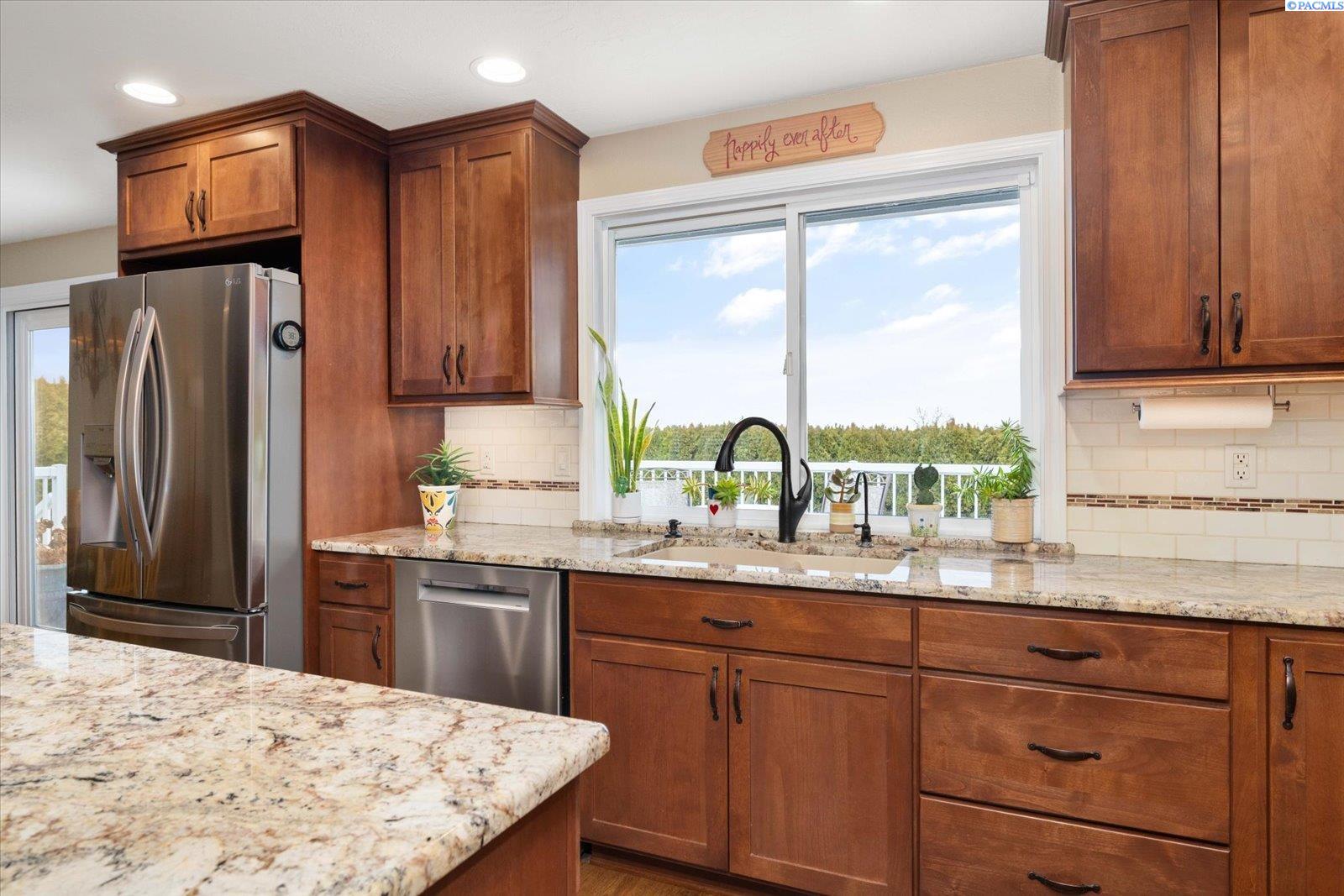 MLS# 290710 Stunning tri-level home in quiet SE Kennewick that delivers both charm and serious value. Nestled on a generous 0.31-acre lot, this beauty has been thoughtfully updated inside and out. Step inside and you'll immediately notice the warmth of rich cabinetry, gleaming granite countertops, and a spacious kitchen designed for the home chef â a premium induction range/oven for faster, more precise cooking, a breakfast bar, reverse osmosis water filtration, and a water softener. The open flow between the kitchen, dining, and living areas creates the perfect backdrop for everyday living and entertaining.When the temperatures drop, cozy up to the pellet stove in the main living room â this home knows how to keep you warm without breaking the bank. Solar panels can reduce your energy costs by up to 40%, and the extra insulation blown into the attic and crawl space plus fully serviced ductwork mean this home is as efficient as it is beautiful. Outside, the multi-level Trex decking invites you to take in the breathtaking northeast views, and after a long day, sink into the brand new hot tub and let the stress melt away. The private fire pit area sets the stage for evenings under the stars, while the new concrete driveway extends to the backyard offering spacious RV parking complete with a cleanout â a rare and valuable bonus. Raised flower beds, a dog run, extra storage building, and new Hardiboard siding round out this incredible outdoor space. Practical buyers will love the updated electrical, built-in gun safe, and the 36" wide door from the garage to the family room â a small detail that makes a big difference when moving furniture or large items. The finished basement adds even more flexible living space.
