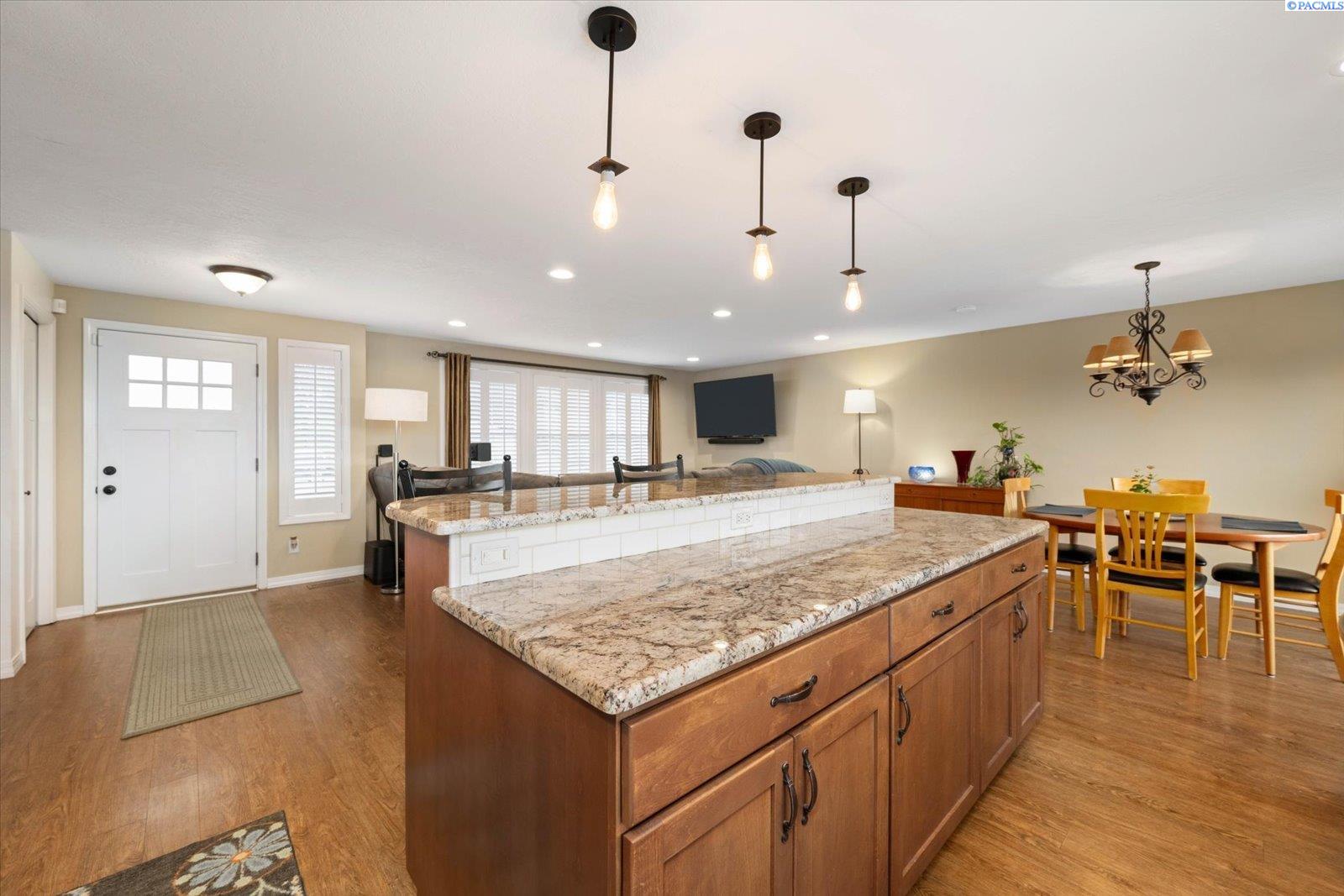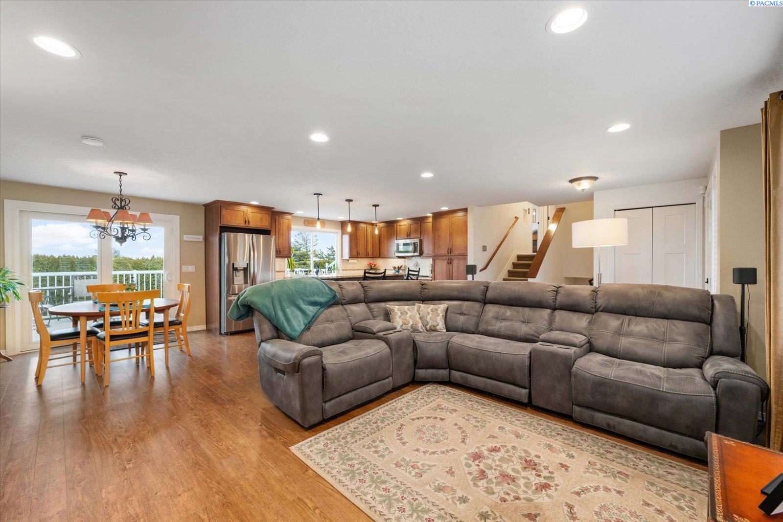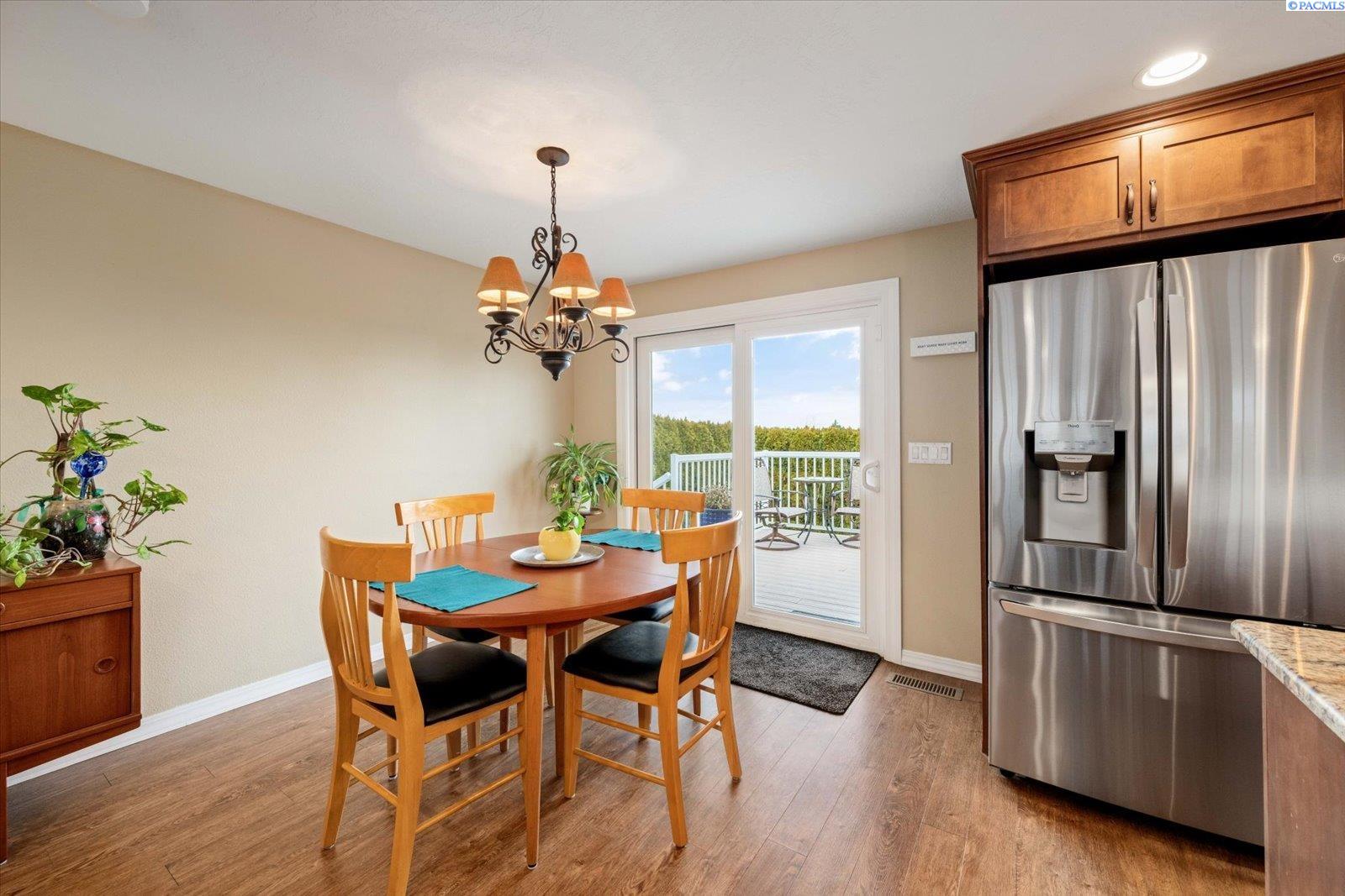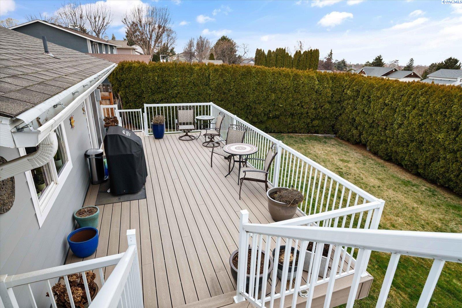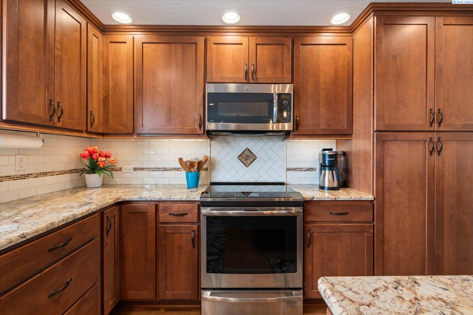 MLS# 290710 Stunning tri-level home in quiet SE Kennewick that delivers both charm and serious value. Nestled on a generous 0.31-acre lot, this beauty has been thoughtfully updated inside and out. Step inside and you'll immediately notice the warmth of rich cabinetry, gleaming granite countertops, and a spacious kitchen designed for the home chef â a premium induction range/oven for faster, more precise cooking, a breakfast bar, reverse osmosis water filtration, and a water softener. The open flow between the kitchen, dining, and living areas creates the perfect backdrop for everyday living and entertaining.When the temperatures drop, cozy up to the pellet stove in the main living room â this home knows how to keep you warm without breaking the bank. Solar panels can reduce your energy costs by up to 40%, and the extra insulation blown into the attic and crawl space plus fully serviced ductwork mean this home is as efficient as it is beautiful. Outside, the multi-level Trex decking invites you to take in the breathtaking northeast views, and after a long day, sink into the brand new hot tub and let the stress melt away. The private fire pit area sets the stage for evenings under the stars, while the new concrete driveway extends to the backyard offering spacious RV parking complete with a cleanout â a rare and valuable bonus. Raised flower beds, a dog run, extra storage building, and new Hardiboard siding round out this incredible outdoor space. Practical buyers will love the updated electrical, built-in gun safe, and the 36" wide door from the garage to the family room â a small detail that makes a big difference when moving furniture or large items. The finished basement adds even more flexible living space.