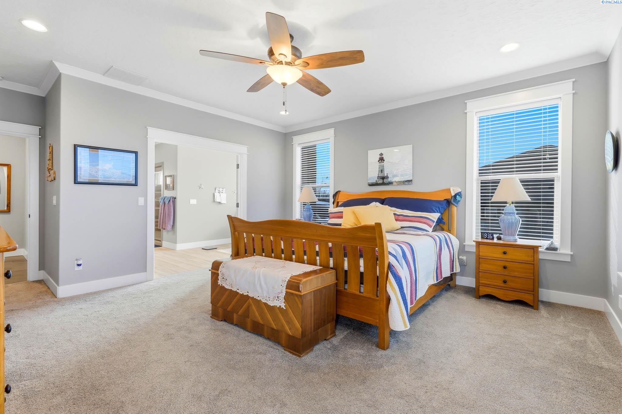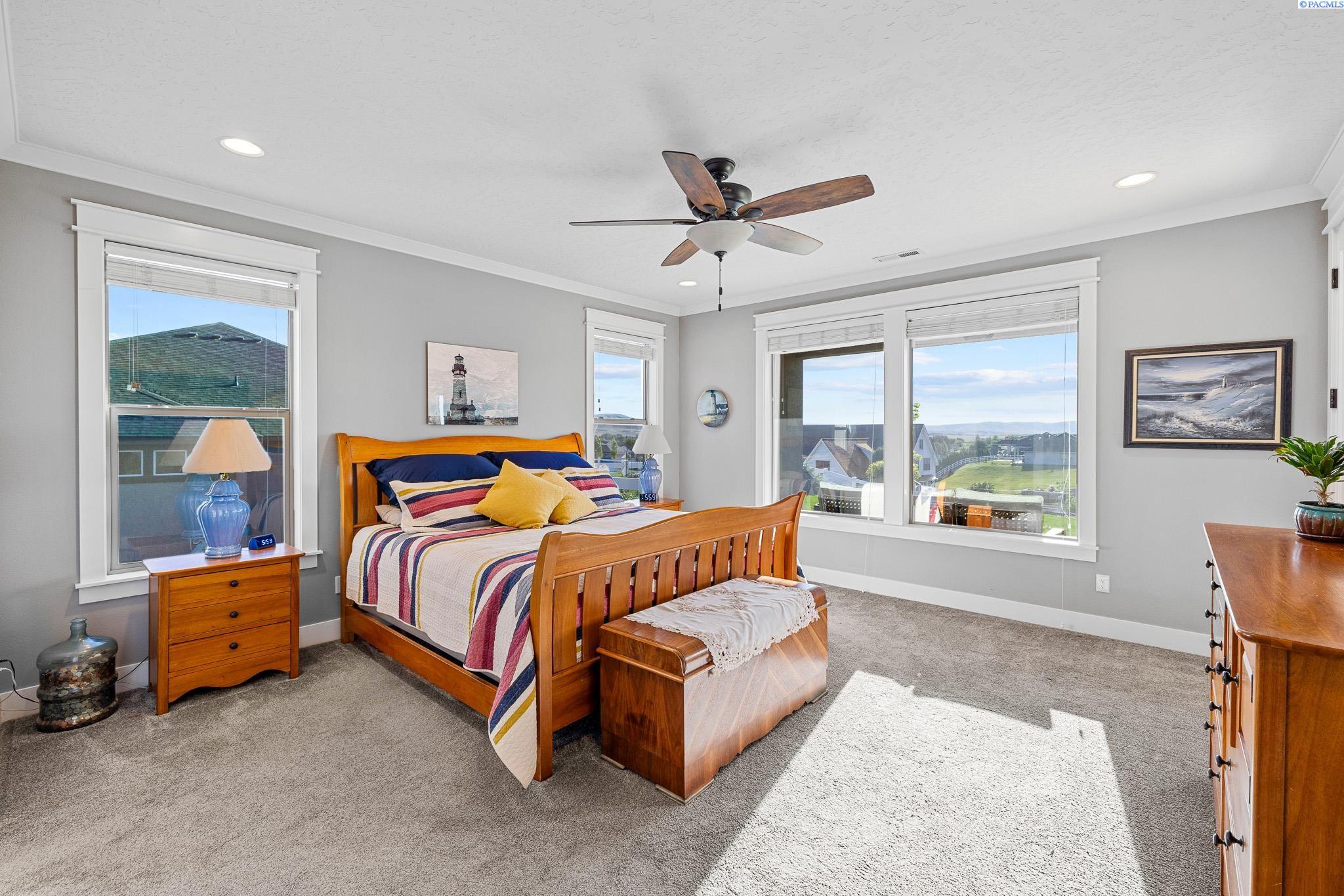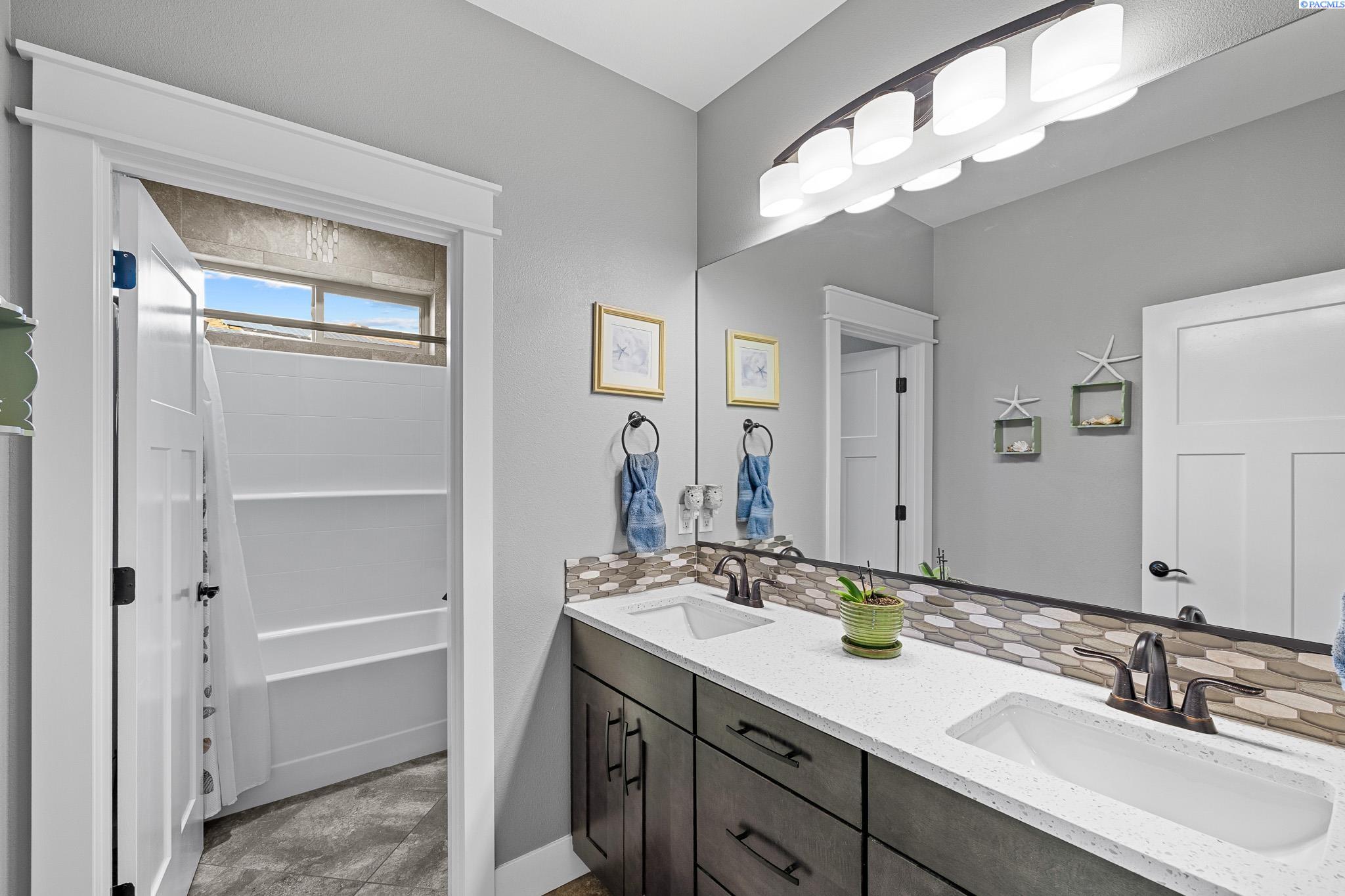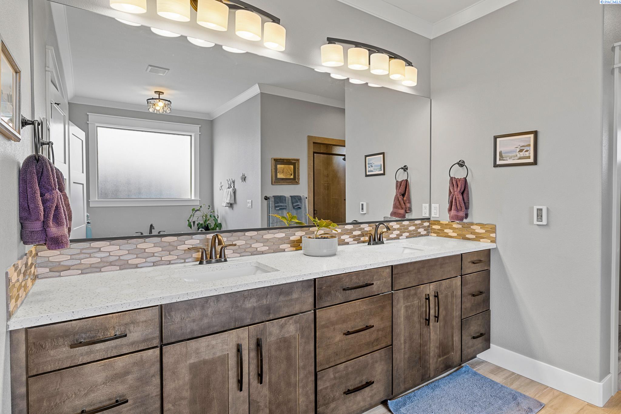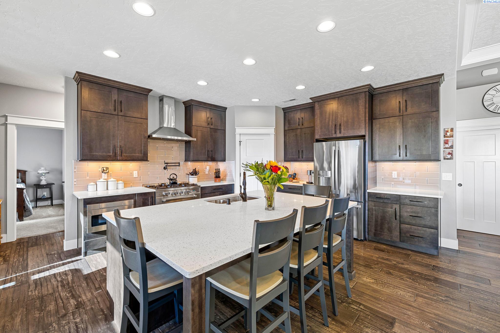 MLS#290743 | OPEN HOUSE - SATURDAY, MARCH 21 from 12-2pm! | Additional 1% Buyer Savings Available with Our Trusted Lender. Tucked away in the coveted Hidden Hills neighborhood, this custom-built 2018 home sits on a spacious .64 acre lot and boasts over 3,200 sq ft of beautifully crafted living space, including a versatile bonus retreat above the garage. The light-filled great room features soaring 12-ft coffered ceilings and an impressive floor-to-ceiling stone fireplace. Enjoy time in the thoughtfully designed kitchen, complete with a Verona dual-fuel oven and expansive island, as the sunset bathes the dining room in warm light. The primary suite offers a spa-like escape with a luxurious soaking tub, a tiled walk-in shower, and a generous closet for all your storage needs. You will enjoy stunning vineyard views from your front door, while vibrant sunset views from your back patio, creating a picturesque backdrop for your evenings. Upstairs, a private bonus suite with its own bathroom and office nook overlooks Badger Mountain Vineyard - perfect for guests, a home theater, or flexible workspace. Meticulously maintained, this home also features a 37x39 finished garage with 10-ft doors, an expansive covered back patio, and a fully fenced backyard that completes this exceptional property.