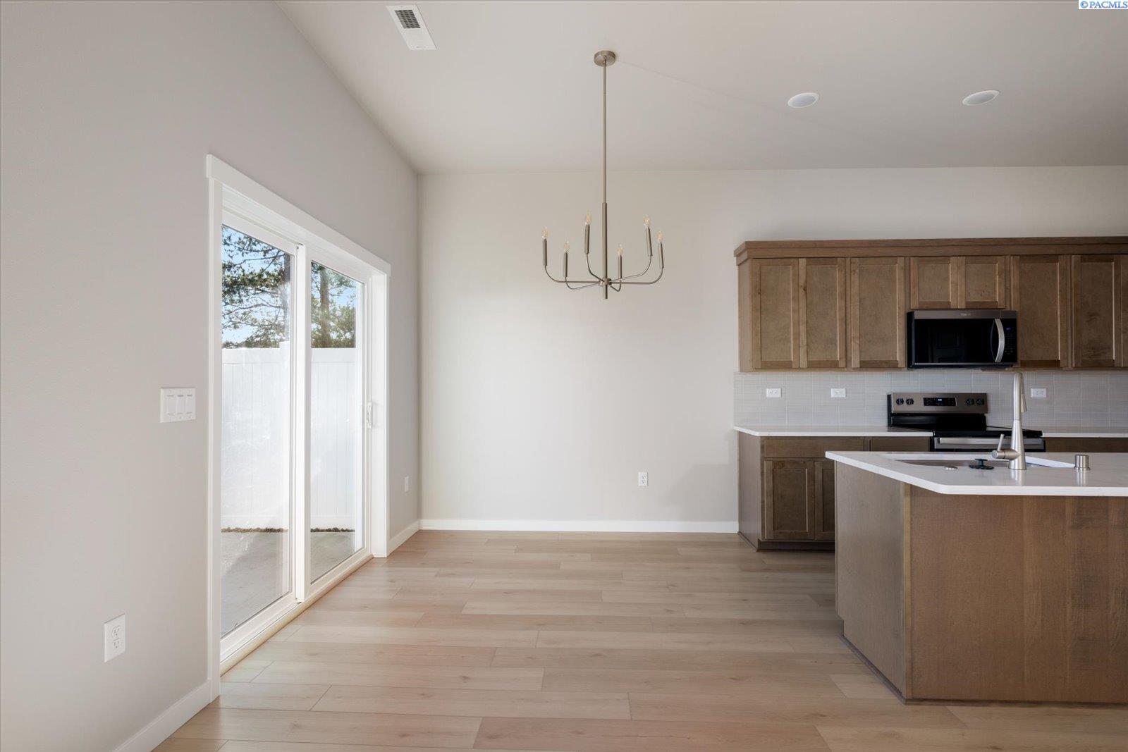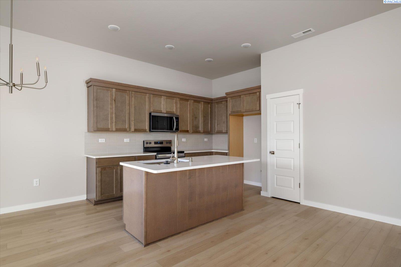 Welcome to the Cascara II by Peake Homes, a brand-new, just-completed single-family residence in the established Canyon Ranch community. This exceptional 3-bedroom, 2-bathroom home delivers 1,499 square feet of thoughtfully designed living space, complete with a spacious 3-car garage and walk-in closets in every bedroom. Peake Homes, a highly reputable local builder known for their integrity, superior craftsmanship, and dedication to quality communities, has crafted this standout property. In the mature Canyon Ranch neighborhood, where homeowners savor peaceful surroundings and natural beauty, you can now enjoy the best of both worlds: the charm of an established setting combined with the fresh appeal of new construction and all the modern upgrades included. The open-concept layout flows seamlessly from the kitchen to the dining and living areas, filling the home with light, brightness, and an inviting atmosphere perfect for relaxed living or effortless entertaining. The kitchen shines as the heart of the home, boasting premium stainless steel Whirlpool appliances, elegant finishes, and abundant workspace ideal for family meals and gatherings. Step outside to your private backyard: a large, fully landscaped and fully fenced space where you can unwind under the covered patio, host friends and family, or simply enjoy the outdoors with plenty of room to breathe. A pre-installed EV charging circuit adds everyday convenience right from move-in. Perfectly positioned with quick freeway access, this home places you minutes from top shopping, parks, schools, and all the Tri-Cities has to offer. This rare gem checks every box! Up to $10,000 in buyer incentives available, call your favorite Realtor today and see it for yourself!