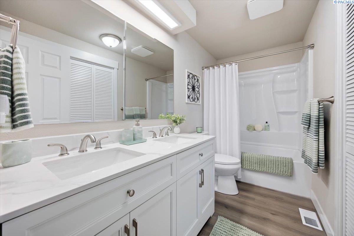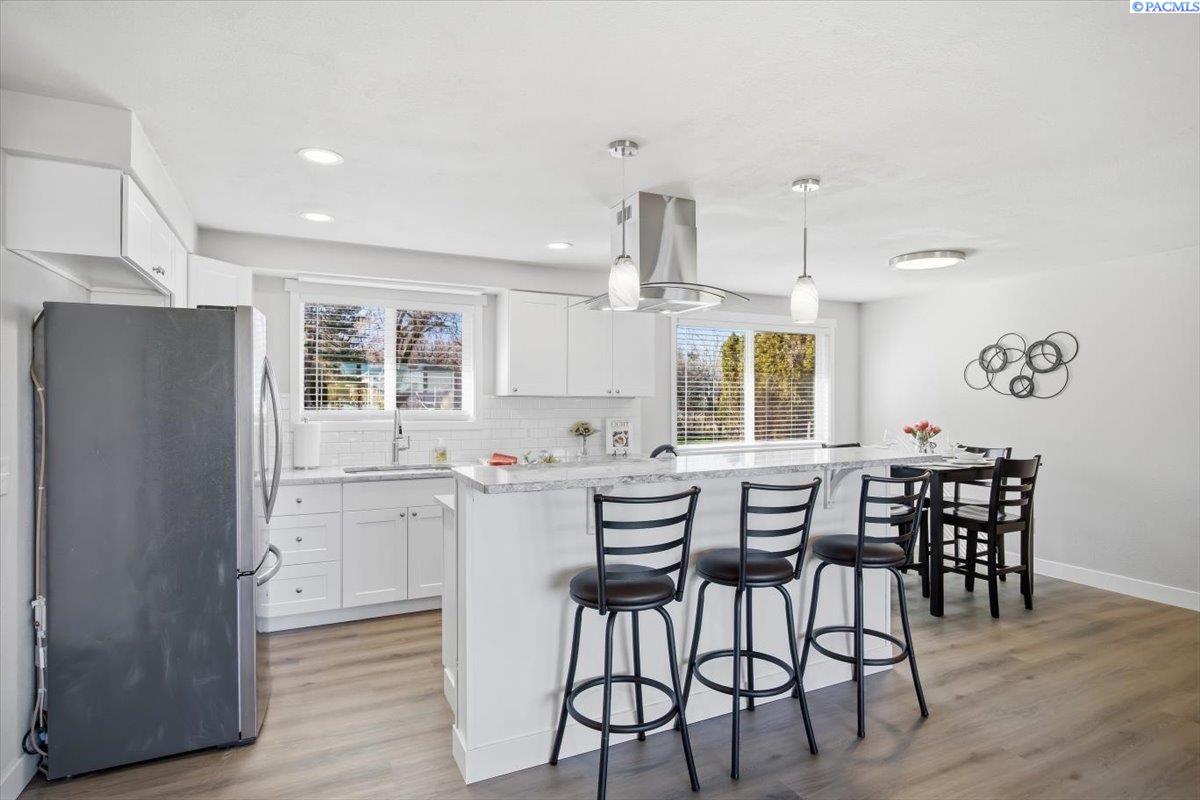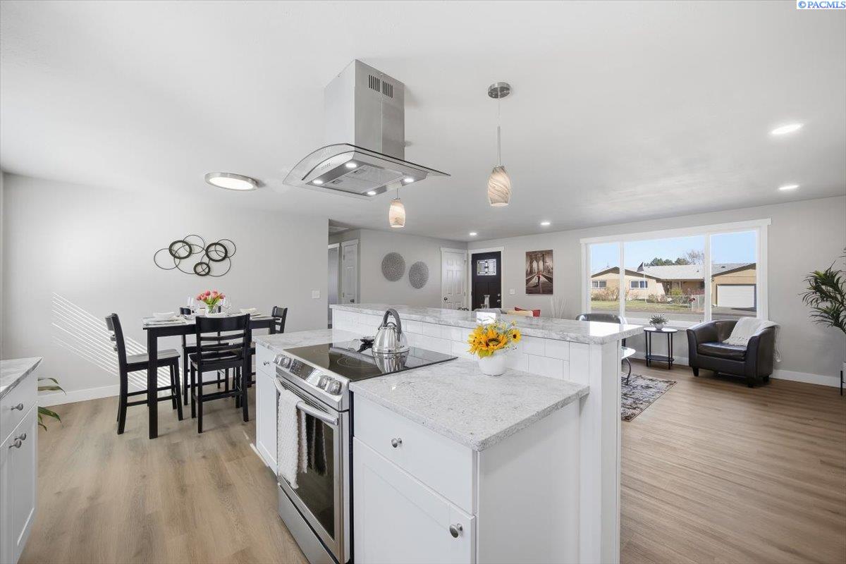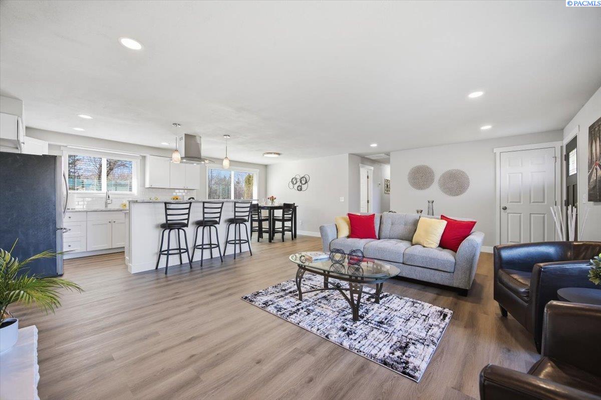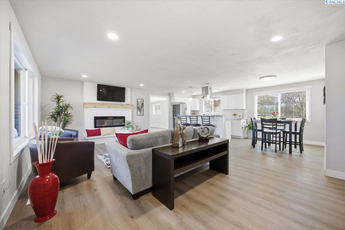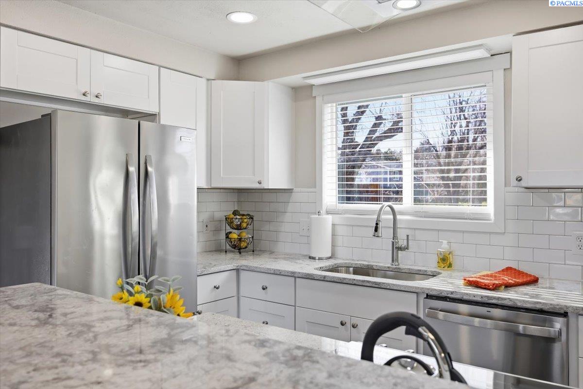Located on a quiet street near Elliott Lake in Kennewick, this fully remodeled single-story home offers 3 bedrooms, 2 bathrooms, and a well-designed floor plan featuring both a living room and a separate family room. Renovated throughout, the home showcases new flooring, fresh interior and exterior paint, and completely remodeled bathrooms with updated fixtures and modern finishes. The kitchen has been beautifully updated with brand-new appliances, granite countertops creating a clean, modern space ready for everyday living. Major system upgrades provide peace of mind, including a new HVAC system, and new water heater. Outside, youâll find new underground sprinklers, fresh landscaping, and open RV parking with plenty of space for all your extra toys. With a two-car garage and quality updates in every room, this home is truly turnkey and move-in ready. MLS#290795