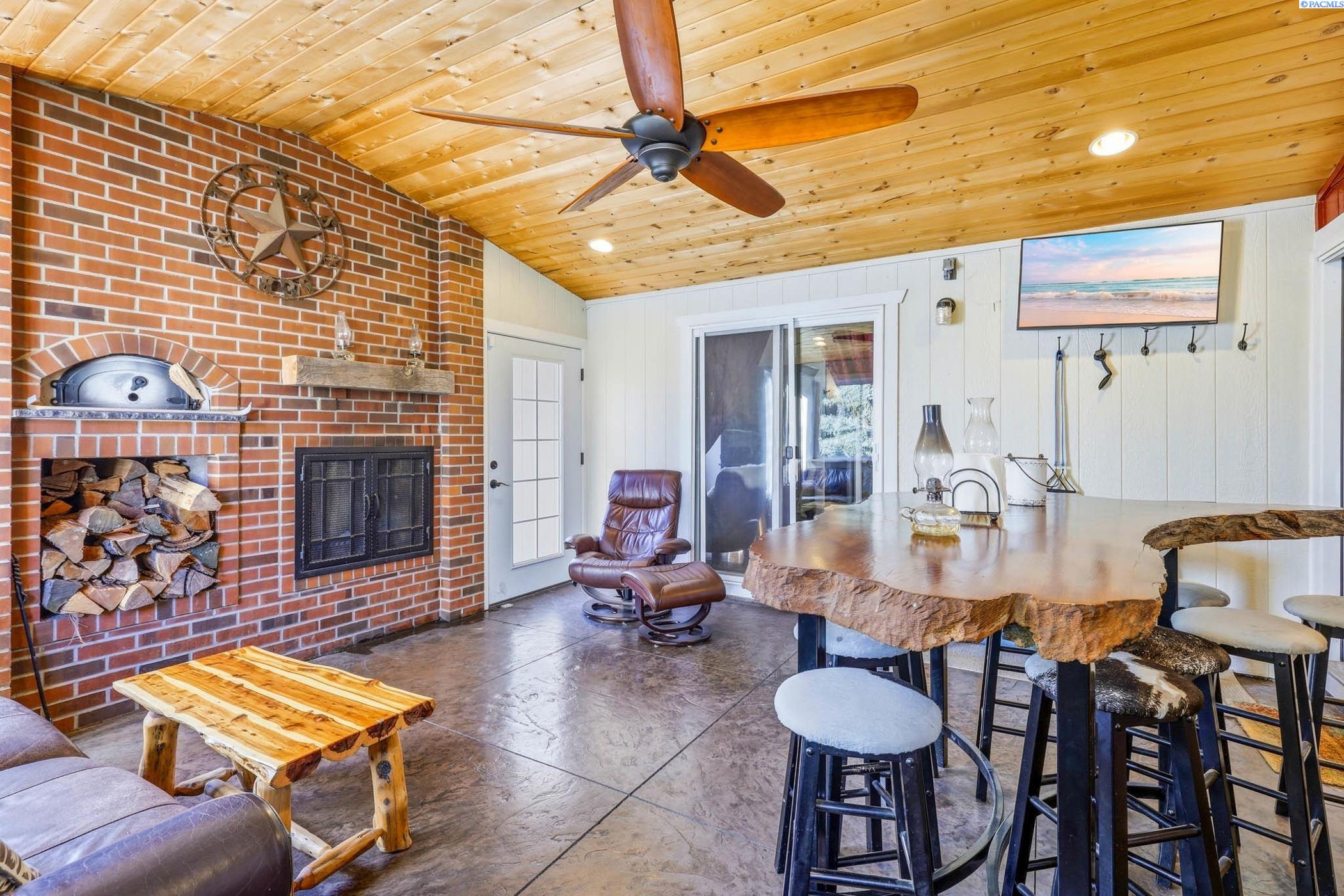 Welcome to 4731 Holly Way - a thoughtfully crafted 3-bedroom, 3-bath residence offering 2,120 sq ft on beautifully designed living space, including a 500 sq ft enclosed, insulated, and heated patio room for seamless year-round enjoyment, ideal for Multigenerational living. Two of the three bedrooms feature private ensuite baths, creating ideal comfort for guests or multigenerational living. The primary suite offers a cozy propane fireplace and a custom tile shower. At the same time, an additional bath showcases a custom granite shower, and the third preserves its classic tub/shower combination. Hardwood floors flow throughout the home, complemented by vaulted ceilings, recessed lighting, ceiling fans, and timeless wooden shutters. The inviting patio/den features a custom brick wood-burning fireplace and a custom Chicago brick wood-fired pizza oven - a warm and distinctive gathering space. The kitchen is a true centerpiece, designed for both everyday living and entertaining. Quartzite countertops, custom painted cabinetry with soft-close drawers and built-in cutting boards, a six-burner propane cooktop with pot filler, farmhouse sink plus prep sink, French door electric oven, microwave drawer, plumbed Miele built-in coffee system with warming drawer, cabinet-integrated dishwasher and drawer, counter-depth French door refrigerator/freezer, and two garbage disposals create a refined culinary experience. Additional highlights include a whole-demand Rinnai propane hot water, water softener, and updated HVAC system.