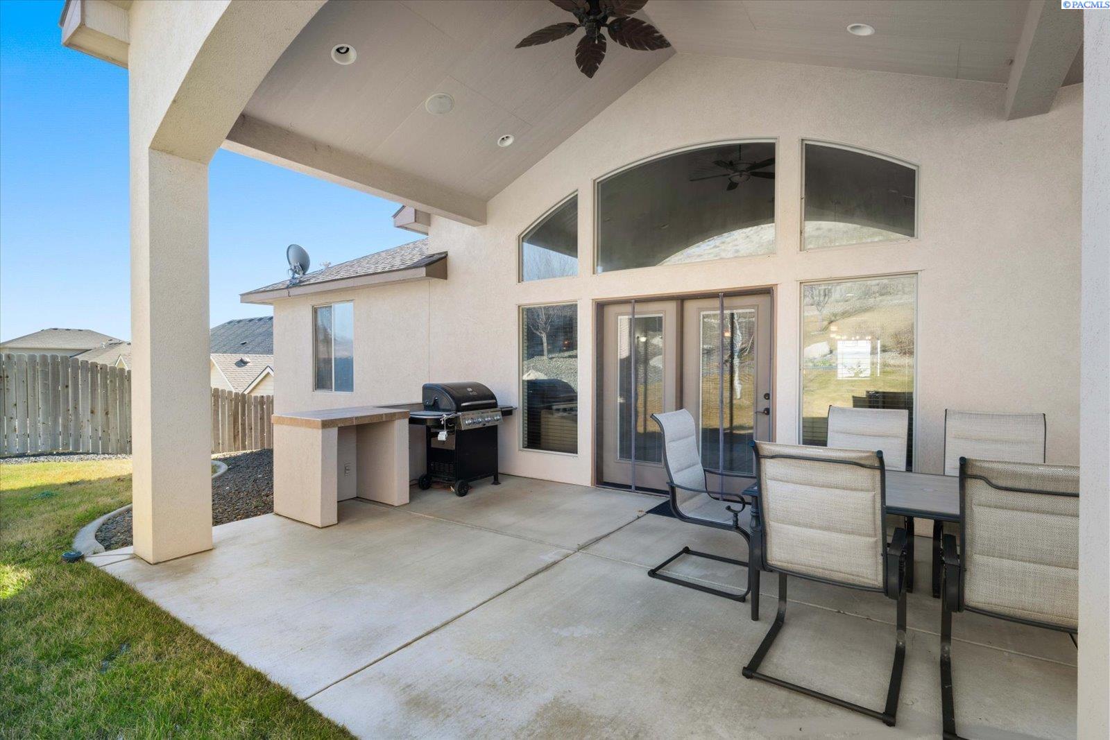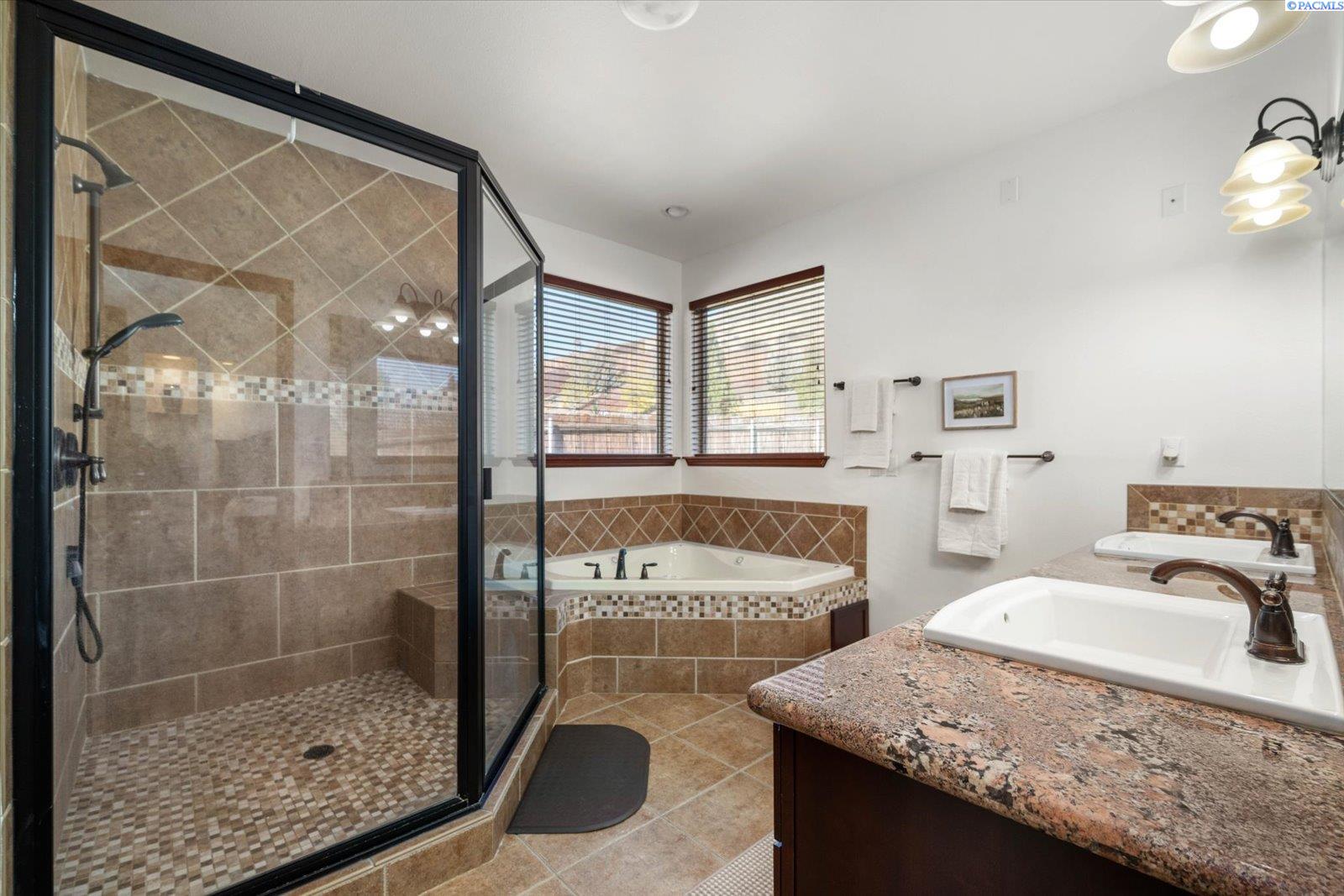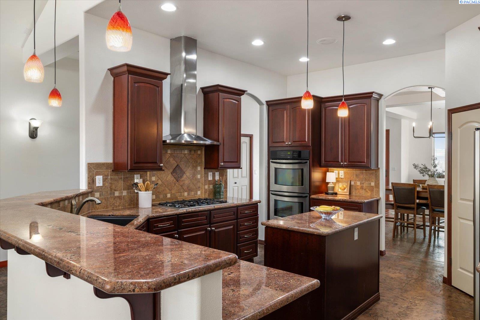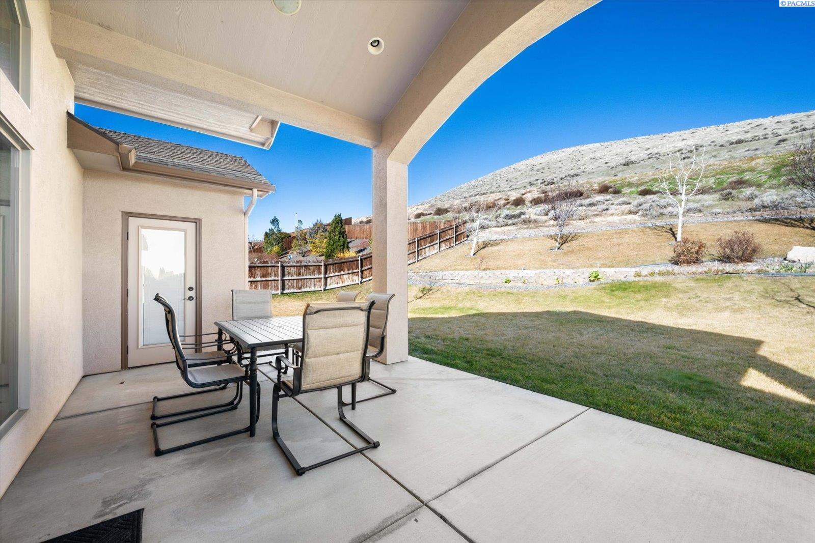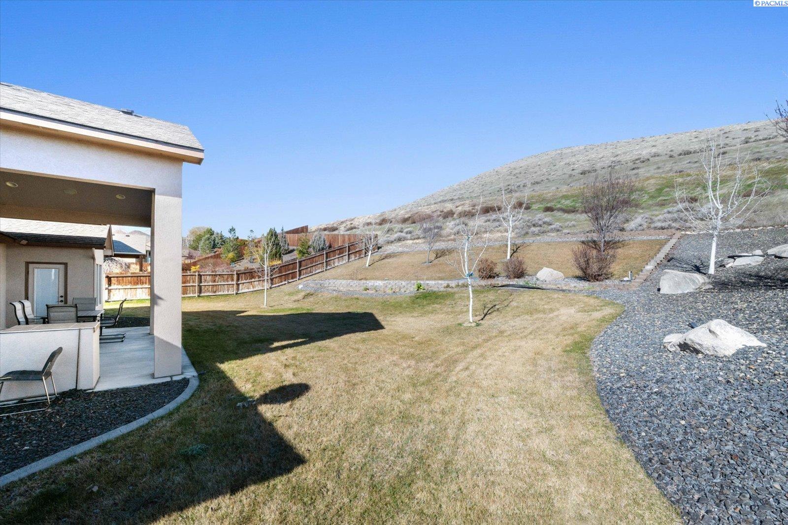 MLS# 290803 Set at the end of a quiet cul-de-sac in Willowbrook Heights, this 5-bedroom Richland home offers the kind of space and privacy thatâs increasingly hard to findâjust minutes from everyday conveniences.Positioned on a .43-acre elevated lot, the property captures sweeping views toward the Horse Heaven Hills while maintaining a sense of separation from neighboring homes. If youâve been searching for room to spread out without sacrificing proximity to shopping, dining, and commuter routes, this layout delivers both.Vaulted ceilings and an open-concept design connect the main living areas, creating natural flow for gatherings or quiet evenings at home. Expansive windows fill the space with natural light and beautifully frame the terraced backyard. The kitchen is designed for both function and flexibility, featuring granite countertops, a large island, stainless steel appliances, double convection ovens, and a generous walk-in pantry. Built-in speakers throughout the home add an elevated touch, creating a seamless audio experience whether youâre entertaining guests or enjoying a relaxing night in.The primary suite offers direct patio access and a spacious bath with dual sinks, a jetted tub, walk-in shower, and ample closet storage. A flexible bedroom configuration includes a Jack-and-Jill bath, private guest space potential, and a front office that can easily serve as a fifth bedroom depending on your needs.Outdoors, the landscaped yard, covered patio with built-in speakers, and oversized finished 3-car garage provide additional versatilityâwhether for hobbies, storage, or entertaining.Located in Richland with convenient access to parks, retail, dining, and major routes throughout the Tri-Cities, this home combines views, square footage, and functionality in one cohesive package.