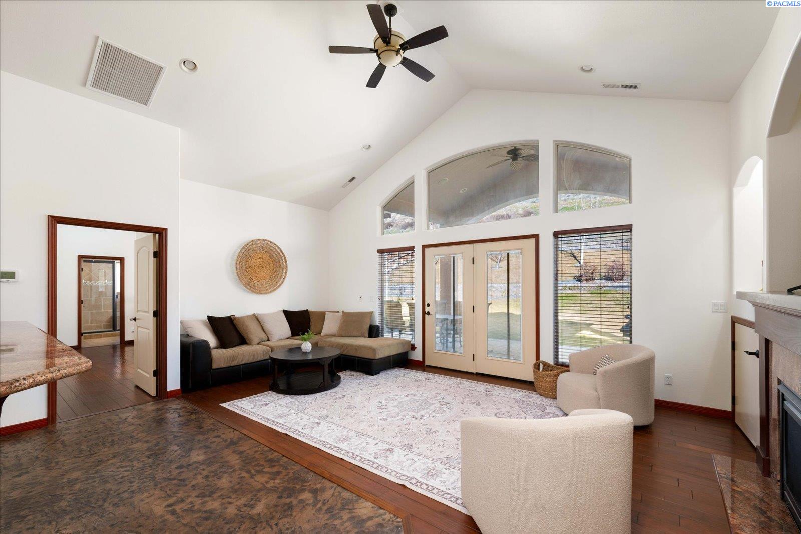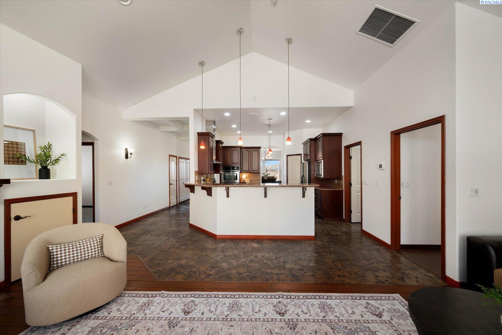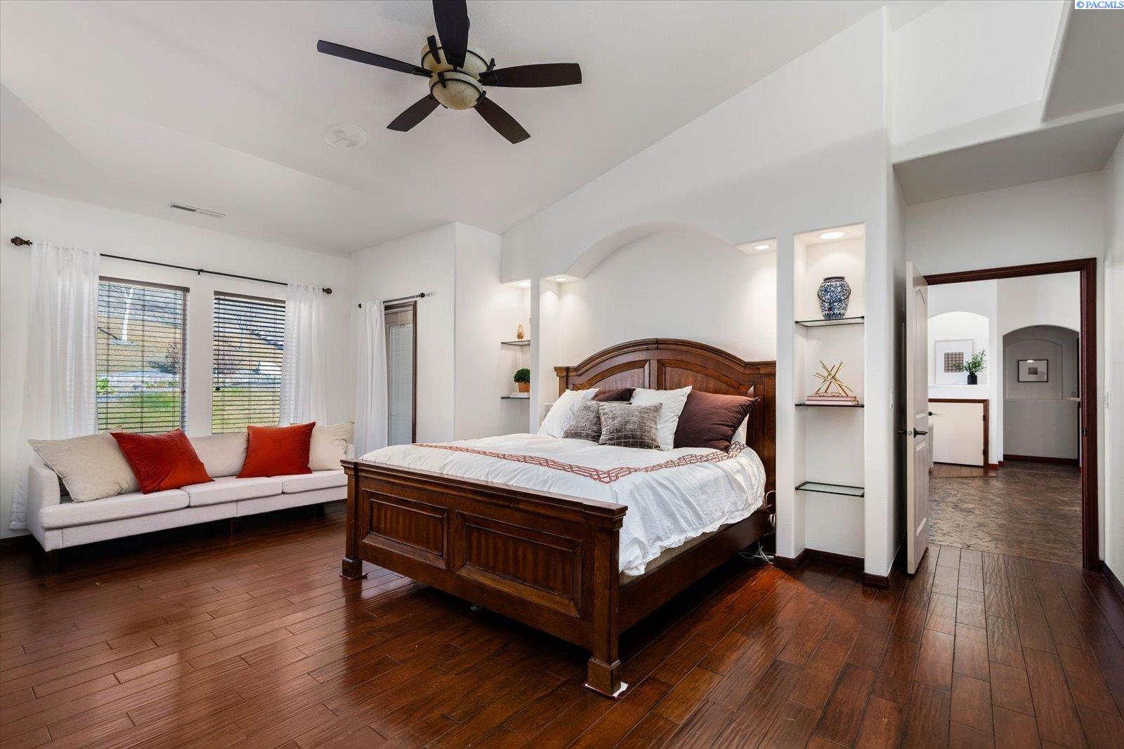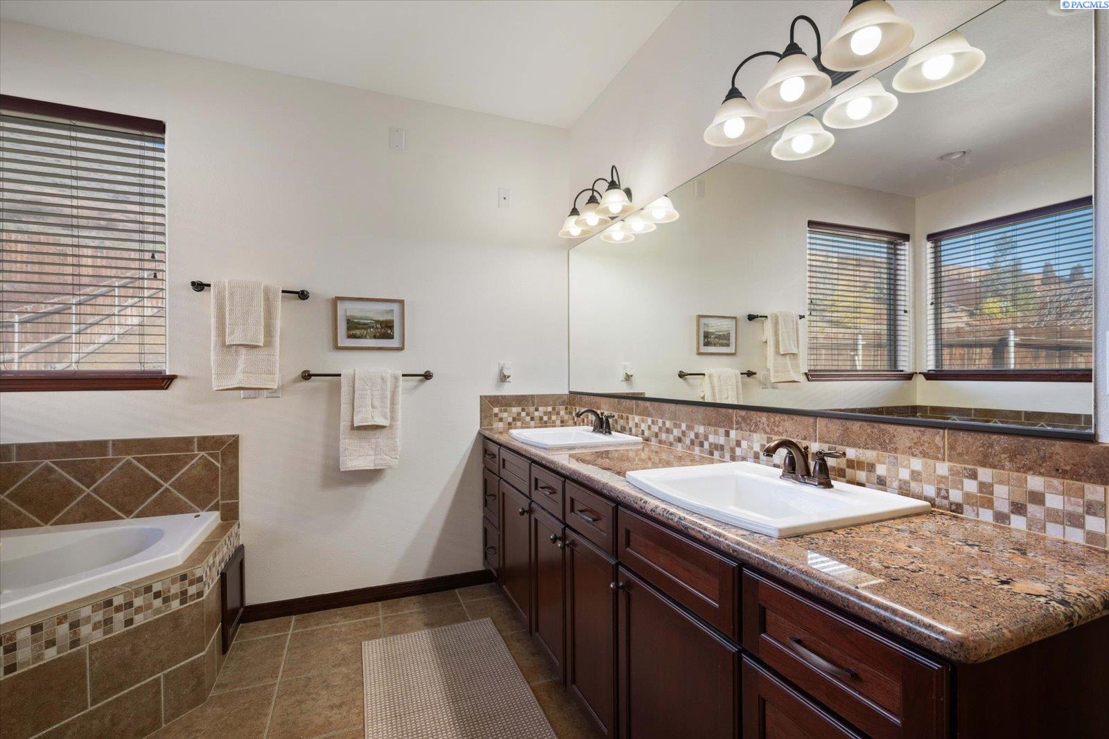 MLS# 290803 Set at the end of a quiet cul-de-sac in Willowbrook Heights, this 5-bedroom Richland home offers the kind of space and privacy thatâs increasingly hard to findâjust minutes from everyday conveniences.Positioned on a .43-acre elevated lot, the property captures sweeping views toward the Horse Heaven Hills while maintaining a sense of separation from neighboring homes. If youâve been searching for room to spread out without sacrificing proximity to shopping, dining, and commuter routes, this layout delivers both.Vaulted ceilings and an open-concept design connect the main living areas, creating natural flow for gatherings or quiet evenings at home. Expansive windows fill the space with natural light and beautifully frame the terraced backyard. The kitchen is designed for both function and flexibility, featuring granite countertops, a large island, stainless steel appliances, double convection ovens, and a generous walk-in pantry. Built-in speakers throughout the home add an elevated touch, creating a seamless audio experience whether youâre entertaining guests or enjoying a relaxing night in.The primary suite offers direct patio access and a spacious bath with dual sinks, a jetted tub, walk-in shower, and ample closet storage. A flexible bedroom configuration includes a Jack-and-Jill bath, private guest space potential, and a front office that can easily serve as a fifth bedroom depending on your needs.Outdoors, the landscaped yard, covered patio with built-in speakers, and oversized finished 3-car garage provide additional versatilityâwhether for hobbies, storage, or entertaining.Located in Richland with convenient access to parks, retail, dining, and major routes throughout the Tri-Cities, this home combines views, square footage, and functionality in one cohesive package.