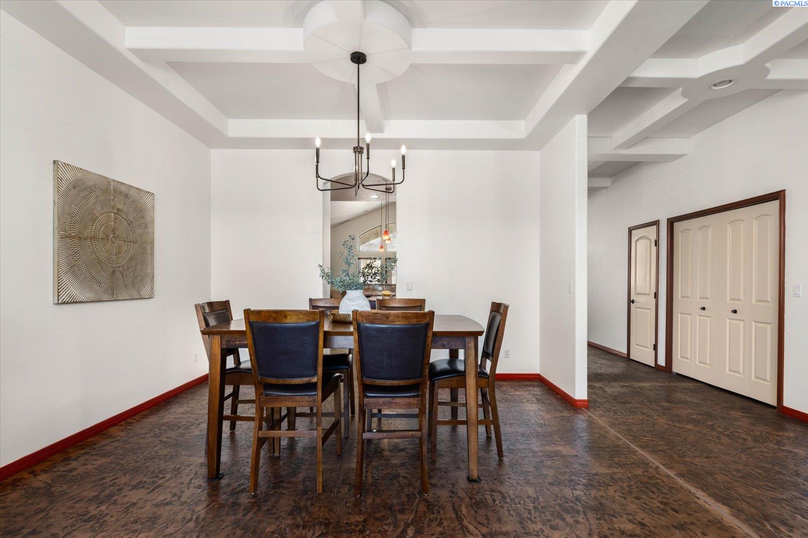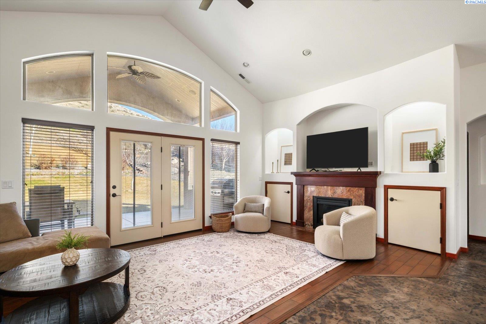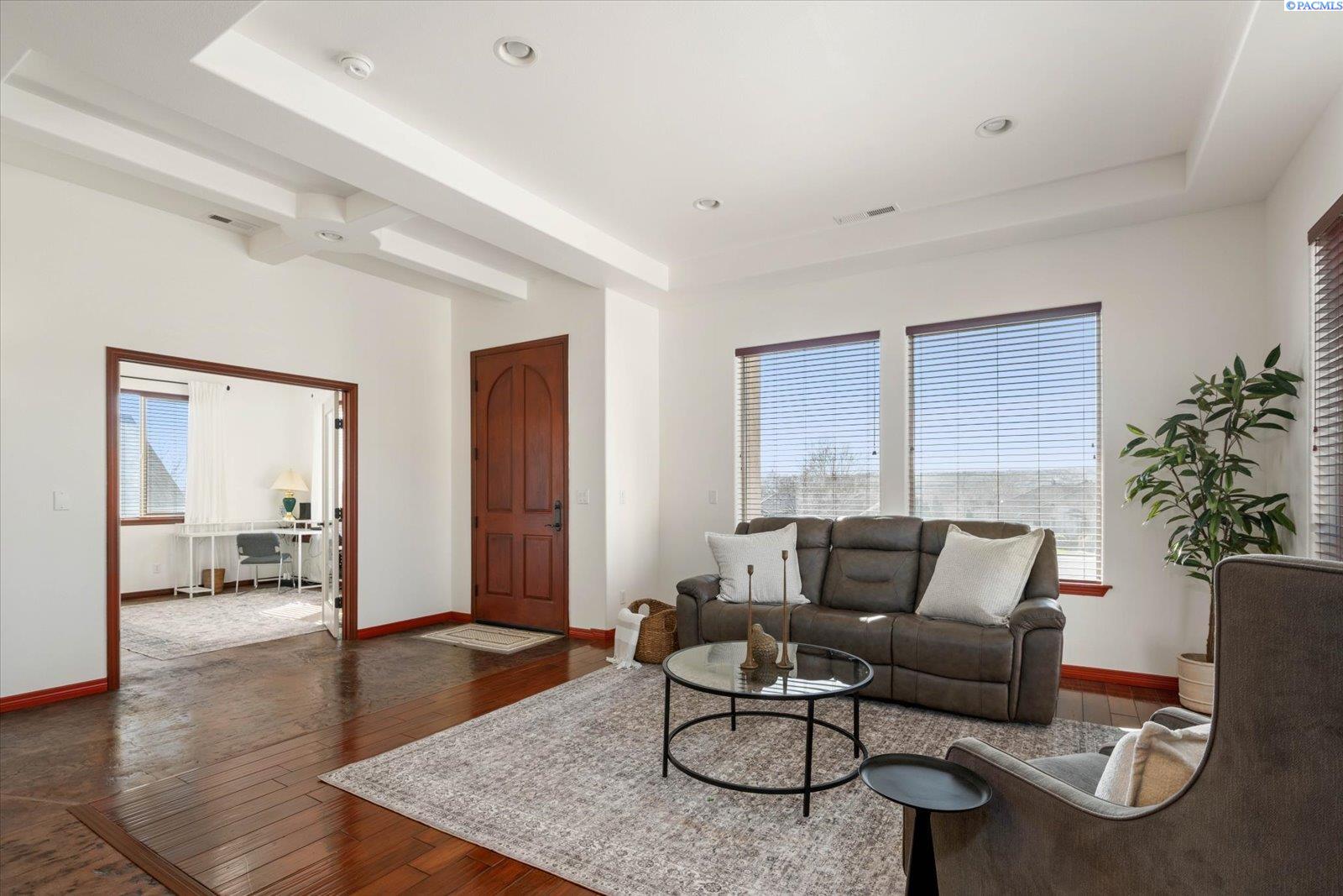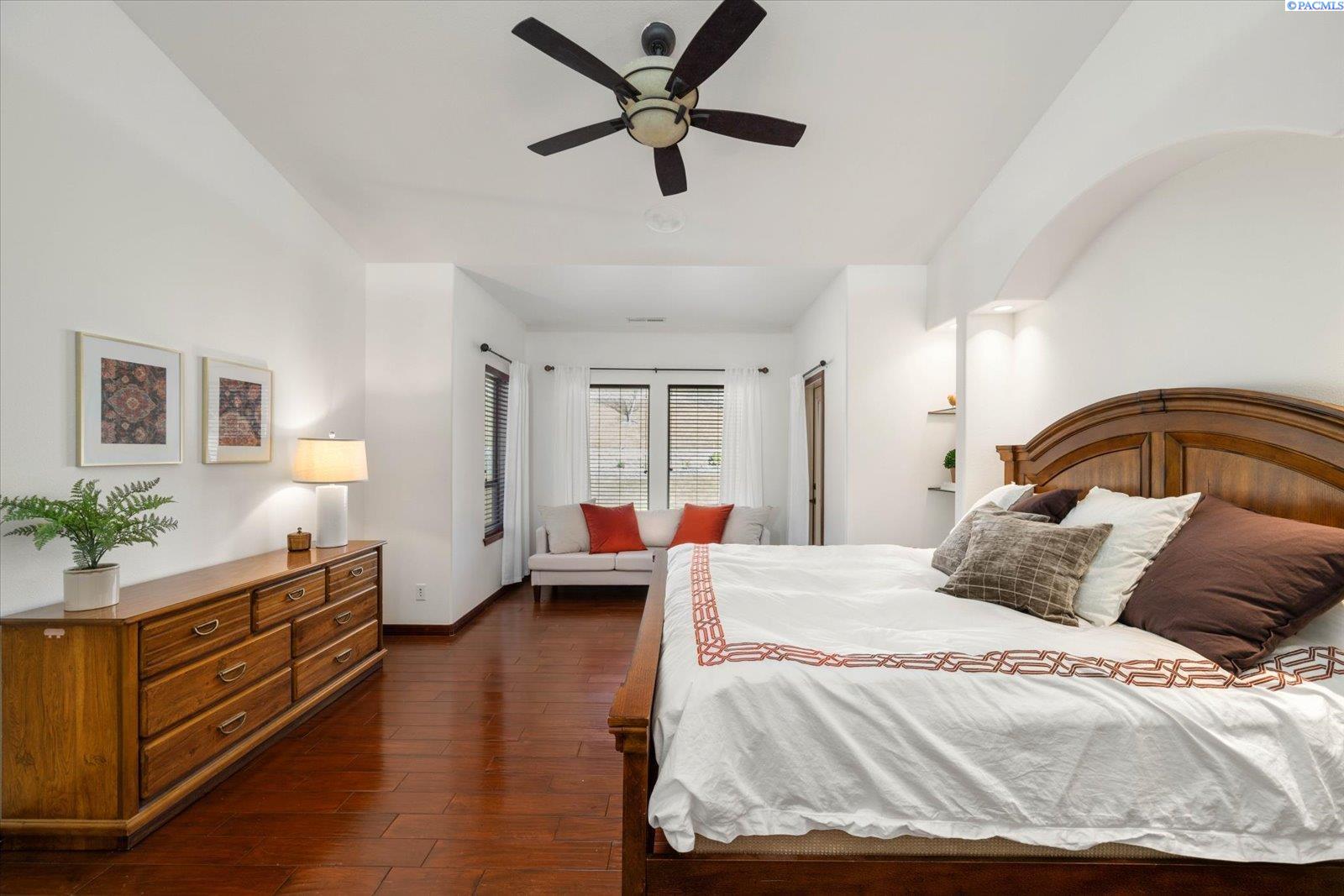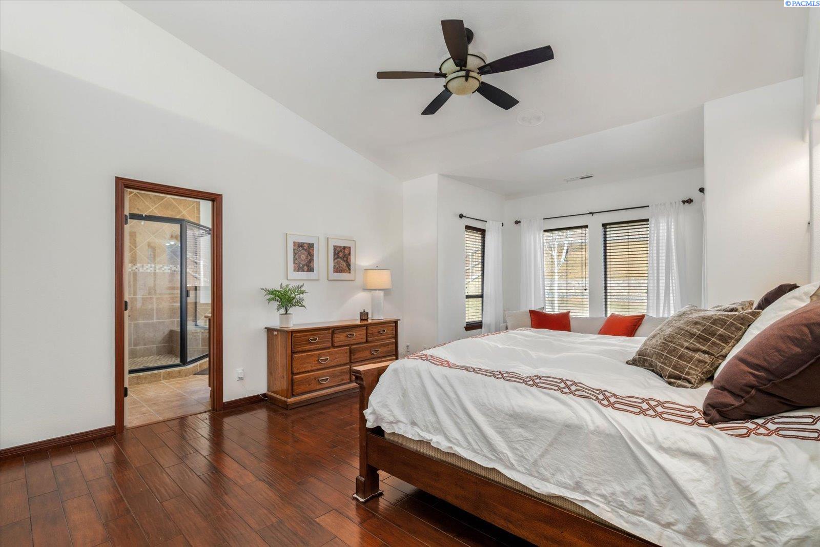 MLS# 290803 Set at the end of a quiet cul-de-sac in Willowbrook Heights, this 5-bedroom Richland home offers the kind of space and privacy thatâs increasingly hard to findâjust minutes from everyday conveniences.Positioned on a .43-acre elevated lot, the property captures sweeping views toward the Horse Heaven Hills while maintaining a sense of separation from neighboring homes. If youâve been searching for room to spread out without sacrificing proximity to shopping, dining, and commuter routes, this layout delivers both.Vaulted ceilings and an open-concept design connect the main living areas, creating natural flow for gatherings or quiet evenings at home. Expansive windows fill the space with natural light and beautifully frame the terraced backyard. The kitchen is designed for both function and flexibility, featuring granite countertops, a large island, stainless steel appliances, double convection ovens, and a generous walk-in pantry. Built-in speakers throughout the home add an elevated touch, creating a seamless audio experience whether youâre entertaining guests or enjoying a relaxing night in.The primary suite offers direct patio access and a spacious bath with dual sinks, a jetted tub, walk-in shower, and ample closet storage. A flexible bedroom configuration includes a Jack-and-Jill bath, private guest space potential, and a front office that can easily serve as a fifth bedroom depending on your needs.Outdoors, the landscaped yard, covered patio with built-in speakers, and oversized finished 3-car garage provide additional versatilityâwhether for hobbies, storage, or entertaining.Located in Richland with convenient access to parks, retail, dining, and major routes throughout the Tri-Cities, this home combines views, square footage, and functionality in one cohesive package.