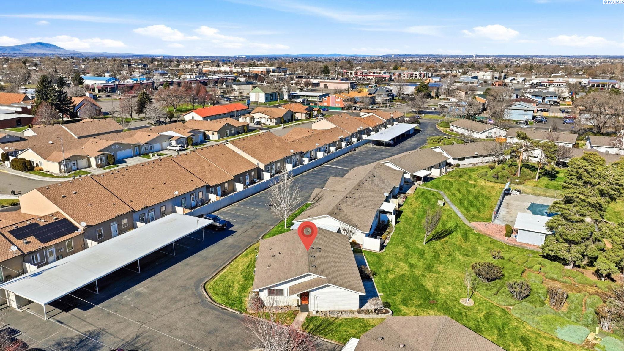 MLS# 290804 Welcome to an easy-care option for buyers who want condo living in a convenient location. Step inside and you'll notice how the remodeled kitchen anchors the home. Butcher block countertops pair with a tile backsplash, added cabinetry, updated pulls and light fixtures, and newer appliances creating a space that's ready for weeknight meals or weekend hosting. The living room feels open and comfortable, with a large window that brings in natural light. Outside, enjoy a private patio bordered by a rose bush hedge ideal for morning coffee or a small container garden. When you want to cool off, the community pool is close by and easy to enjoy in the warmer months. A combined washer/dryer unit is included, adding everyday convenience. New HVAC in 2025. This home is a strong fit for first-time buyers, downsizers, or a couple looking for a simple layout and a central Kennewick location near churches, stores, hospitals, and schools. Neighbors are known to be friendly, and the community setting offers a connected feeling.