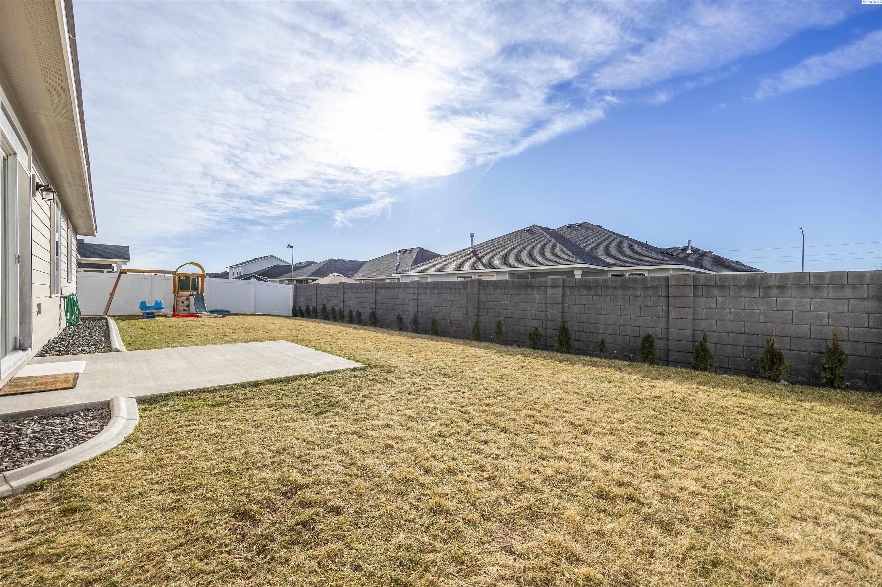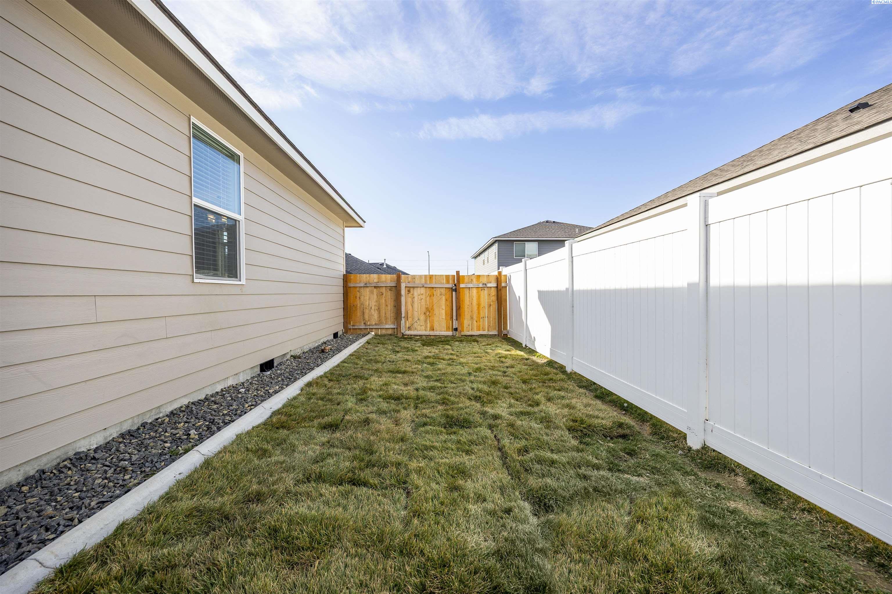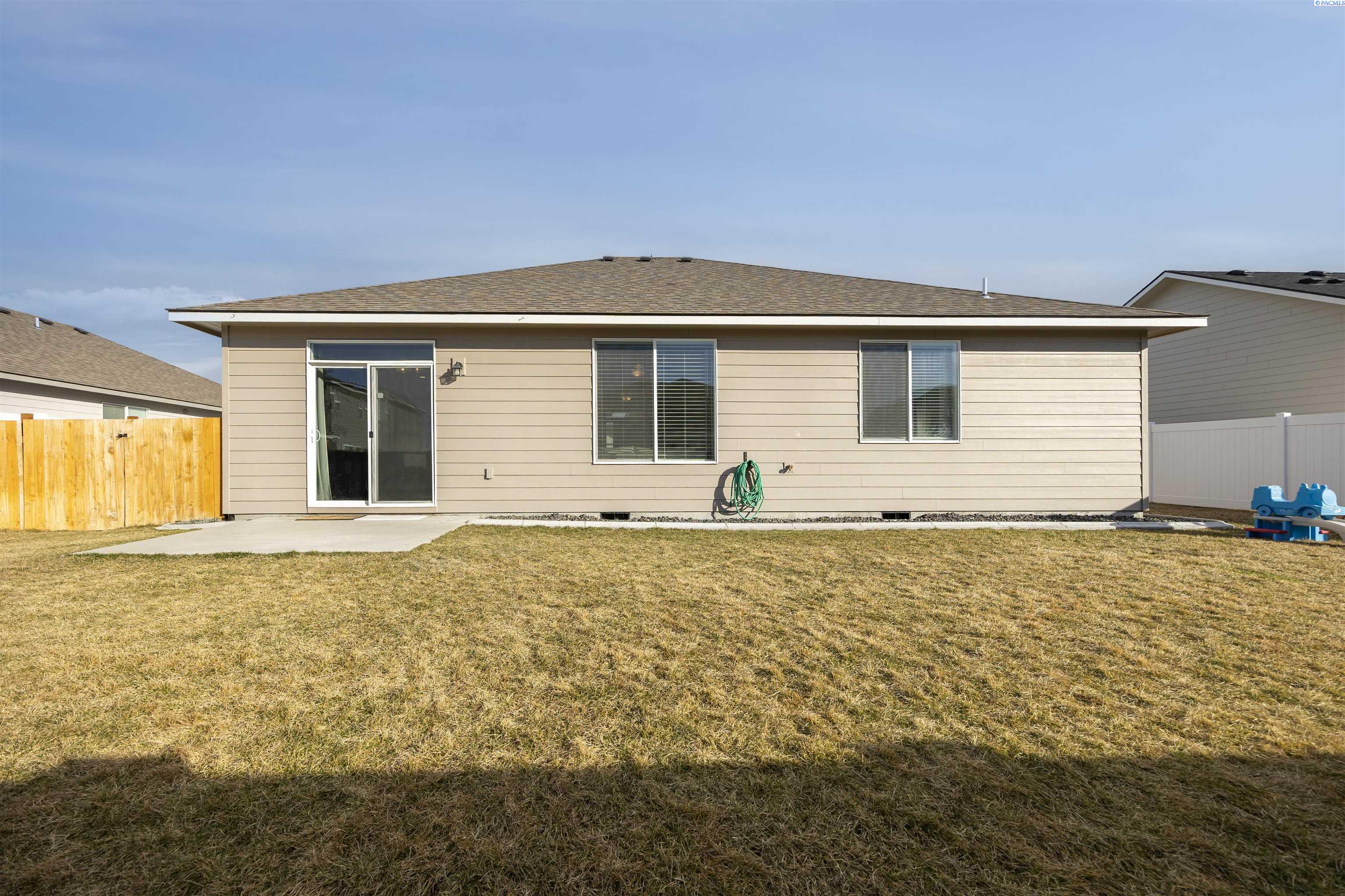 MLS# 290813 Welcome to this gorgeous 2023 Landmark-built home located in the Seven Sisters neighborhood just off Burns Road, one of Pasco's most sought-after areas. This home features 1499 sf of living space, 3 spacious bedrooms, a dedicated office, and 2 full bathrooms. The open-concept layout is filled with natural light from large windows throughout and offers a highly functional design with timeless features. The kitchen showcases quartz countertops, a spacious island perfect for gathering, soft-close cabinet doors and drawers, and stainless steel appliances. Blinds, drapes, and curtains are all included. The fully fenced backyard features a dedicated dog run along the side yard, which is also fully fenced. Conveniently located near top-rated schools, shopping, dining, and quick freeway access, this home is truly better than new and completely move-in ready.