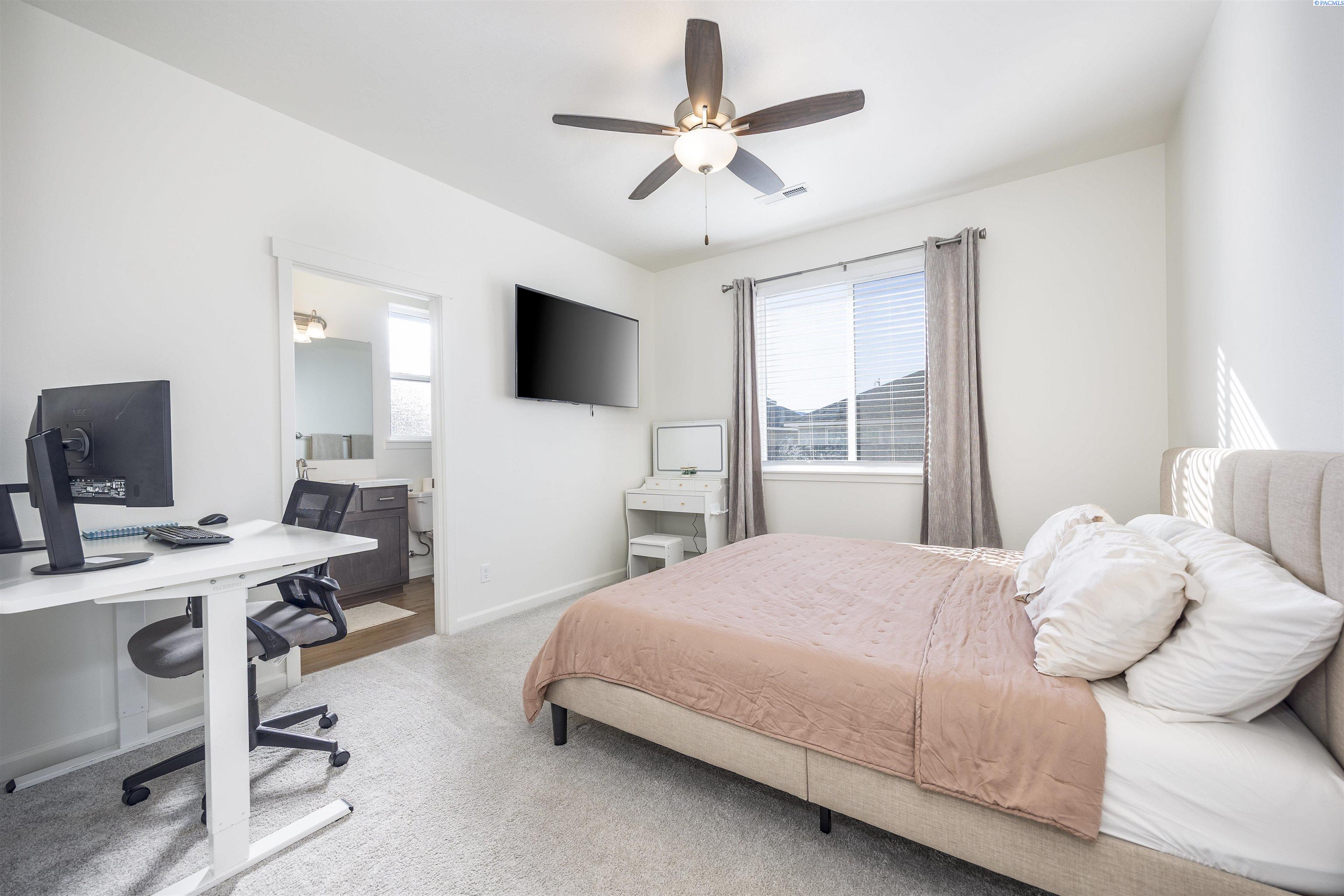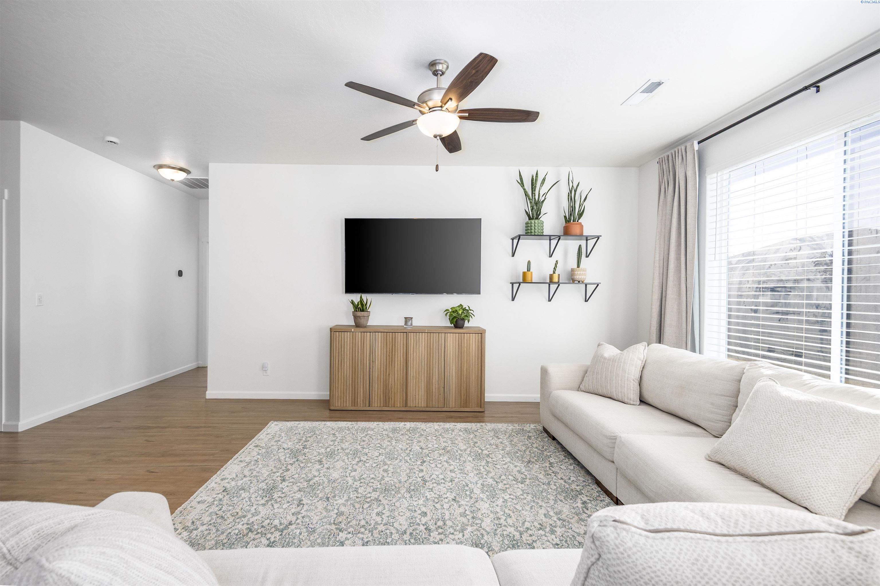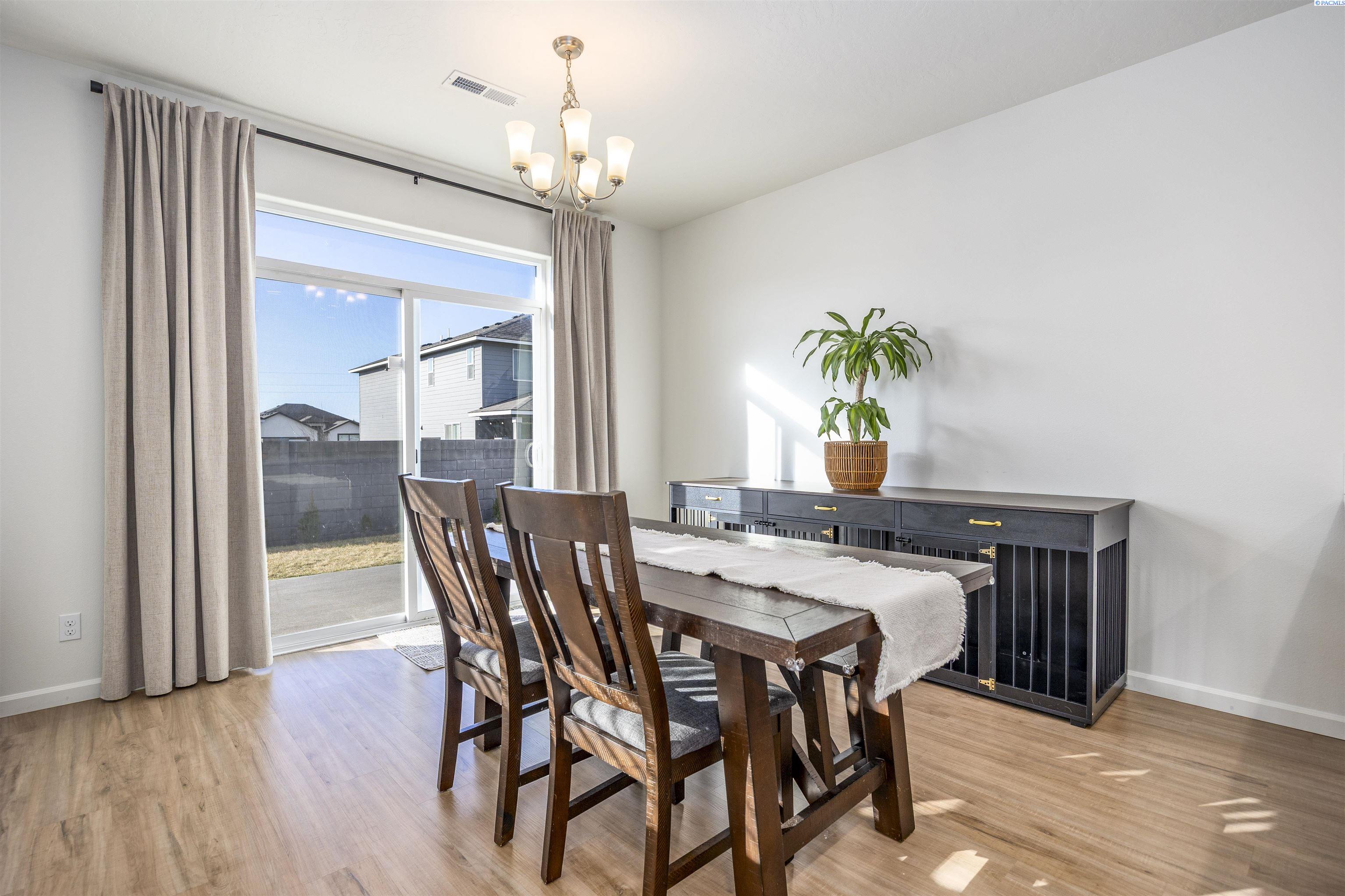 MLS# 290813 Welcome to this gorgeous 2023 Landmark-built home located in the Seven Sisters neighborhood just off Burns Road, one of Pasco's most sought-after areas. This home features 1499 sf of living space, 3 spacious bedrooms, a dedicated office, and 2 full bathrooms. The open-concept layout is filled with natural light from large windows throughout and offers a highly functional design with timeless features. The kitchen showcases quartz countertops, a spacious island perfect for gathering, soft-close cabinet doors and drawers, and stainless steel appliances. Blinds, drapes, and curtains are all included. The fully fenced backyard features a dedicated dog run along the side yard, which is also fully fenced. Conveniently located near top-rated schools, shopping, dining, and quick freeway access, this home is truly better than new and completely move-in ready.