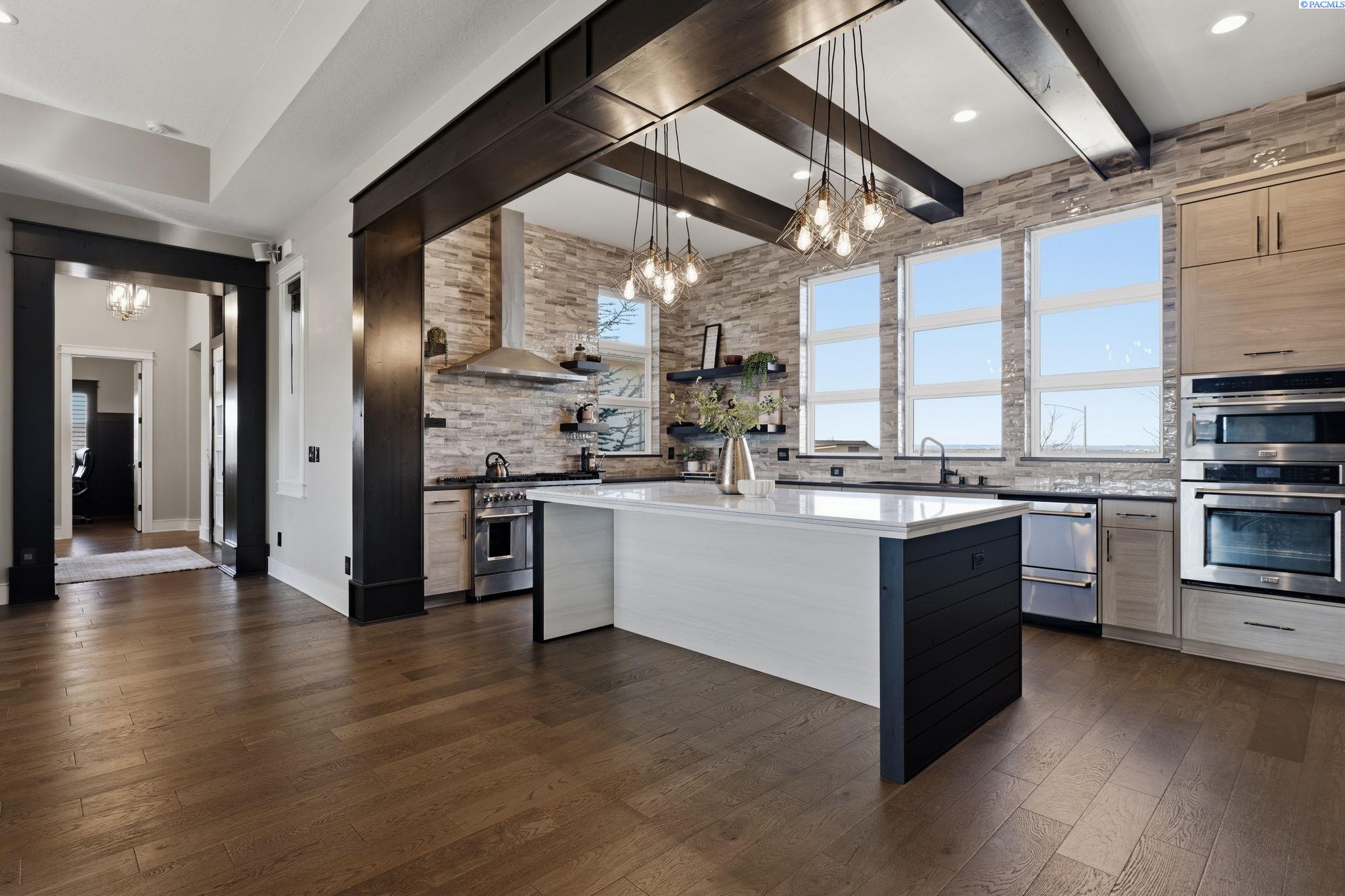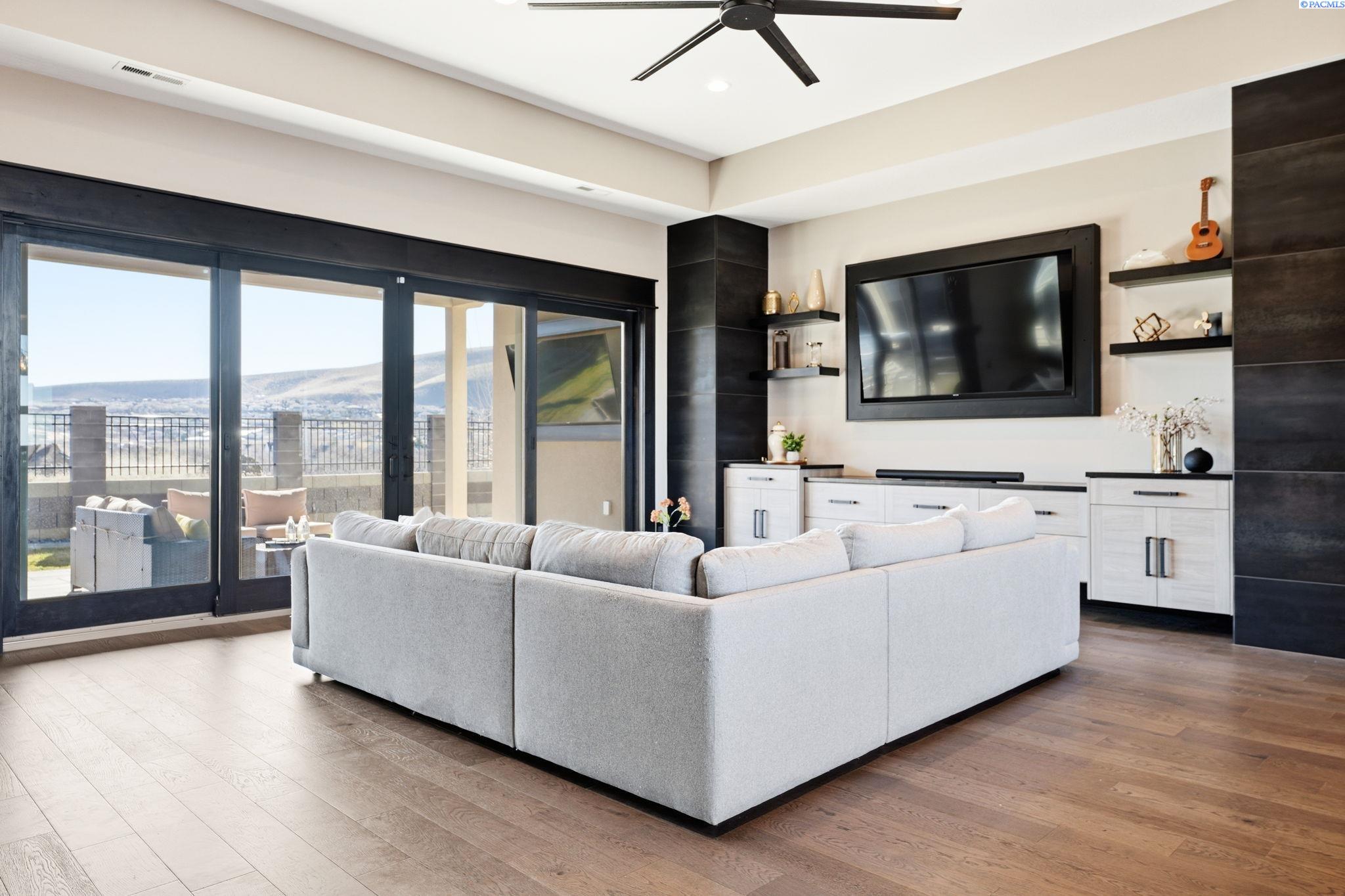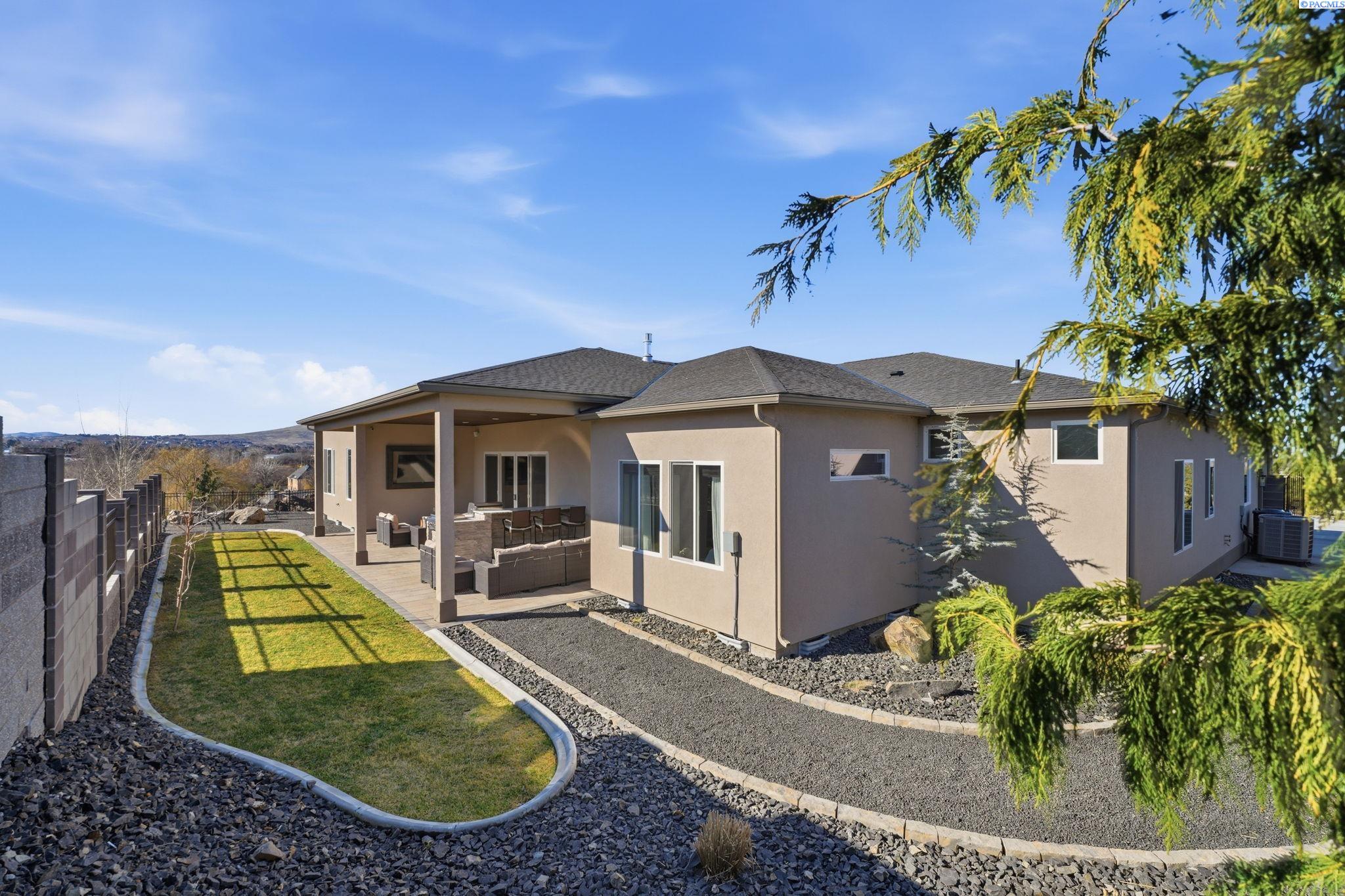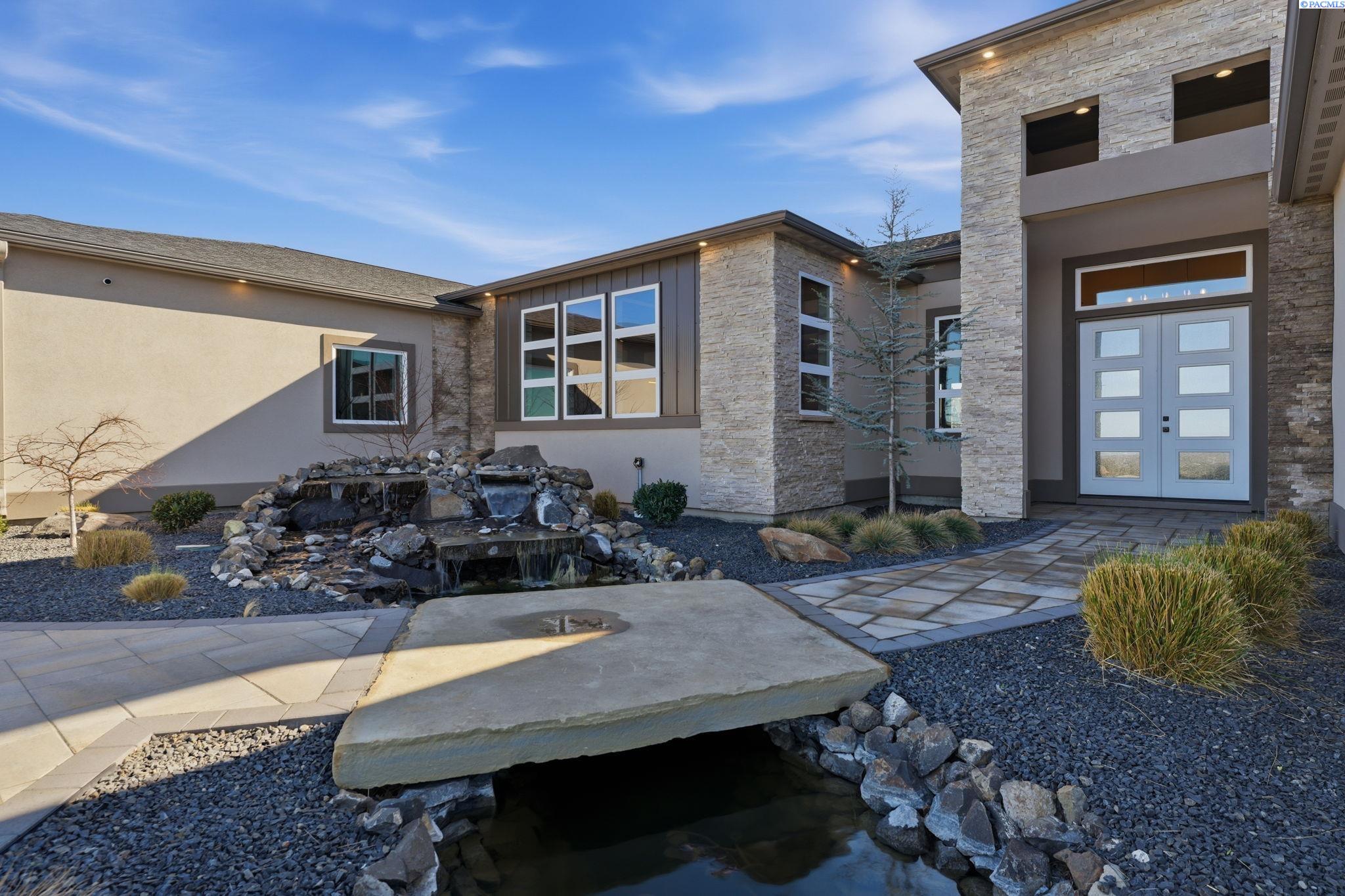 MLS# 290858 Introducing the 2023 Parade of Homes Winner, a stunning custom masterpiece showcasing award-winning design and impeccable attention to detail. This 4-bed, 3-bath rambler offers breathtaking panoramic views rarely found in the Tri-Cities, all just minutes from top wineries. The moment you enter, custom wood detailing, masterful millwork, and ambient lighting set the stage for a home defined by refined luxury. Subtle toe-kick lighting highlights the cabinetry, while integrated surround sound provides an immersive experience. At the heart of the home, the great room features a floor-to-ceiling dual-sided fireplace wrapped in tile and wood beams, complemented by a custom built-in entertainment wall. Oversized sliding doors frame sweeping views and open to the covered patio, seamlessly blending indoor and outdoor living. The gourmet chefâs kitchen is designed to impress. A Forno professional gas range is paired with professional-grade appliances, a Ruvati designer sink with elevated fixtures, and custom cabinetry. The oversized LED-lit island serves as the gathering place, while the butlerâs pantry, complete with a second refrigerator, ensures effortless hosting. A formal dining room provides the perfect setting for intimate dinners or grand gatherings, featuring a custom bar, built-in wine racks, ambient lighting, and pot filler, all seamlessly connecting to the kitchen and great room. Between the primary and guest suites, the office features rich wood-paneled wainscoting, a box beam ceiling, a custom bookcase, and stunning views. The luxury primary suite is a private sanctuary with a custom coffered ceiling and a coffee and beverage bar with pot filler. The expansive walk-in closet includes integrated laundry for convenience, while the homeâs dedicated laundry room adds functionality. The spa-inspired bath boasts heated floors, a soaking tub, bidet, dual sinks, and a dedicated vanity with backlit mirror. On the opposite side of the home, youâll find the secondary bedrooms and a full bathroom. Outside, the expansive covered patio features a tongue-and-groove ceiling with ample lighting and a fully equipped outdoor kitchen with built-in traditional and flat-top grills, bar seating, and TV hookup. A gas fire pit invites evening gatherings, while the professionally landscaped grounds showcase a tranquil koi pond water feature with koi fish. This home defines luxury living, framed by unparalleled vistas.