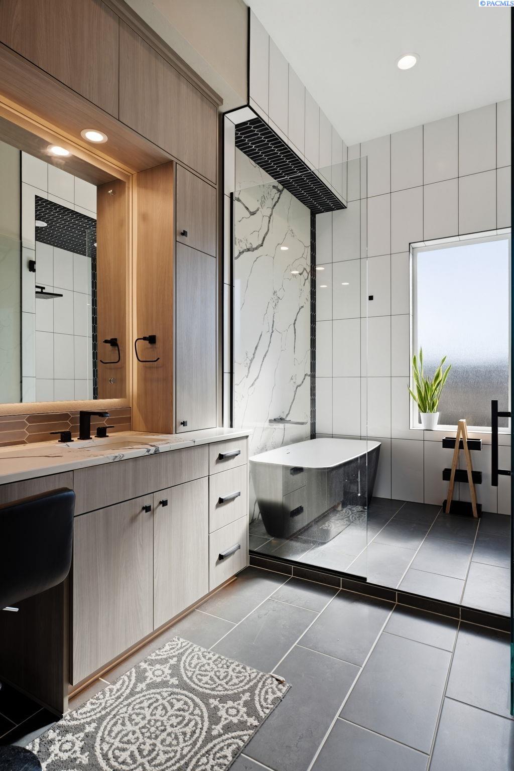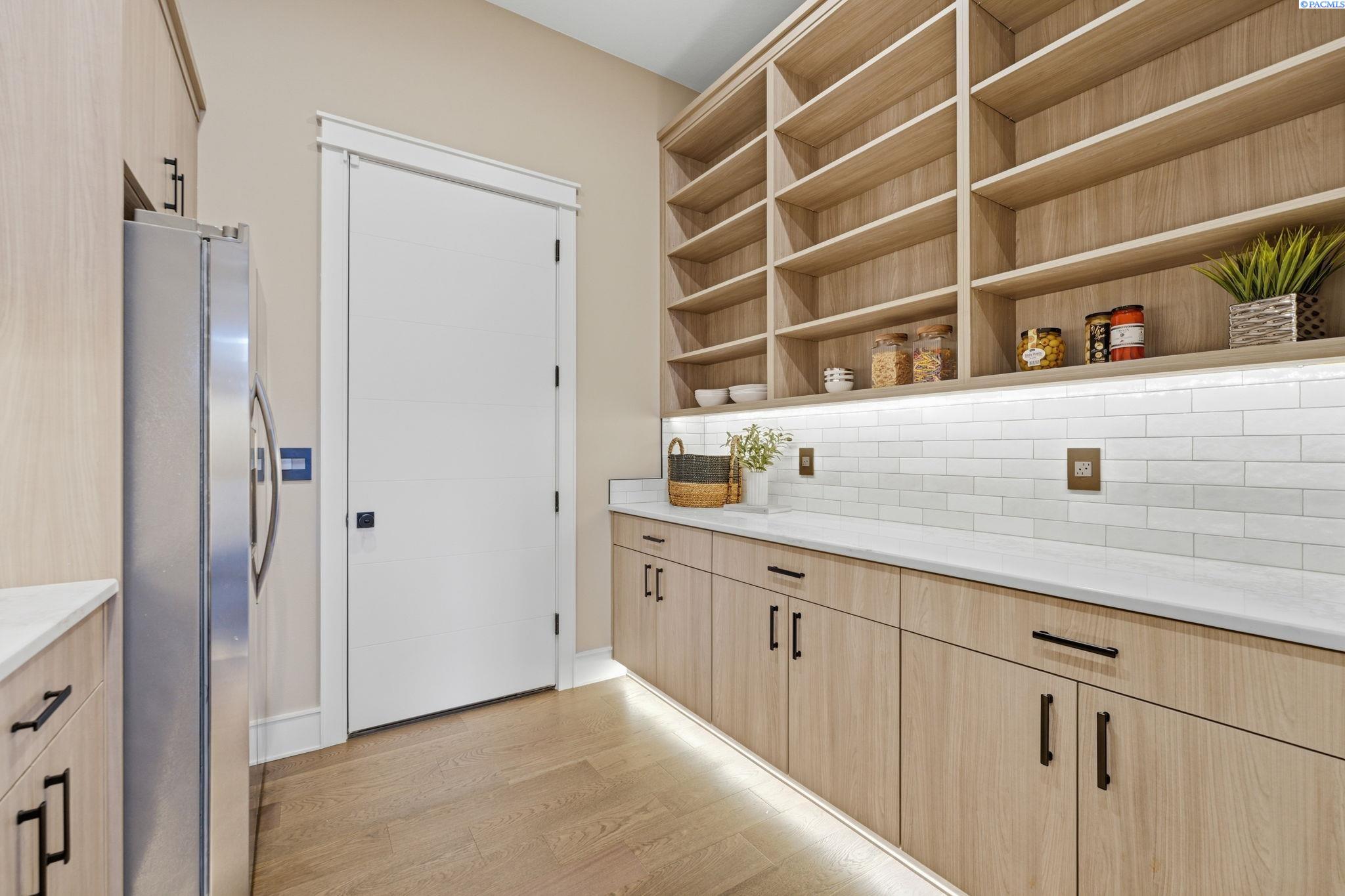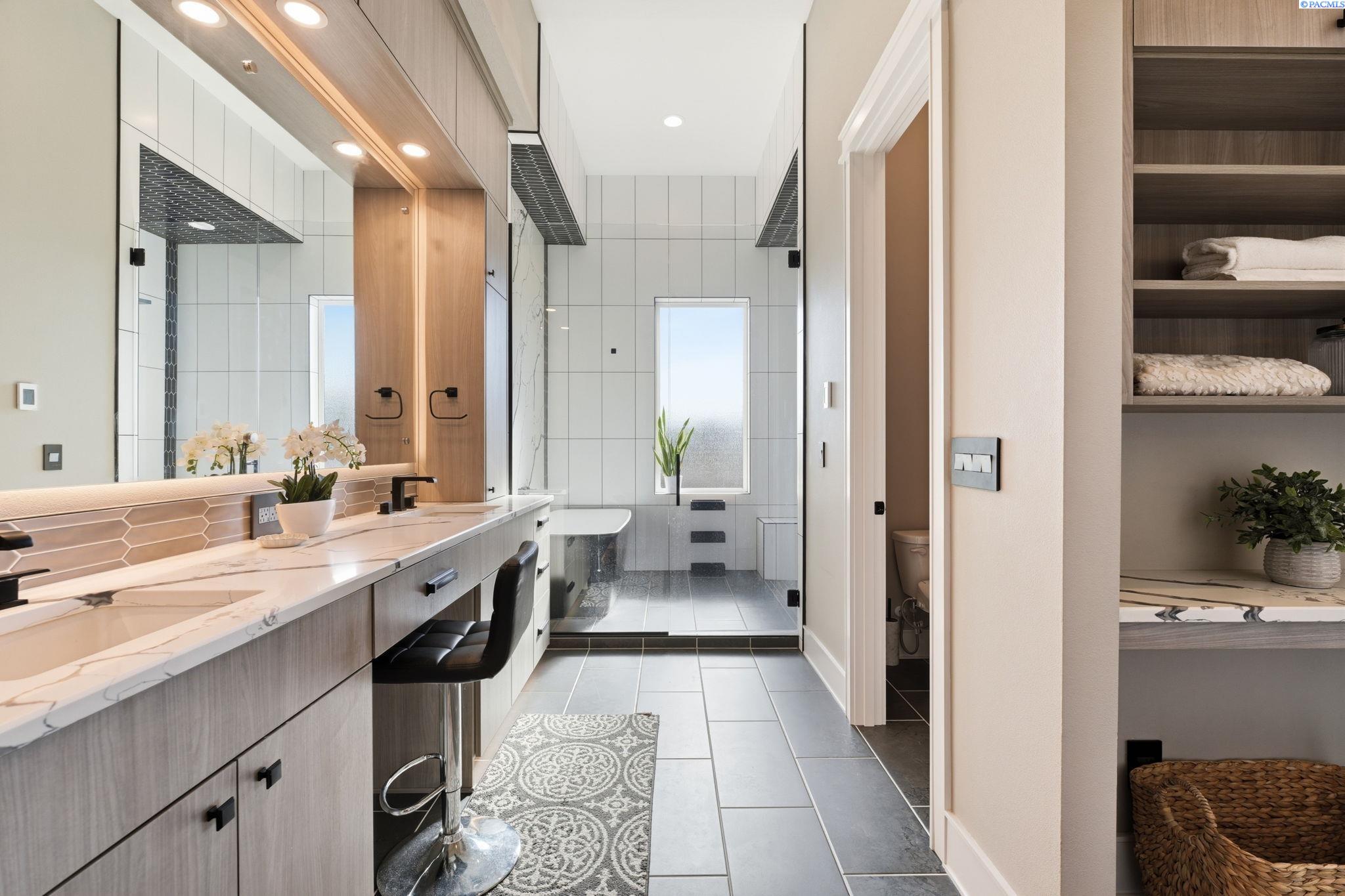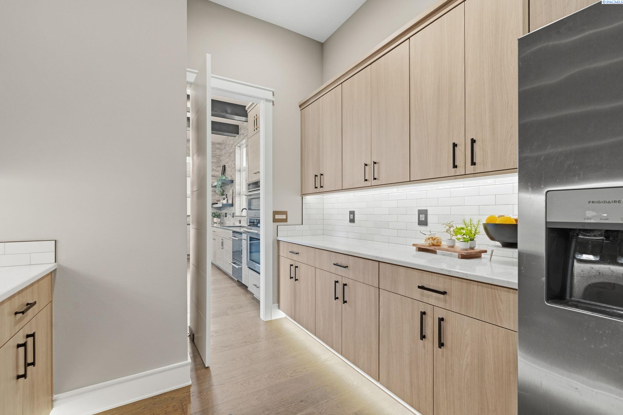MLS# 290858 Introducing the 2023 Parade of Homes Winner, a stunning custom masterpiece showcasing award-winning design and impeccable attention to detail. This 4-bed, 3-bath rambler offers breathtaking panoramic views rarely found in the Tri-Cities, all just minutes from top wineries. The moment you enter, custom wood detailing, masterful millwork, and ambient lighting set the stage for a home defined by refined luxury. Subtle toe-kick lighting highlights the cabinetry, while integrated surround sound provides an immersive experience. At the heart of the home, the great room features a floor-to-ceiling dual-sided fireplace wrapped in tile and wood beams, complemented by a custom built-in entertainment wall. Oversized sliding doors frame sweeping views and open to the covered patio, seamlessly blending indoor and outdoor living. The gourmet chefâs kitchen is designed to impress. A Forno professional gas range is paired with professional-grade appliances, a Ruvati designer sink with elevated fixtures, and custom cabinetry. The oversized LED-lit island serves as the gathering place, while the butlerâs pantry, complete with a second refrigerator, ensures effortless hosting. A formal dining room provides the perfect setting for intimate dinners or grand gatherings, featuring a custom bar, built-in wine racks, ambient lighting, and pot filler, all seamlessly connecting to the kitchen and great room. Between the primary and guest suites, the office features rich wood-paneled wainscoting, a box beam ceiling, a custom bookcase, and stunning views. The luxury primary suite is a private sanctuary with a custom coffered ceiling and a coffee and beverage bar with pot filler. The expansive walk-in closet includes integrated laundry for convenience, while the homeâs dedicated laundry room adds functionality. The spa-inspired bath boasts heated floors, a soaking tub, bidet, dual sinks, and a dedicated vanity with backlit mirror. On the opposite side of the home, youâll find the secondary bedrooms and a full bathroom. Outside, the expansive covered patio features a tongue-and-groove ceiling with ample lighting and a fully equipped outdoor kitchen with built-in traditional and flat-top grills, bar seating, and TV hookup. A gas fire pit invites evening gatherings, while the professionally landscaped grounds showcase a tranquil koi pond water feature with koi fish. This home defines luxury living, framed by unparalleled vistas.