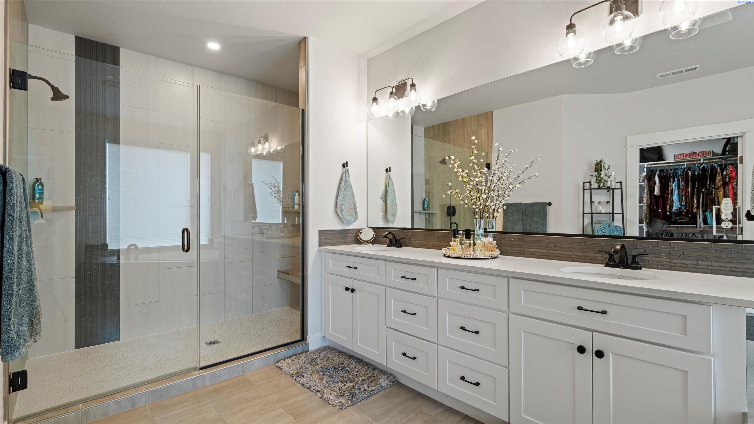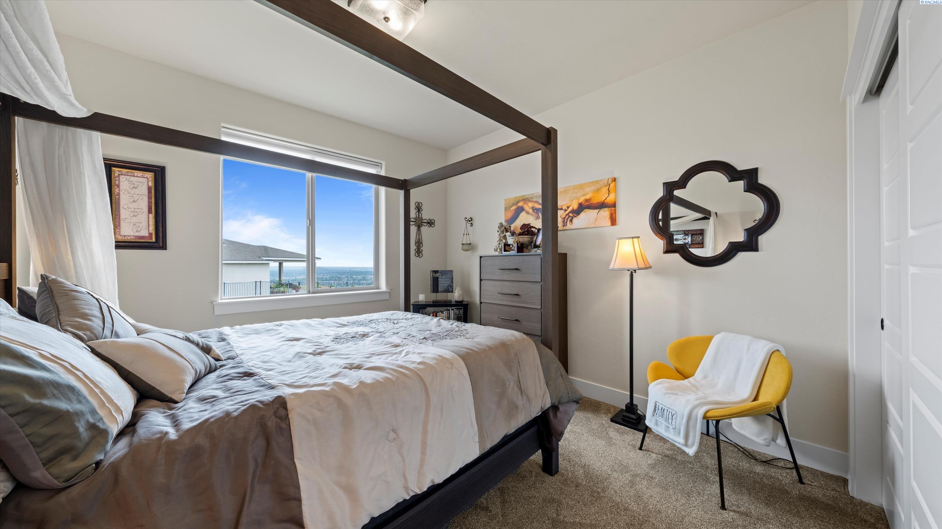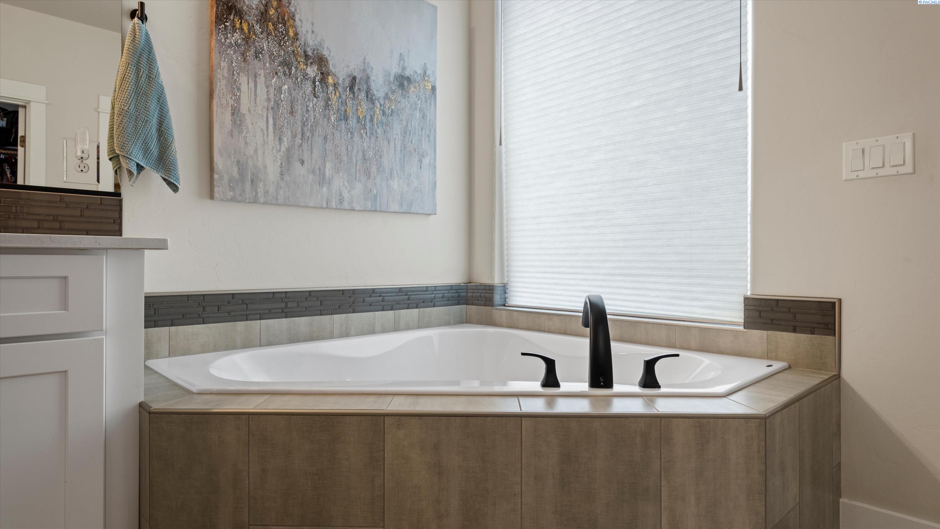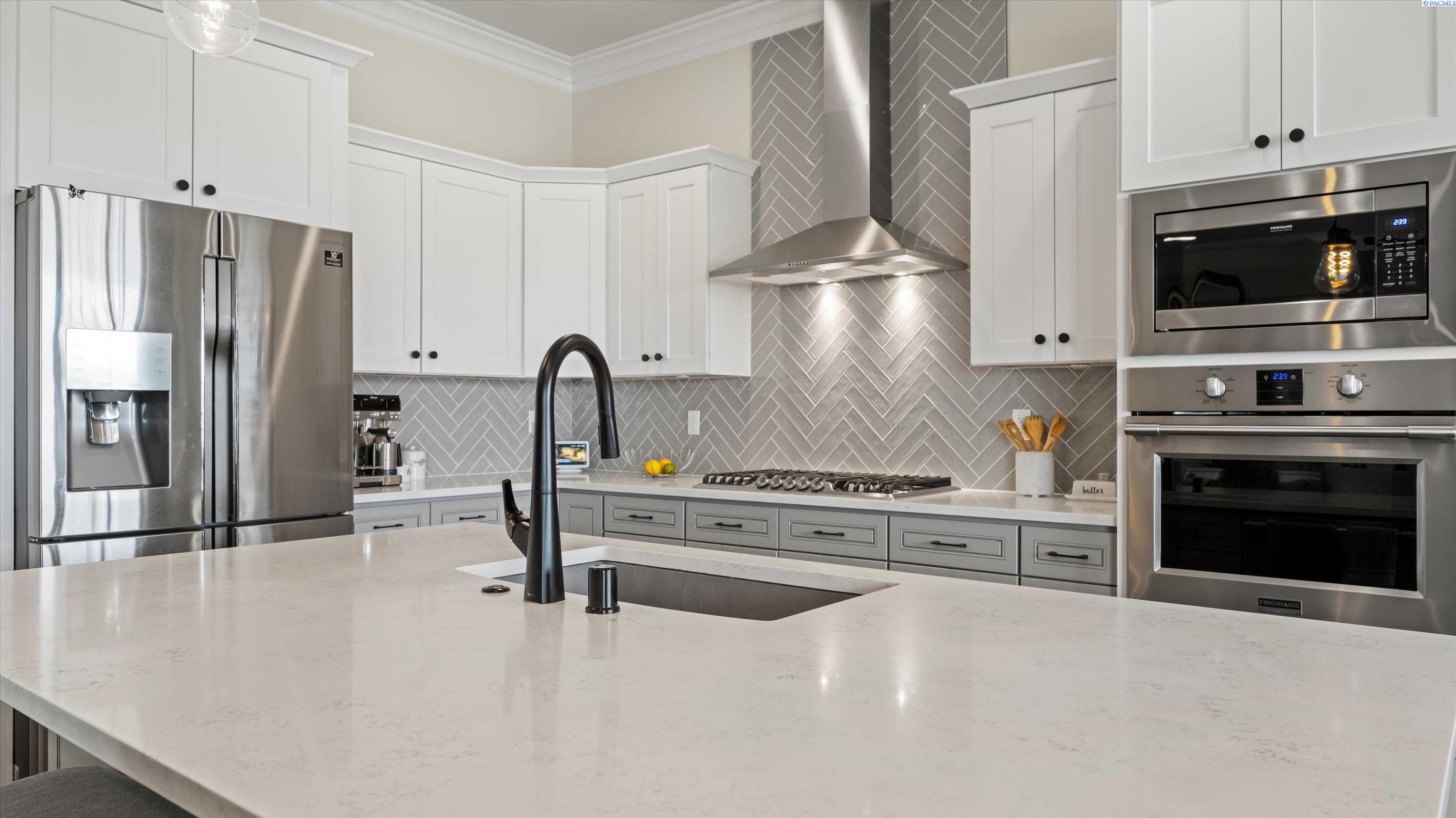 MLS#290887 Welcome to 2284 S Alaska St in Kennewick, a beautiful Southcliffe home designed with the views in mind! You'll be impressed by the raised ceilings, crown molding, and oversized windows that flood the interior with natural light. The open-concept layout connects the living, dining, and kitchen spaces, highlighted by a striking floor-to-ceiling linear fireplace with custom built-ins. The kitchen is both stylish and functional, offering a gas cooktop with vent hood, wall oven, large island, full tile backsplash, quartz counters, and soft-close cabinetry throughout. A thoughtful split-bedroom design ensures privacy for the primary suite, which showcases modern rope lighting, a spa-like bath with a soaking tub, fully tiled walk-in shower, private toilet room, and a huge walk-in closet. With three bedrooms- one of which is a Jr. Suite with its own attached bathroom- plus an office and an additional full hall bath, the home easily accommodates family and guests. Practical touches include a spacious laundry room with cabinetry and utility sink, as well as a 4-car fully finished garage with overhead racks and New Age storage cabinets with work tops for abundant storage. Step outside to enjoy breathtaking CITY LIGHTS VIEWS from the covered patio and fenced backyardâlow-maintenance yet perfect for kids or pets. And the nicest neighbors to share it with. Complete with geothermal heating and cooling for energy efficiency, this home blends modern elegance with cost-effective living!
