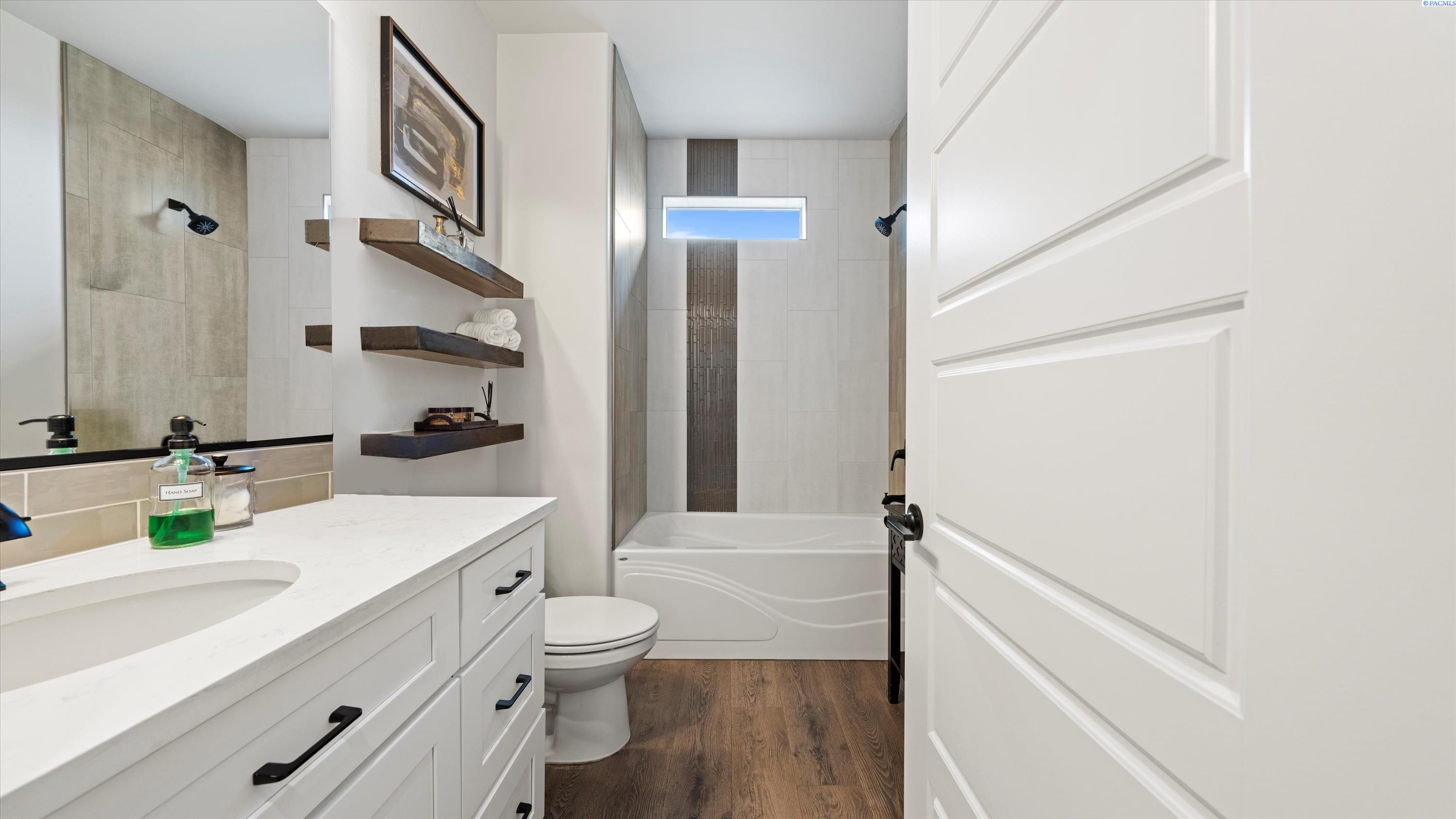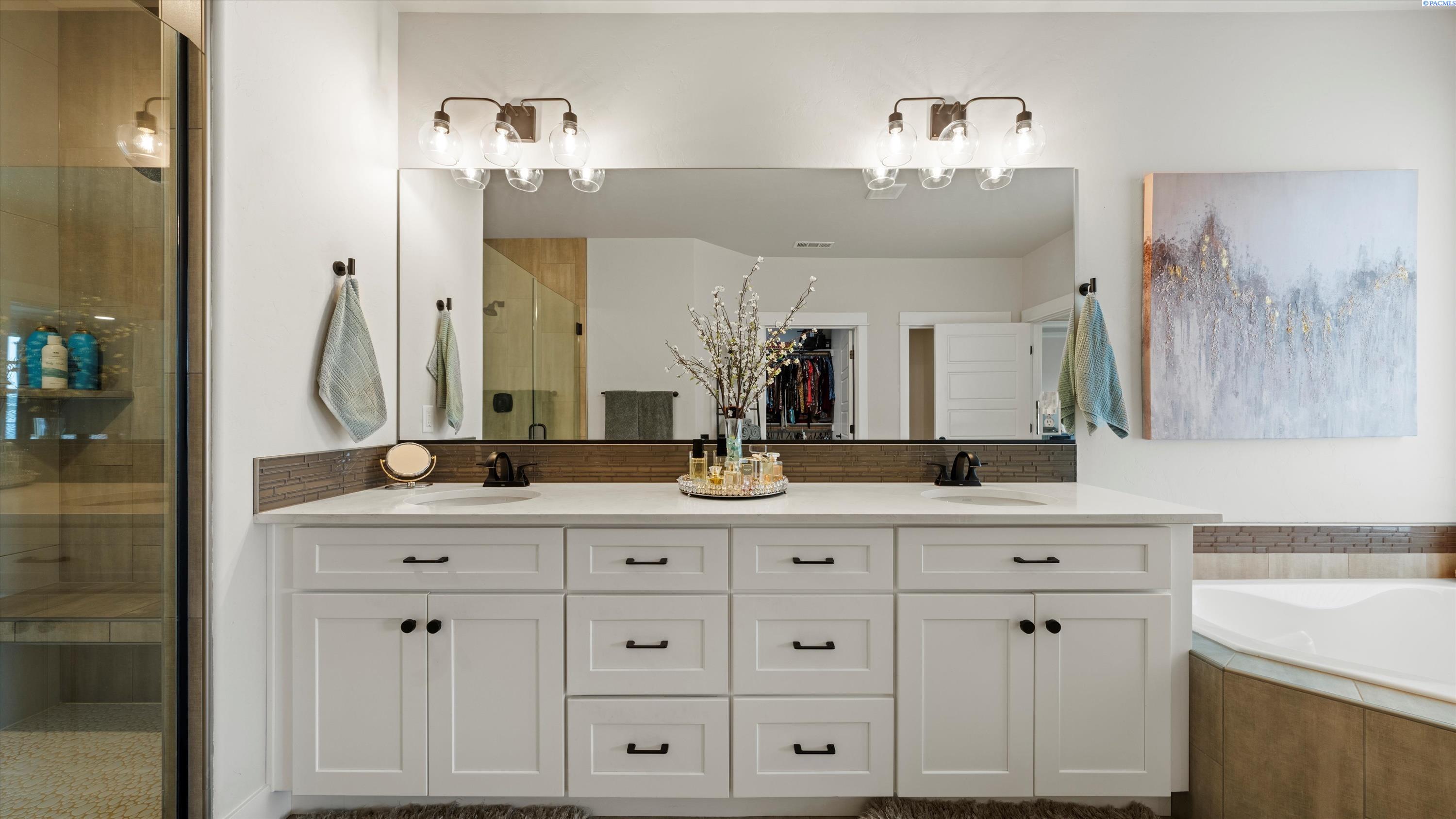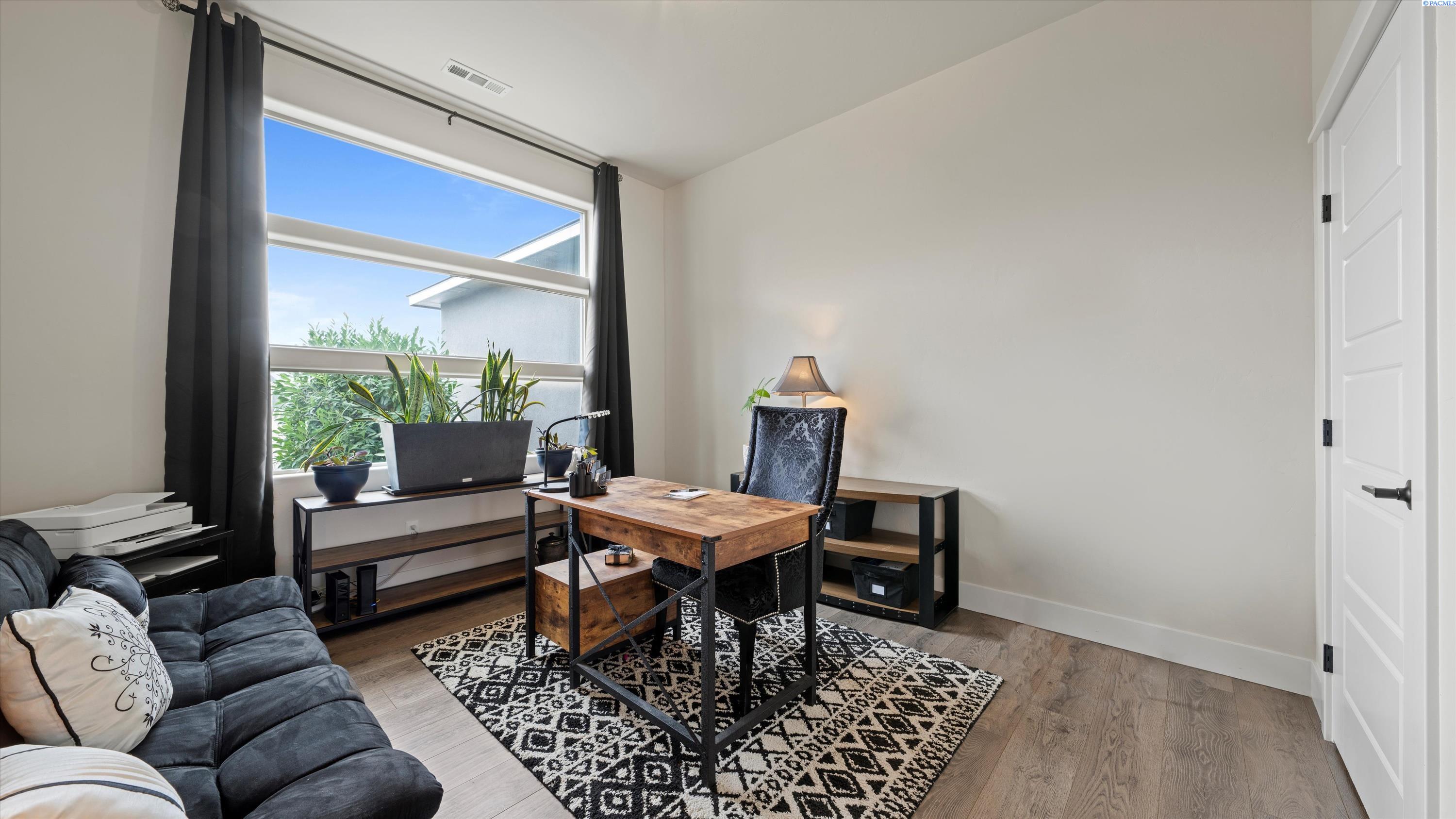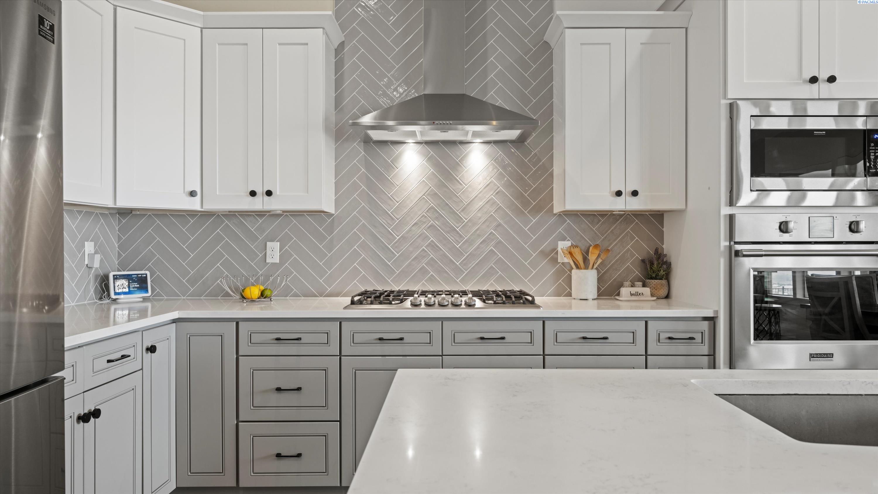 MLS#290887 Welcome to 2284 S Alaska St in Kennewick, a beautiful Southcliffe home designed with the views in mind! You'll be impressed by the raised ceilings, crown molding, and oversized windows that flood the interior with natural light. The open-concept layout connects the living, dining, and kitchen spaces, highlighted by a striking floor-to-ceiling linear fireplace with custom built-ins. The kitchen is both stylish and functional, offering a gas cooktop with vent hood, wall oven, large island, full tile backsplash, quartz counters, and soft-close cabinetry throughout. A thoughtful split-bedroom design ensures privacy for the primary suite, which showcases modern rope lighting, a spa-like bath with a soaking tub, fully tiled walk-in shower, private toilet room, and a huge walk-in closet. With three bedrooms- one of which is a Jr. Suite with its own attached bathroom- plus an office and an additional full hall bath, the home easily accommodates family and guests. Practical touches include a spacious laundry room with cabinetry and utility sink, as well as a 4-car fully finished garage with overhead racks and New Age storage cabinets with work tops for abundant storage. Step outside to enjoy breathtaking CITY LIGHTS VIEWS from the covered patio and fenced backyardâlow-maintenance yet perfect for kids or pets. And the nicest neighbors to share it with. Complete with geothermal heating and cooling for energy efficiency, this home blends modern elegance with cost-effective living!