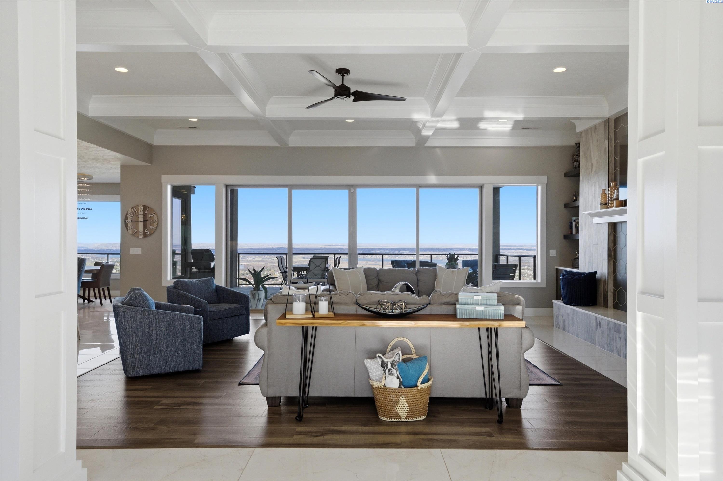 MLS# 291013 Welcome to 2508 Falconcrest Loop in Richland, where elevated design meets an easy, lock-and-leave lifestyle. Perched to capture panoramic Tri-Cities views that stretch for miles, this exceptional 2,923 sq ft residence offers four bedrooms, three bathrooms, and a spacious three-car garageâall thoughtfully designed for comfort, entertaining, and effortless living. From the moment you step inside, walls of windows flood the home with natural light while perfectly framing the breathtaking scenery. The open living space is both refined and inviting, anchored by a warm fireplace and seamless flow into the chefâs kitchenâan entertainerâs dream. The kitchen is designed to impress, featuring a FiveStar professional gas cooktop with griddle, pot filler and warming center, professional-grade Frigidaire refrigerator/freezer, and generous prep space. The large breakfast bar and adjacent dining area create the perfect setting for hosting gatherings where the view becomes the backdrop to every meal. Entertaining is elevated even further with a custom wet bar complete with pull-out shelving, sink, ice maker, and wine refrigeratorâideal for effortless hosting. The private primary suite offers a true retreat, positioned on its own side of the home with a spa-inspired bath featuring heated floors, a walk-in shower with three shower heads, and a relaxing jetted tub. Additional highlights include Hunter Douglas window treatments, new LVP flooring in the bedrooms and living room, elegant marble flooring in the main living areas, and over $70,000 in recent upgrades including new luxury flooring in 3 bedrooms, hardscaping including decorative rock, a retaining wall, professional landscaping, and the custom wet bar. Step outside to the covered deckâstubbed for a gas grillâwhere evenings are best spent taking in the spectacular sunsets and city lights below. The professionally designed zero-scape yard offers beauty without the maintenance, giving you more time to relax, entertain, and enjoy the view. No detail was overlooked, including the turf area for the fur babies. This home offers the rare combination of luxury, breathtaking scenery, and low-maintenance livingâperfect for those who want refined comfort without the demands of extensive yard upkeep. If youâre looking for luxury, views, and effortless living, this home delivers!