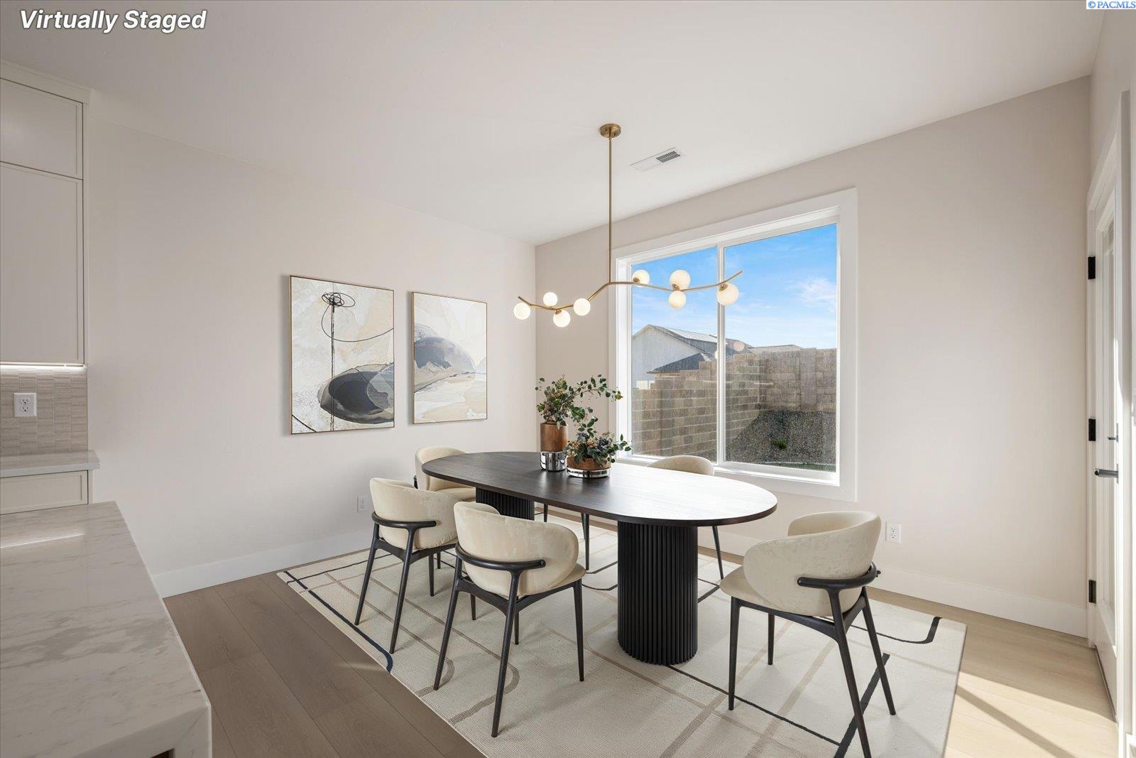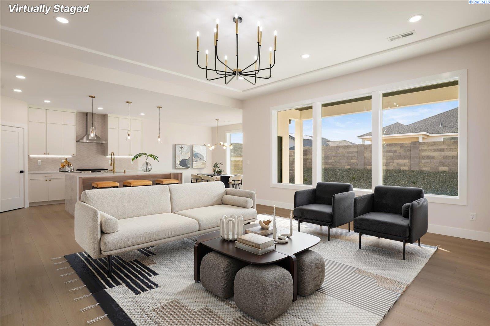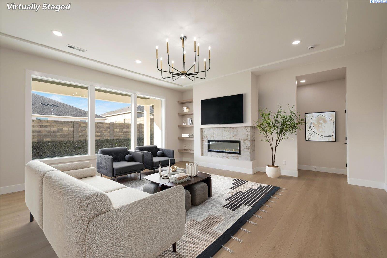 MLS# 291104 Welcome to life in South Orchard at Badger Mountain South, one of the Tri-Citiesâ most exciting and rapidly growing master-planned communities. Built by Viktory Homes, this beautifully crafted new construction offers the perfect blend of modern design, thoughtful craftsmanship, and effortless everyday living.From the moment you arrive, the home welcomes you with a bright, open layout designed for the way people live today. Expansive windows fill the space with natural light while the soaring ceilings create an airy, inviting atmosphere. Two spacious bedrooms and a beautifully finished guest bath are thoughtfully positioned at the front of the home, offering comfort and privacy for family members, guests, or a home office.At the heart of the home, the chefâs kitchen becomes the natural gathering place. Featuring custom cabinetry, premium appliances, designer finishes, and a large island perfect for casual dining or entertaining, this space flows seamlessly into the main living area where tall ceilings, a stylish fireplace, and abundant light create the perfect setting for both lively gatherings and quiet evenings at home.The primary suite offers a peaceful retreat tucked privately within the home. Designed to feel like a personal sanctuary, the spa-inspired bathroom features a soaking tub, oversized tiled walk-in shower, elegant finishes, and a generous walk-in closet designed for both comfort and convenience.Living in South Orchard means embracing an active and connected lifestyle. Enjoy nearby walking trails, open green spaces, and easy access to the expanding amenities of Badger Mountain South. With schools, dining, shopping, and recreation all close by, this location offers the perfect balance of neighborhood charm and modern convenience.A beautifully designed home in a vibrant communityâthis is where lifestyle, comfort, and new construction come together. Welcome to Viktory Homes! *photos are virtually staged