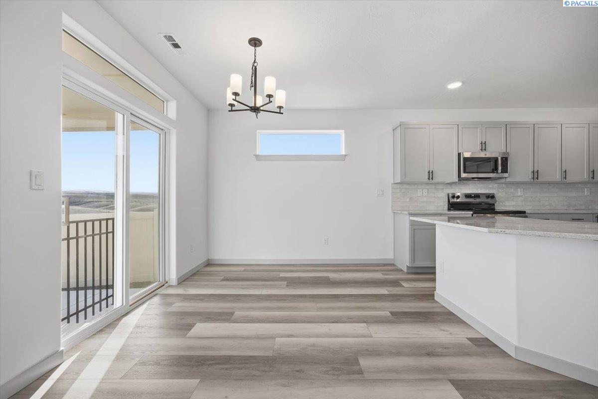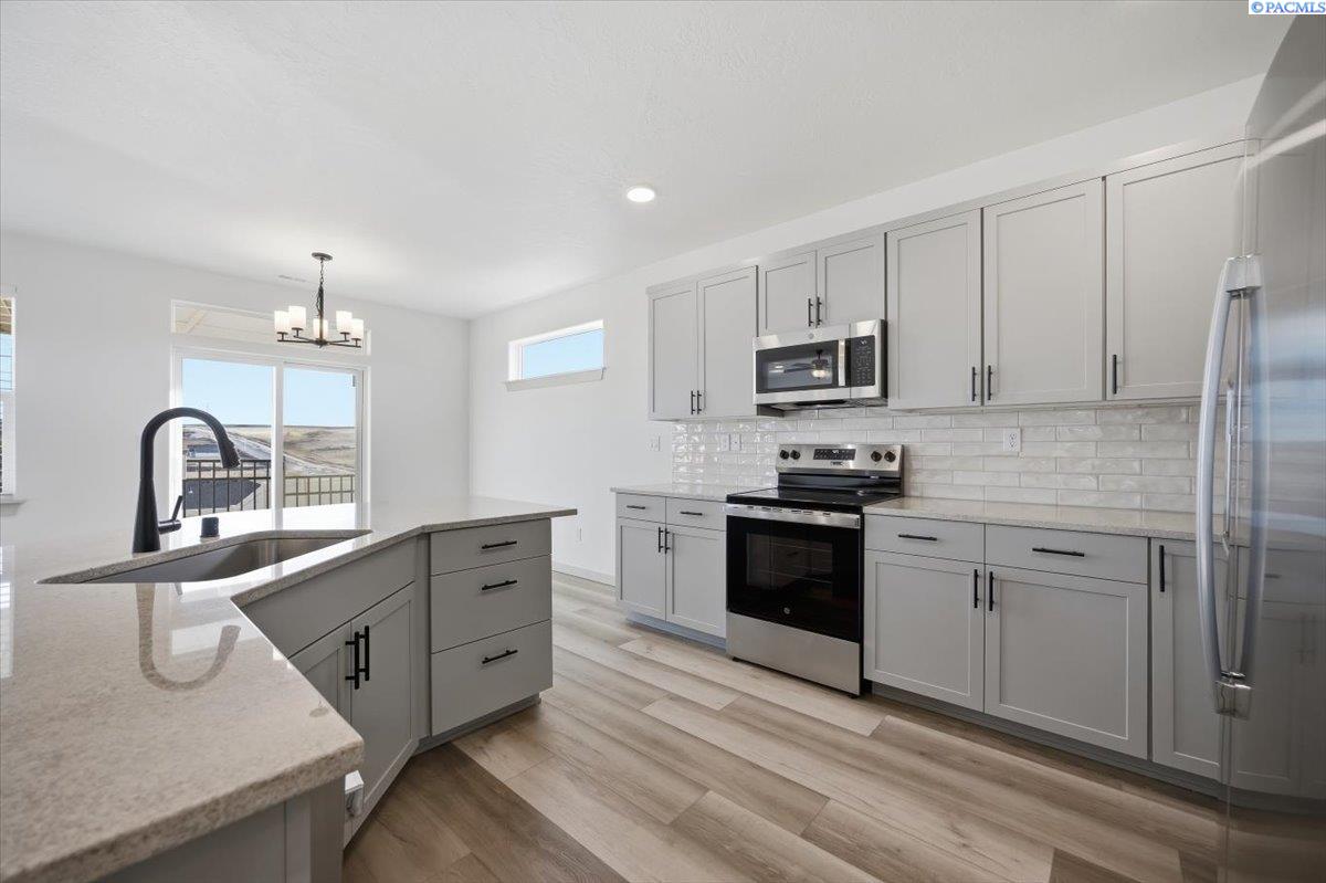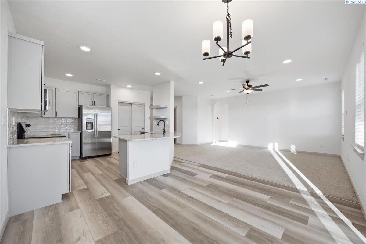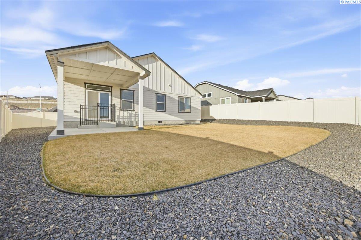 MLS# 291122 Built in 2023, this 1,574 sq ft home offers 3 bedrooms and 2 bathrooms on a desirable corner lot with beautiful views. Move-in ready and fully landscaped, thereâs no need to wait for new constructionâsimply enjoy the finished home today. The spacious great room opens to the kitchen for great entertaining, featuring stainless steel appliances, painted cabinetry, granite countertops, and a refrigerator that stays. Architectural archways along the hallway add charm and character, creating a warm and welcoming flow throughout the home. The spacious primary suite includes dual sinks, a walk-in shower, generous storage, and a large walk-in closet. The fully fenced backyard offers a covered patioâan inviting space to relax and take in the scenic views.