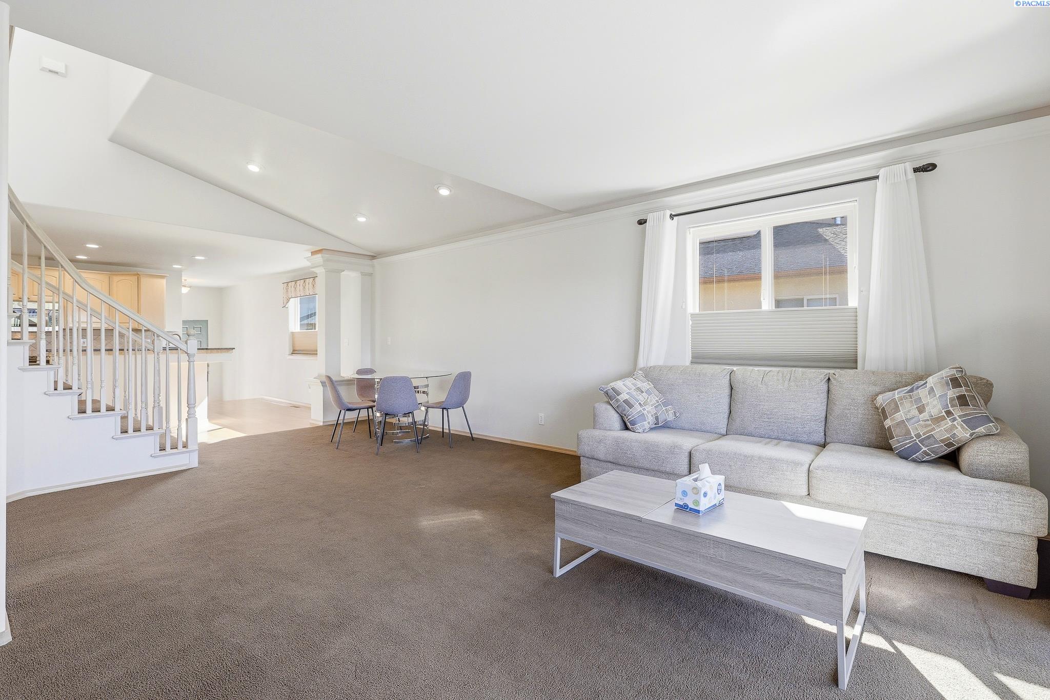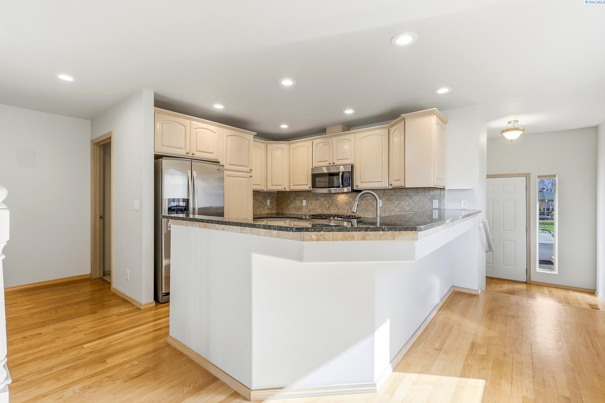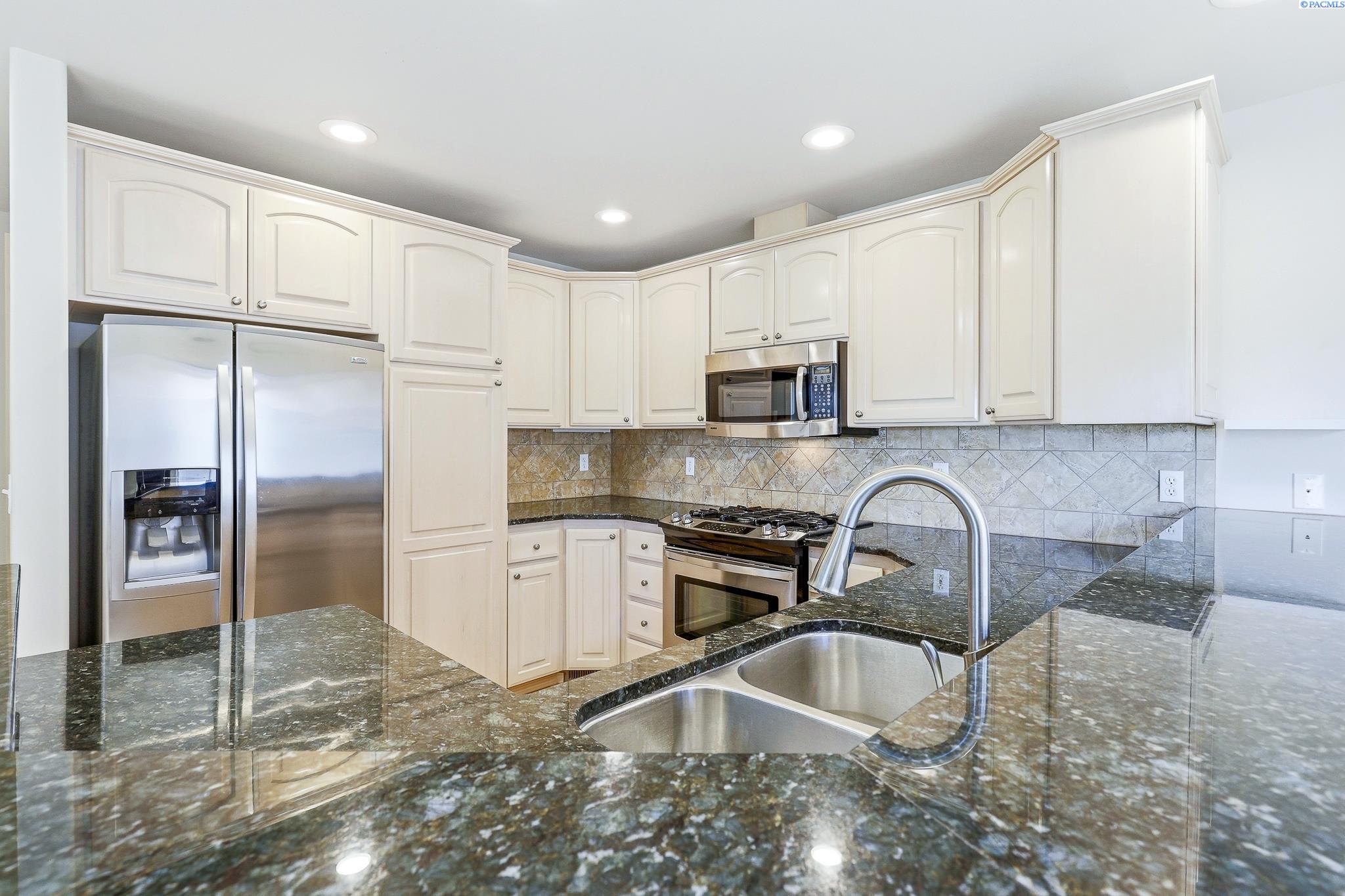 MLS# 291181 Beautifully located near the golf course, parks, shopping, restaurants, and with easy highway access, this home offers both convenience and great outdoor living. The Columbia River and scenic walking trails are just steps away, creating a lifestyle perfect for recreation and relaxation.The main floor features the primary suite, kitchen, and living room for comfortable everyday living. The inviting living room includes a cozy fireplace and sliding doors that open to a west-facing deckâperfect for enjoying beautiful sunsets. Both the main-level and upper decks overlook the golf course.The spacious primary suite offers a private retreat with a dual-sink vanity, walk-in shower, and walk-in closet. A sliding door provides direct access to the covered deck. Upstairs youâll find a large bonus loft with its own balcony, two generous guest bedroomsâone with a partial view of the Columbia Riverâand a guest bathroom with a dual-sink vanity and tiled walk-in shower. Plenty of linen closets and built-in storage provide great organization throughout the home.Enjoy panoramic views of Badger Mountain and Candy Mountain, along with views toward the 18th hole of Columbia Point Golf Course.Additional features include a fully finished two-car garage, abundant storage, and a convenient utility sink in the half bath. This home combines a thoughtful layout, beautiful views, and an excellent location.