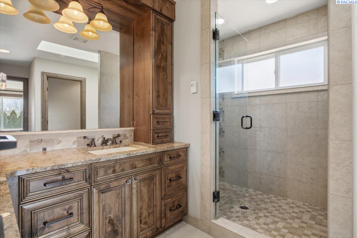MLS# 291285 Soaring vaulted ceilings, oversized tile floors, hardwood floors, knotty alder custom kitchen with granite counters, inset gas range and double ovens... your mind will say, "wow... this is a great buy!", Your heart will tell you, "this is the one!" Just under 2800 Sq Ft, 4 bedrooms plus a large bonus room/den upstairs, a sumptuous main bedroom with ensuite. Inside, the list goes on and on. Outside, it sits on over half and acre. You'll love the outdoor living space on the back covered patio with fireplace, flat panel TV and it's connected to a large and private yard so you can turn the critters loose! There is also RV parking with a 50 amp plug-in, a 3 third bay garage with 10' door so you can park the wakeboard boat indoors and it's all wired for your electric vehicle... you just get to move in, relax and enjoy! That's what you can see on the surface. What you don't see is an updated HVAC system with 7 more years of transferable warranty guarantees!! No worries, just comfort.This home is located in one of West Kennewick's most desirable neighborhoods with large lots and lots of privacy and it's close to everything that's anything in Kennewick & Richland. Call your favorite agent and come take a walk-through today!