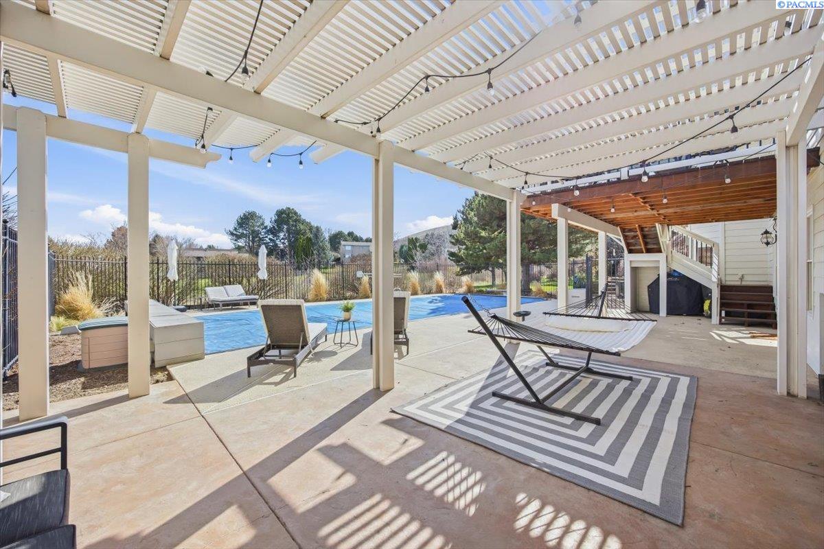 MLS# 291301 Located in the desirable Country Ridge neighborhood, this exceptional 4-level home offers 4,598 square feet of beautifully designed living space with room to gather, relax, and entertain. From morning sunrises on the deck overlooking the pool to evening sunsets on the wraparound porch, this home is your retreat. The main level welcomes you with spacious living and dining areas filled with natural light. The kitchen is designed for both everyday living and hosting, featuring abundant storage, double ovens, and generous room for additional dining or a sitting area. The spacious laundry room just off the kitchen includes a walk-in pantry and access to the garage. A private den provides the perfect home office. Upstairs you will find three large bedrooms, including the primary suite with a cozy fireplace, built-in closet storage, and a spa-like bathroom designed for relaxation. Two additional bedrooms on this level are generously sized. A second staircase leads to the top level where two more bedrooms and a sitting or reading area create a private and comfortable space. The lower level is built for entertainment with an expansive family room featuring a projector and plenty of room for a home gym or recreation area. It also includes a pool table and a bathroom. Step outside to your resort-style backyard featuring a pool and expansive outdoor space, perfect for summer gatherings or quiet evenings under the stars.