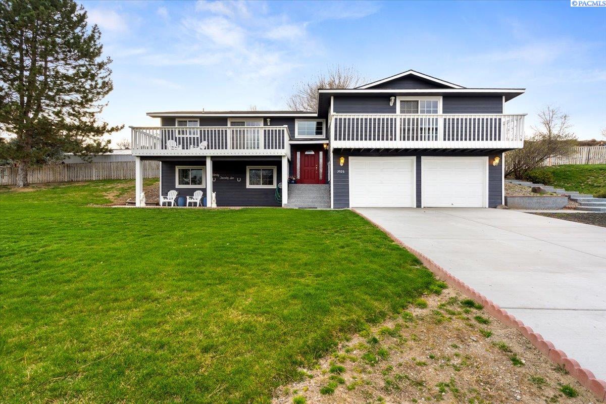 Welcome to 3026 Escolar Rd, set on just over 2 acres in West Kennewick with a peaceful, terraced setting and beautiful views from the back of the lot.Inside, youâll find 3 bedrooms, 3 full bathrooms, and 2,400 sq ft of thoughtfully laid-out living space. Recent upgrades include a new roof, DaBella triple-pane windows, Anderson slider doors, HVAC system, flooring, exterior paint, new garage door openers, new water heater, and a water softener with filter system. The kitchen is equipped with newer stainless steel appliances.The main level features an extra-large primary suite with a walk-in closet, en-suite bathroom, and private balcony with a view. The kitchen, dining room, living room, and an additional bathroom are also located on this level.The lower level includes two additional bedrooms, a full bathroom with a walk-in shower with tile surround, and a family roomâperfect as a rec room or kidsâ hangout space. Outside, enjoy the 2-acre property with a mix of open space and tiered landscaping plus a 20x30 shop/shed, RV parking, a private patio, pergola with built in propane fire pit. Located just minutes from town, yet tucked away on a quiet, paved road in Rancho Del Rey. Located in the Urban Growth Area! This property offers a unique investment opportunity with the ability to be subdivided into multiple lots. Buyer to verify with Benton County. For added peace of mind, the home has been pre-inspected and is available for your review.