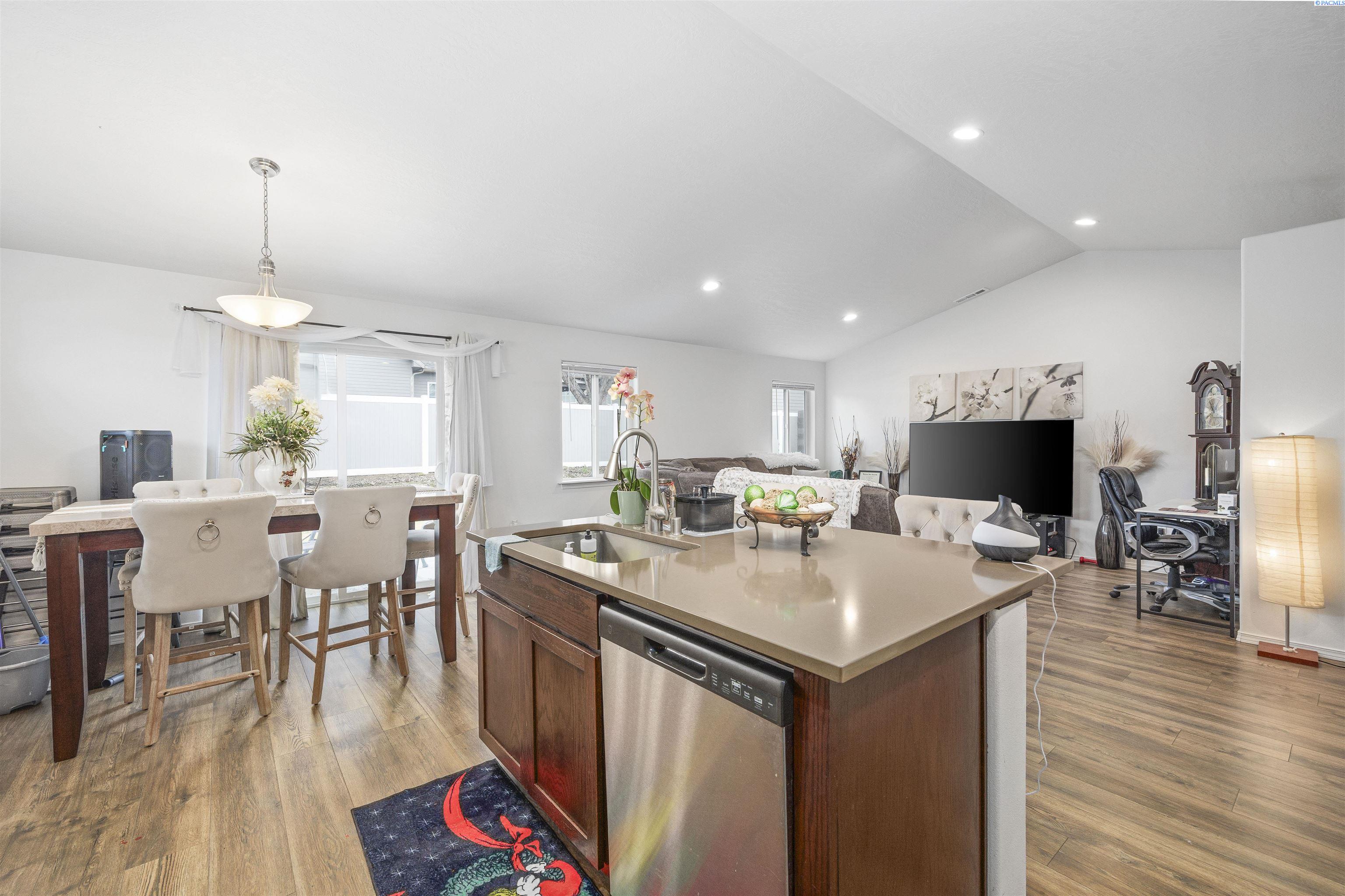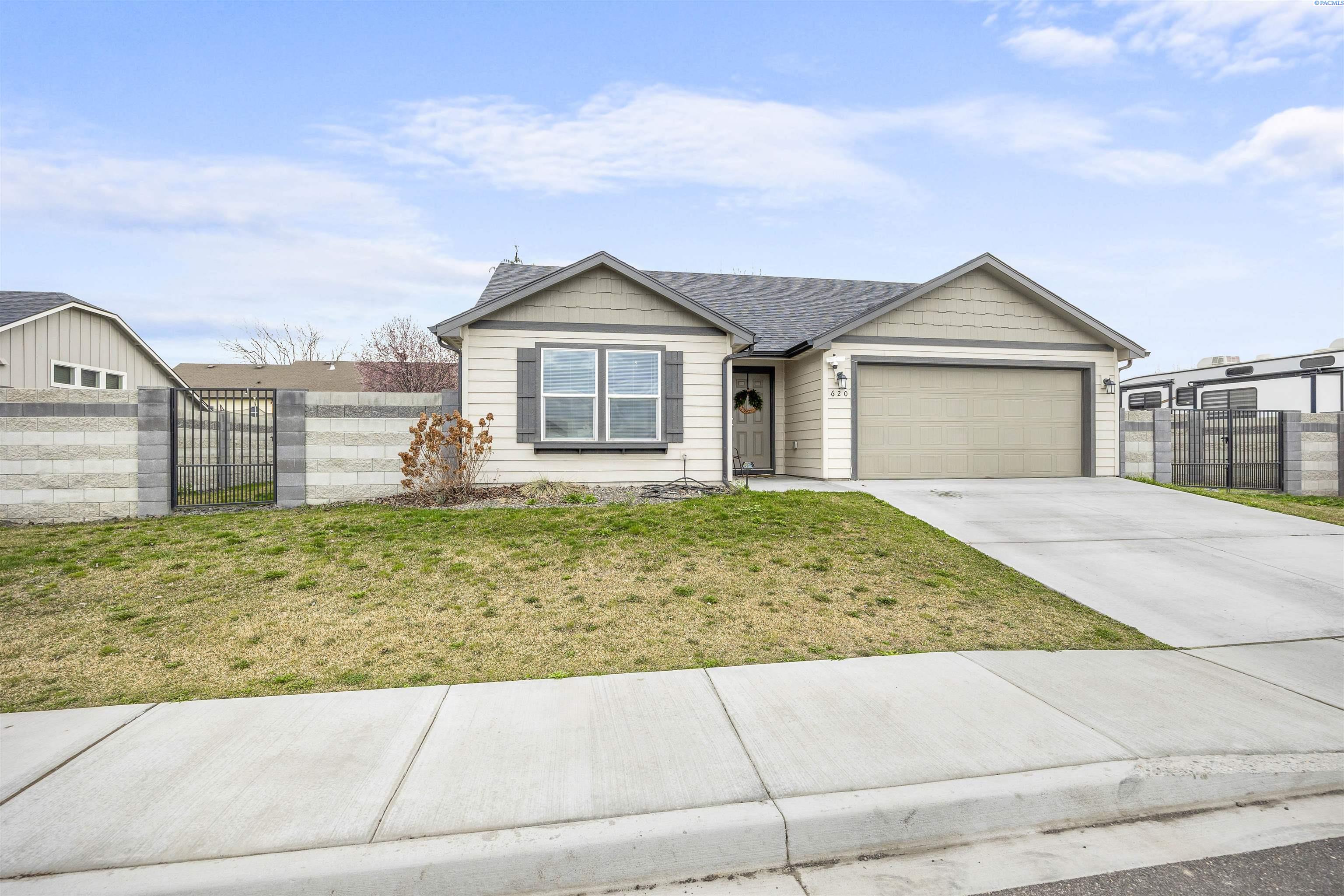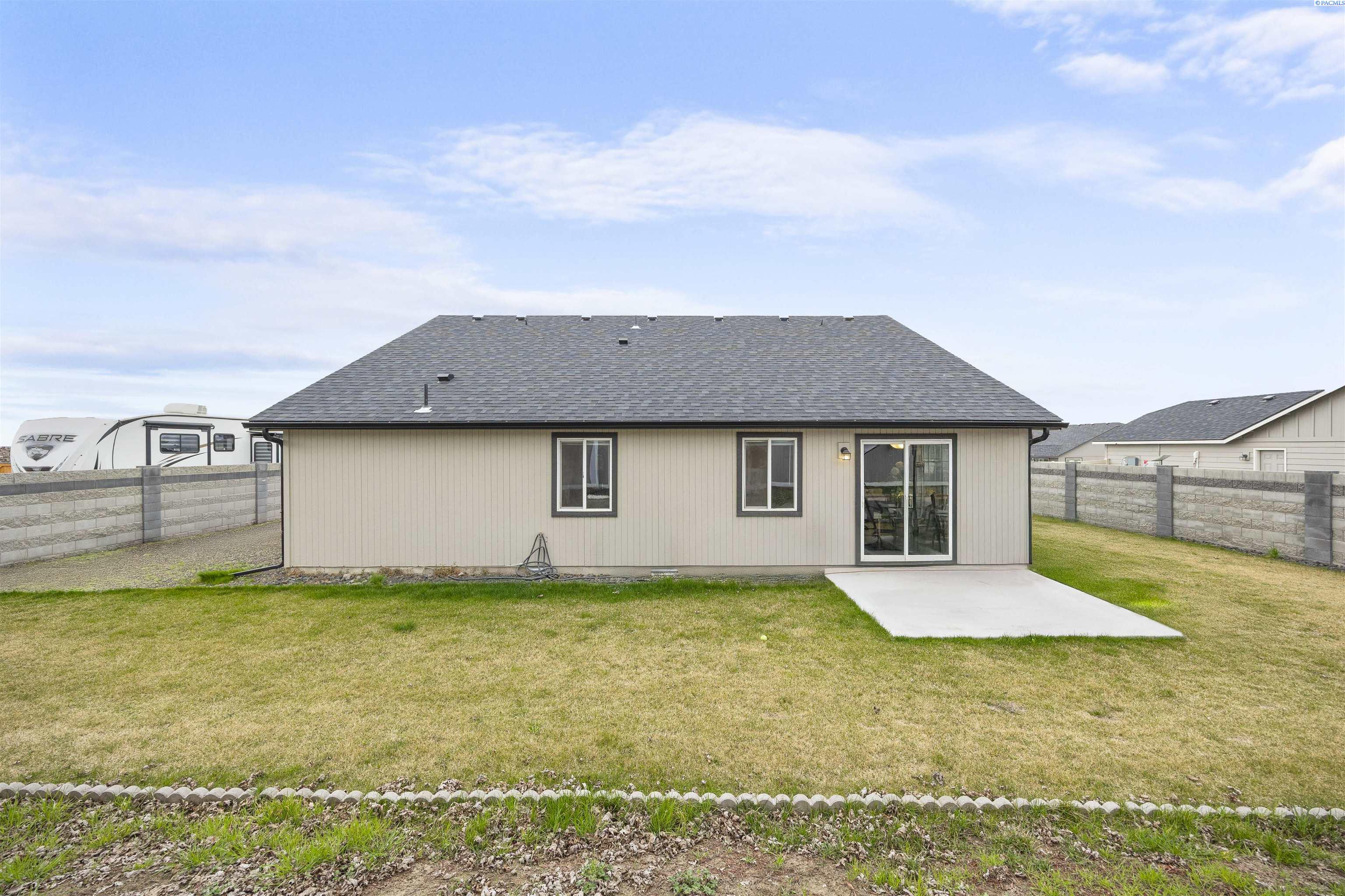 MLS# 291404 Beautifully maintained 2023-built home nestled on a .19-acre lot in Grandview. This single-level residence offers 1,412 sq. ft. of thoughtfully designed living space with 3 bedrooms and 2 bathrooms. A welcoming entry leads into an open-concept living area and kitchen, creating a comfortable space for everyday living and entertaining. The living room features a vaulted ceiling and durable LVP flooring that flows throughout the main living areas and hallways. The kitchen is well-appointed with quartz countertops, a central island, wood cabinetry, stainless steel appliances, and a layout that seamlessly connects to the living space. Just off the dining area, a sliding glass door opens to a patioâperfect for outdoor gatherings, barbecues, or relaxing evenings. The spacious primary suite includes a vaulted ceiling, a generous closet, and a private bathroom. Two additional bedrooms and a full bathroom provide flexibility for guests, family, or a home office. Additional highlights include an attached 2-car garage, a fully fenced backyard with block fencing and a gate, space for a garden, and dedicated RV or boat parking along the side of the property. Located in a growing neighborhood that reflects pride of ownership throughout, this home offers comfort, style, and convenience.