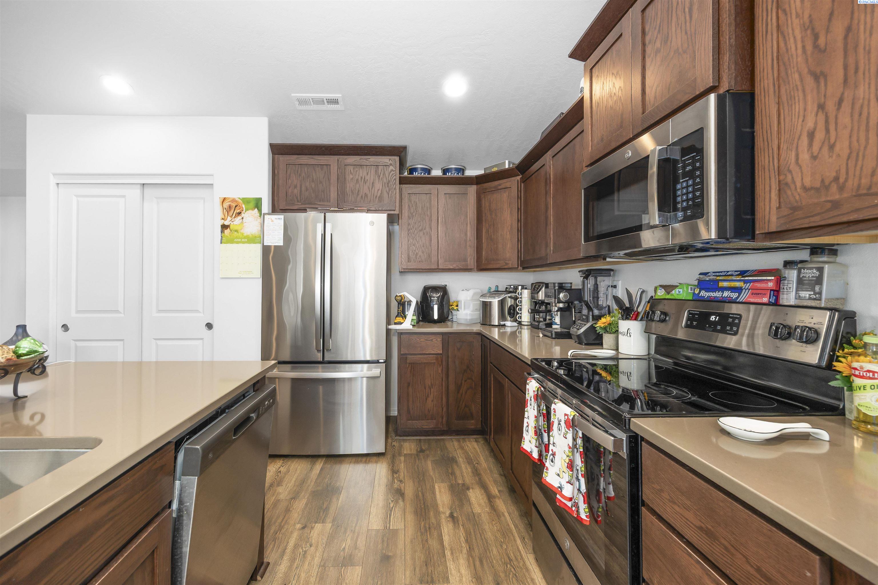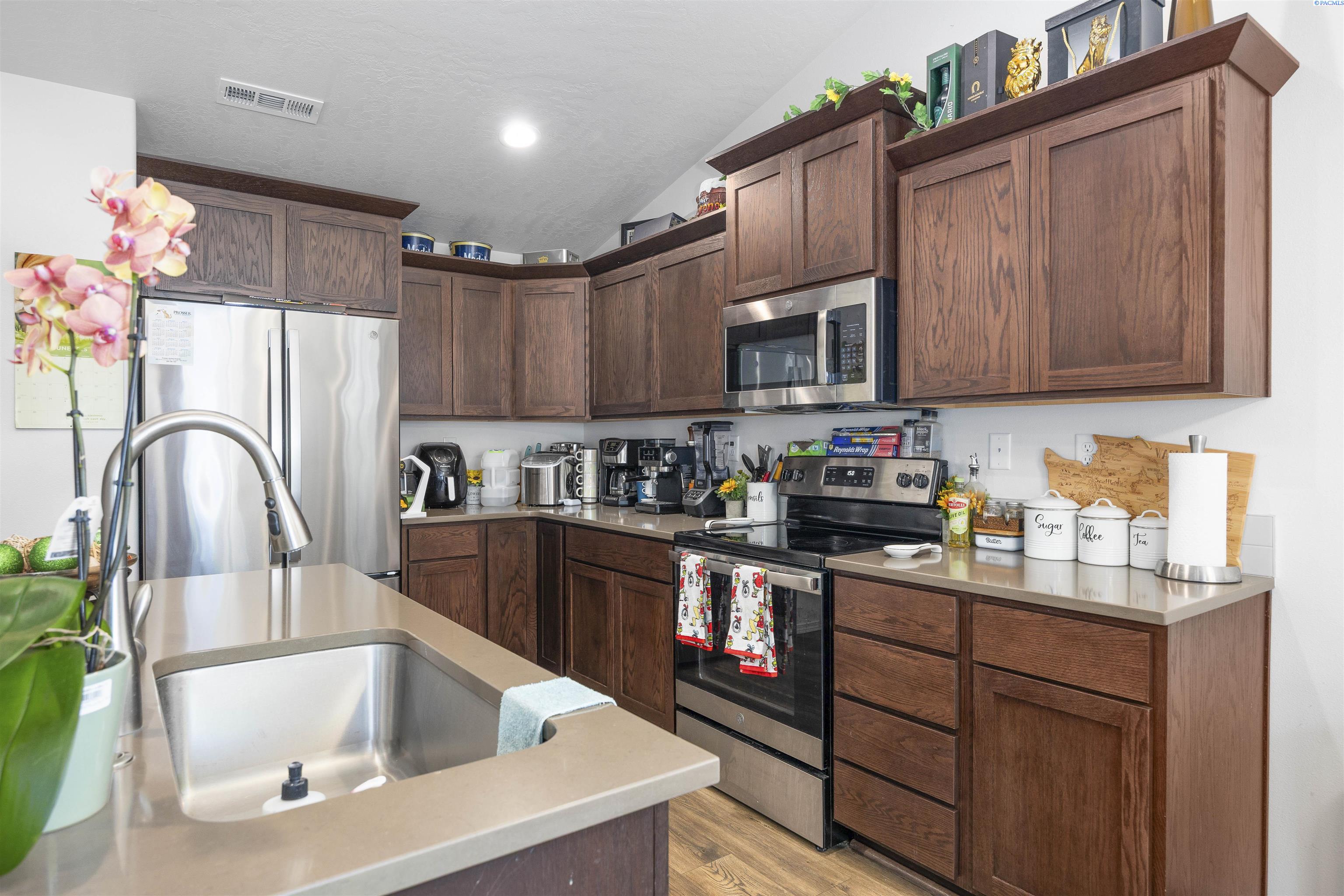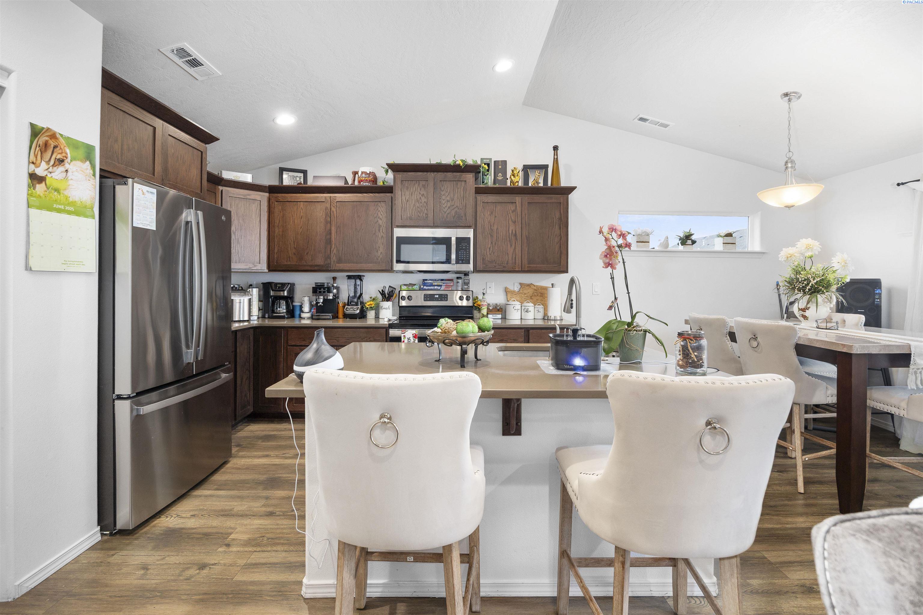 MLS# 291404 Beautifully maintained 2023-built home nestled on a .19-acre lot in Grandview. This single-level residence offers 1,412 sq. ft. of thoughtfully designed living space with 3 bedrooms and 2 bathrooms. A welcoming entry leads into an open-concept living area and kitchen, creating a comfortable space for everyday living and entertaining. The living room features a vaulted ceiling and durable LVP flooring that flows throughout the main living areas and hallways. The kitchen is well-appointed with quartz countertops, a central island, wood cabinetry, stainless steel appliances, and a layout that seamlessly connects to the living space. Just off the dining area, a sliding glass door opens to a patioâperfect for outdoor gatherings, barbecues, or relaxing evenings. The spacious primary suite includes a vaulted ceiling, a generous closet, and a private bathroom. Two additional bedrooms and a full bathroom provide flexibility for guests, family, or a home office. Additional highlights include an attached 2-car garage, a fully fenced backyard with block fencing and a gate, space for a garden, and dedicated RV or boat parking along the side of the property. Located in a growing neighborhood that reflects pride of ownership throughout, this home offers comfort, style, and convenience.
