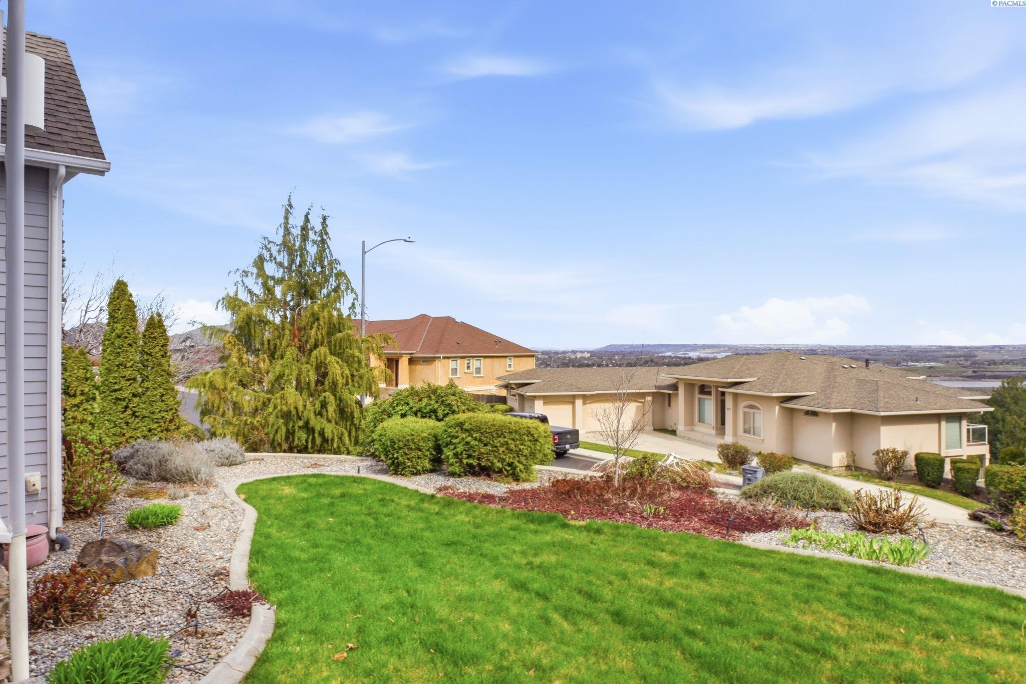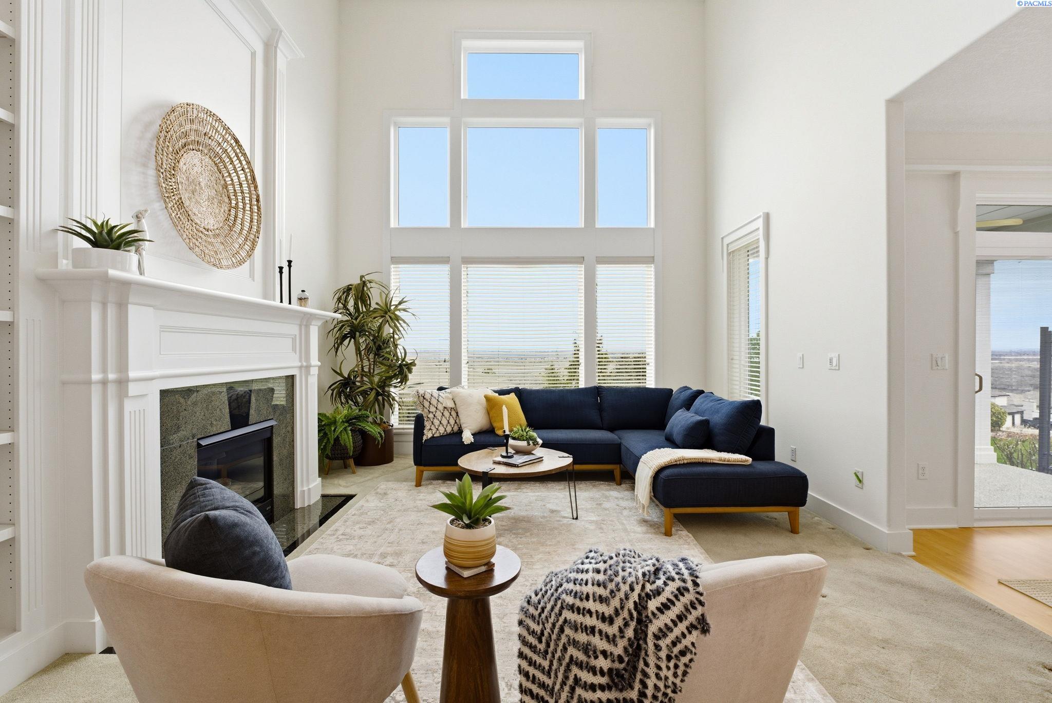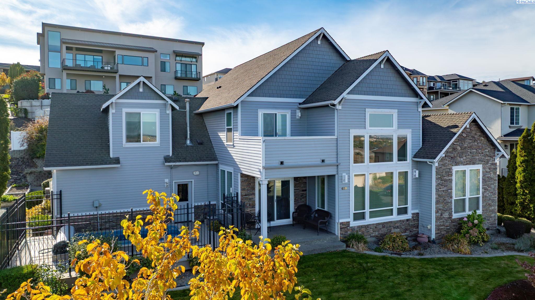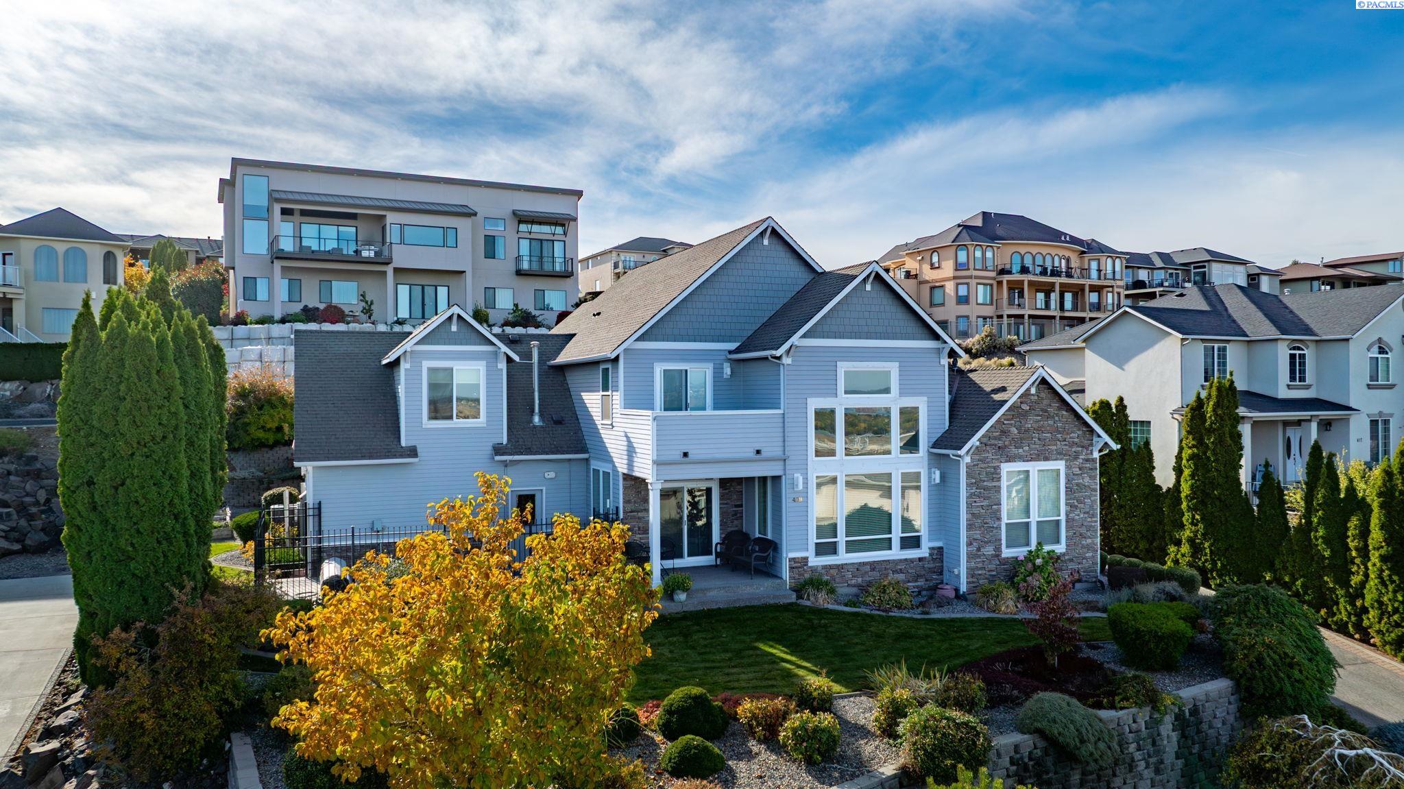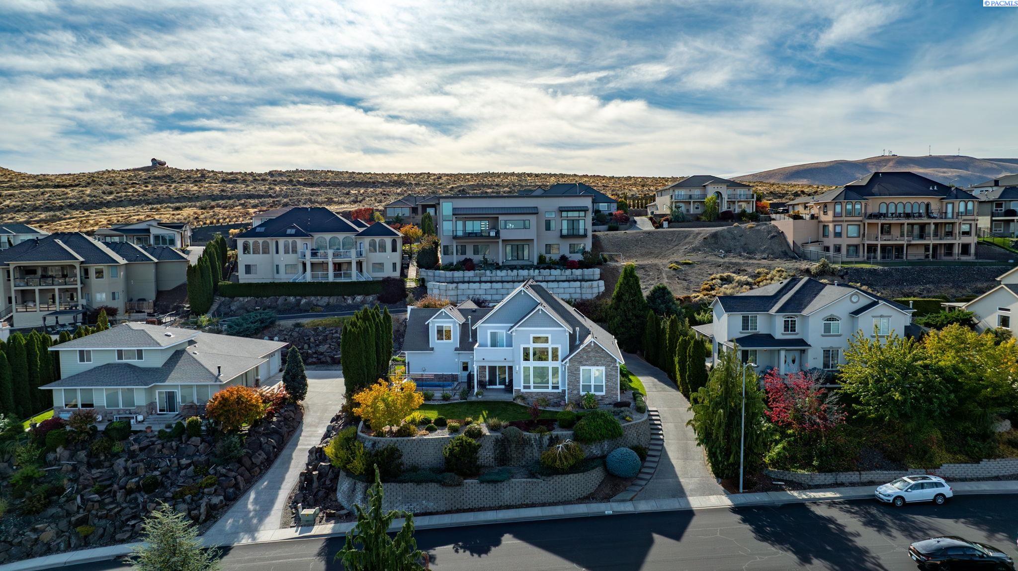 Perched to capture sweeping views and unforgettable Tri-City sunrises, this stunning custom Craftsman home showcases impeccable craftsmanship and timeless detail throughout. From solid maple floors and elaborate millwork to solid core doors, wainscoting, and charming period transoms, every inch reflects quality and care. The inviting main level welcomes you with a formal dining room and a cozy office with fireplace, while the primary suite offers convenient main-floor living. The living room features dramatic two-story. floor-to-ceiling windows that frame the views beautifully. The kitchen is thoughtfully designed with quartz countertops, under-cabinet lighting, and flows seamlessly into the main living spaces. A well-appointed laundry room includes extra cabinetry and a utility sink for added function. A striking solid maple staircase leads upstairs to a loft/desk area-an ideal spot to work or unwind while taking in the scenery-along with three additional bedrooms and full bath. The spacious bonus room that can serve as that fourth bedroom or flexible living space. Car enthusiasts and collectors will appreciate the tandem bay garage and custom climate-controlled wine cellar. Outside, a swim spa creates the perfect setting to relax and soak in the views. The approach to the home offers a sense of privacy and arrival-gently guiding you to a tucked-away setting where you'll find flat parking and an easy turnaround area, creating both convenience and a peaceful, hidden-garden feel.