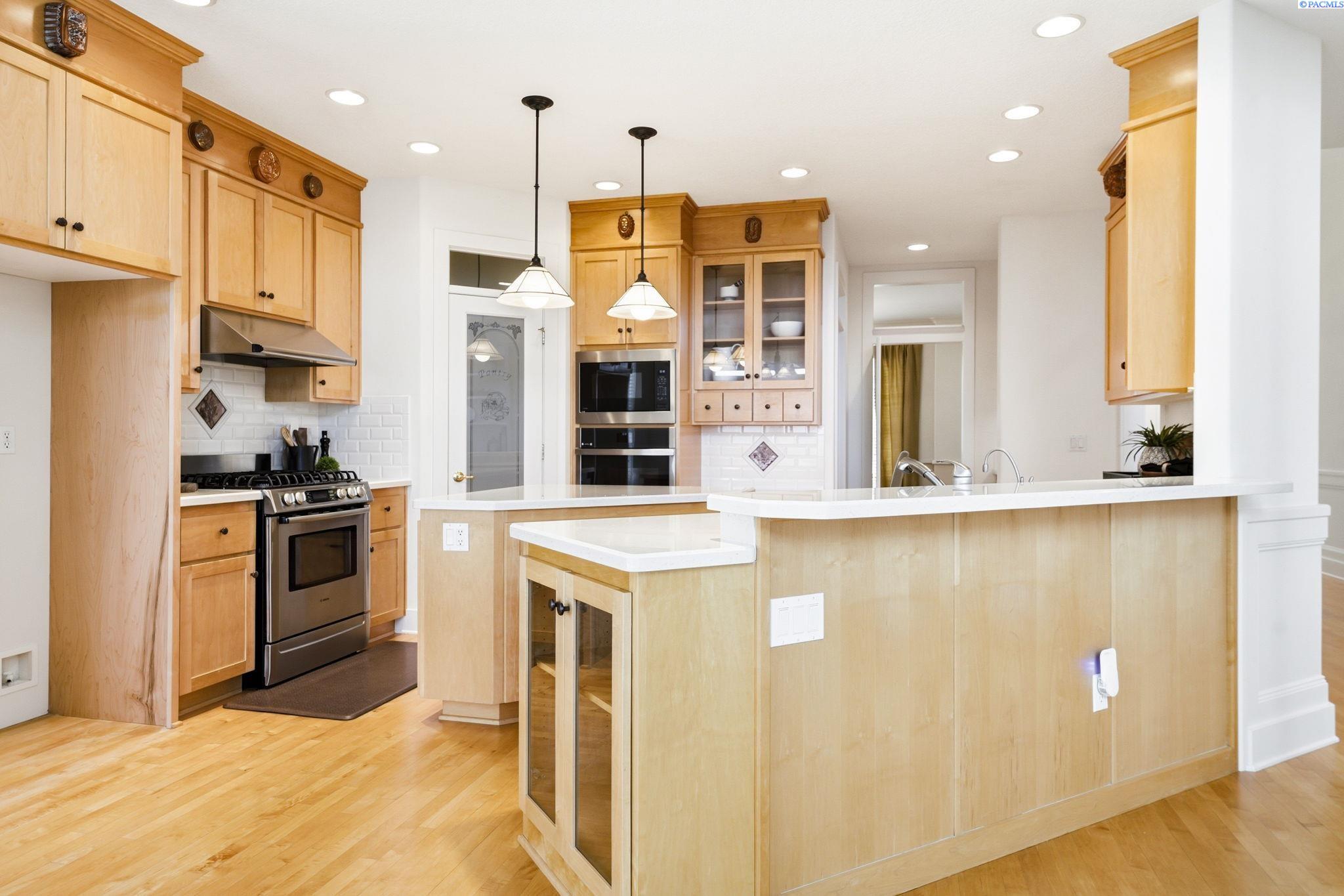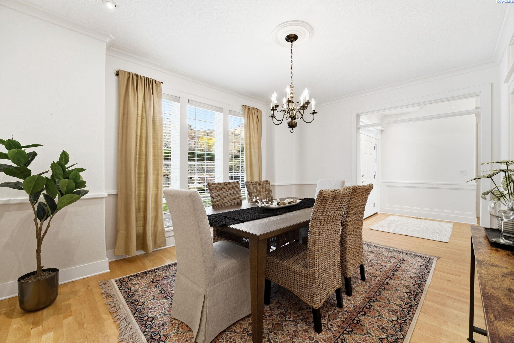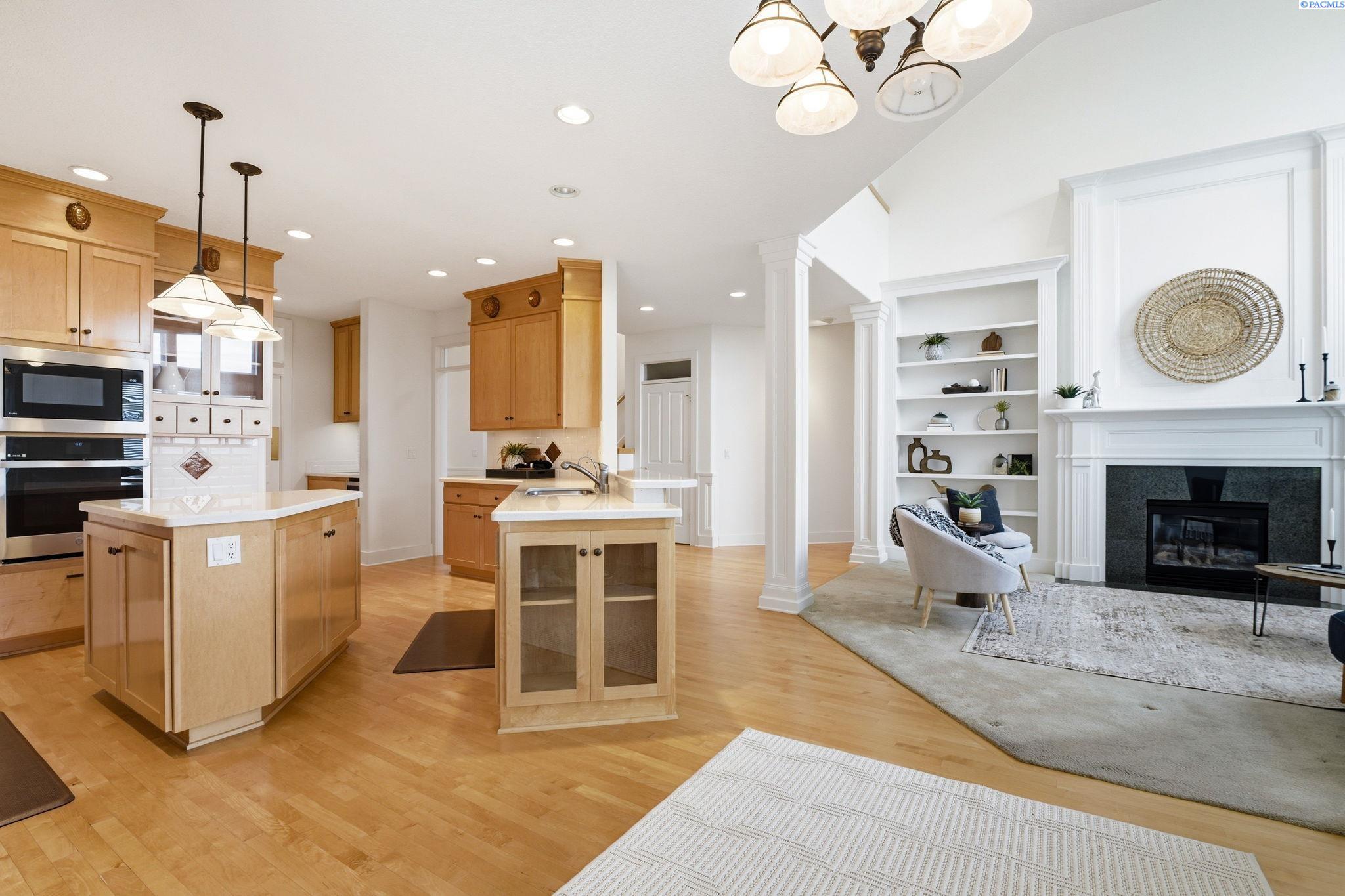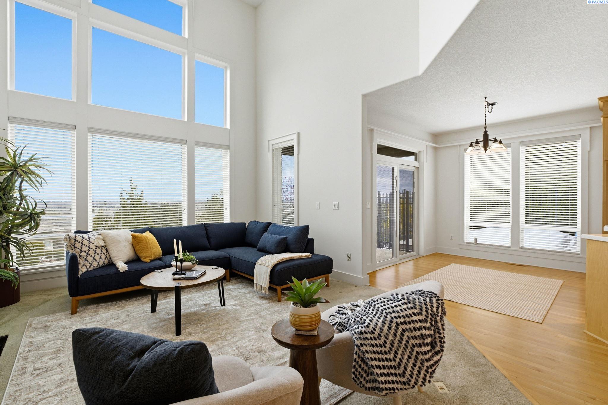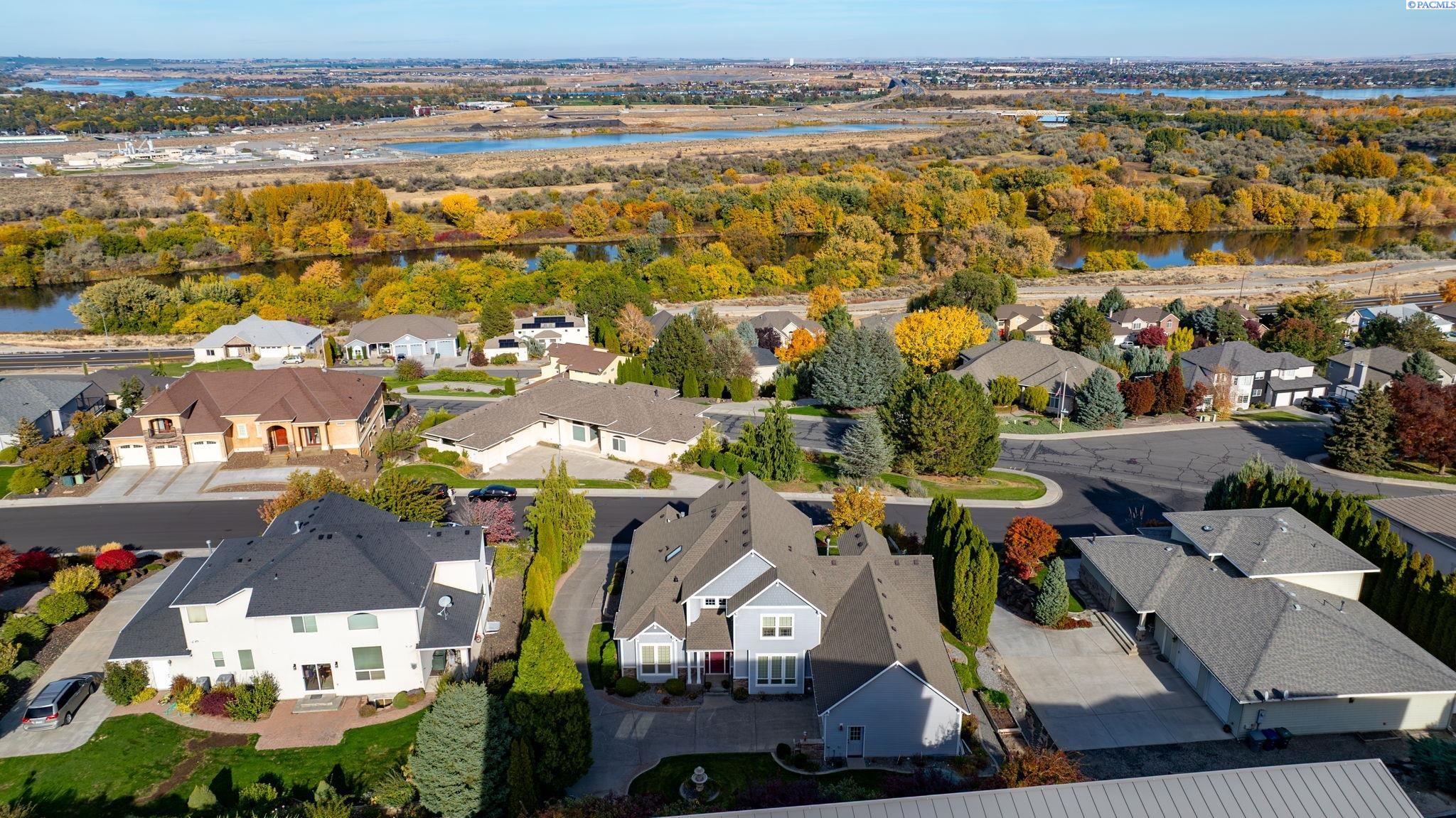 Perched to capture sweeping views and unforgettable Tri-City sunrises, this stunning custom Craftsman home showcases impeccable craftsmanship and timeless detail throughout. From solid maple floors and elaborate millwork to solid core doors, wainscoting, and charming period transoms, every inch reflects quality and care. The inviting main level welcomes you with a formal dining room and a cozy office with fireplace, while the primary suite offers convenient main-floor living. The living room features dramatic two-story. floor-to-ceiling windows that frame the views beautifully. The kitchen is thoughtfully designed with quartz countertops, under-cabinet lighting, and flows seamlessly into the main living spaces. A well-appointed laundry room includes extra cabinetry and a utility sink for added function. A striking solid maple staircase leads upstairs to a loft/desk area-an ideal spot to work or unwind while taking in the scenery-along with three additional bedrooms and full bath. The spacious bonus room that can serve as that fourth bedroom or flexible living space. Car enthusiasts and collectors will appreciate the tandem bay garage and custom climate-controlled wine cellar. Outside, a swim spa creates the perfect setting to relax and soak in the views. The approach to the home offers a sense of privacy and arrival-gently guiding you to a tucked-away setting where you'll find flat parking and an easy turnaround area, creating both convenience and a peaceful, hidden-garden feel.