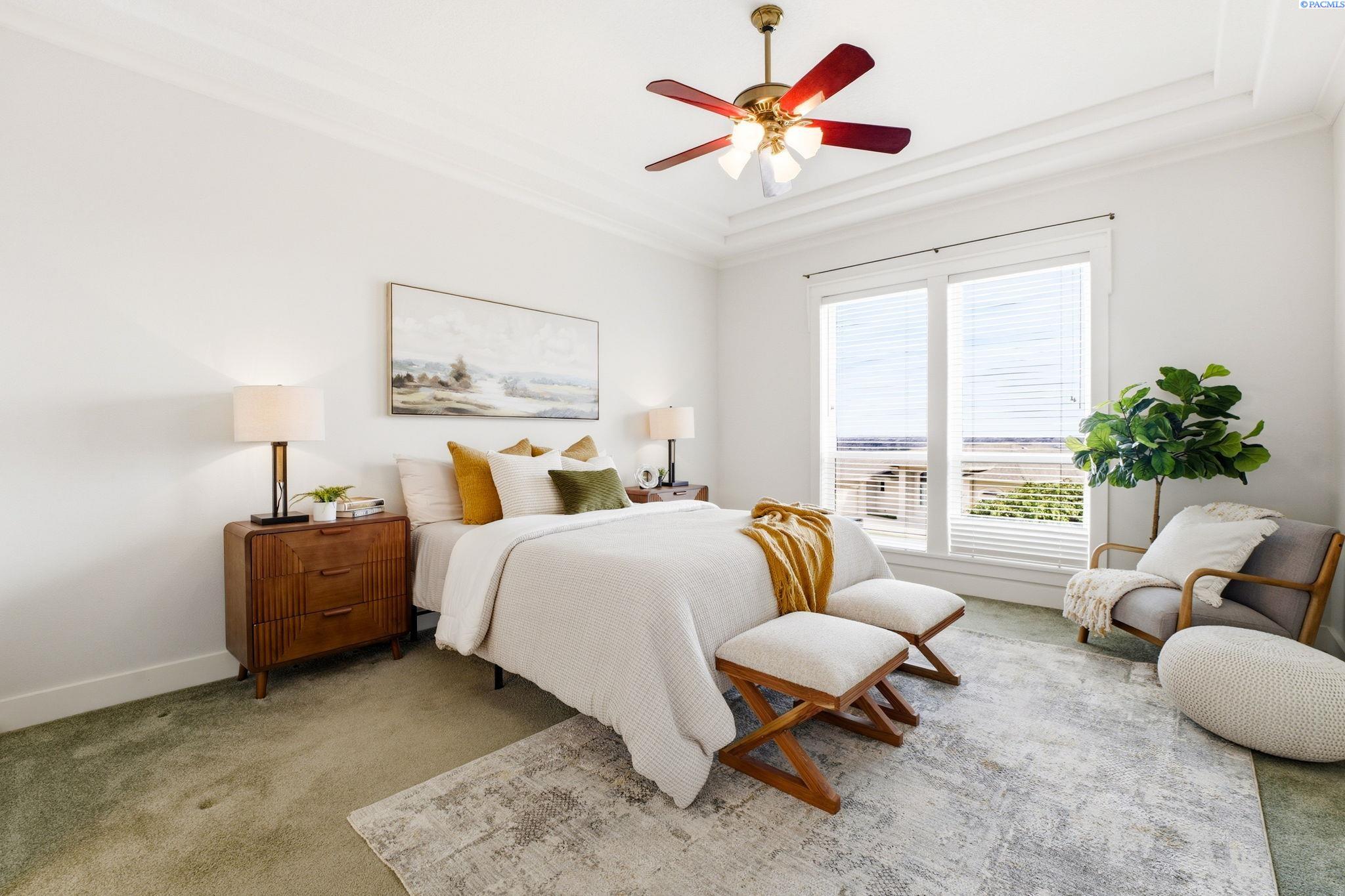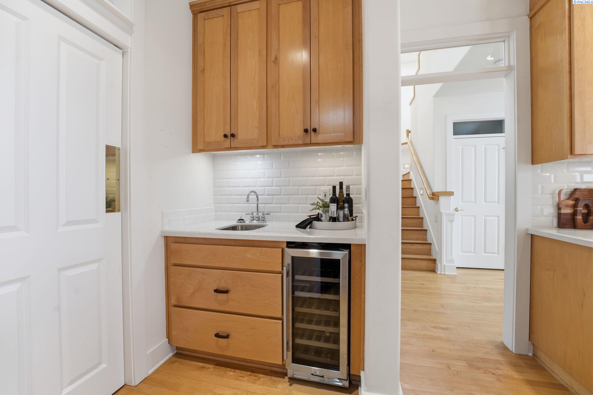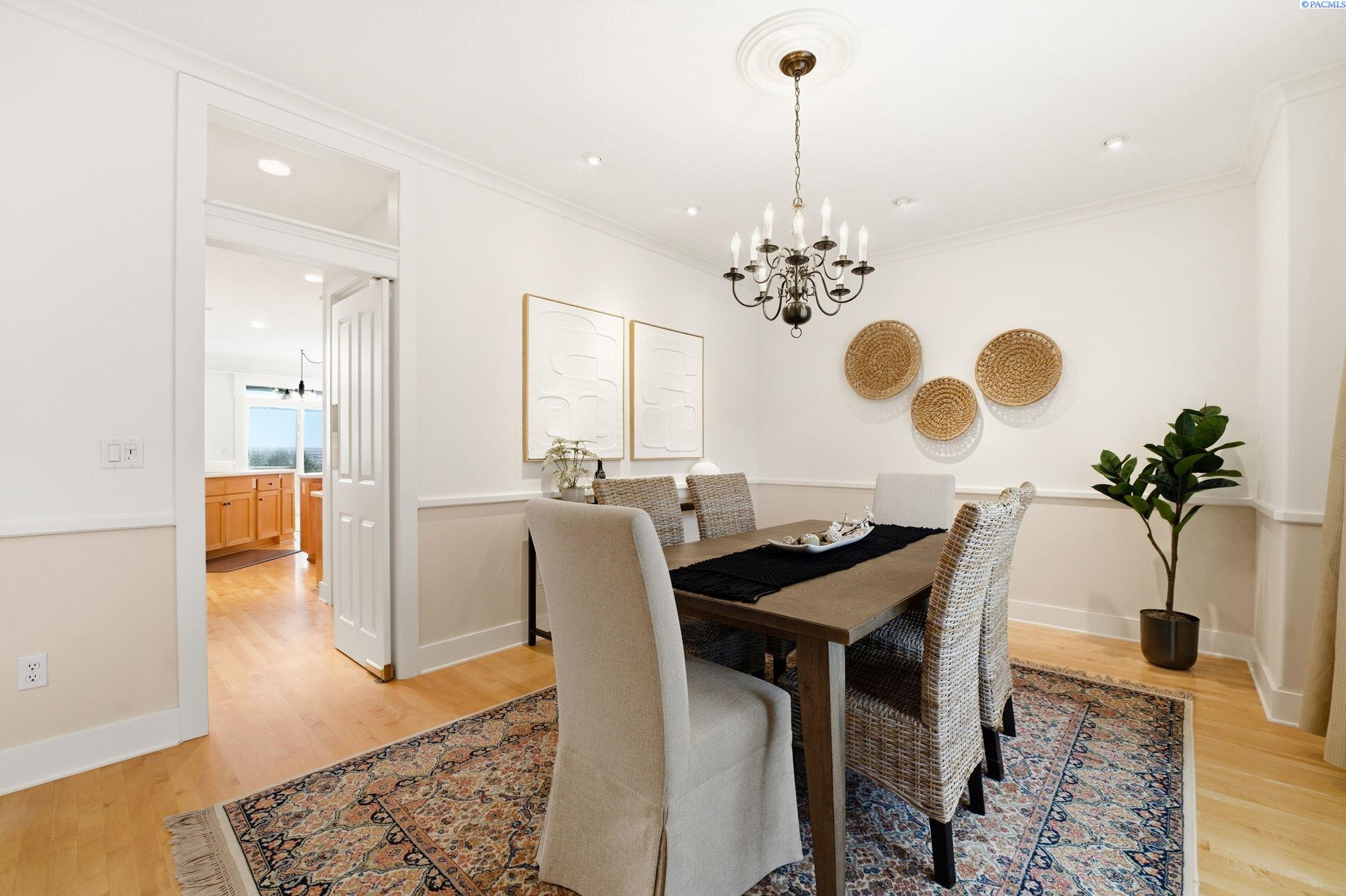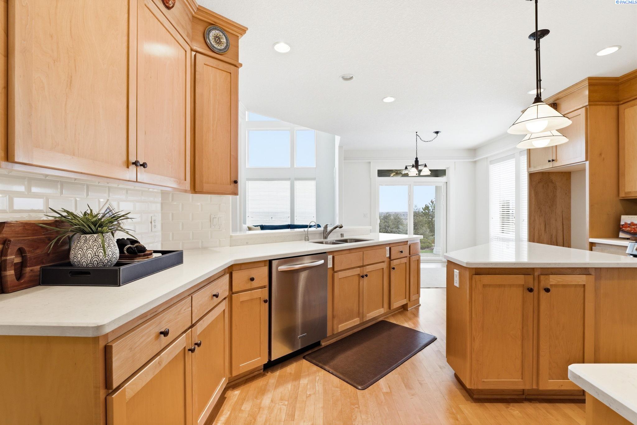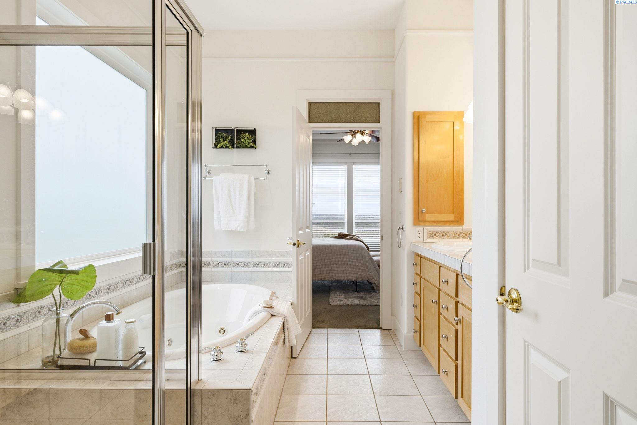 Perched to capture sweeping views and unforgettable Tri-City sunrises, this stunning custom Craftsman home showcases impeccable craftsmanship and timeless detail throughout. From solid maple floors and elaborate millwork to solid core doors, wainscoting, and charming period transoms, every inch reflects quality and care. The inviting main level welcomes you with a formal dining room and a cozy office with fireplace, while the primary suite offers convenient main-floor living. The living room features dramatic two-story. floor-to-ceiling windows that frame the views beautifully. The kitchen is thoughtfully designed with quartz countertops, under-cabinet lighting, and flows seamlessly into the main living spaces. A well-appointed laundry room includes extra cabinetry and a utility sink for added function. A striking solid maple staircase leads upstairs to a loft/desk area-an ideal spot to work or unwind while taking in the scenery-along with three additional bedrooms and full bath. The spacious bonus room that can serve as that fourth bedroom or flexible living space. Car enthusiasts and collectors will appreciate the tandem bay garage and custom climate-controlled wine cellar. Outside, a swim spa creates the perfect setting to relax and soak in the views. The approach to the home offers a sense of privacy and arrival-gently guiding you to a tucked-away setting where you'll find flat parking and an easy turnaround area, creating both convenience and a peaceful, hidden-garden feel.