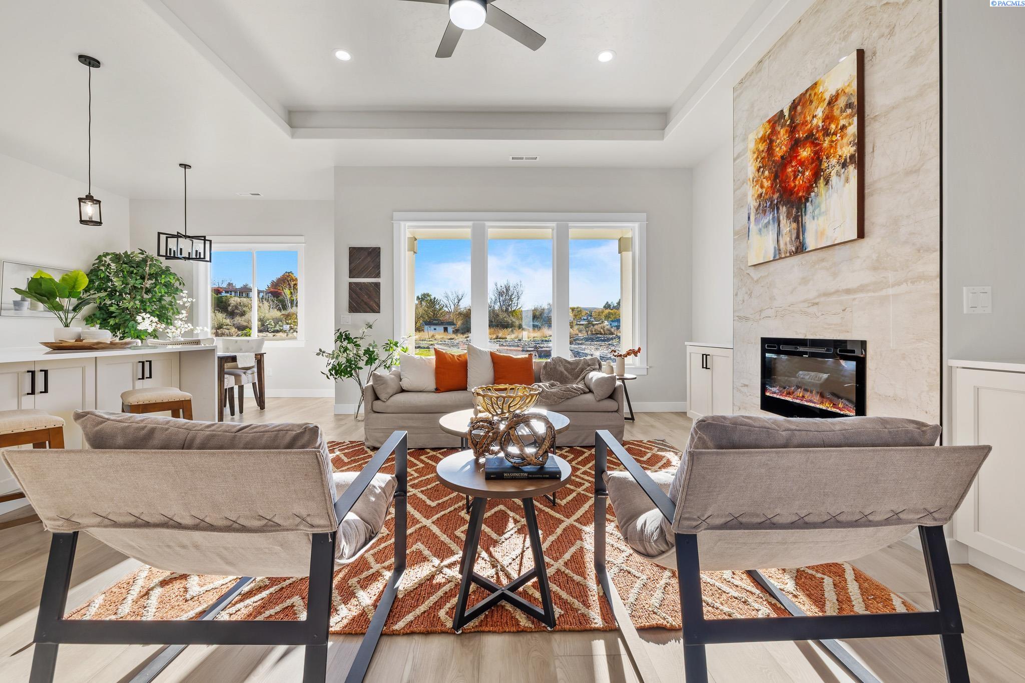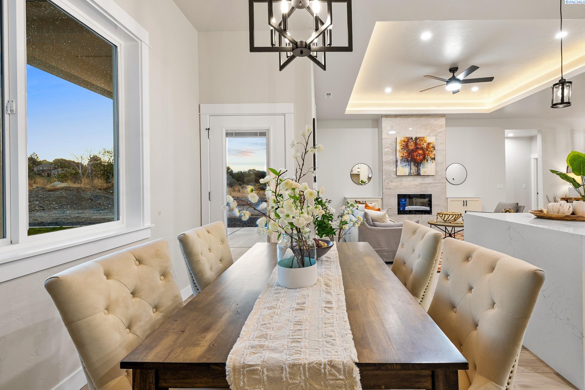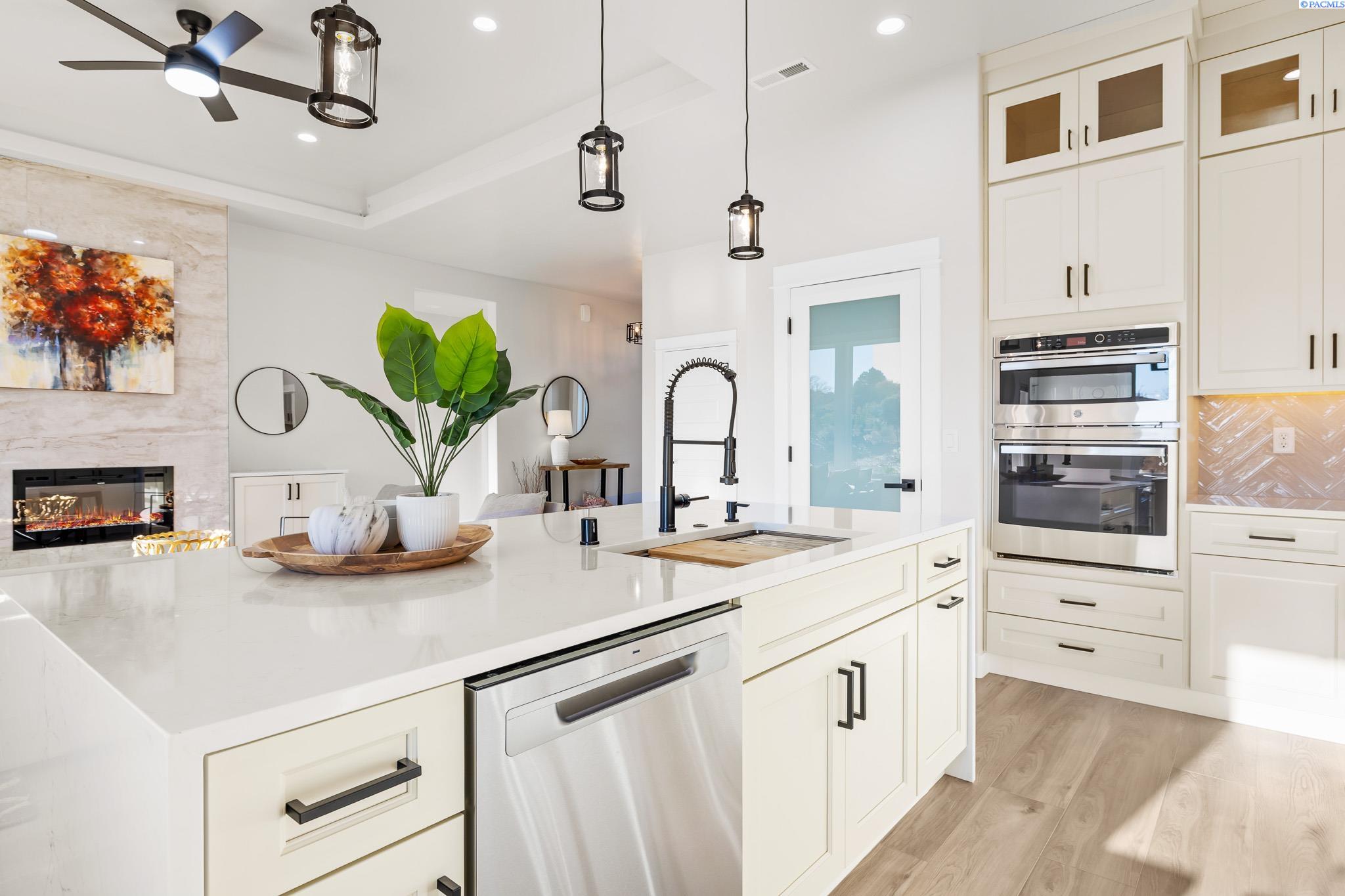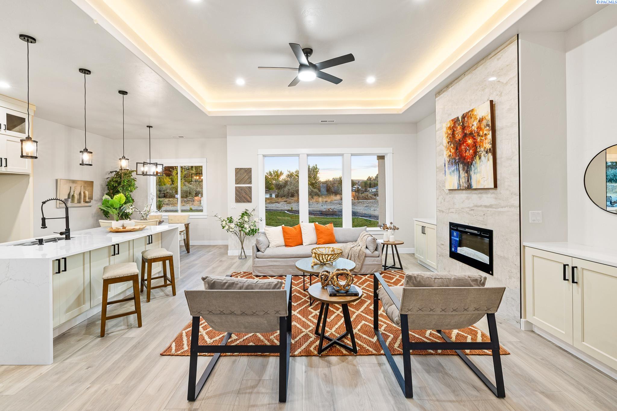 Welcome to your dream home! This exquisite 1,968 sqft, 3 bedroom plus office home combines contemporary elegance with thoughtful design. Step inside to discover an open concept layout featuring luxury vinyl planking throughout creating a seamless flow from room to room. The heart of the home is the gourmet kitchen showcasing a breathtaking waterfall island, custom cabinetry and high end finishes. The spacious master suite is a true sanctuary, large walk-in closet and a spa-inspired bathroom with a beautifully tiled shower and a luxurious standalone tub. Convenience meets style with a utility sink in the laundry room, making daily tasks a breeze. Outside, the home impresses with a striking stucco and stone exterior and curb appeal. Gather around the wood burning fire pit, surrounded by elegant curbing and take in the stunning views that make this backyard an entertainer's paradise.Every detail of this home reflects quality, from the high end finishes to the thoughtfully designed spaces. Don't miss your chance to own this masterpiece of modern living in a prime location. Schedule your private tour today!