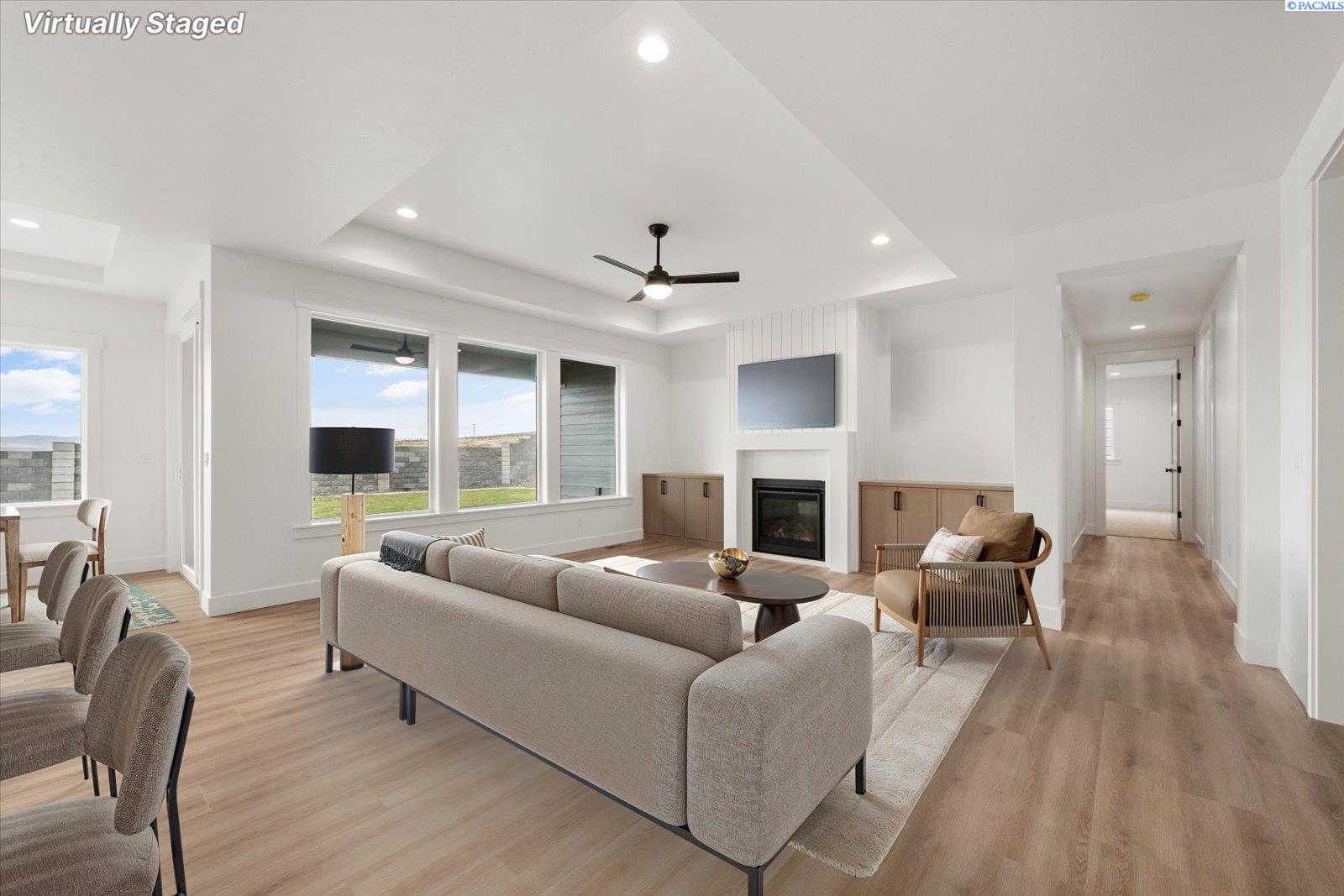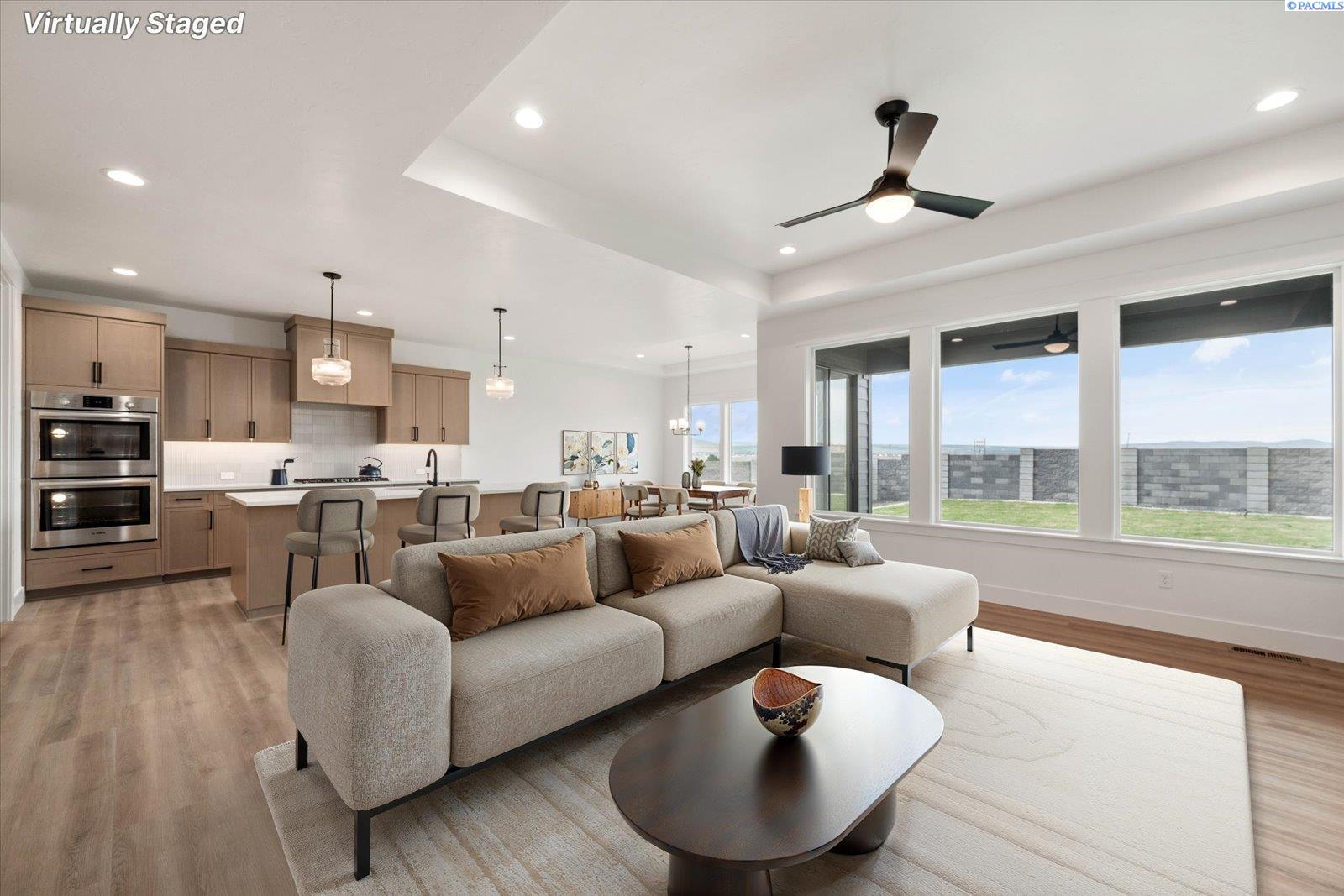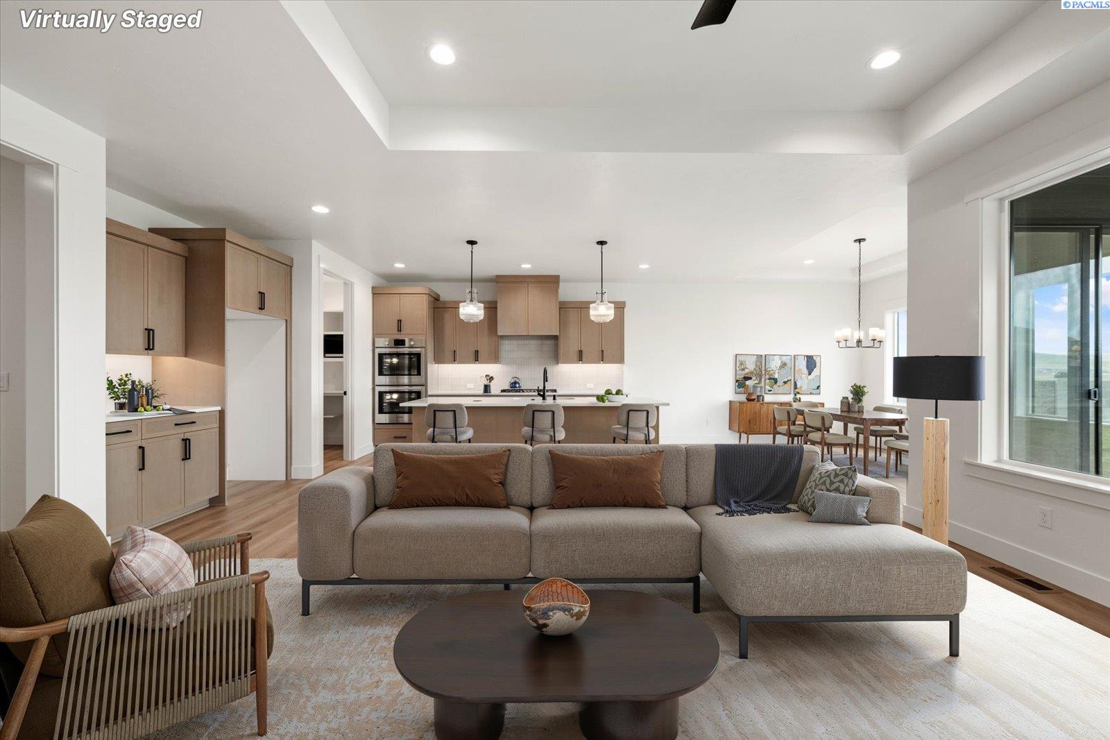 MLS# 291512 Welcome to The Venetia by Riverwood Homes! Located in the highly sought-after Siena Hills community, this stunning single-level home with a bonus room showcases the quality construction and attention to detail Riverwood is known forâbuilt with no corners cut, where quality is never compromised. With 4 spacious bedrooms, 3.5 bathrooms, and a versatile bonus room with its own bathroom that can easily function as a 5th bedroom, this home is designed for flexibility, comfort, and long-term living.The open-concept design centers around a true chefâs kitchen featuring Bosch stainless steel appliances, quartz countertops, a wall oven, and a large butlerâs pantry for added storage and functionality. High-end touches like soft-close cabinetry and tile flooring in the laundry room and bathrooms reflect the commitment to quality at every turn.The primary suite is thoughtfully designed as a private retreat, featuring a beautifully tiled shower, coffered ceiling, ceiling fan, and generous storage. Built with efficiency in mind, this home includes a cold climate heat pump, Energy Star certification, a gas tankless water heater, a solar panel system, and rain guttersâdelivering both performance and long-term savings.Step outside to a covered patio with pre-wiring for ceiling fans, overlooking a professionally landscaped yard complete with sprinklers, sod, shrubs, and decorative rock accentsâready for enjoyment from day one.A true highlight of this home is the massive 4-car garage with a dedicated RV bay, providing exceptional space for vehicles, storage, and all your lifestyle needs. An EV plug is also included, ensuring youâre equipped for the future.Every detail throughout the home reflects qualityâfrom wood-wrapped windows and hand-textured walls to the abundance of thoughtfully designed storage. A fireplace with a stone or tile surround anchors the family room, creating a warm and inviting space that blends craftsmanship with comfort.For directions, simply type "Siena Hills - Richland, WA" into Google Maps and come experience the difference in quality construction for yourself.