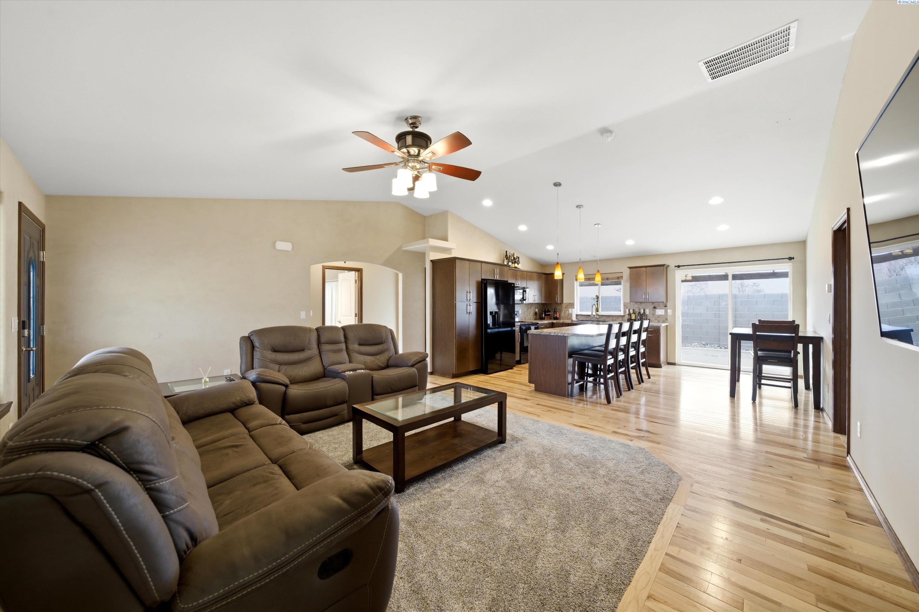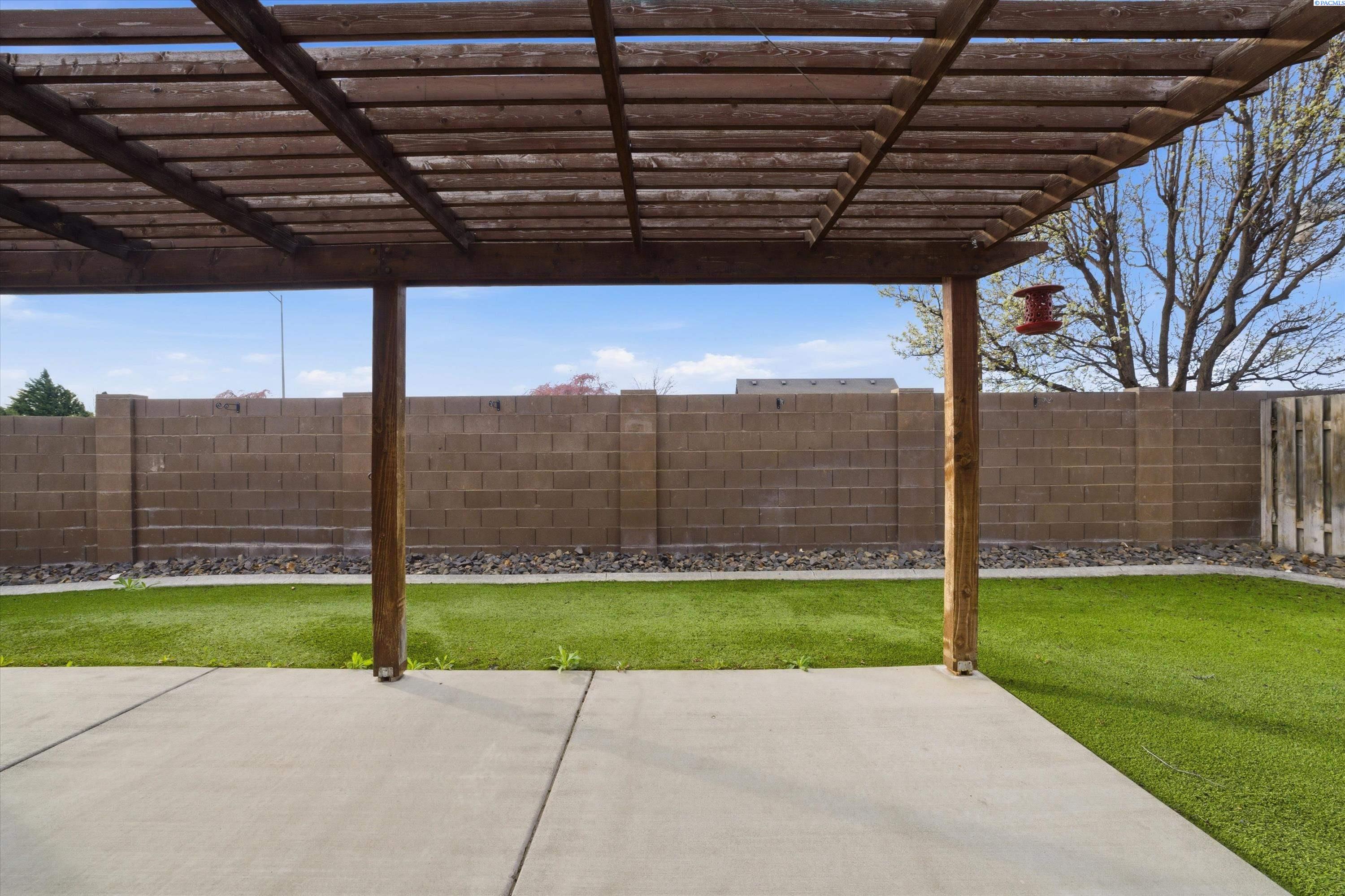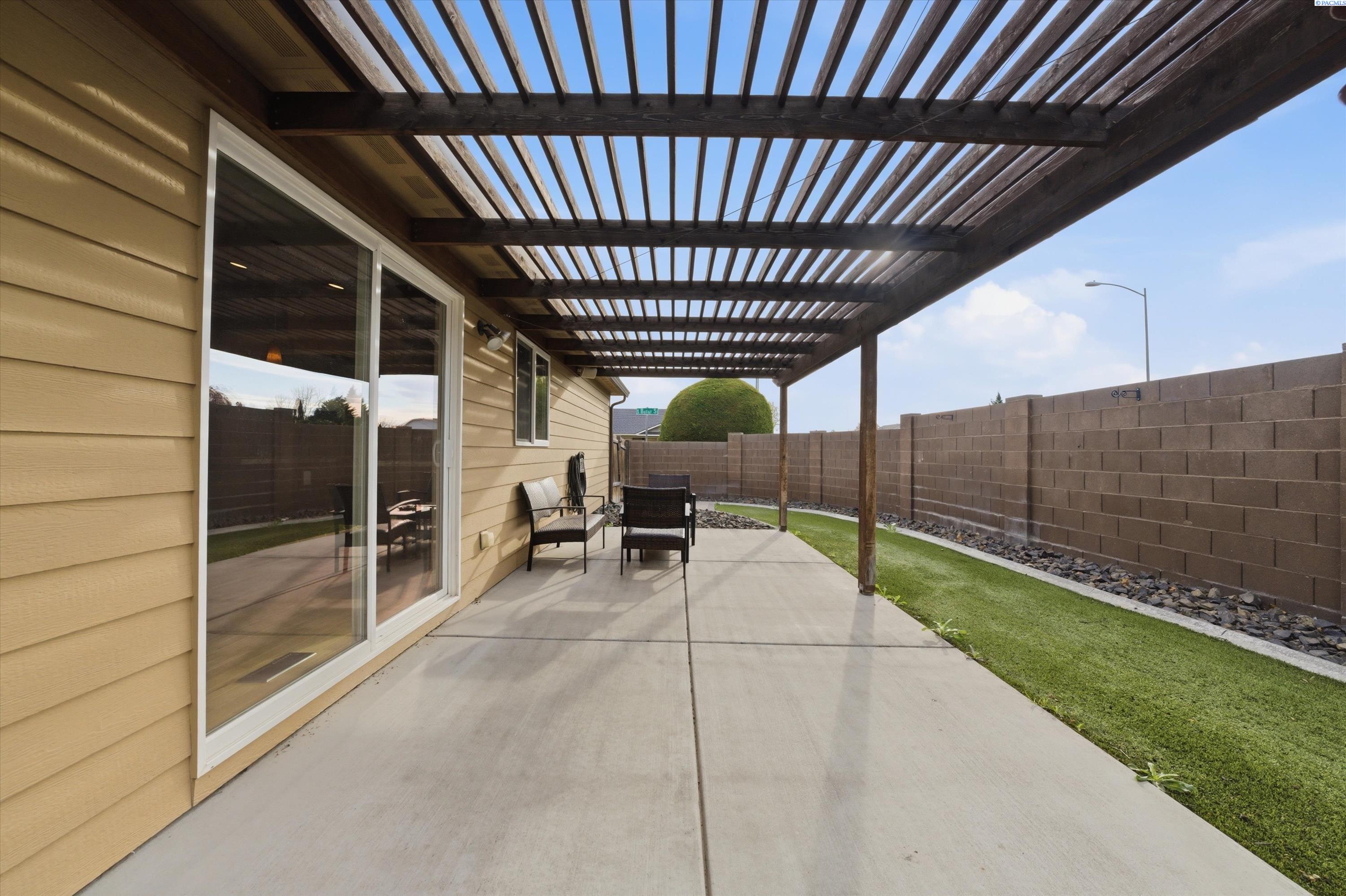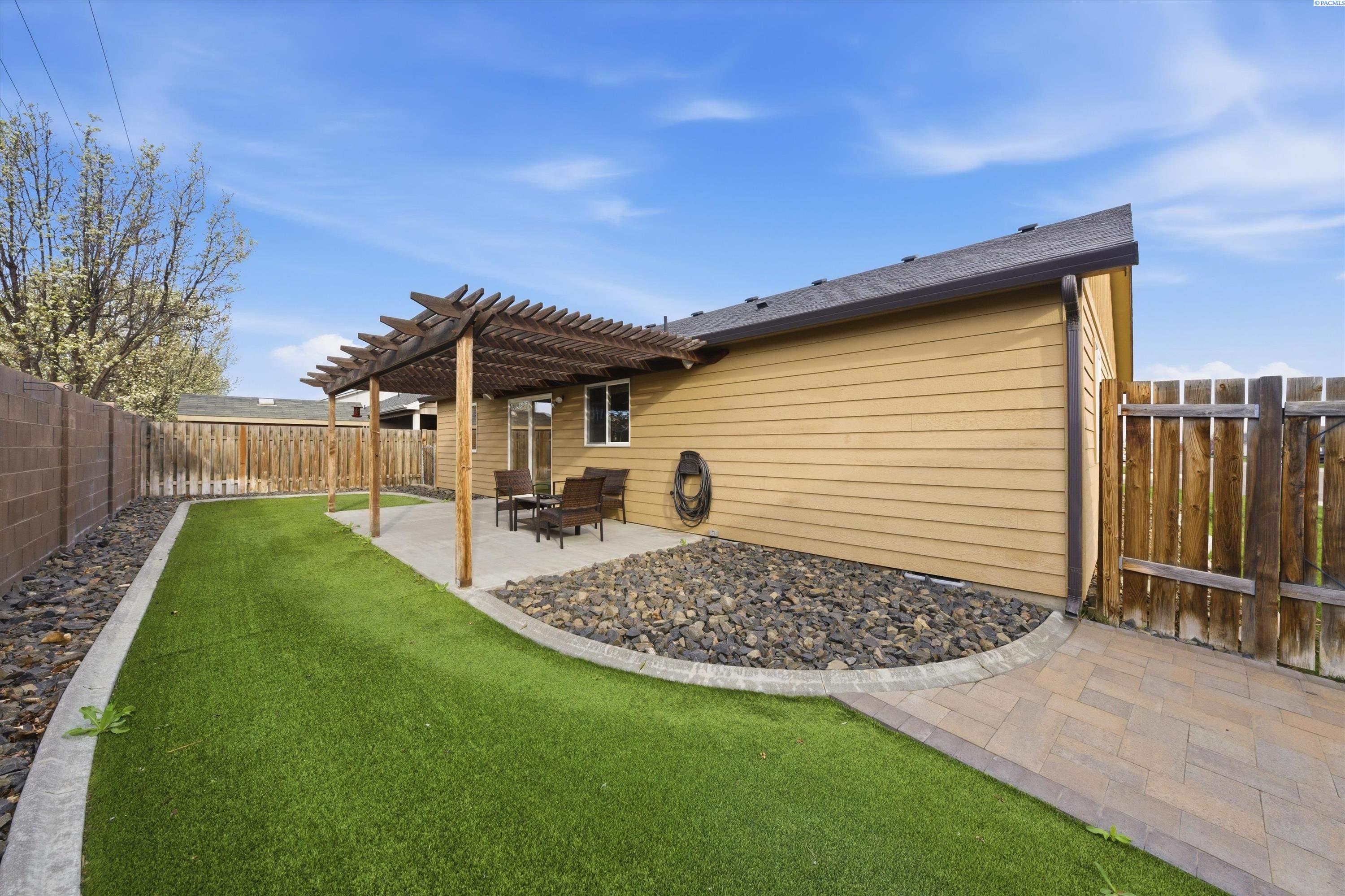 MLS# 291547 Welcome to this beautifully maintained home, ideally located in the heart of Central Kennewick. Thoughtfully updated with fresh interior paint and updated modern appliances, this home offers a clean, move-in-ready feel with stylish touches throughout. Step inside to an inviting open-concept floor plan with vaulted ceilings throughout, designed for both everyday living and effortless entertaining, and a large master suite. The spacious kitchen is the centerpiece of the home, featuring an oversized island that provides ample prep space, tiled backsplash with substantial amount of cabinetry, seating, and a natural gathering place for family and guests. Step out back to a private back patio with a large pergola and low maintenance astroturf that is pet friendly. The seamless flow between the kitchen, dining, and living areas creates a bright and airy atmosphere. Carpet is less than one year old and you will find tile in the bathrooms. Master bedroom included 2 walk-in closets. The laundry room is tiled and includes extra counter space and cabinets above for optimal storage. This home is move in ready, call your favorite realtor today!