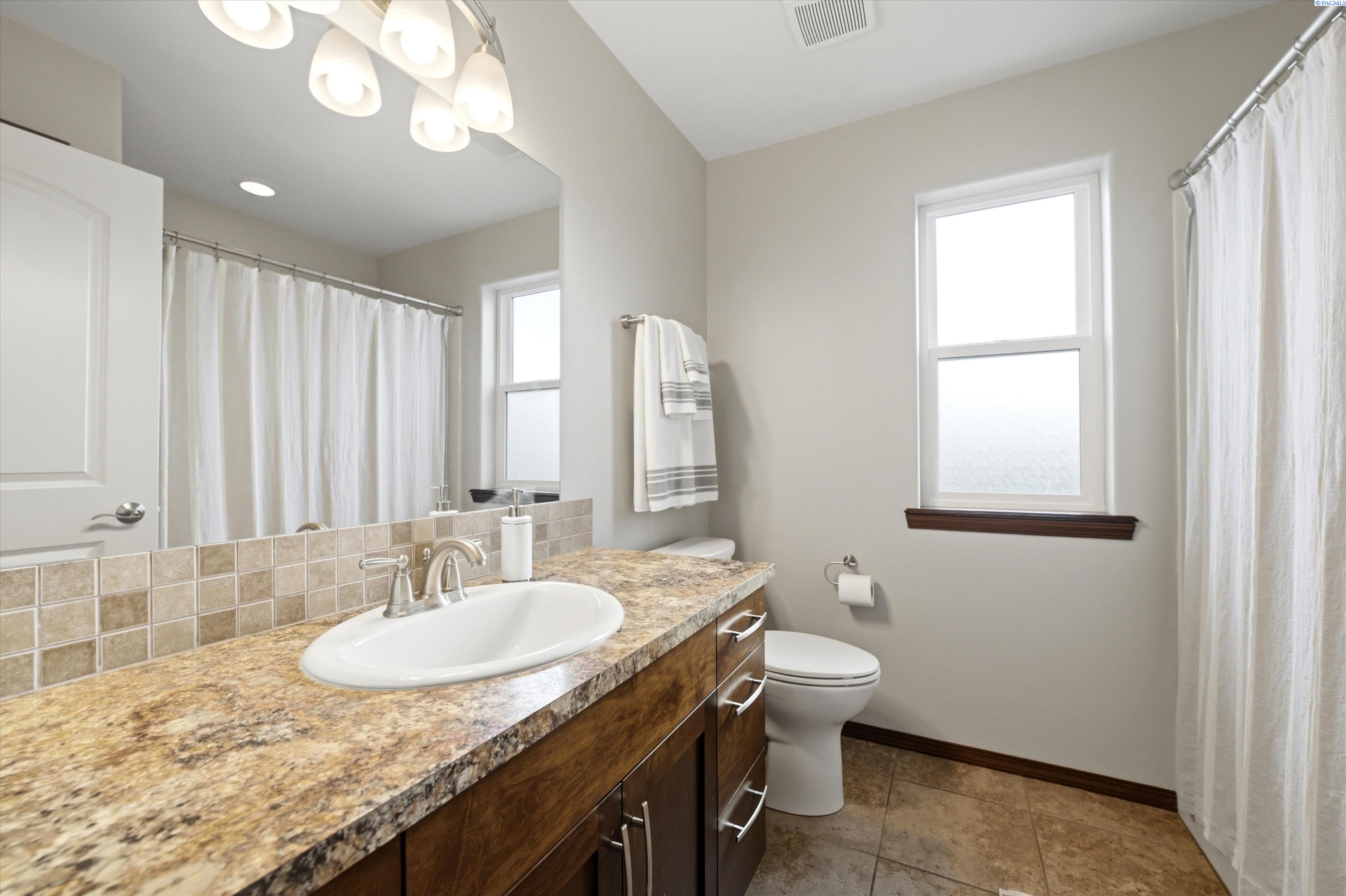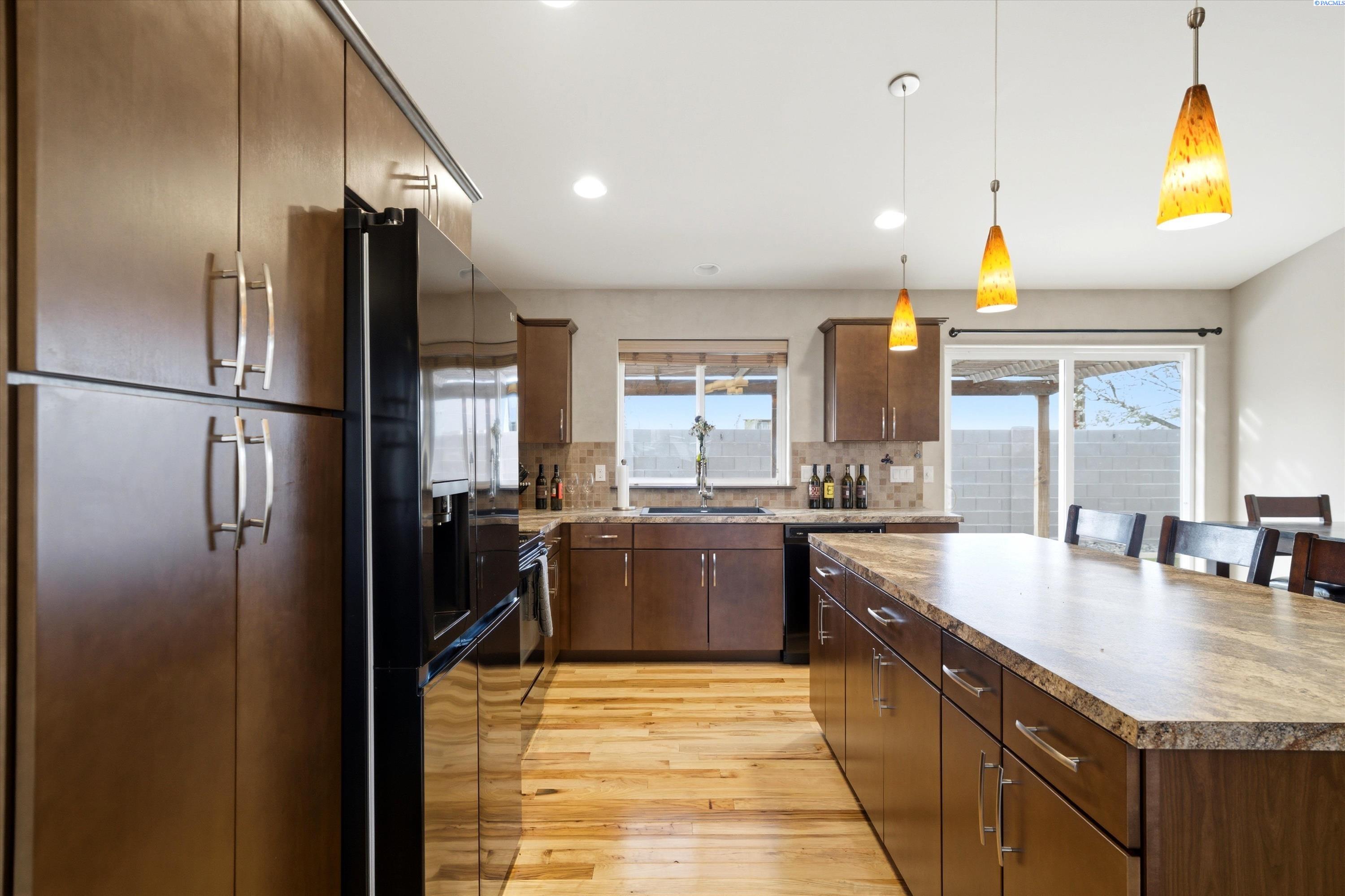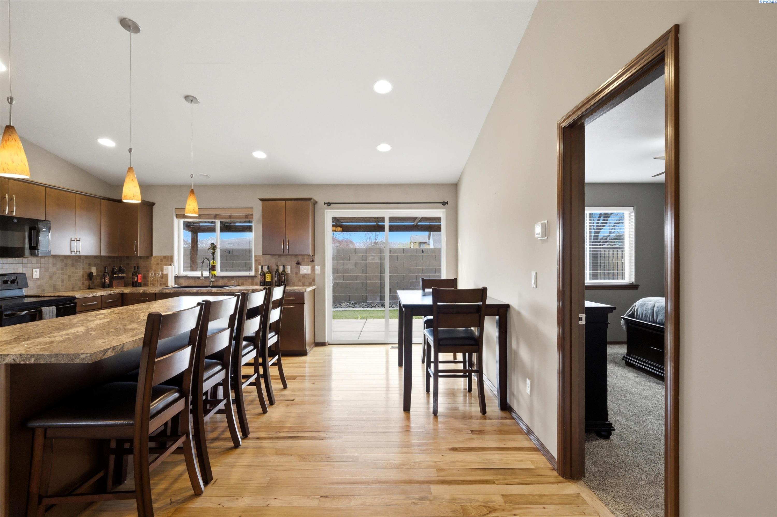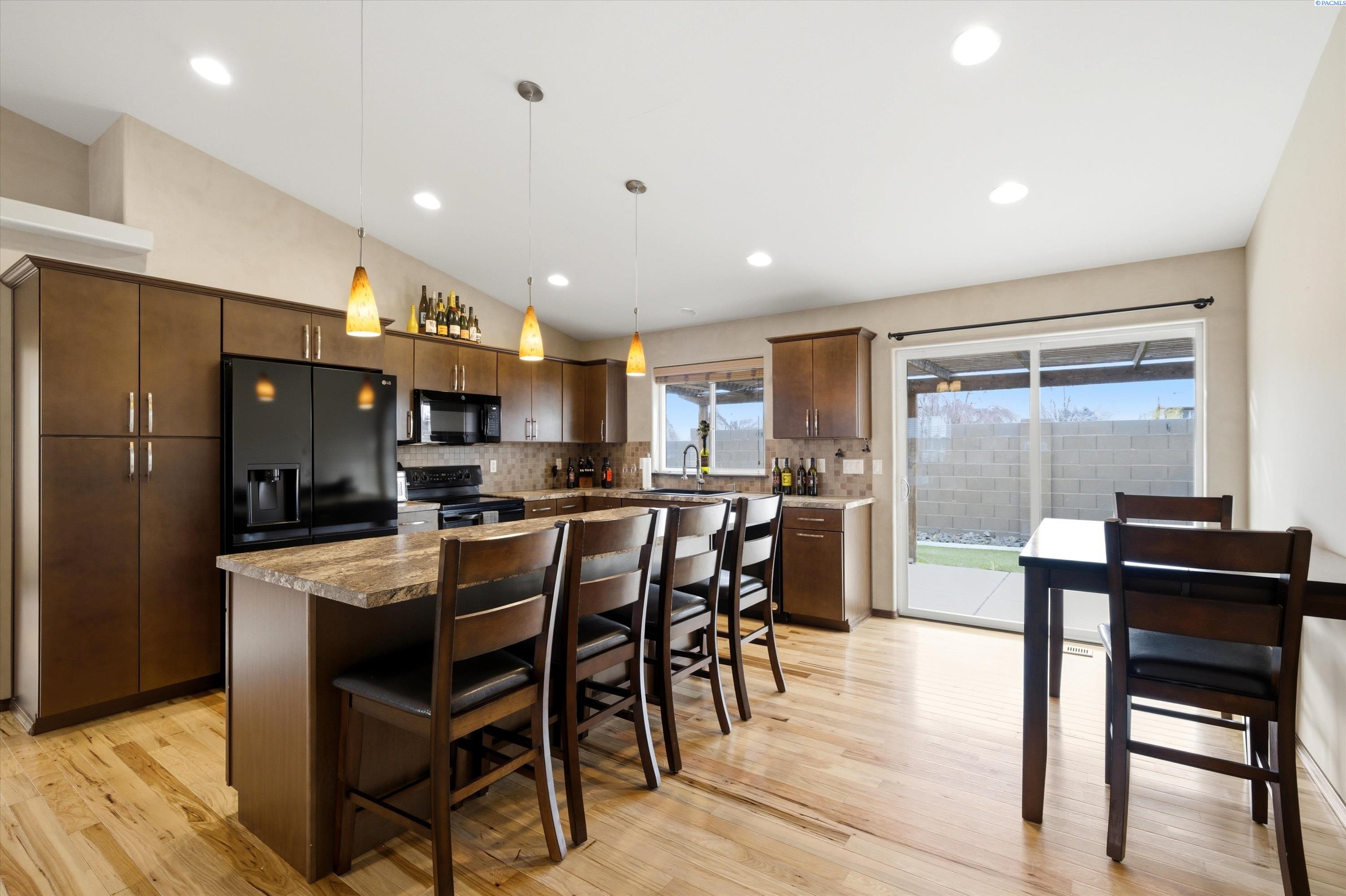 MLS# 291547 Welcome to this beautifully maintained home, ideally located in the heart of Central Kennewick. Thoughtfully updated with fresh interior paint and updated modern appliances, this home offers a clean, move-in-ready feel with stylish touches throughout. Step inside to an inviting open-concept floor plan with vaulted ceilings throughout, designed for both everyday living and effortless entertaining, and a large master suite. The spacious kitchen is the centerpiece of the home, featuring an oversized island that provides ample prep space, tiled backsplash with substantial amount of cabinetry, seating, and a natural gathering place for family and guests. Step out back to a private back patio with a large pergola and low maintenance astroturf that is pet friendly. The seamless flow between the kitchen, dining, and living areas creates a bright and airy atmosphere. Carpet is less than one year old and you will find tile in the bathrooms. Master bedroom included 2 walk-in closets. The laundry room is tiled and includes extra counter space and cabinets above for optimal storage. This home is move in ready, call your favorite realtor today!