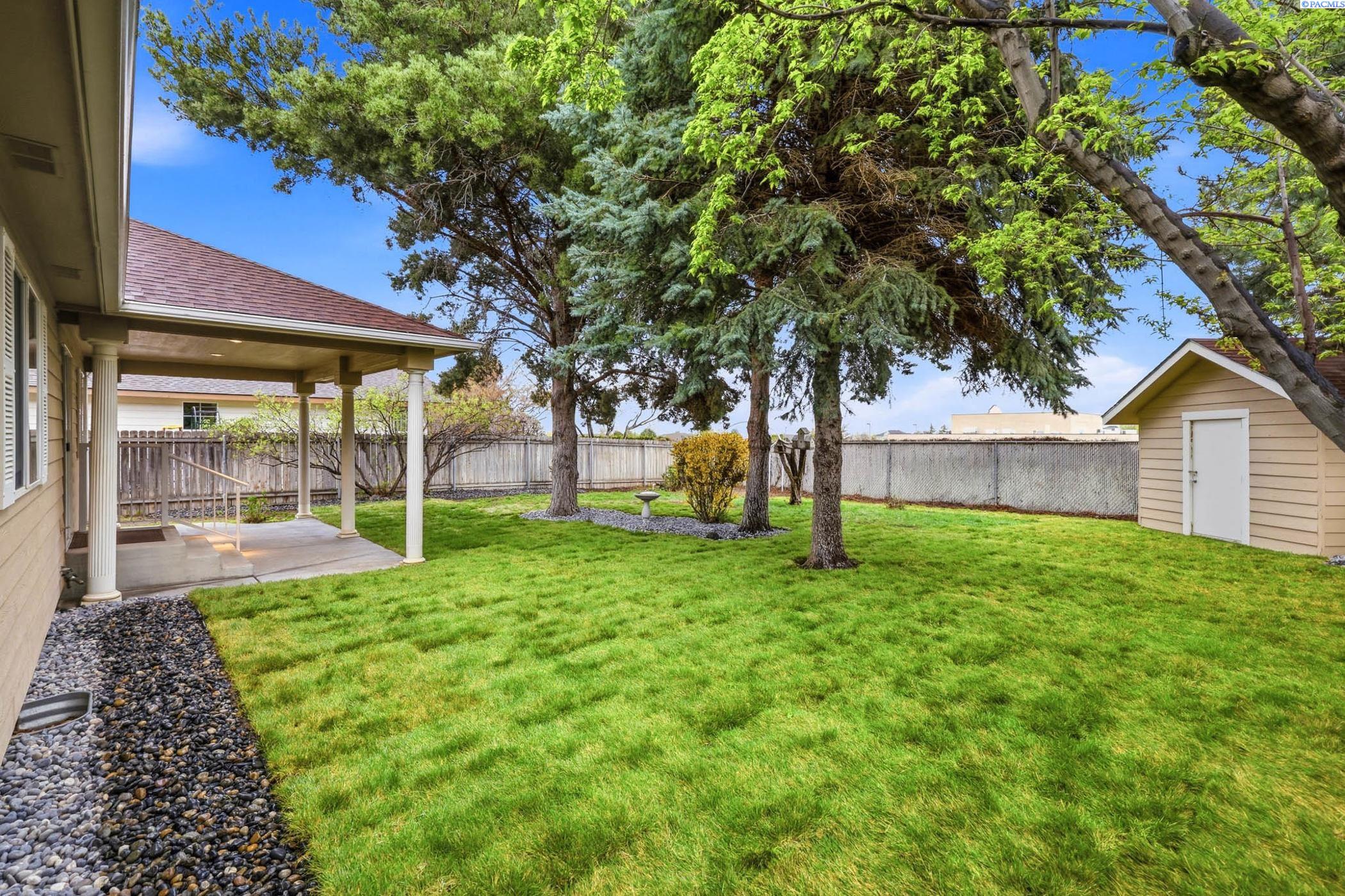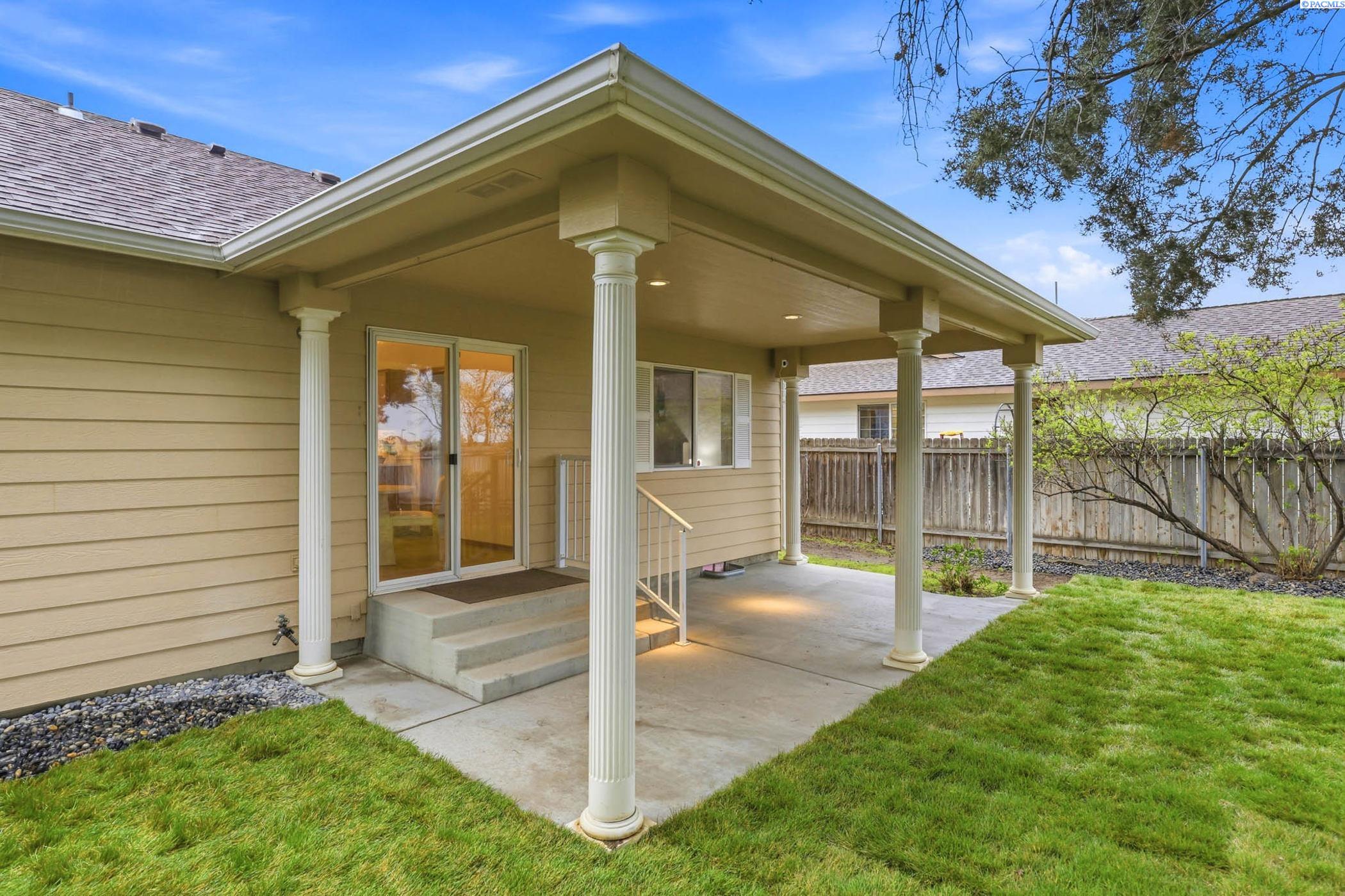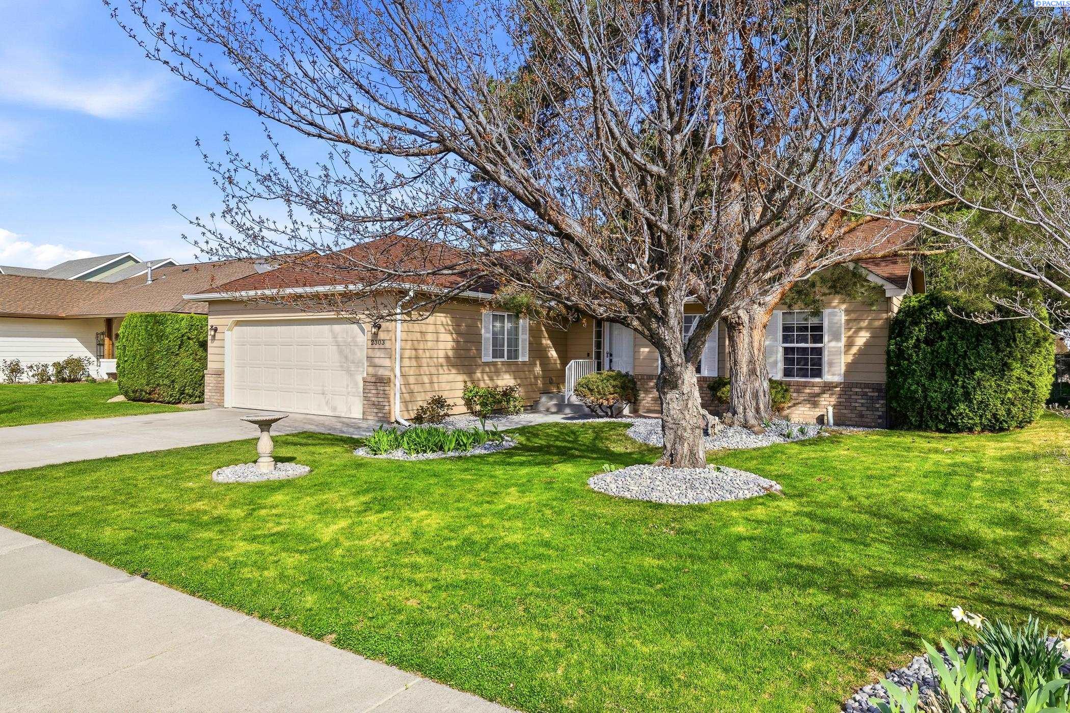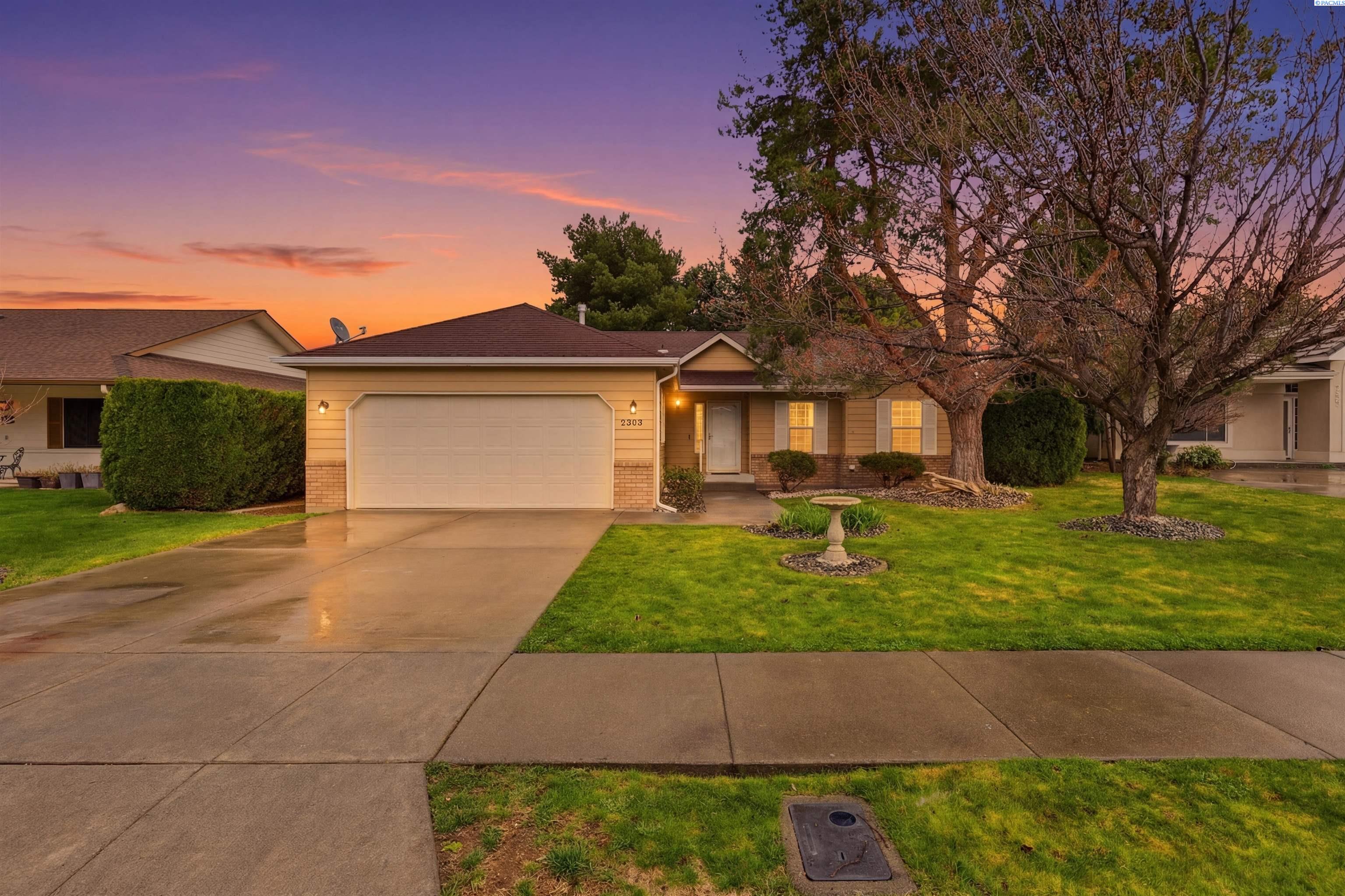 Welcome to 2303 S. Arthur Loop, a meticulously refreshed haven in the heart of Kennewick. This charming 3 bedroom, 2 bathroom rambler offers 1,120 square feet of updated living space. Step inside to brand new interior paint that brightens every corner, complimented by all new carpet and sleek laminate floors. The kitchen boasts gorgeous new quartz countertops and modern fixtures, thoughtfully designed with an open dining area. All bathrooms have quartz counters, new lighting, and fixtures. Outside enjoy a beautifully landscaped and large fully fenced yard with a covered patio perfect for entertaining or relaxing. The property also contains a 80 square foot shed built on a concrete slab perfect for storage or a some fun projects and backs up to a serene green belt offering a private peaceful backdrop with no neighbors behind you. The spacious two car garage includes built in shelving, providing ample storage and organization. This home really is move in ready, complete with all major appliances including washer, dryer, and refrigerator!
