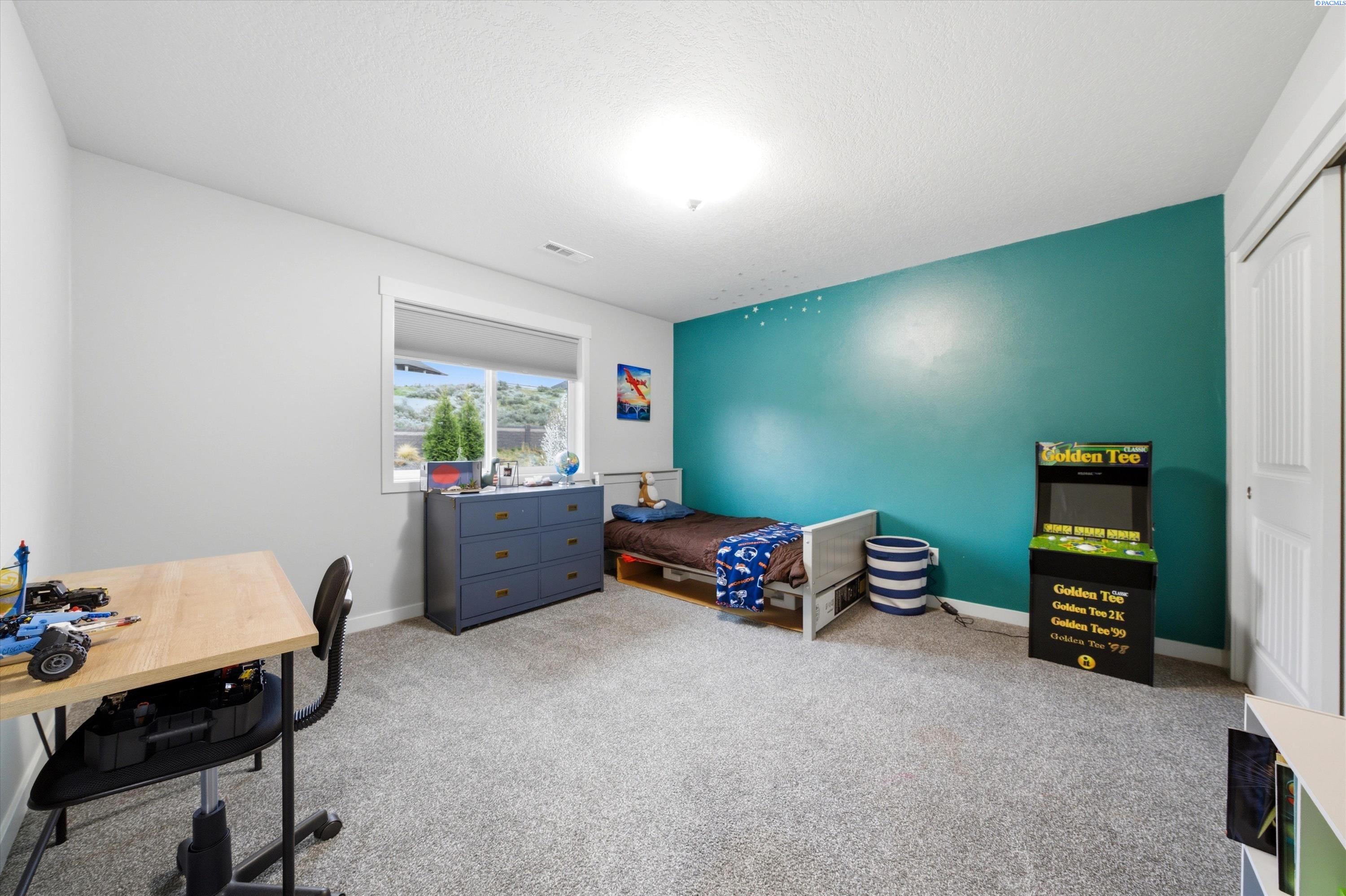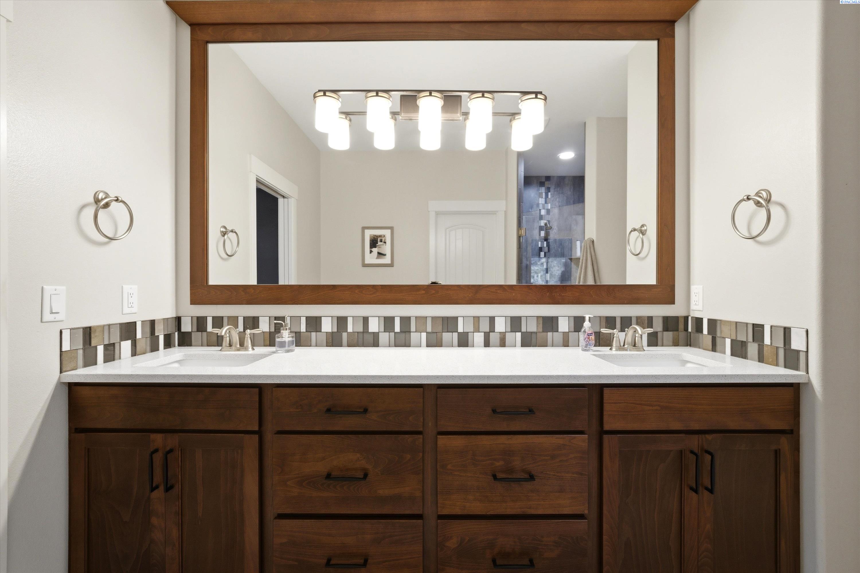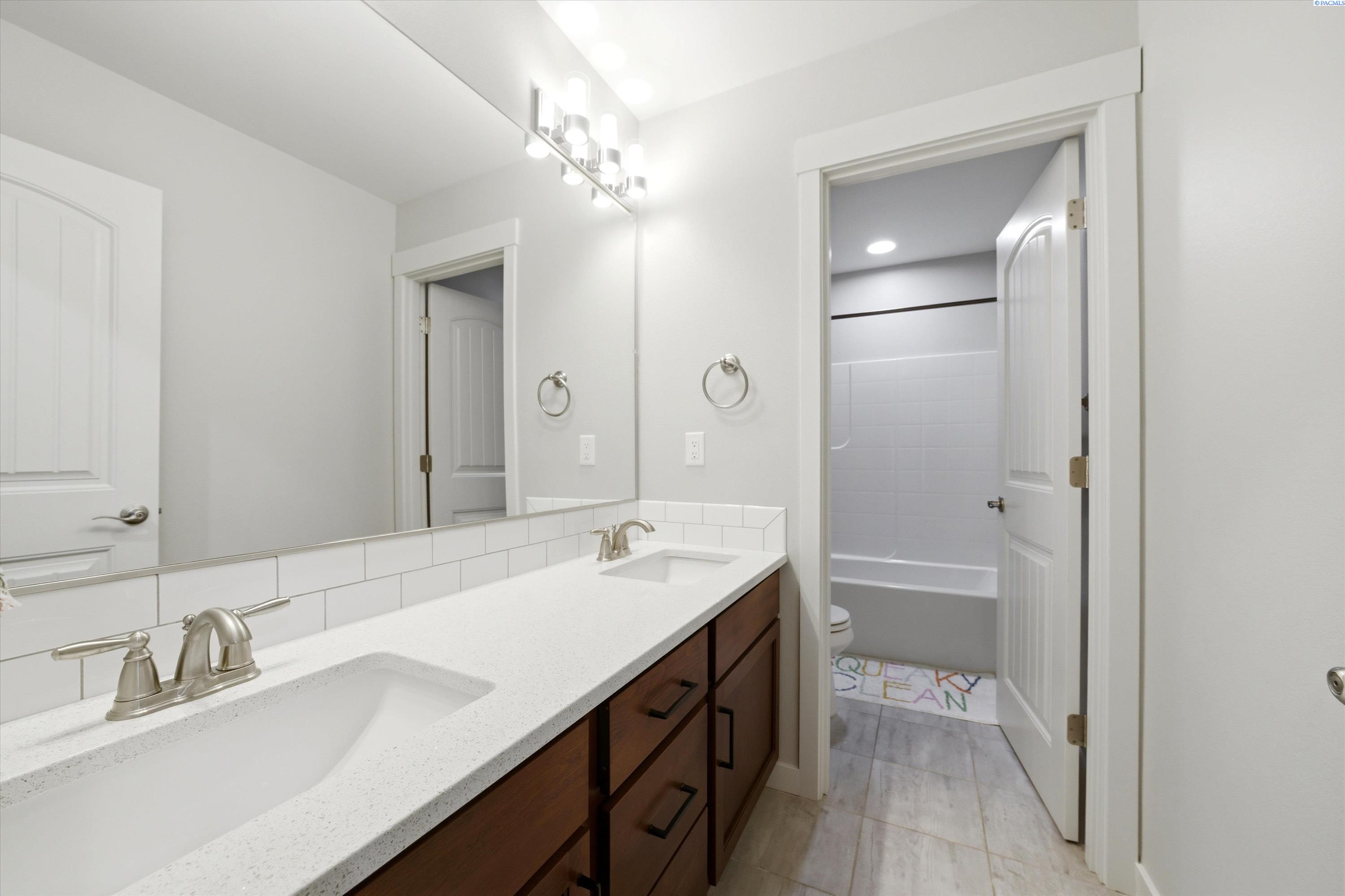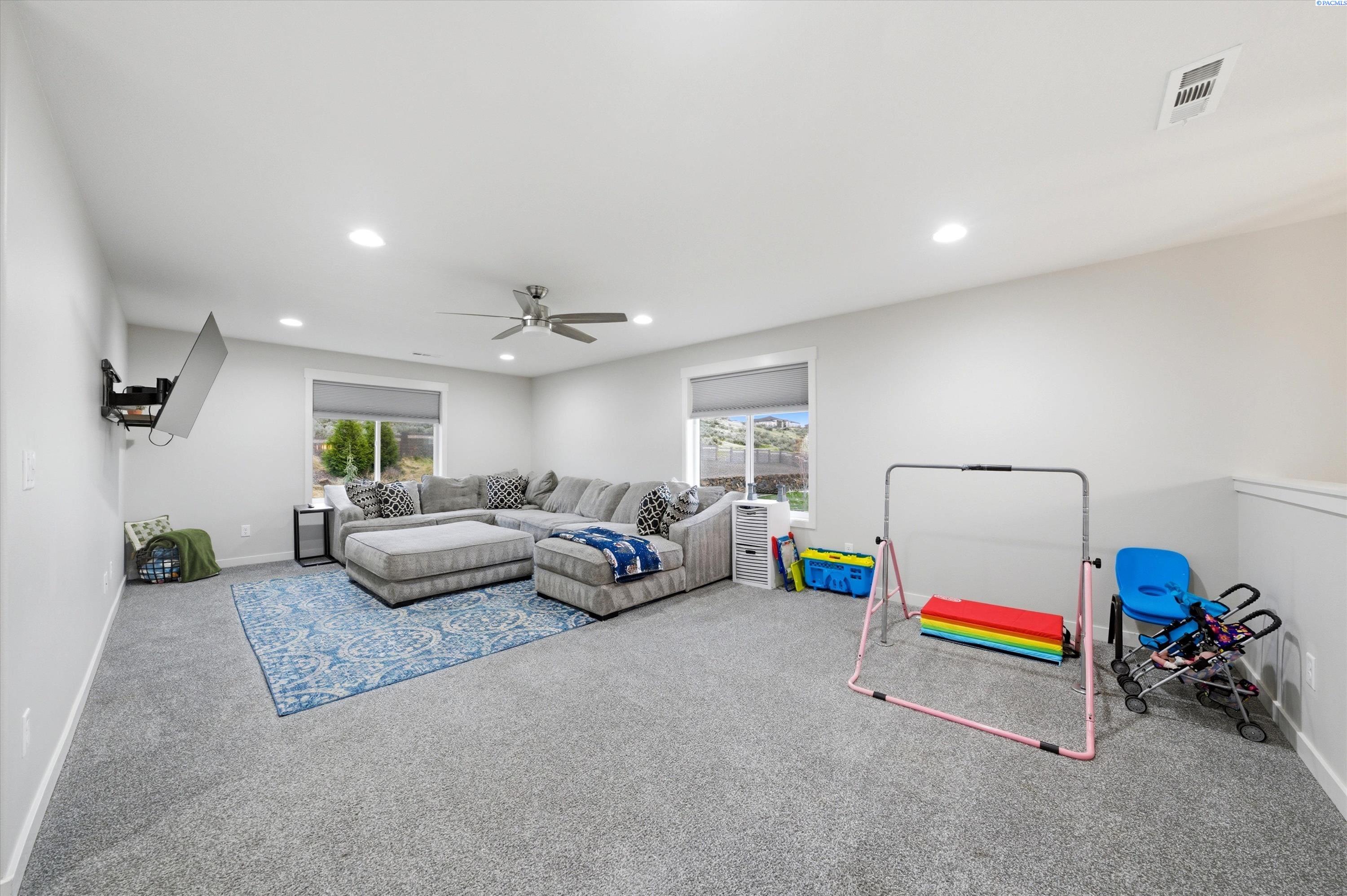 MLS# 291569 There is finally enough room for everyone to coexist in harmony, inside and out! Youâll appreciate the sprawling 0.53-acre home-site offering extra privacy with no direct rear neighbors, dedicated RV parking, a paved sports/activity pad, covered patio with a gas BBQ stub and lots of open grassy space. Inside, the home shines with clean, contemporary finishes, including solid-surface countertops and upgraded cabinetry throughout. The wood-look tile flooring is comfy, durable and low-maintenance. Designed for easy living, the main floor features an open kitchen with a large island, the dining area, and a cozy living room anchored by a gas fireplace. This level also hosts a private den, 1/2 bath, laundry, and the primary suite, a true retreat featuring a walk-in closet and beautiful bath with tile shower and double shower heads. Upstairs, a multi-functional family room provides a second space to gather or sneak away. Three additional bedrooms and a full bath with double sinks round out the upper level. Don't miss the light and bright three-car garage; itâs more than just parking and storage! Think home gym, hobby shop, indoor play zone and more! Fantastic home in a great area of West Pasco, come tour today!