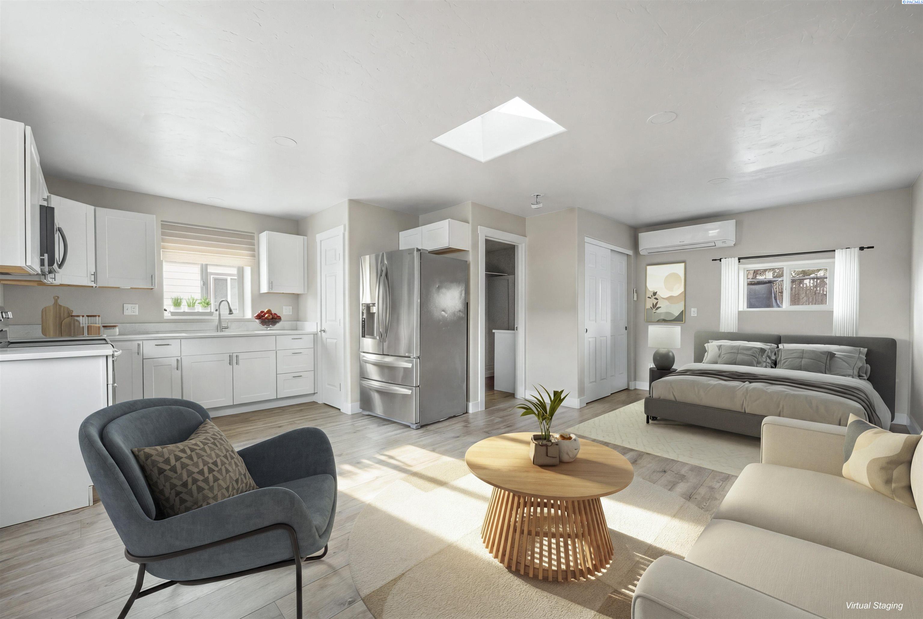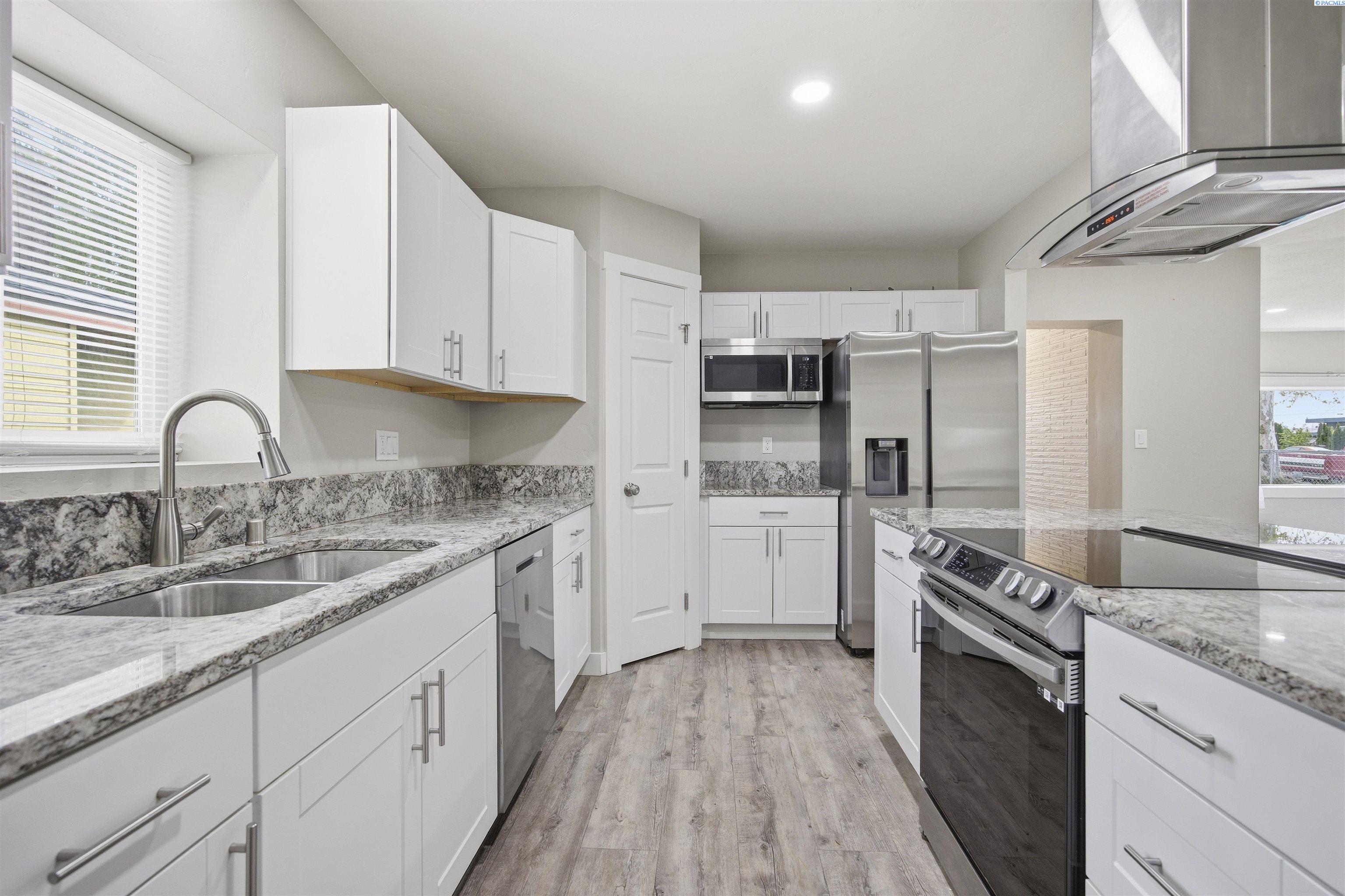 MLS# 291584 Looking for the perfect opportunity to own a property with rental potential or space for multi-generational living? This rare find in Pasco features a beautifully remodeled home paired with a versatile accessory dwelling unit. The 1,592 sq ft main residence offers 4 bedrooms and 1¾ baths with stylish updates throughout. Luxury vinyl plank flooring flows through the home, while recessed lighting and a cozy wood-burning fireplace create a warm and inviting living space. The kitchen is designed for both everyday living and entertaining, featuring granite countertops, a center island, pantry, and stainless steel appliances. The bathrooms have also been updated with granite finishes and a beautifully tiled shower, adding a modern touch. For added peace of mind, the main home received new plumbing in 2025. Adding flexibility and value, the property includes a 460 sq ft ADU complete with LVP flooring, kitchen, open living area, 1 bedroom, a ¾ bath and mini-split systemâideal for guests, extended living, or rental income. Additional features of the property include appliances in both units, central heating and air conditioning in the main home, vinyl windows, a fully fenced backyard with underground sprinklers, and convenient off-street parking. Live comfortably in the main home while renting the ADU, or add two excellent units to your investment portfolio. This is the opportunity youâve been waiting for. Conveniently located near schools, parks, the library, and more. Some photos of Virtual staging.