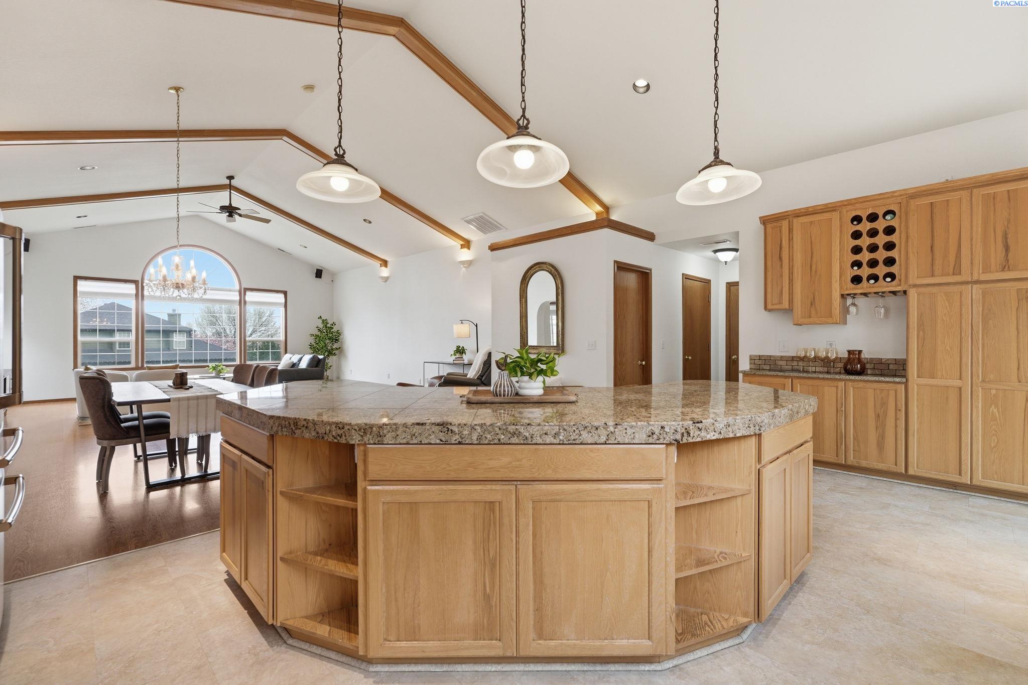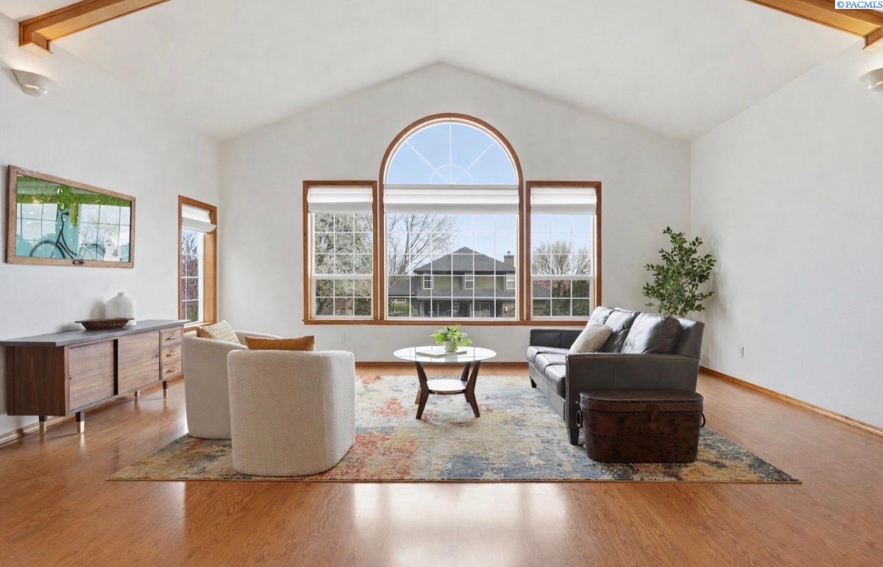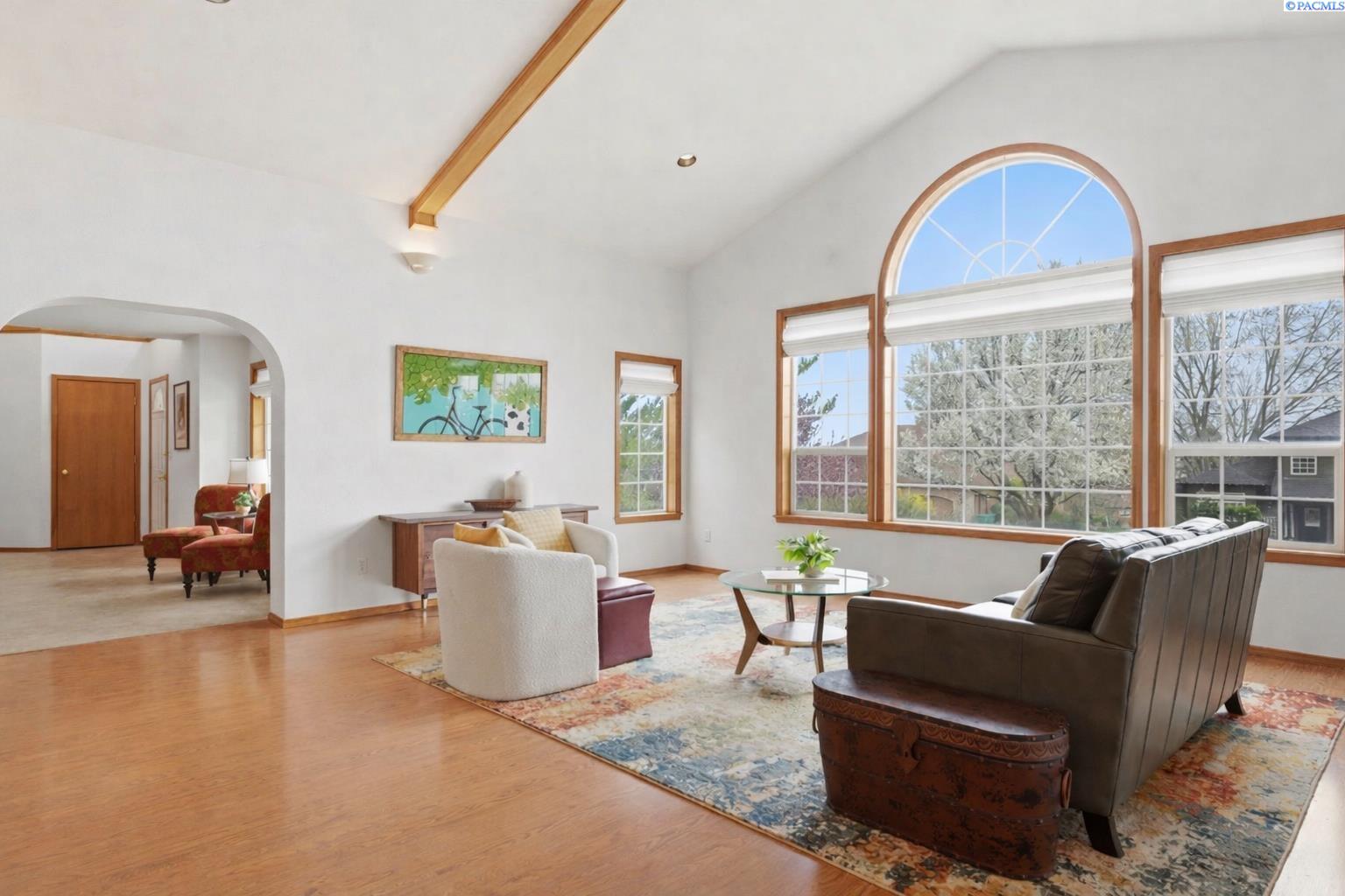 Space. Privacy. Presence. This expansive 3,724 sqft two story home offers a unique blend of room to breathe and peaceful seclusion, all on a rare ¾ acre lot in the heart of Kennewick! Featuring 5 bedrooms and 5 bathrooms, including two primary suites with one conveniently located on the main level, the layout is ideal for multi-generational living or added flexibility. A vaulted great room with striking wood beams and abundant natural light serves as the homeâs centerpiece, flowing effortlessly into a spacious kitchen and dining area designed for both everyday living and entertaining. Multiple living areas provide plenty of space for relaxation, work, or play, while smart storage solutions are tucked throughout the home. Step outside to your own private retreat, an incredibly peaceful and secluded backyard that feels worlds away yet remains close to everything. Complete with RV parking, garden space, a 13x13 shed, and plenty of room to roam or unwind, the outdoor space is just as impressive as the interior. Opportunities like this are few and far between!