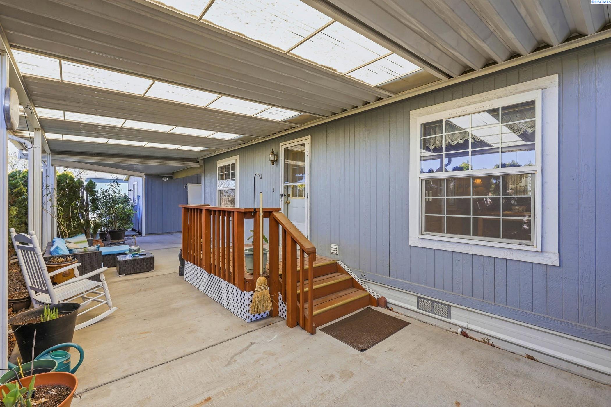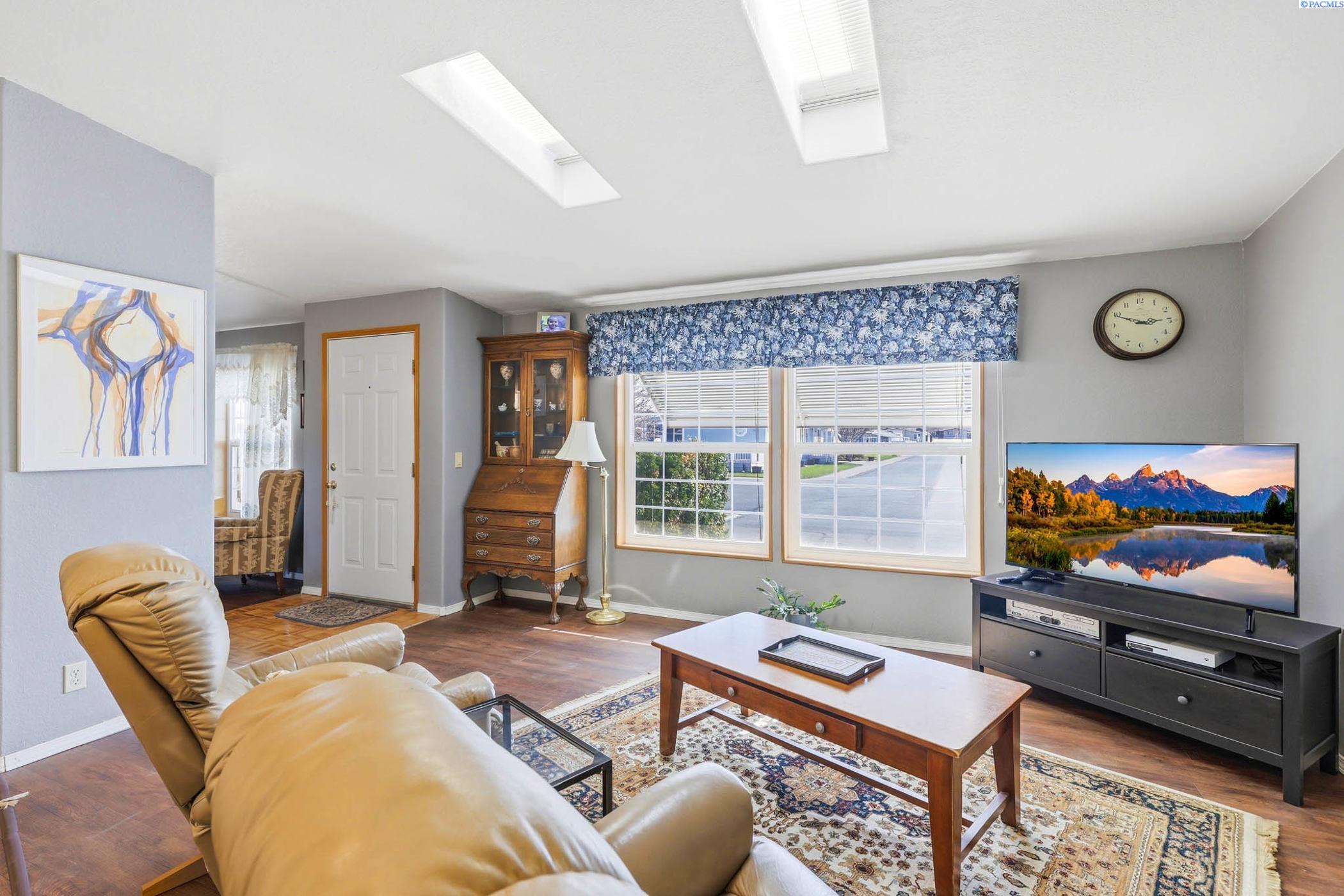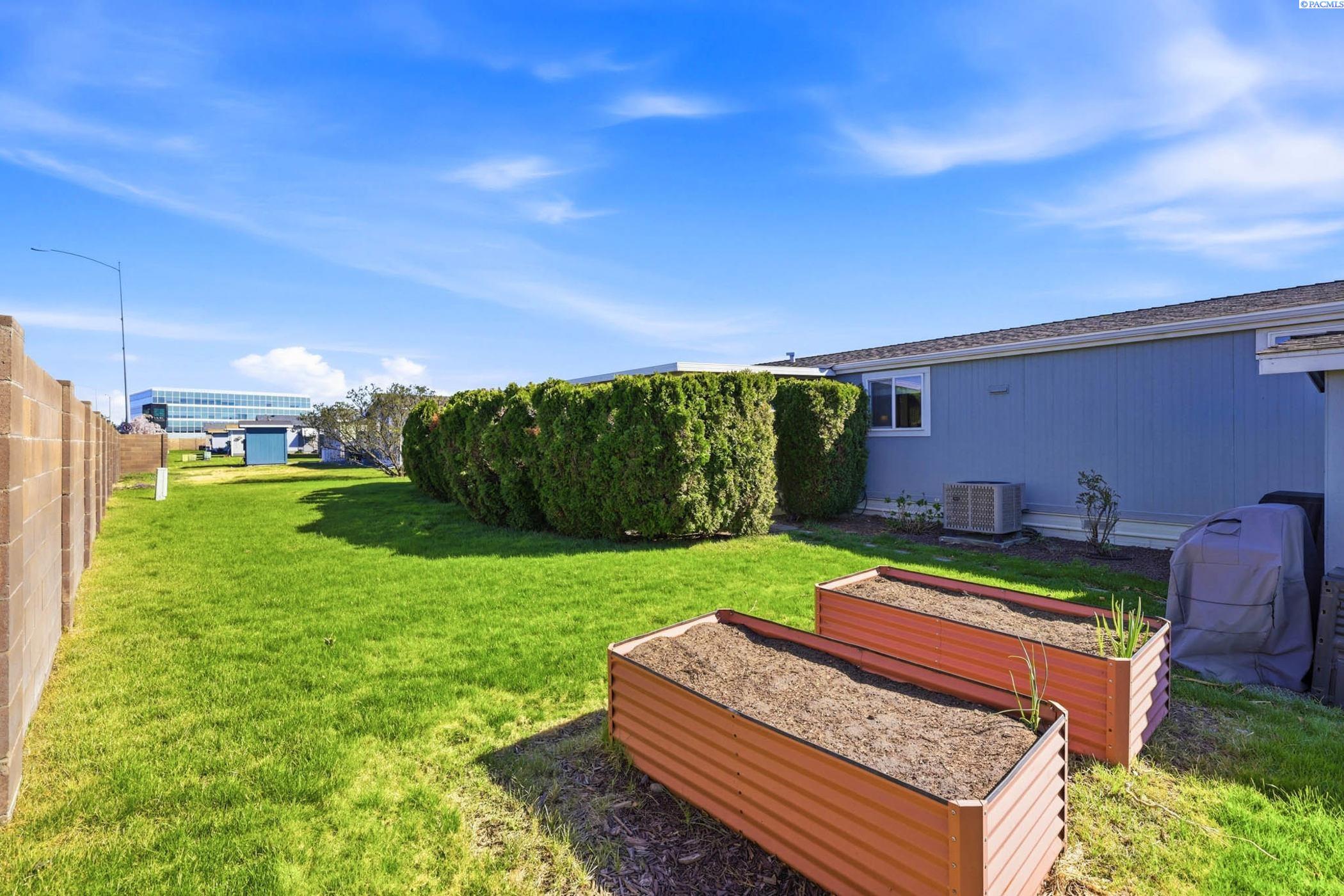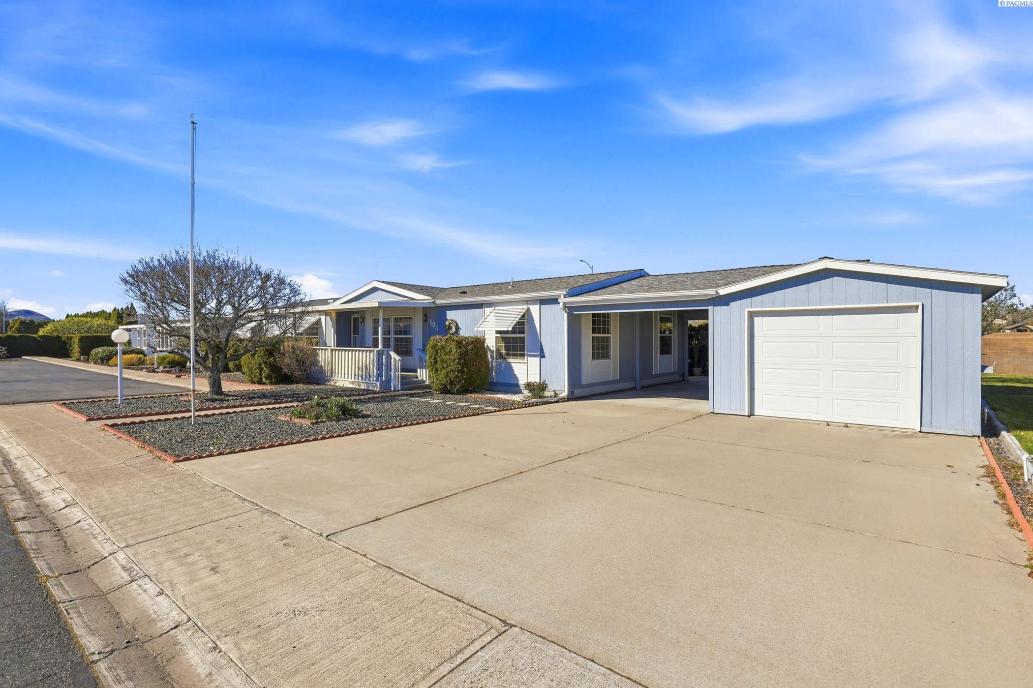 MLS# 291649 Well-maintained 3-bedroom, 2-bath manufactured home located in a highly desirable 55+ community. This home stands out as one of the few in the neighborhood offering a private one-car garage with built-in shelving, along with ample additional parking. Inside, you'll find a spacious, open layout with several updated, including vinyl wood Pergo flooring, a newer hot water and updated kitchen appliances. The bright kitchen features a pantry, breakfast bar, and plenty of cabinet space, making it both functional and inviting. All three bedroom include walk-in closets, while the primary suite offers new carpet, and in the primary bathroom there are double sinks, a separate vanity, and a walk-in shower. Skylights throughout the home provide abundant natural light. The laundry room includes extra storage and a utility sink for added connivence. Step outside to enjoy a large private covered patio and raised garden beds-perfect for relaxing or entertaining.