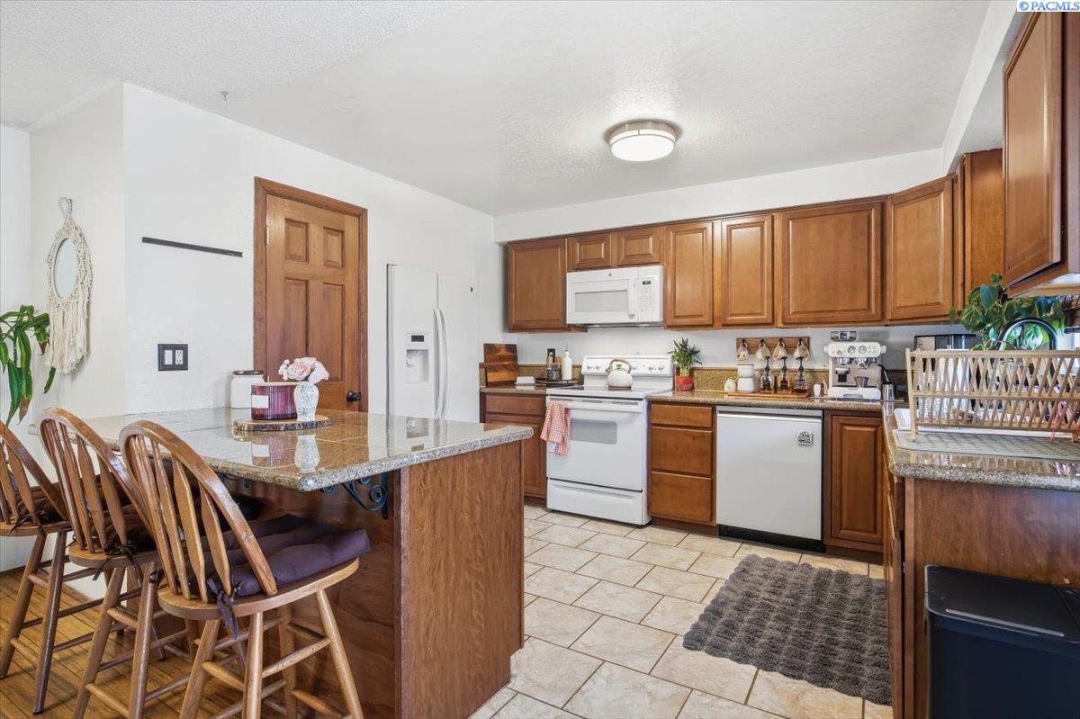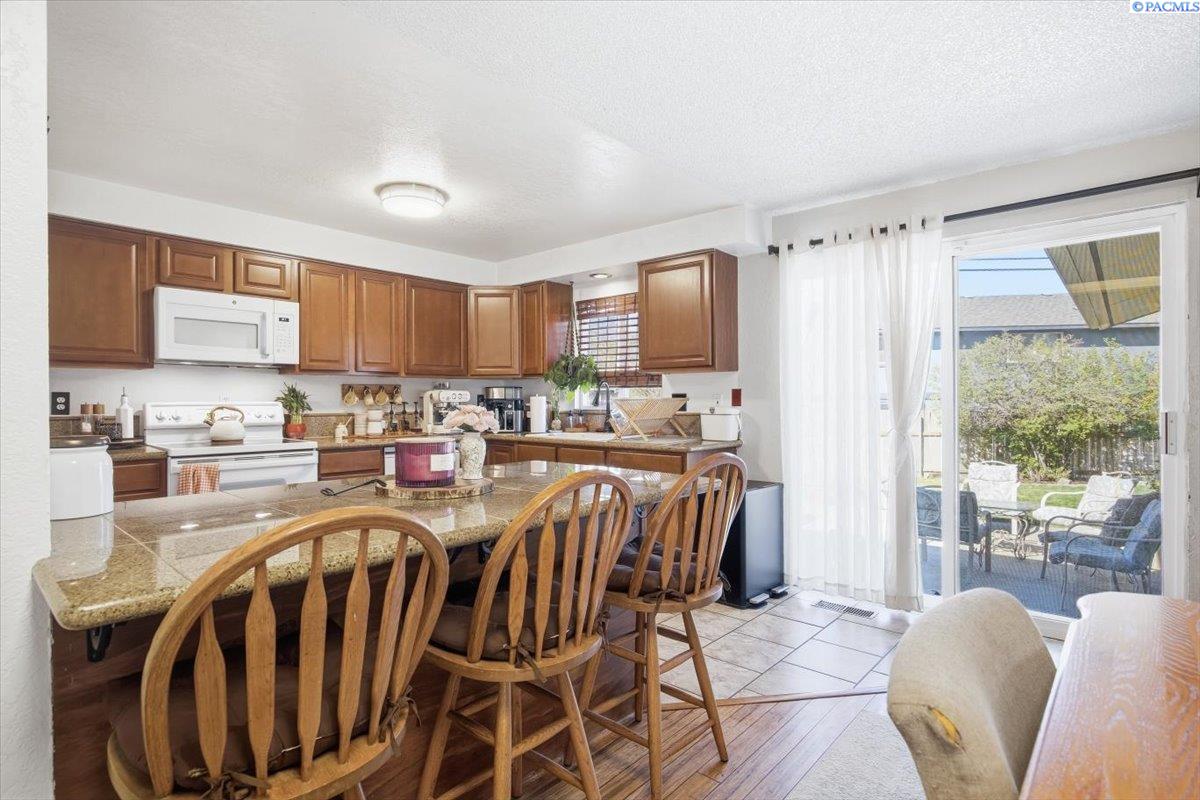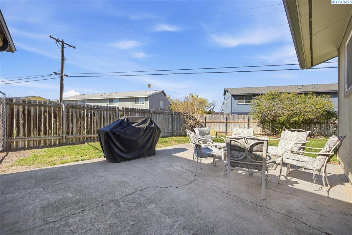 MLS ID 291684: This charming home welcomes you the moment you walk through the door. Itâs an excellent opportunity for first-time buyers or those looking to downsize to convenient single-level living. Offering 3 bedrooms and 2 bathrooms, this home combines comfort and functionality. The spacious living room provides plenty of room for a large sectional, making it ideal for relaxing or entertaining. The dining area features a sliding glass door that opens to a generous patioâperfect for indoor-outdoor living. The kitchen has been thoughtfully updated with granite tile countertops and beautifully finished cabinetry, creating a warm and inviting space. Laminate and tile flooring throughout the main living areas add both durability and a refined touch. Step outside to a fully fenced, oversized backyard with mature landscapingâideal for gardening, pets, or creating your own outdoor retreat. An attached 2-car garage offers ample storage and convenience. This home truly offers a blend of comfort, style, and value in a great Kennewick location.