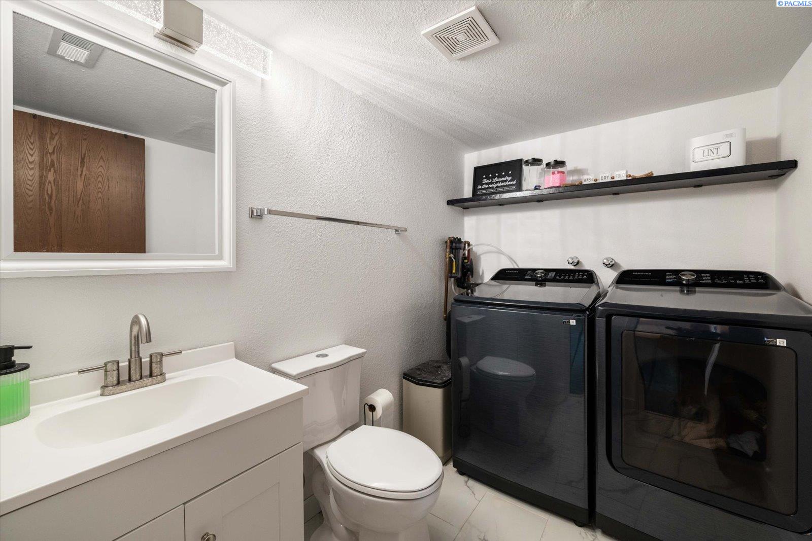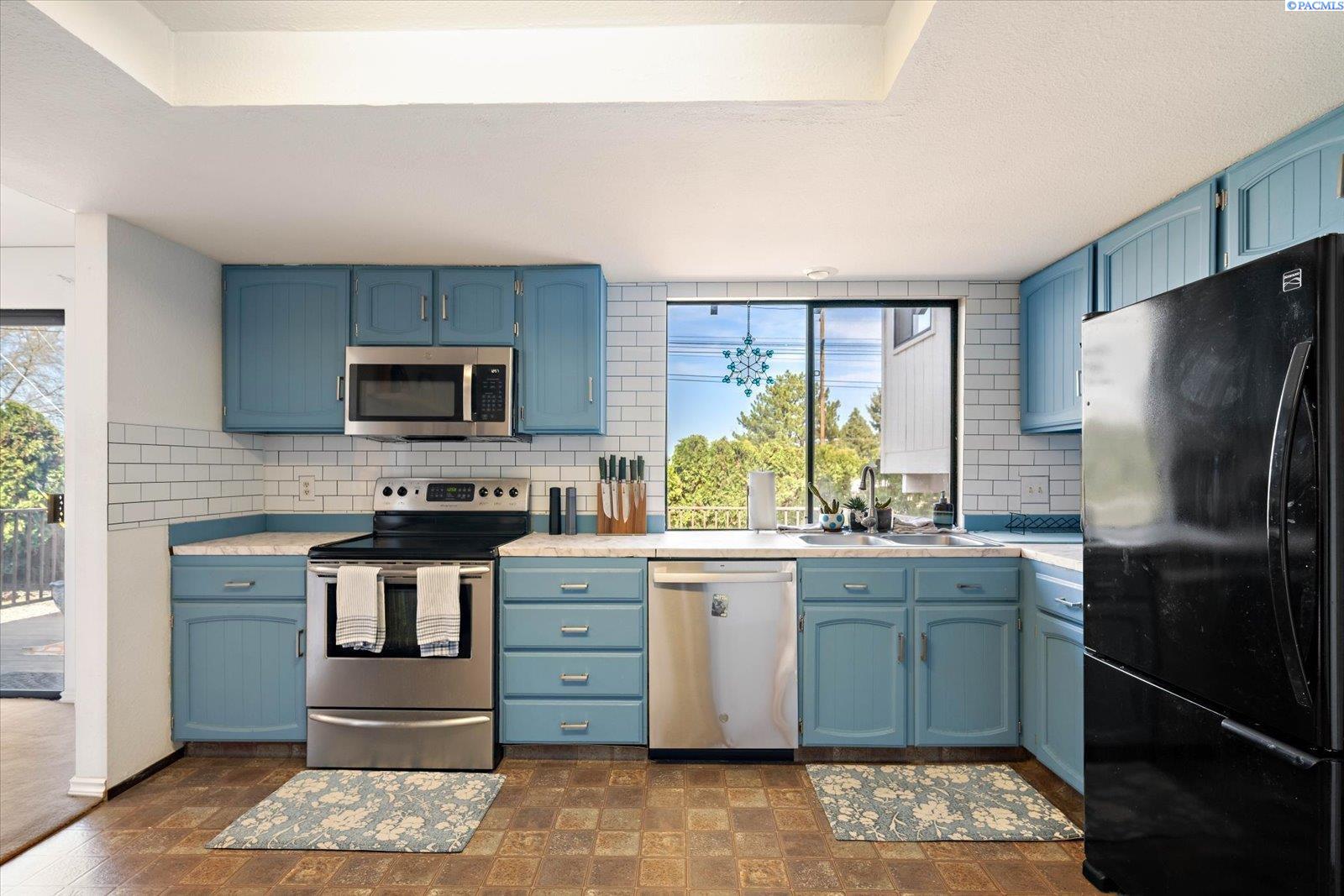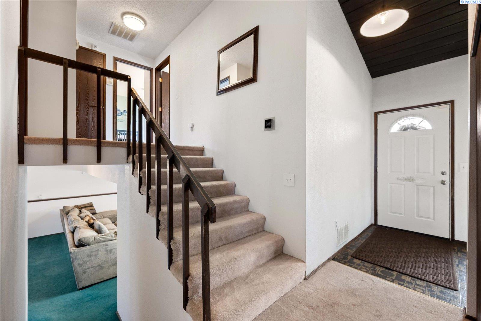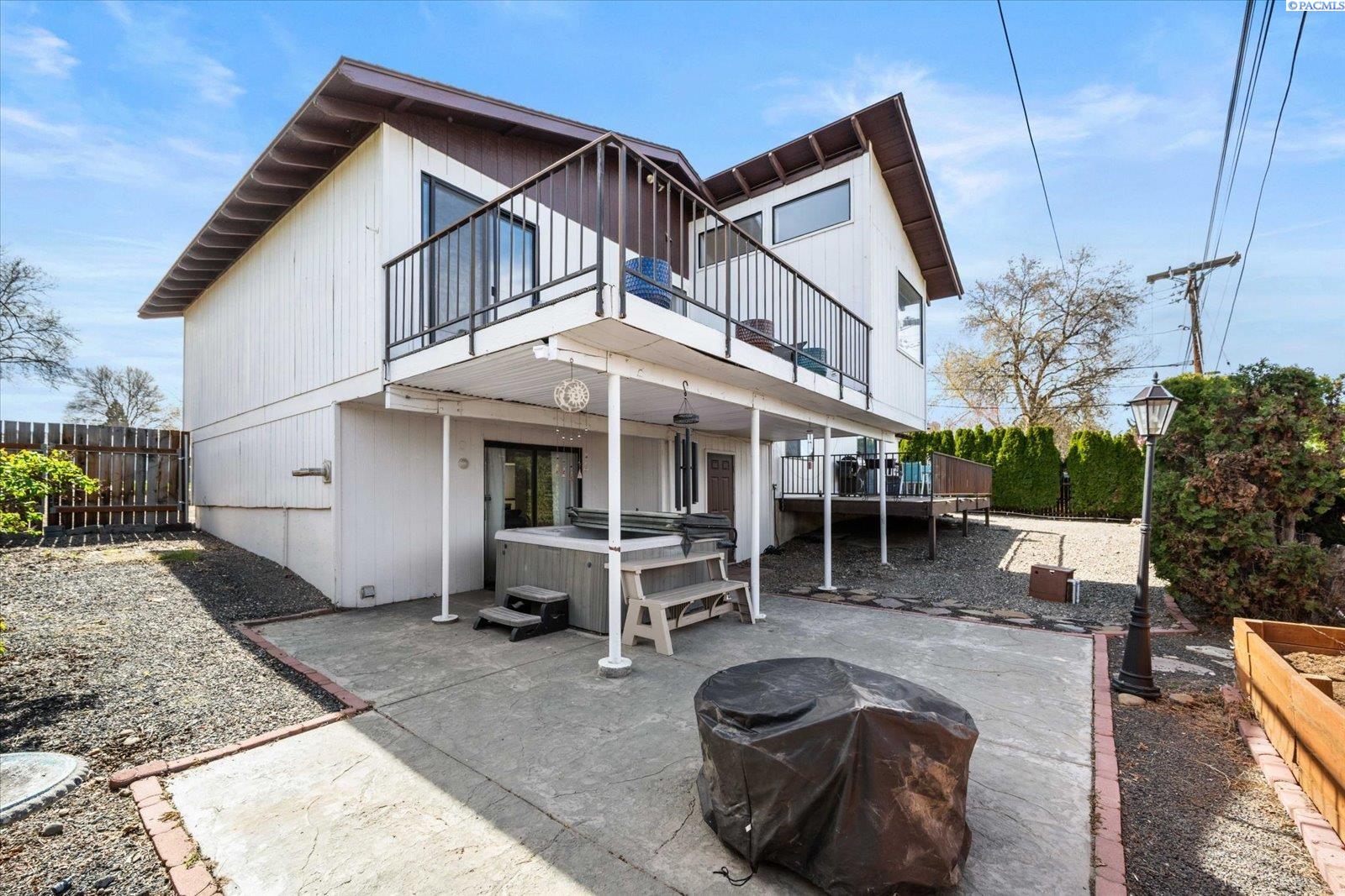 MLS# 291690 Welcome to this "well-loved" and beautifully flowing residence that offers the rare combination of amenities and the freedom of no HOA fees. This 2,116 sq. ft. home features 3 spacious bedrooms, 3 bathrooms, and a split 3-car garage, all in a central Kennewick location that keeps you minutes from the best shopping, entertainment, and Tri-City access. Enjoy incredible private decks perfect for watching 4th of July fireworks and post-game displays from the Dust Devils stadium. A full solar system ensures your electric bills remain at a bare minimum year-round, regardless of the temperature. The lower level boasts a massive flex room with a wet bar and a cozy pellet stove for added warmth. Time and space for a pool table or enjoy as a comfortable family TV space, or mancave for the sports lover. Step outside to your private hot tub for the ultimate relaxation. The yard is professionally designed with a low-maintenance "zeroscape" concept, featuring new plantings and privacy bushes that offer character without the weekend chores. With no HOA, you have the flexibility to enjoy your property on your terms while benefiting from an established, well-cared-for neighborhood with open RV parking.