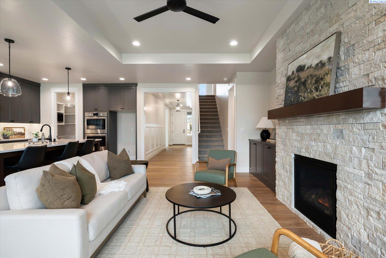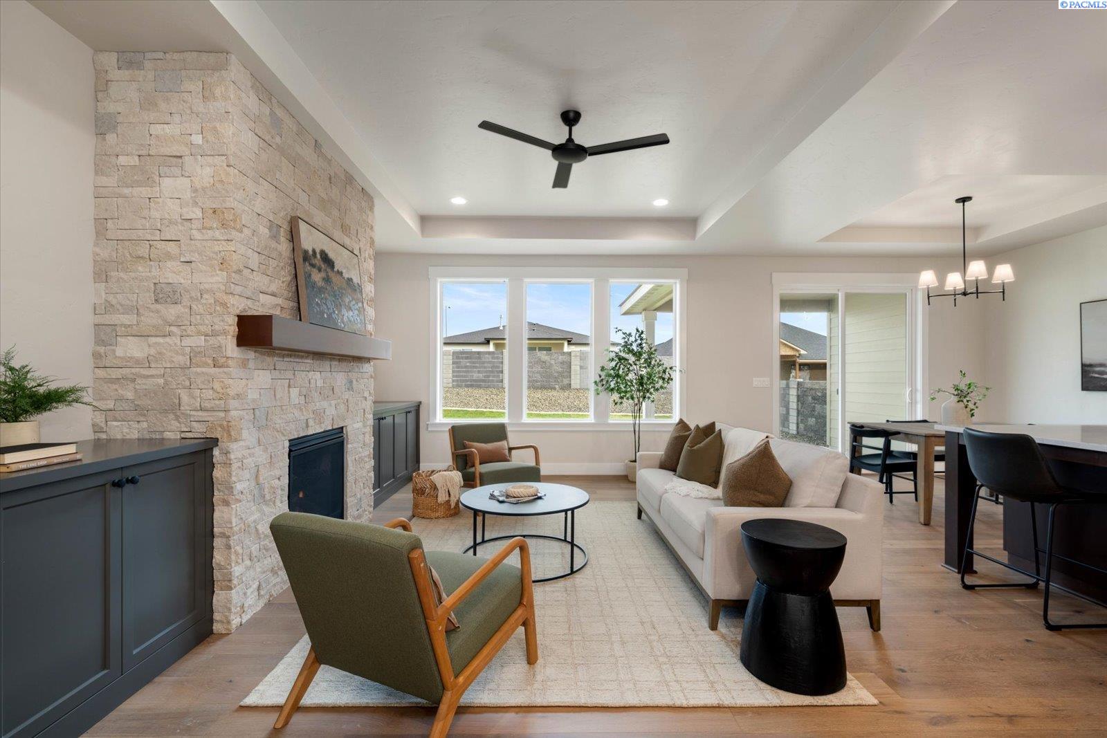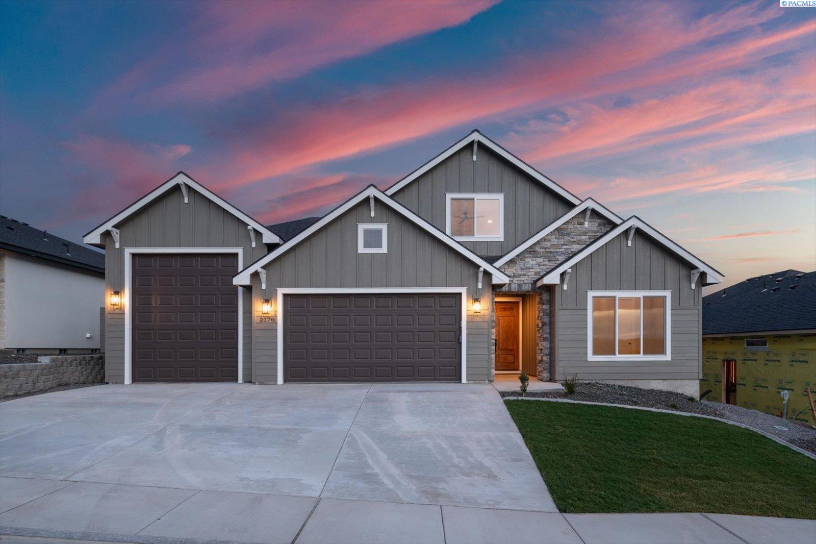MLS# 291695 MLS# 287248 ."Welcome to The Barcelona with Bonus Room by Riverwood Homes!Experience the best of comfort and community living in this stunning 2,241 sq. ft. single-level home with an upstairs bonus room, located in the highly sought-after Siena Hills neighborhood. Residents here enjoy a true lifestyle community with scenic walking paths, a beautifully maintained community park, and a refreshing community poolâperfect for sunny afternoons with family and friends.The Barcelona with Bonus Room offers 3 spacious bedrooms, 2 bathrooms, and a large, versatile bonus room that can serve as a media space, or home office. The open floor plan highlights a gourmet kitchen with Bosch stainless steel appliances, quartz countertops, a wall oven, and a generous walk-in pantry. Soft-close drawers and elegant tile flooring in the bathrooms and laundry room bring both convenience and style.The master suite is a peaceful retreat, featuring a coffered ceiling, ceiling fan, beautifully tiled shower, and ample storage. Throughout the home, thoughtful details such as hand-textured walls and wood-wrapped windows add sophistication, while a cozy fireplace with stone or tile surround creates warmth and charm in the family room.Built for efficiency and comfort, this home includes a gas tankless water heater, solar panel system, and conditioned crawl space. Step outside to a covered patioâpre-wired for ceiling fansâoverlooking a professionally landscaped yard with sprinklers, sod, shrubs, and decorative rock accents.The oversized 3-car garage includes an EV plug, offering plenty of space and future-ready convenience.The Barcelona with Bonus Room is more than just a homeâitâs a gateway to a vibrant community and an effortless lifestyle.For directions, simply enter âSiena Hills â Richland, WAâ into Google Maps and come explore this premier neighborhood!
