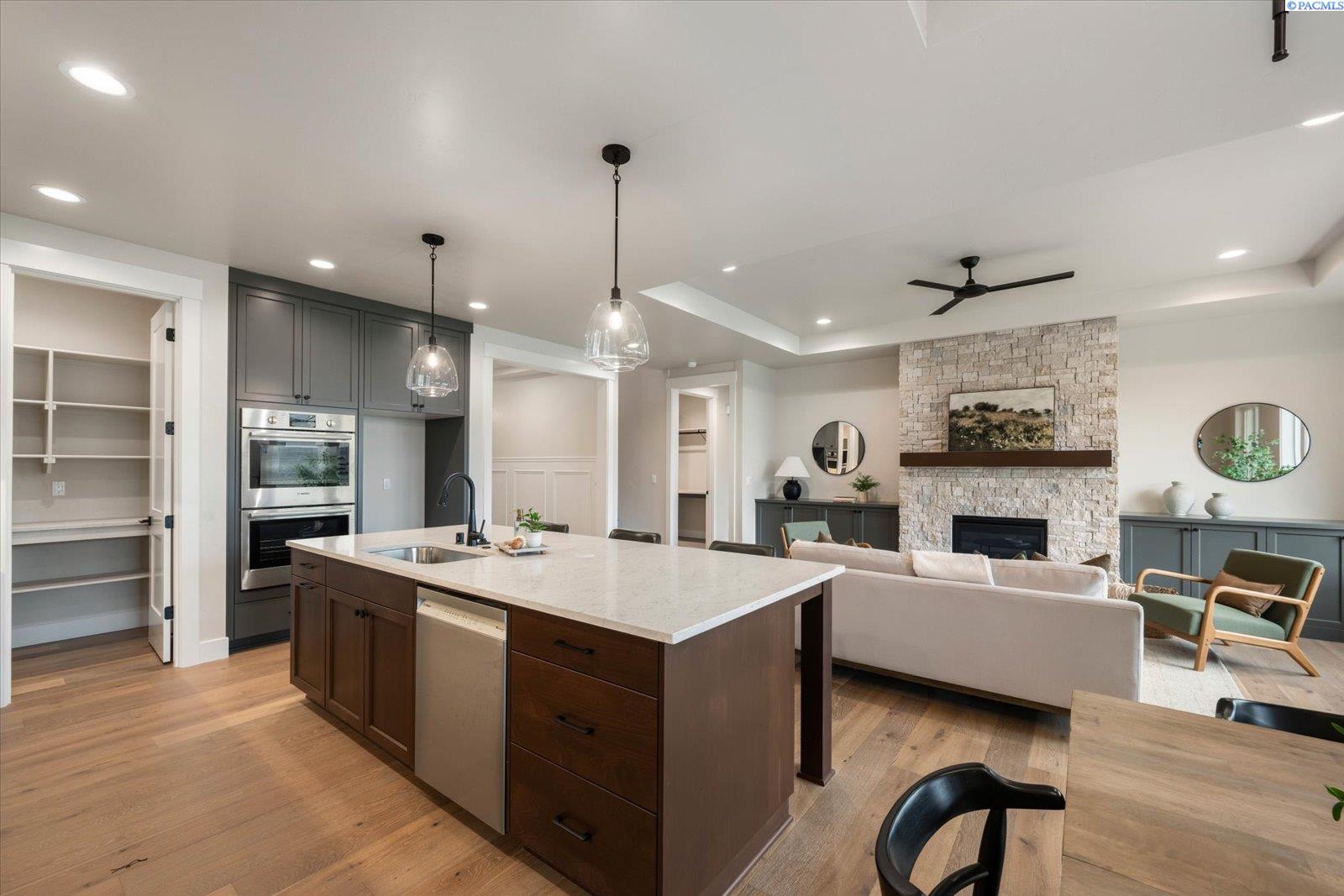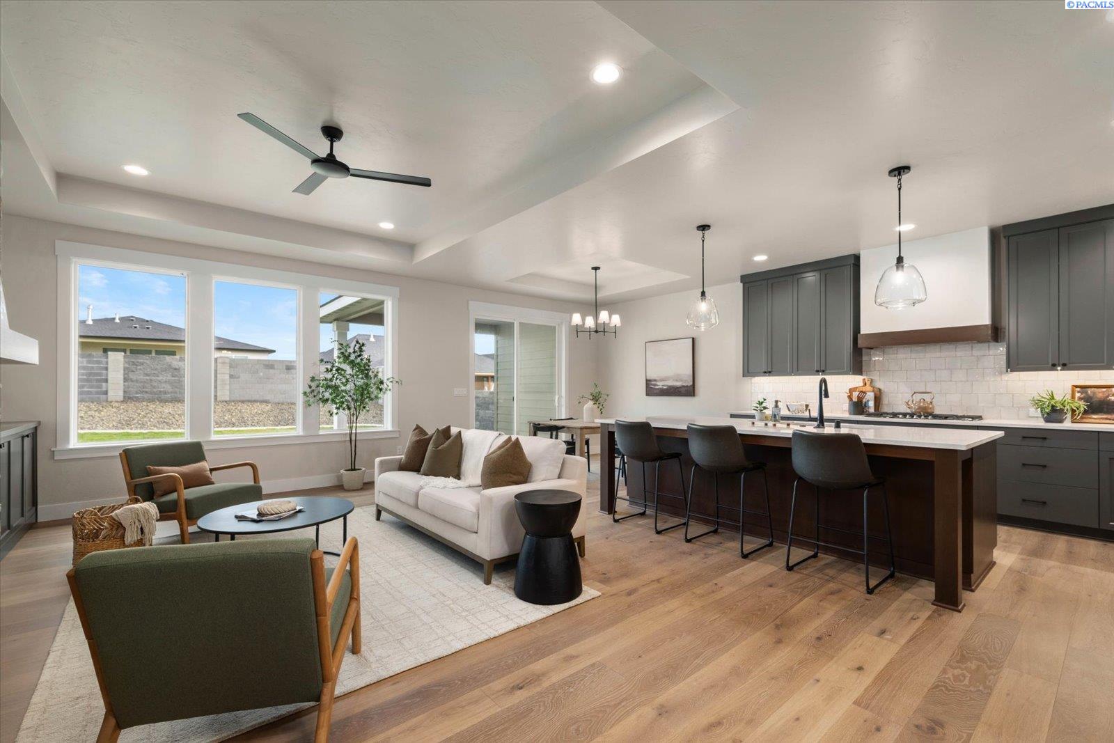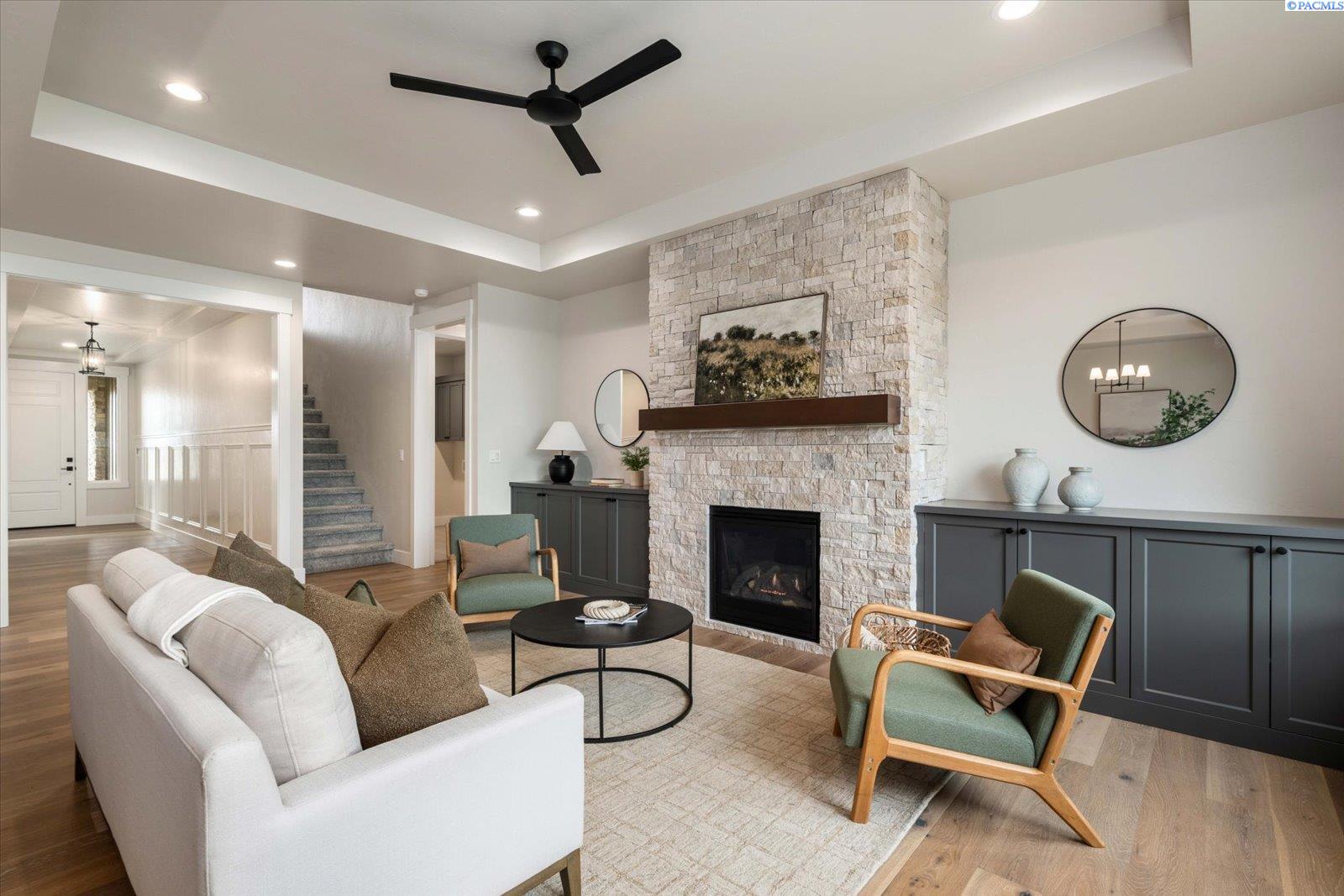 MLS# 291695 MLS# 287248 ."Welcome to The Barcelona with Bonus Room by Riverwood Homes!Experience the best of comfort and community living in this stunning 2,241 sq. ft. single-level home with an upstairs bonus room, located in the highly sought-after Siena Hills neighborhood. Residents here enjoy a true lifestyle community with scenic walking paths, a beautifully maintained community park, and a refreshing community poolâperfect for sunny afternoons with family and friends.The Barcelona with Bonus Room offers 3 spacious bedrooms, 2 bathrooms, and a large, versatile bonus room that can serve as a media space, or home office. The open floor plan highlights a gourmet kitchen with Bosch stainless steel appliances, quartz countertops, a wall oven, and a generous walk-in pantry. Soft-close drawers and elegant tile flooring in the bathrooms and laundry room bring both convenience and style.The master suite is a peaceful retreat, featuring a coffered ceiling, ceiling fan, beautifully tiled shower, and ample storage. Throughout the home, thoughtful details such as hand-textured walls and wood-wrapped windows add sophistication, while a cozy fireplace with stone or tile surround creates warmth and charm in the family room.Built for efficiency and comfort, this home includes a gas tankless water heater, solar panel system, and conditioned crawl space. Step outside to a covered patioâpre-wired for ceiling fansâoverlooking a professionally landscaped yard with sprinklers, sod, shrubs, and decorative rock accents.The oversized 3-car garage includes an EV plug, offering plenty of space and future-ready convenience.The Barcelona with Bonus Room is more than just a homeâitâs a gateway to a vibrant community and an effortless lifestyle.For directions, simply enter âSiena Hills â Richland, WAâ into Google Maps and come explore this premier neighborhood!