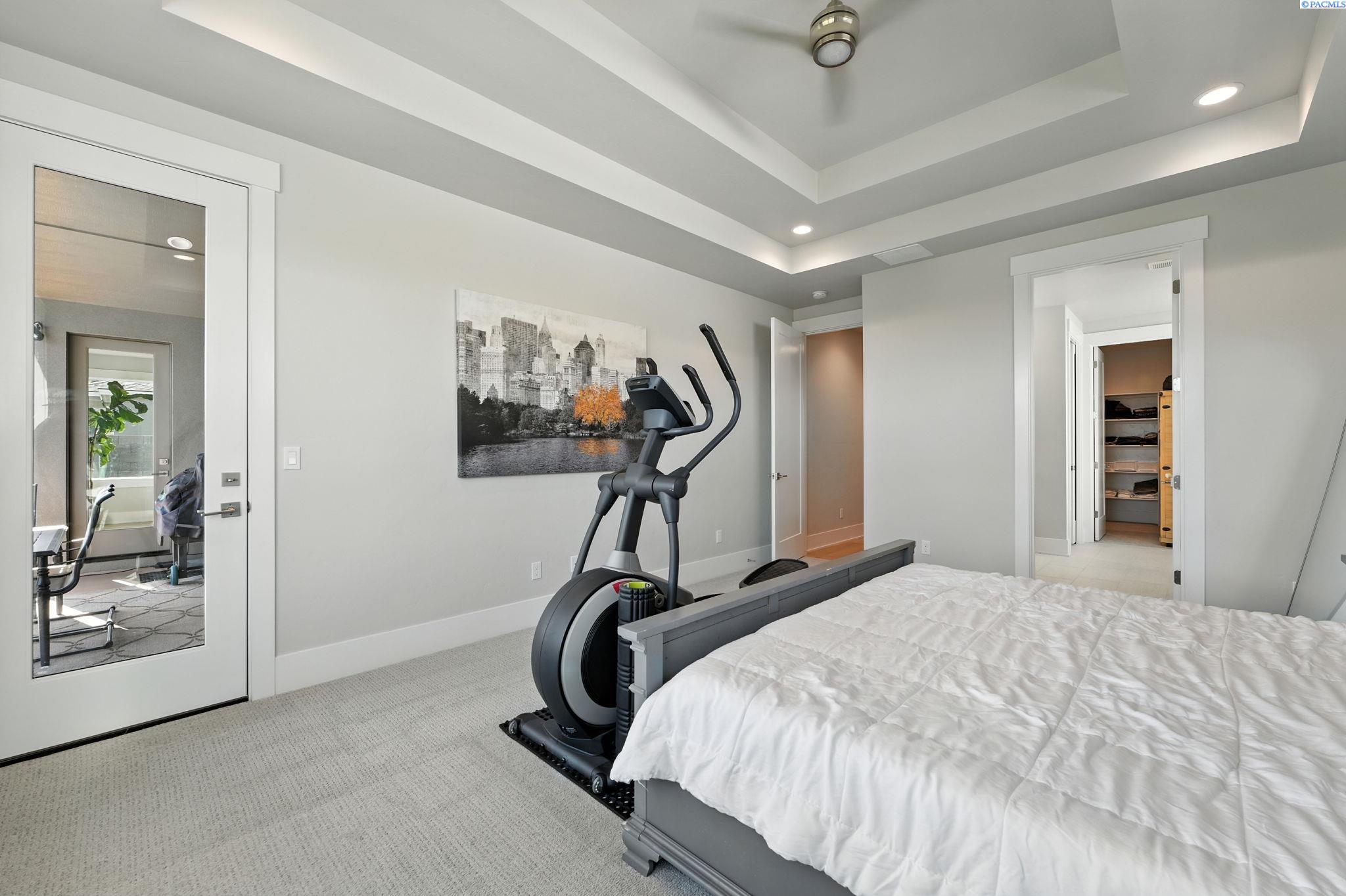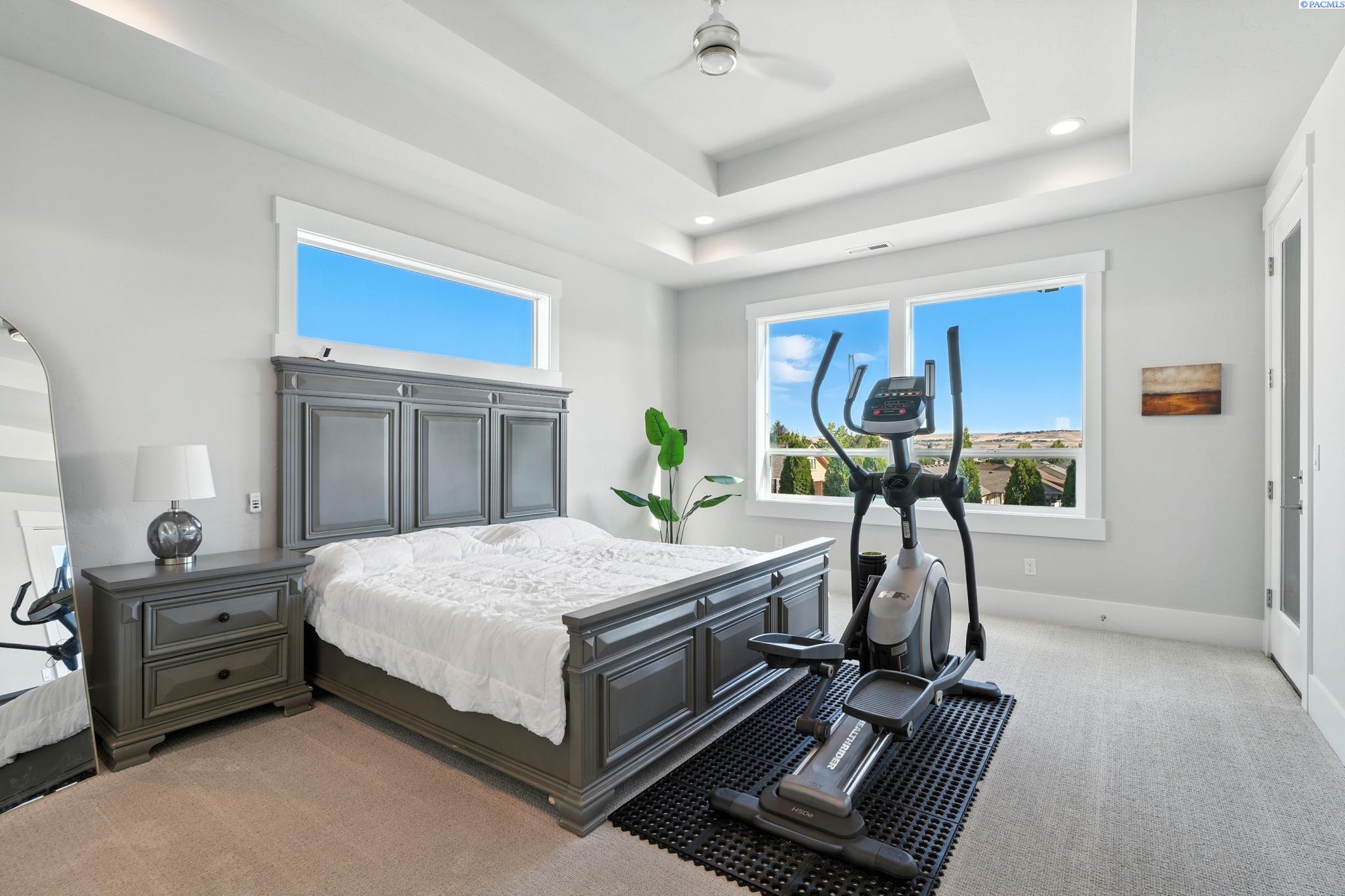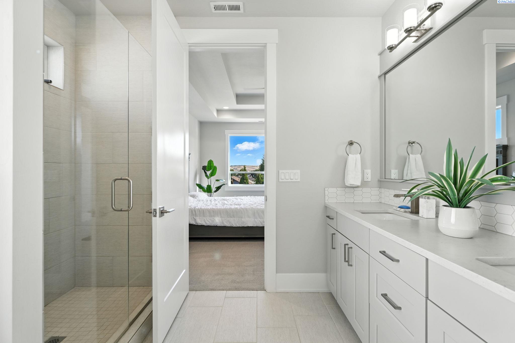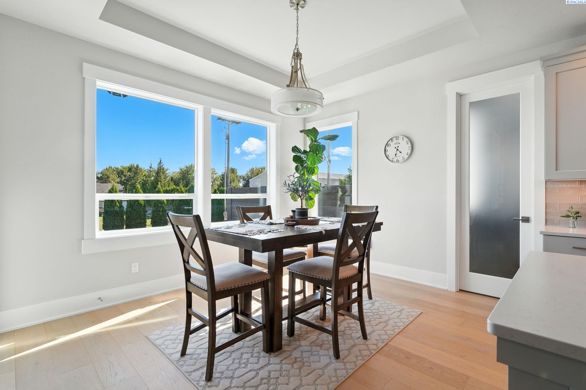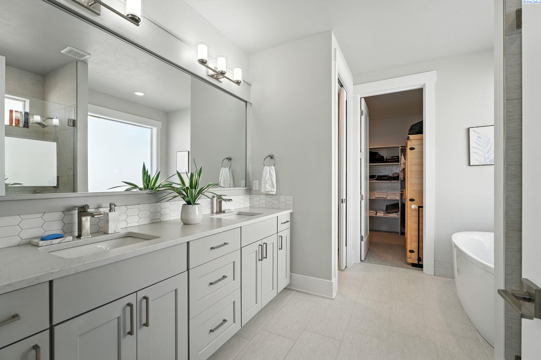 MLS# 286567 $3,500 buyer closing cost credit with preferred lender! Beautiful 2022 fully upgraded rambler. Covered front porch opens to soaring entry way, engineered hardwood throughout living areas, guest bathroom and bedroom to the left, entry way opens to great room with 18' ceilings fully wood wrapped windows with craftsman trim, white quartz kitchen with island, grey cabinets soft close cabinets with full backsplash, gas stainless steel appliances, glass door to pantry, master bedroom behind great room, full tile shower, pedestal soaker tub, private access to oversized back patio with vaulted ceiling, junior master suite located behind the kitchen, laundry room located off of the hallway to the garage, garage is fully finished with epoxy floors. Large community pool and rec center access. Great for hosting events and enjoying hot days!