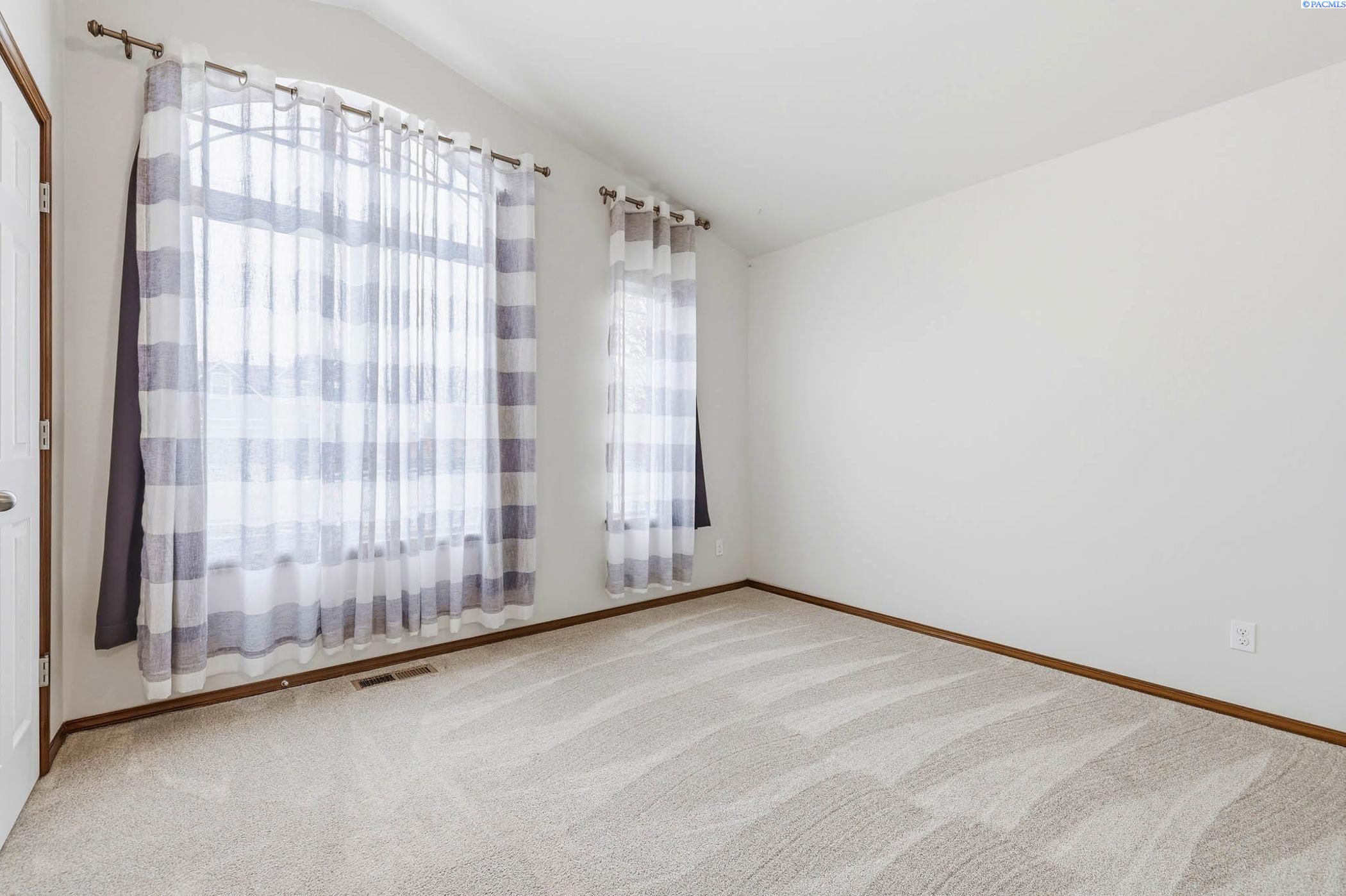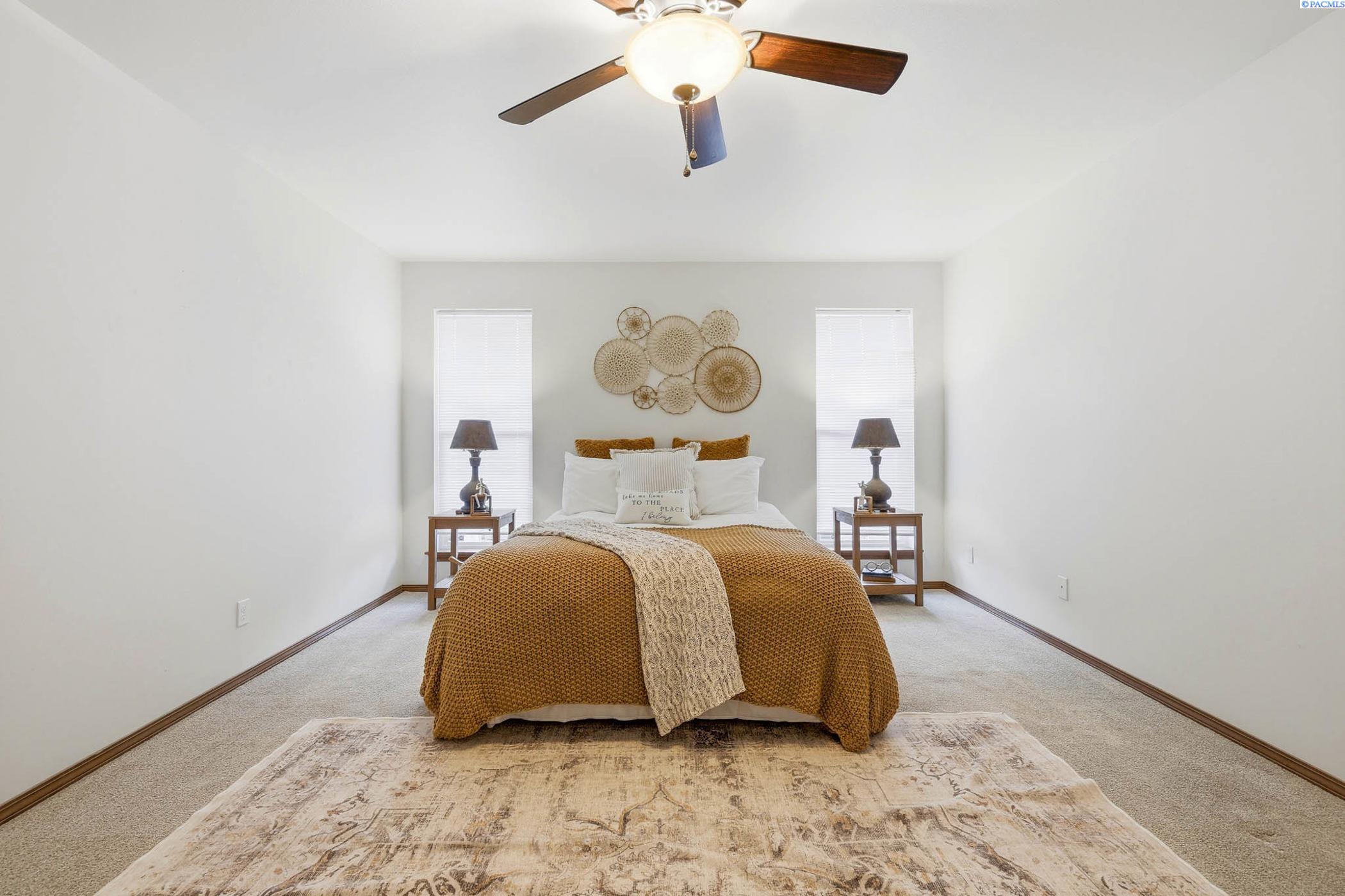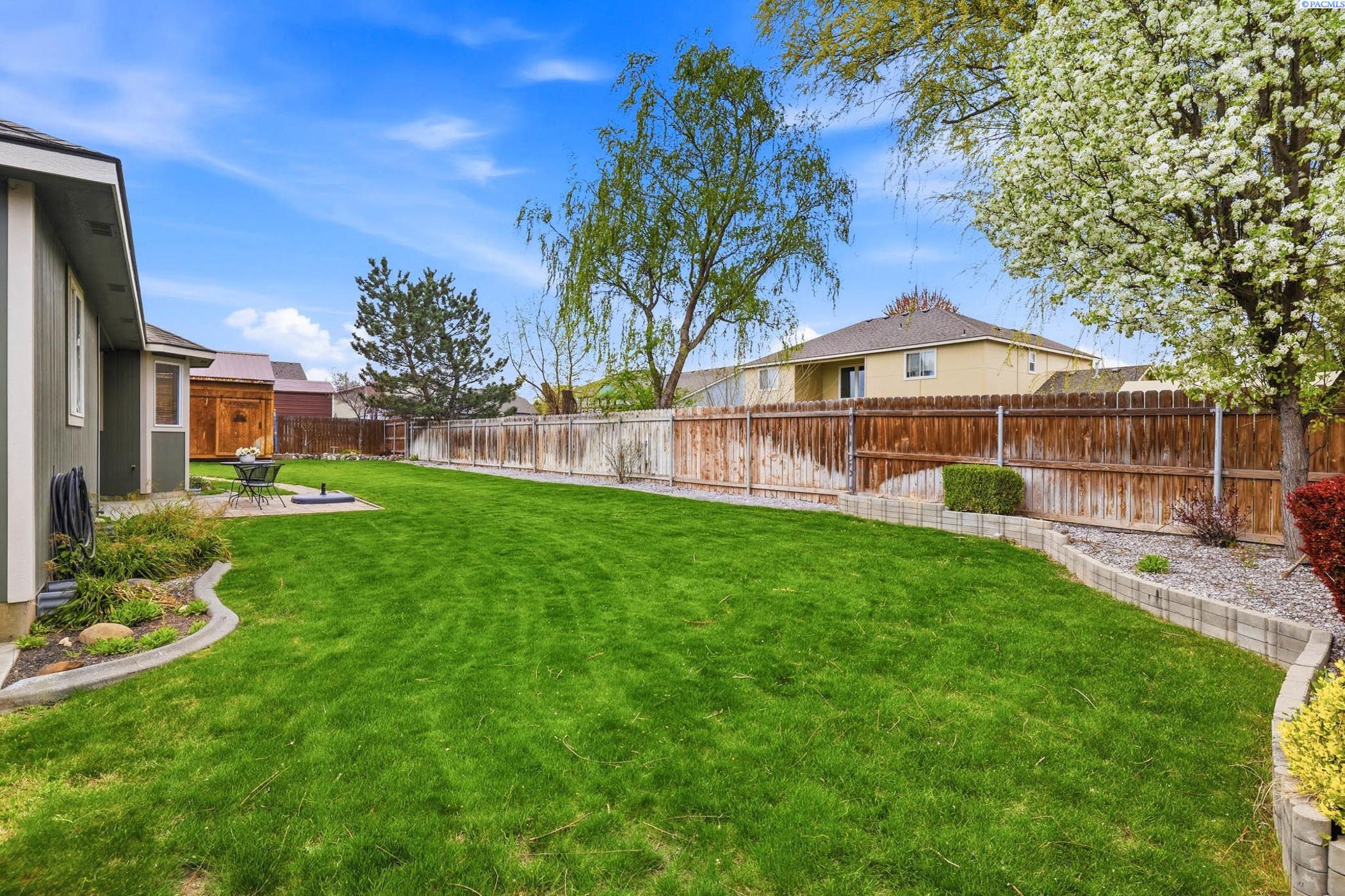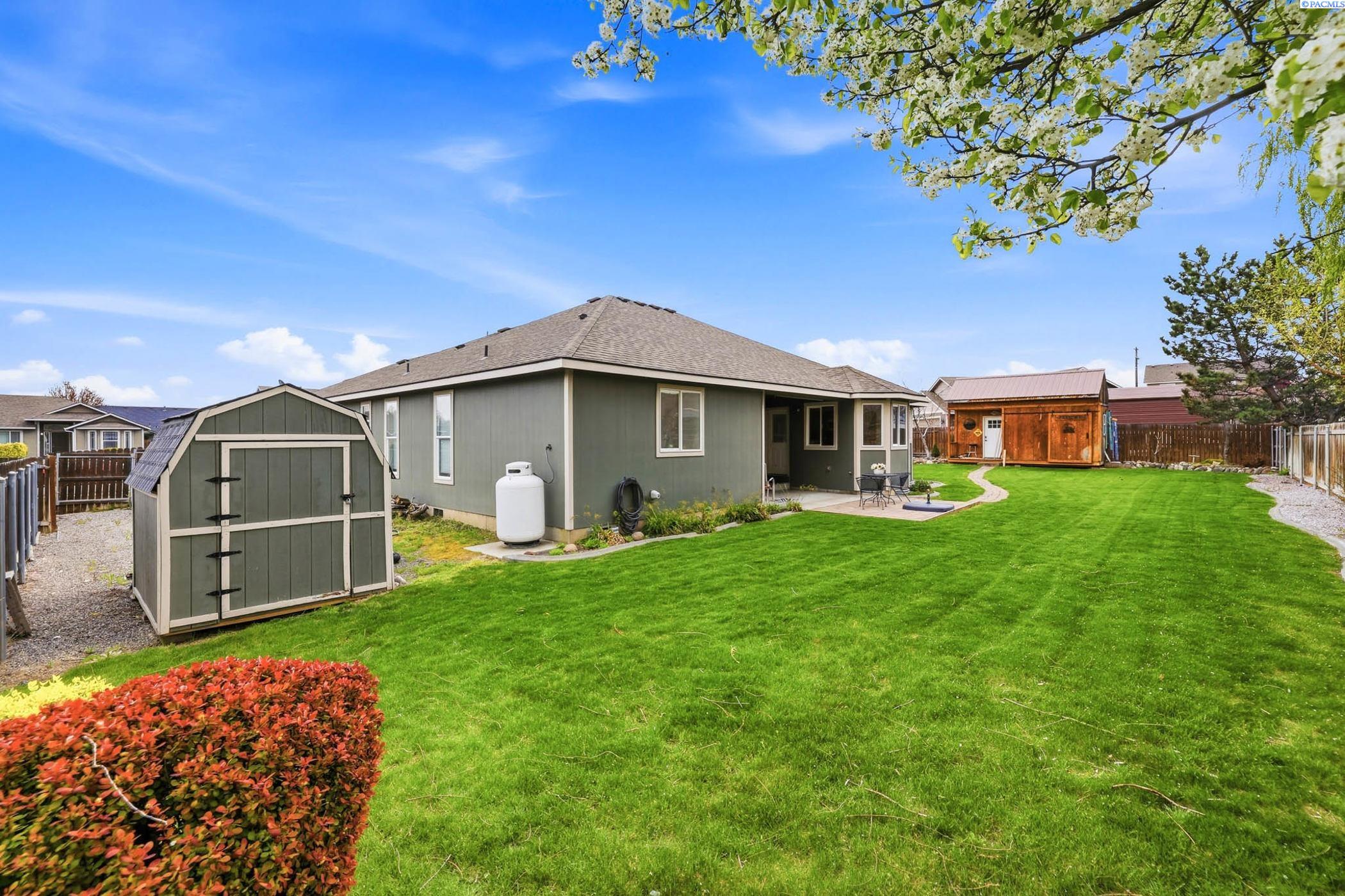 MLS# 291712 Tucked into a quiet cul-de-sac in central Kennewick, this well-designed home offers space, comfort and functionality with a layout that truly works for everyday living. Raised and vaulted ceilings, along with windows in every room, create a bright and open feel filled with natural light throughout. The floor plan features a desirable split-bedroom design for added privacy, with a spacious primary suite that offers plenty of room to unwind. The ensuite bathroom includes long spacious dual sink vanity, a large garden tub, separate walk-in shower and the rare convenience of two separate walk-in closets. Each additional bedroom also have nice sized closets and the fourth bedroom, complete with French doors, makes an ideal office or flex space. The kitchen is both practical and inviting, featuring a corner sink overlooking the backyard, a pantry for extra storage and easy access to the dining area. Just off the dining space, step out to a covered patio perfect for relaxing or entertaining. The living room is warm and comfortable, centered around a propane fireplace. Additional highlights include a dedicated laundry room plumbed for a utility sink just off the garage, ceiling fans in most rooms, a welcoming foyer with coat closet, fully fenced back and side yard and a 2-car garage with additional RV parking on side of home. Come live where neighbors become friends.