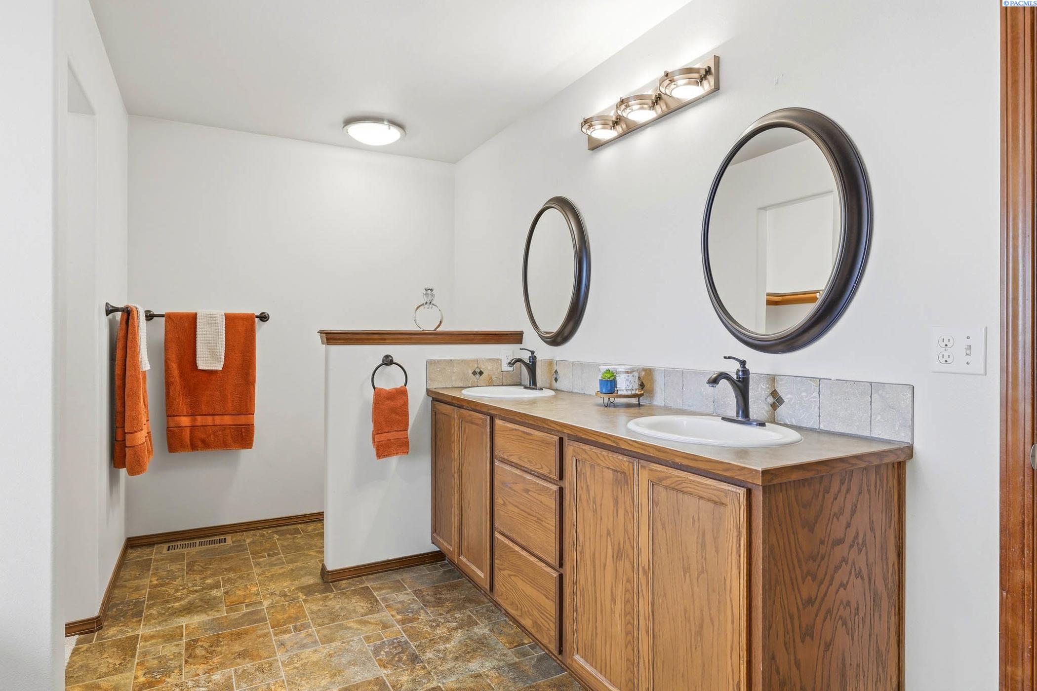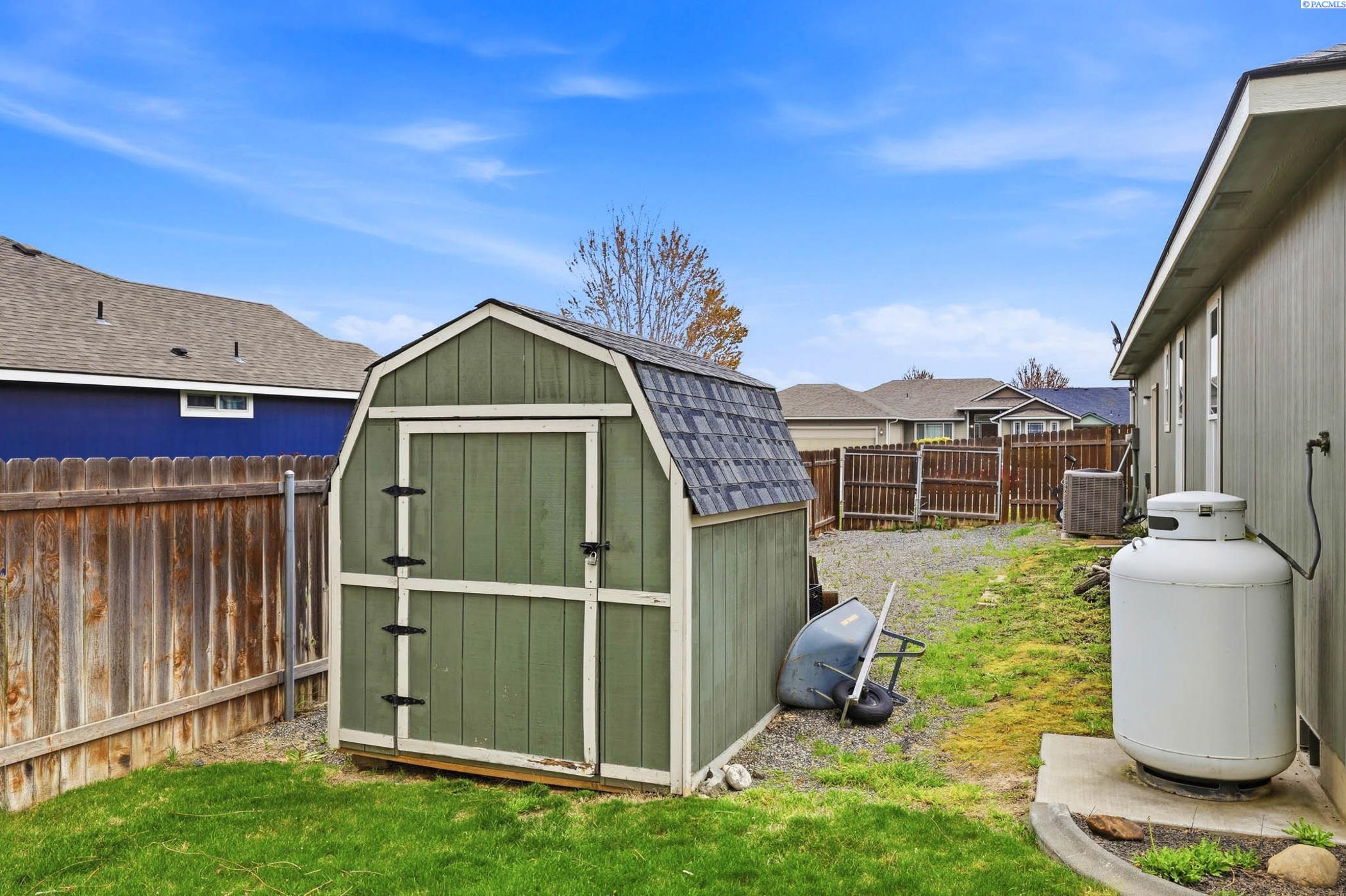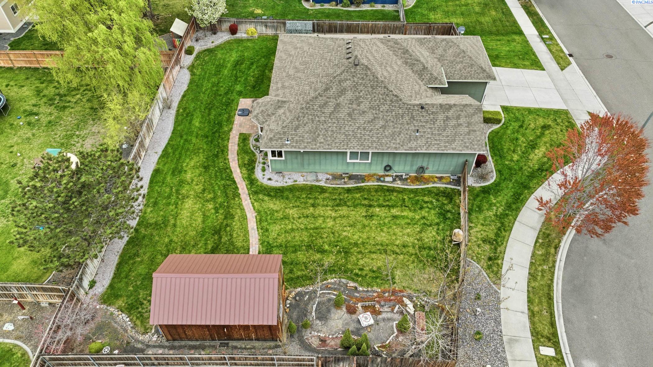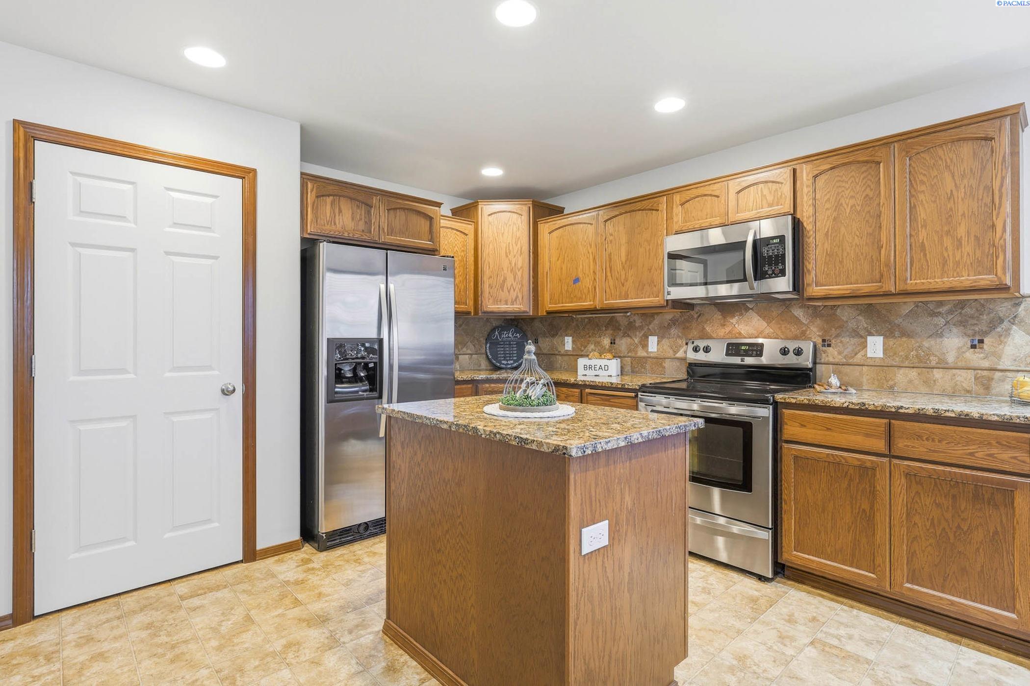 MLS# 291712 Tucked into a quiet cul-de-sac in central Kennewick, this well-designed home offers space, comfort and functionality with a layout that truly works for everyday living. Raised and vaulted ceilings, along with windows in every room, create a bright and open feel filled with natural light throughout. The floor plan features a desirable split-bedroom design for added privacy, with a spacious primary suite that offers plenty of room to unwind. The ensuite bathroom includes long spacious dual sink vanity, a large garden tub, separate walk-in shower and the rare convenience of two separate walk-in closets. Each additional bedroom also have nice sized closets and the fourth bedroom, complete with French doors, makes an ideal office or flex space. The kitchen is both practical and inviting, featuring a corner sink overlooking the backyard, a pantry for extra storage and easy access to the dining area. Just off the dining space, step out to a covered patio perfect for relaxing or entertaining. The living room is warm and comfortable, centered around a propane fireplace. Additional highlights include a dedicated laundry room plumbed for a utility sink just off the garage, ceiling fans in most rooms, a welcoming foyer with coat closet, fully fenced back and side yard and a 2-car garage with additional RV parking on side of home. Come live where neighbors become friends.