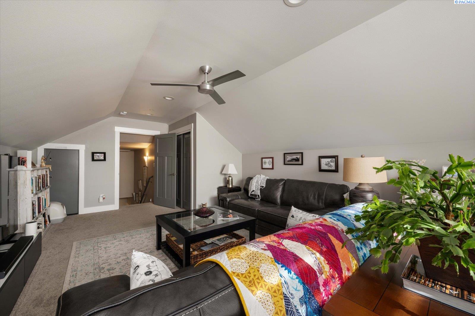 MLS# 291721 Better Than New! Charming Craftsman style home with contemporary touches and several recent updates and upgrades. The Covered front porch leads into the open spacious living/dining/kitchen area with high vaulted ceilings and open beams. Quartz counter tops, breakfast bar, newer appliances, and freshly refinished cabinets.A complete remodel was done on the gas fireplace, new stone front, background lighting and fan. ($20K). The primary suite is separate from the secondary bedrooms and features a separate zero-entry shower, garden tub, dual sinks, walk-in closet and an additional closet. Use your imagination for the generous sized "bonus" room or 4th bedroom, if needed. There is a very private 240 sq ft covered patio (wired for a hot tub), and a 3-car finished garage, that is accessed by the alley in the back. To top it all off, it has solar panels and is located across from the community park. All appliances are included.