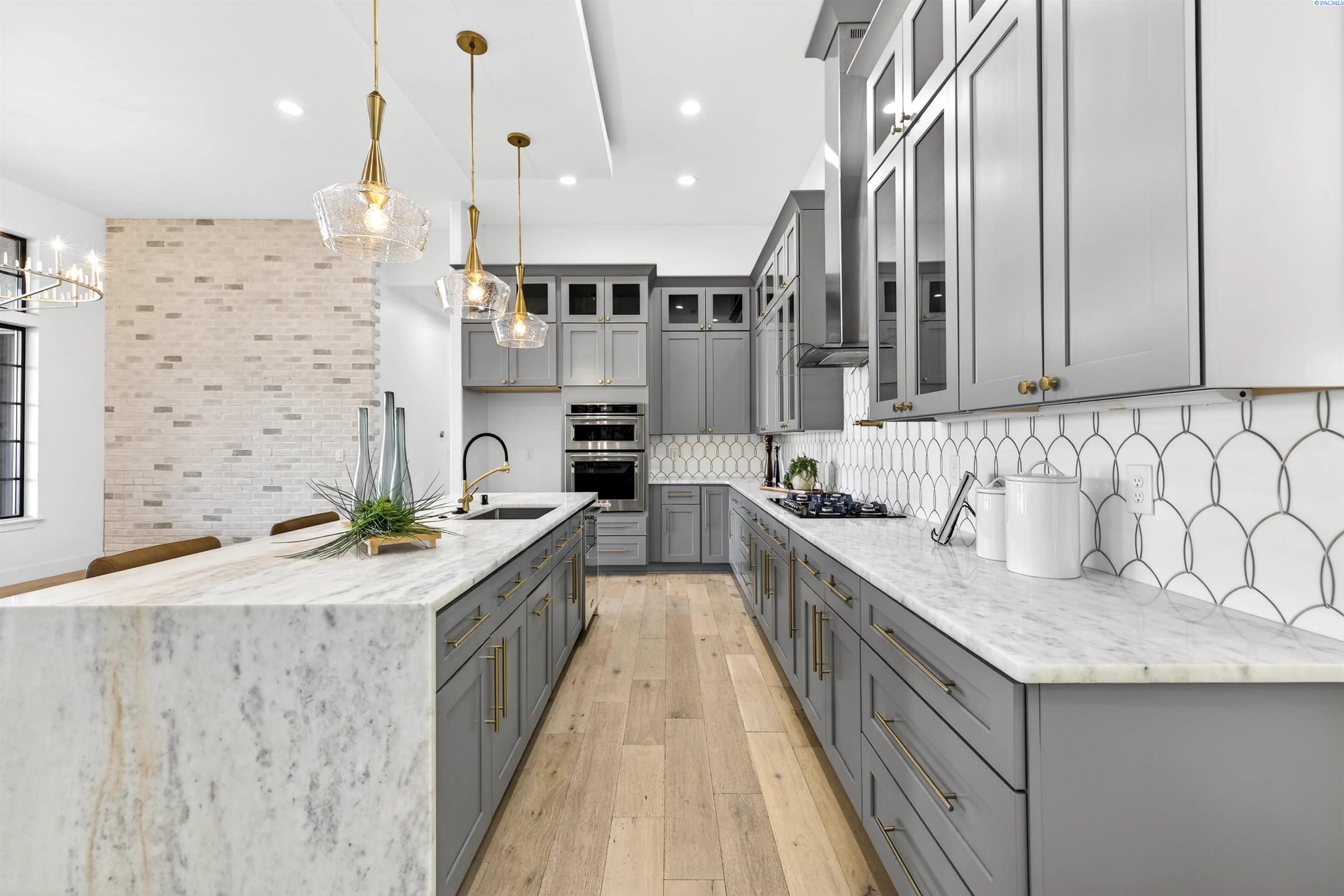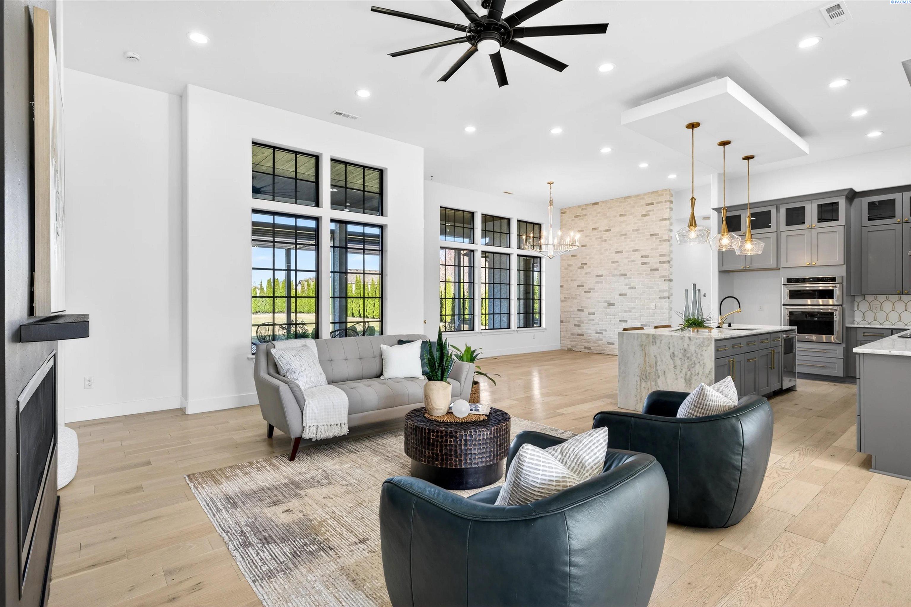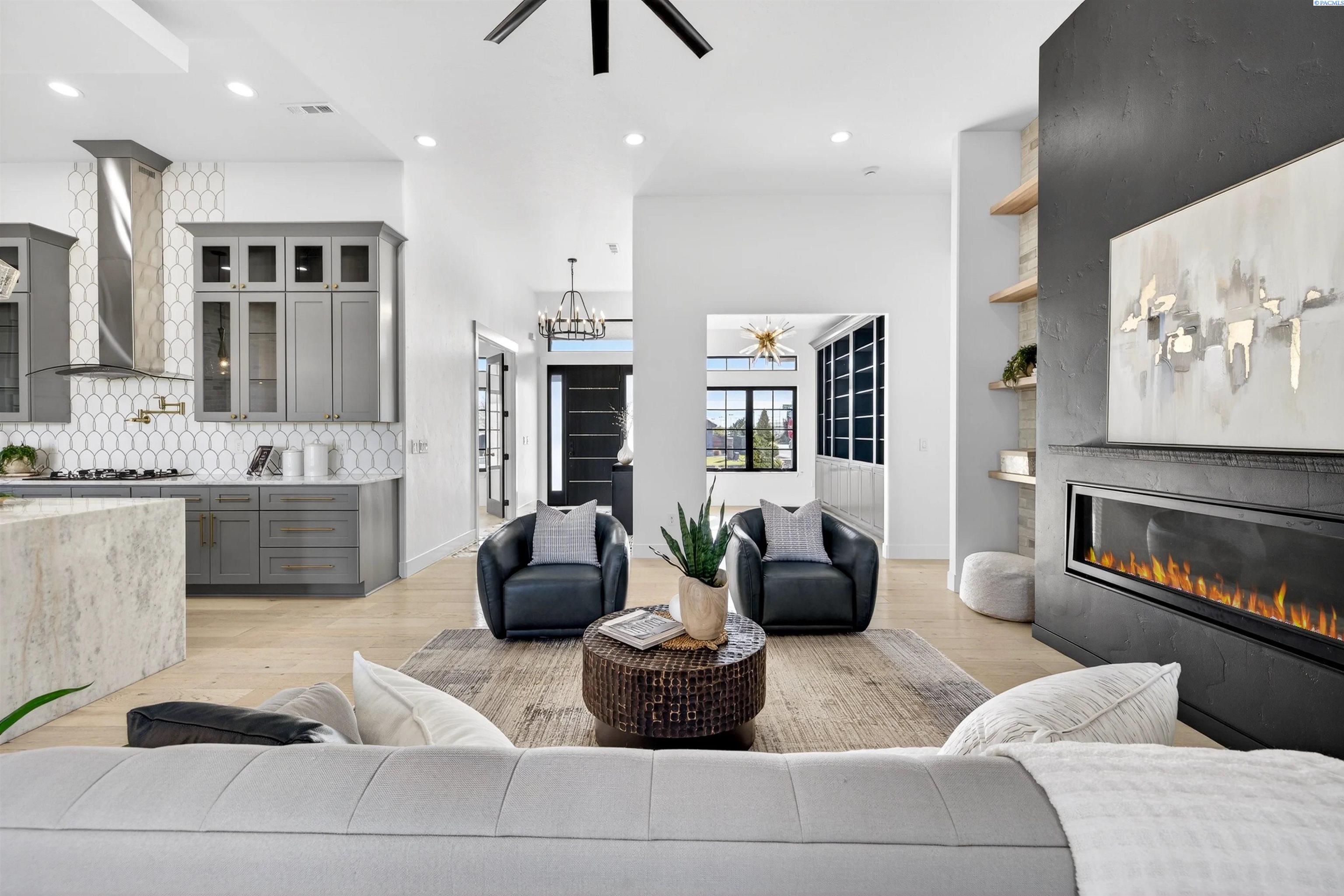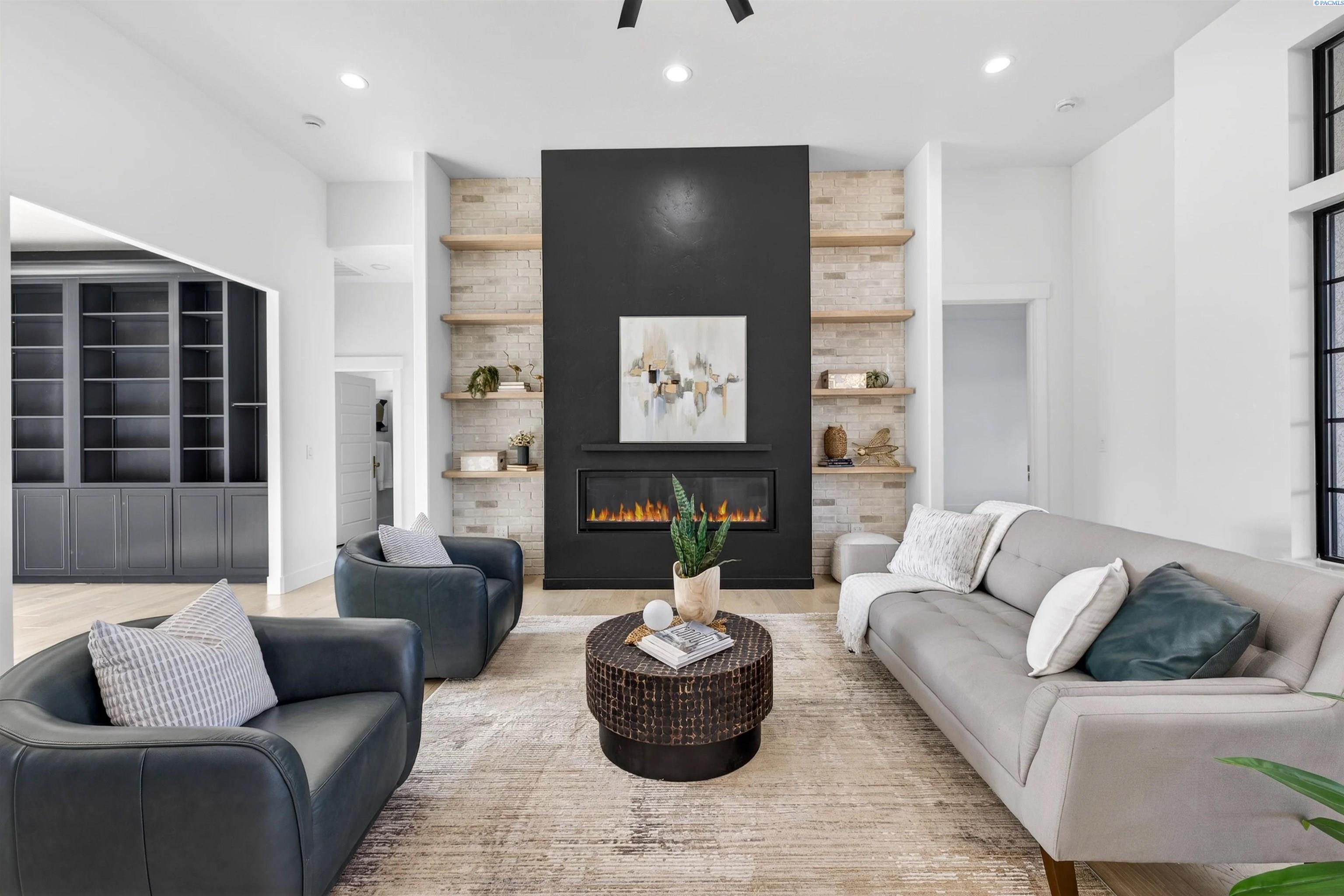 MLS# 291743 Experience a level of craftsmanship and design rarely found in this stunning 2018 custom-built residence, ideally situated on a half-acre a few blocks from the river. Offering 2,818 sq. ft., a 3-car garage, 4 bedrooms, and 3 full bathsâincluding a private junior suite and an expansive primary retreatâthis home also features an office with closet and an additional living space with floor-to-ceiling built-ins, ideal as a library, separate living area, second office, or playroom. From the moment you enter, the scale and detail set the toneâsoaring 12-foot ceilings in the main living areas, 10-foot ceilings throughout, upgraded 8-foot doors, and custom windows flood the home with natural light. The open-concept design seamlessly connects the kitchen, dining, and living spaces, anchored by a stunning marble waterfall island with seating, custom cabinetry, designer hardware, full tile backsplash with wall-mounted faucet over the stove, a large walk-in pantry with built-ins, luxury lighting, and high-end appliances. The living area is both inviting and striking, featuring expansive windows, a custom linear gas fireplace, floor-to-ceiling shelving, and cultured brick accents that extend into the luxurious primary suite. The primary retreat offers a spa-like experience with window seating overlooking the private arborvitae-lined backyard, heated floors, a generous walk-in closet with built-ins, freestanding tub, large tiled shower, and dual sink vanity with marble countertops. Engineered hardwood, custom tile, and designer lighting carry throughout. Additional features include a junior suite with full bath (all bathrooms are beautifully finished with tiled showers and marble countertops), an office w/closet & 8-foot glass French doors, as well as a second living space with full built-ins that can be used as a flex space. Outdoors, enjoy an extended stamped patio, freshly painted pergola, and a large private yard with block fencing and thoughtful landscaping. With extensive upgradesâincluding full-view garage doors and an instant-on tankless water heaterâthis home must be experienced to be fully appreciated. Call for your private showing today!