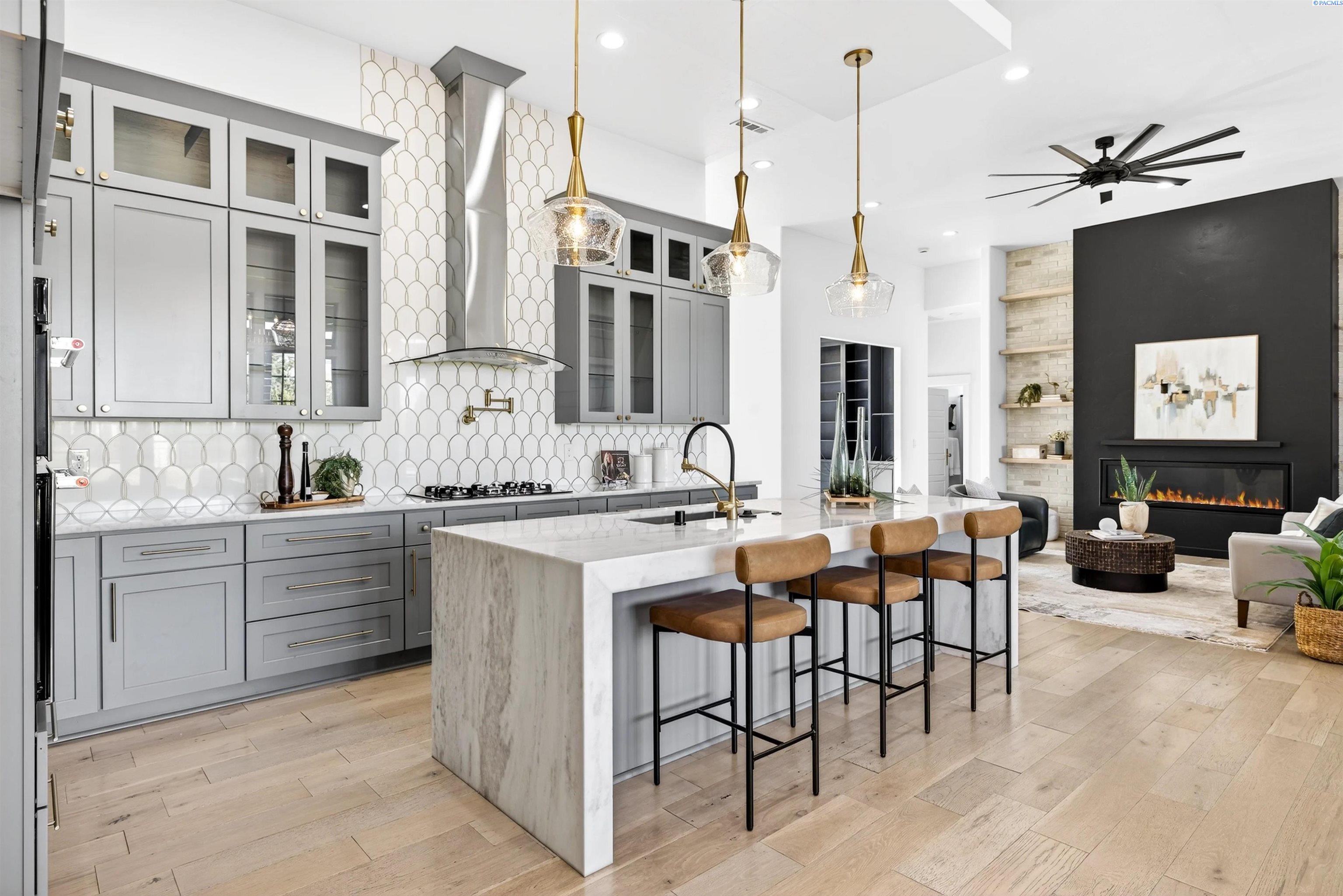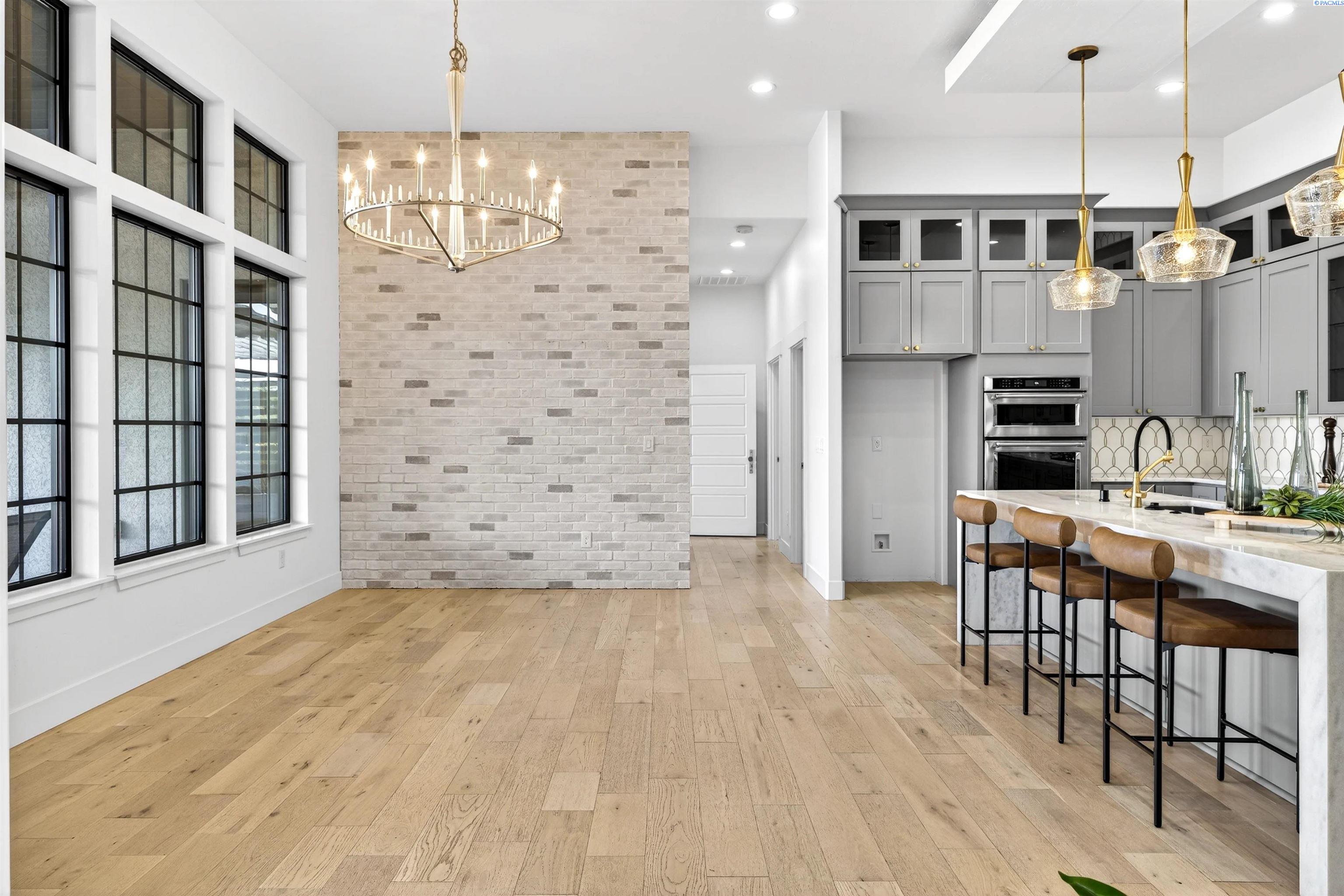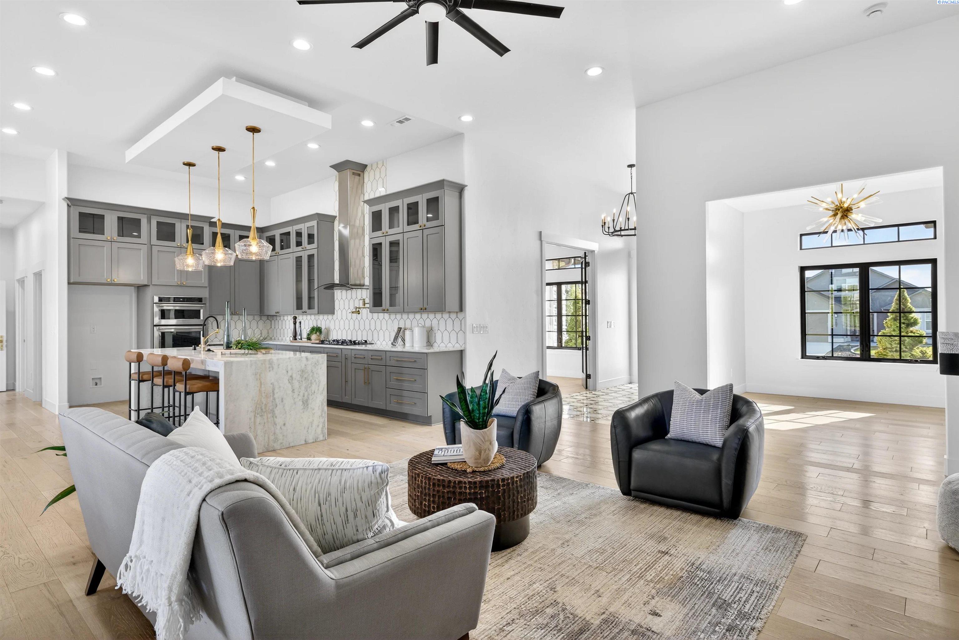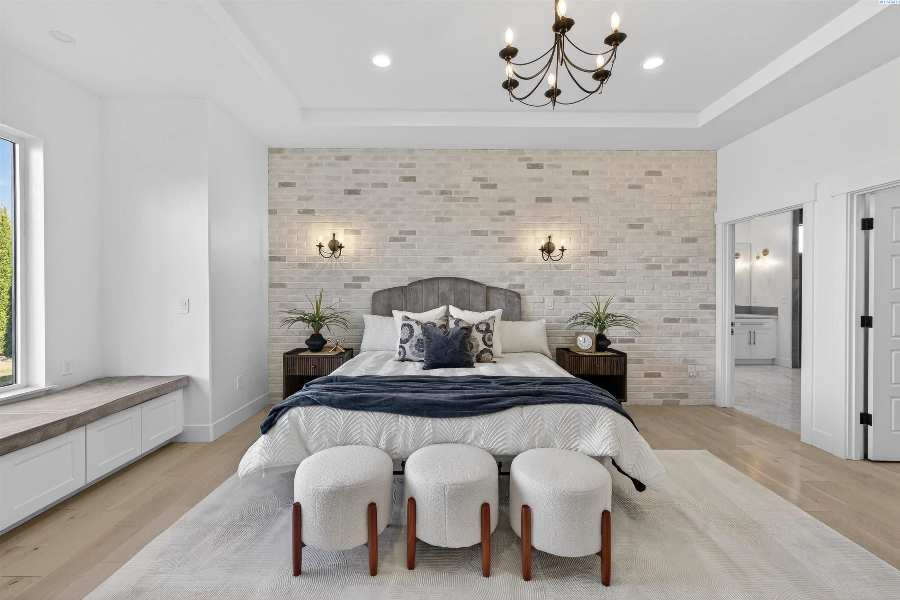 MLS# 291743 Experience a level of craftsmanship and design rarely found in this stunning 2018 custom-built residence, ideally situated on a half-acre a few blocks from the river. Offering 2,818 sq. ft., a 3-car garage, 4 bedrooms, and 3 full bathsâincluding a private junior suite and an expansive primary retreatâthis home also features an office with closet and an additional living space with floor-to-ceiling built-ins, ideal as a library, separate living area, second office, or playroom. From the moment you enter, the scale and detail set the toneâsoaring 12-foot ceilings in the main living areas, 10-foot ceilings throughout, upgraded 8-foot doors, and custom windows flood the home with natural light. The open-concept design seamlessly connects the kitchen, dining, and living spaces, anchored by a stunning marble waterfall island with seating, custom cabinetry, designer hardware, full tile backsplash with wall-mounted faucet over the stove, a large walk-in pantry with built-ins, luxury lighting, and high-end appliances. The living area is both inviting and striking, featuring expansive windows, a custom linear gas fireplace, floor-to-ceiling shelving, and cultured brick accents that extend into the luxurious primary suite. The primary retreat offers a spa-like experience with window seating overlooking the private arborvitae-lined backyard, heated floors, a generous walk-in closet with built-ins, freestanding tub, large tiled shower, and dual sink vanity with marble countertops. Engineered hardwood, custom tile, and designer lighting carry throughout. Additional features include a junior suite with full bath (all bathrooms are beautifully finished with tiled showers and marble countertops), an office w/closet & 8-foot glass French doors, as well as a second living space with full built-ins that can be used as a flex space. Outdoors, enjoy an extended stamped patio, freshly painted pergola, and a large private yard with block fencing and thoughtful landscaping. With extensive upgradesâincluding full-view garage doors and an instant-on tankless water heaterâthis home must be experienced to be fully appreciated. Call for your private showing today!